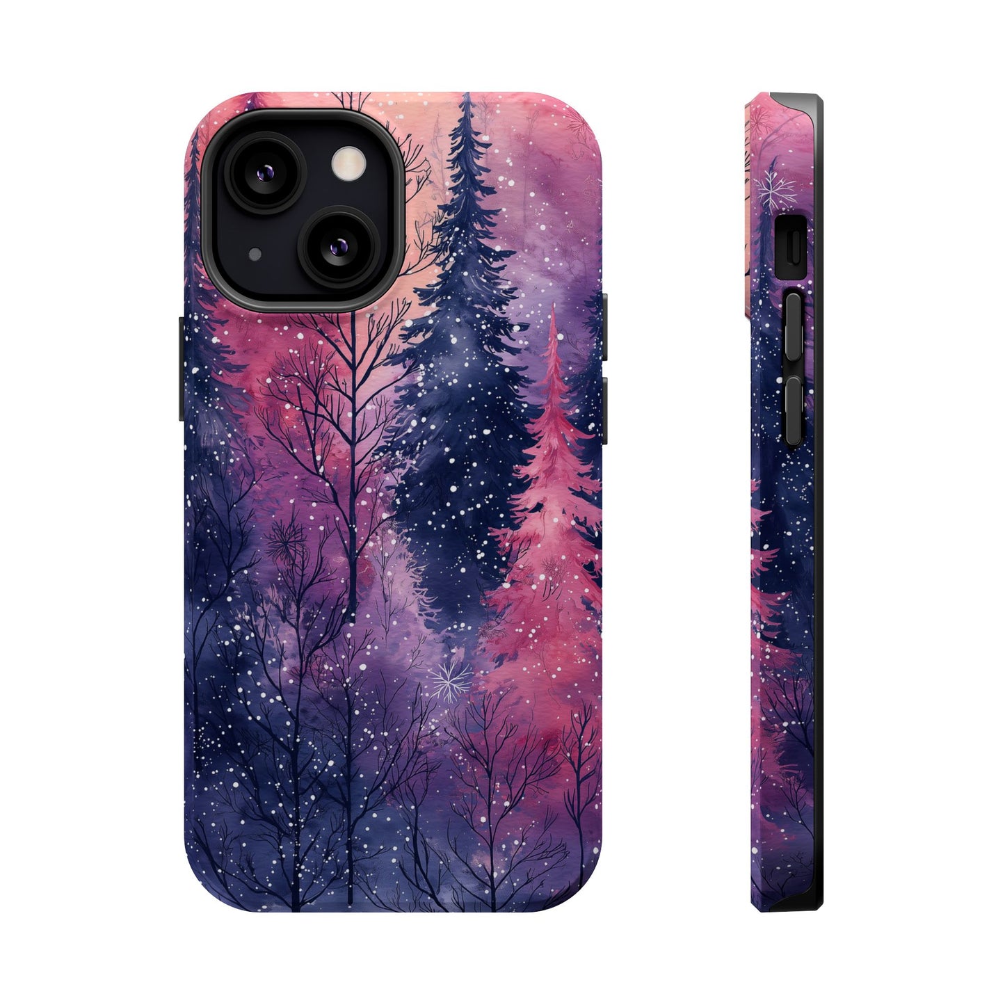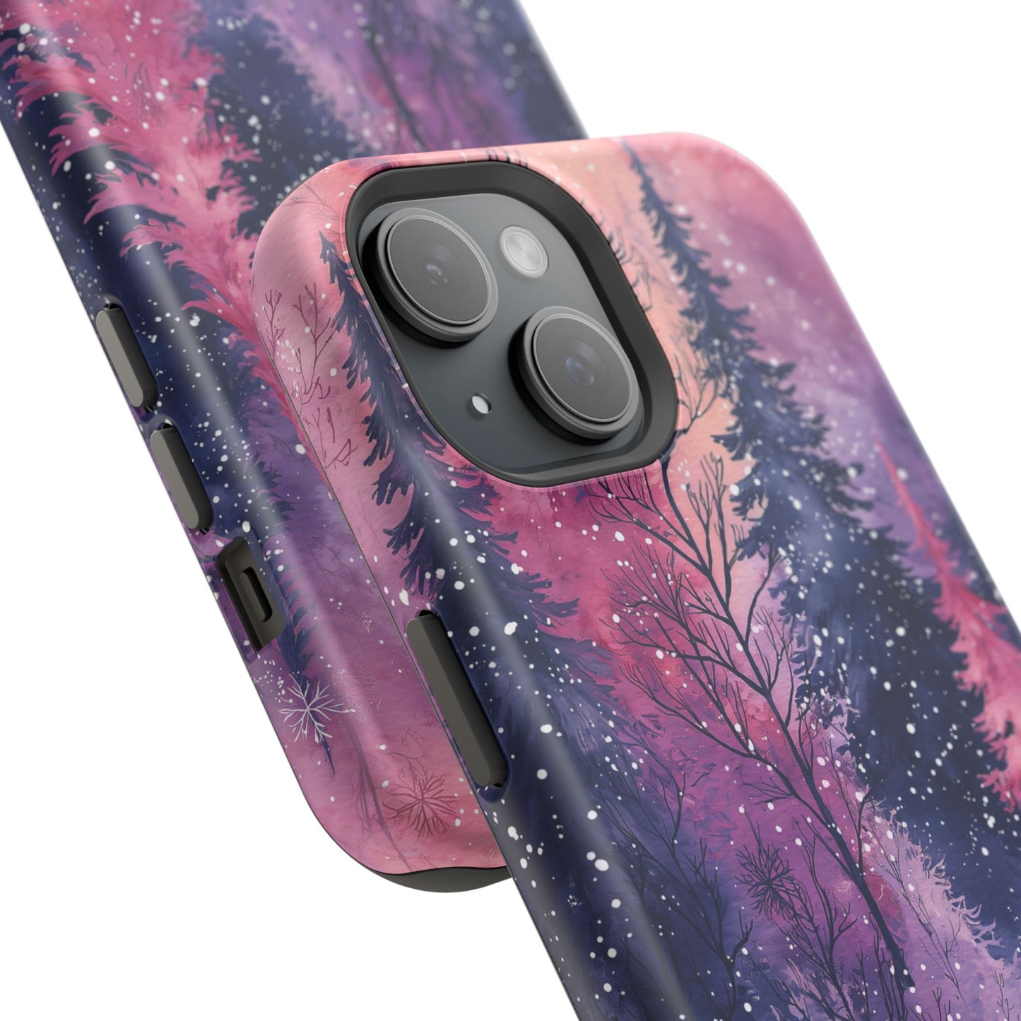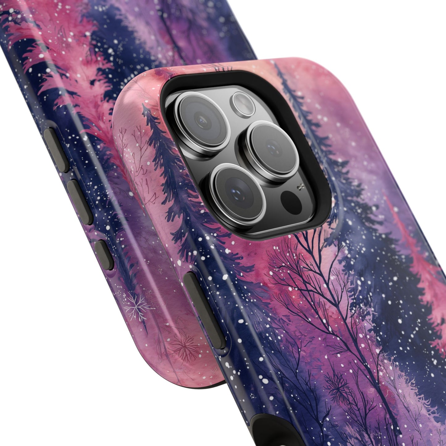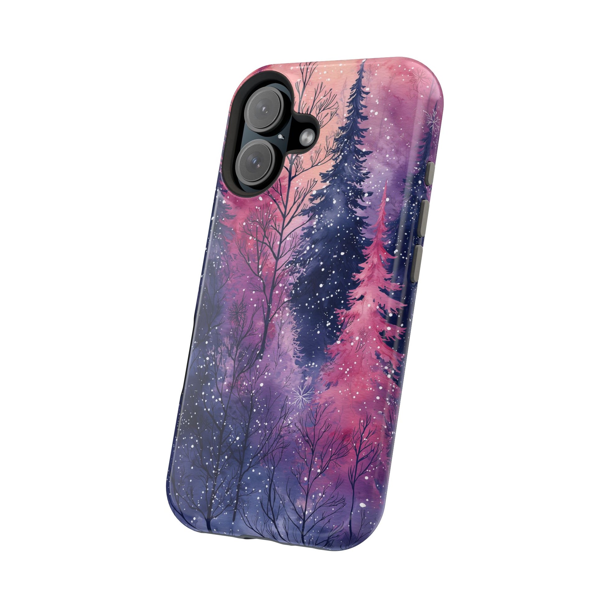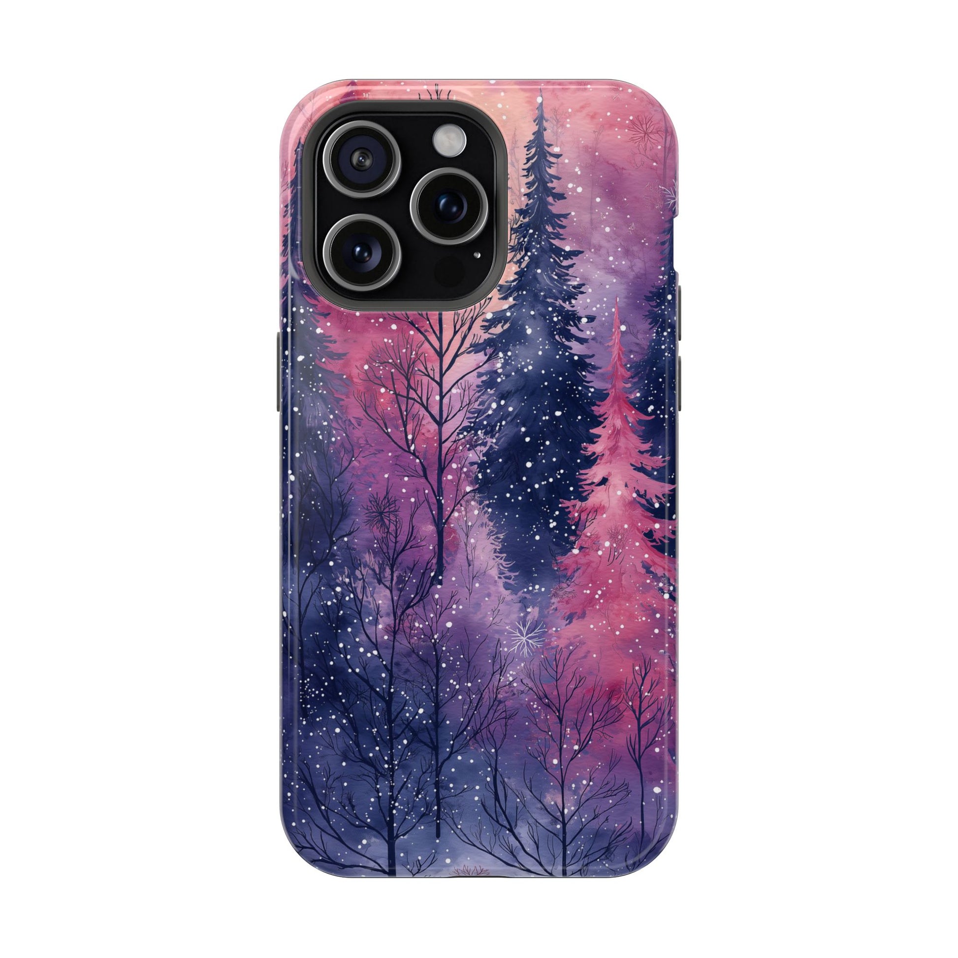 Bring the breathtaking beauty of a winter sunset to your phone with our Sunset Snow Forest MagSafe iPhone Case. Featuring an enchanting landscape of snow-covered trees in rich hues of pink, purple, and deep indigo, this case captures the magic of a twilight forest blanketed in snow. Perfect for nature lovers and dreamers, this case provides rugged protection in a slim, stylish profile. Its artistic, watercolor-inspired design adds a splash of winter romance to your phone, making it a unique accessory you'll love showing off.