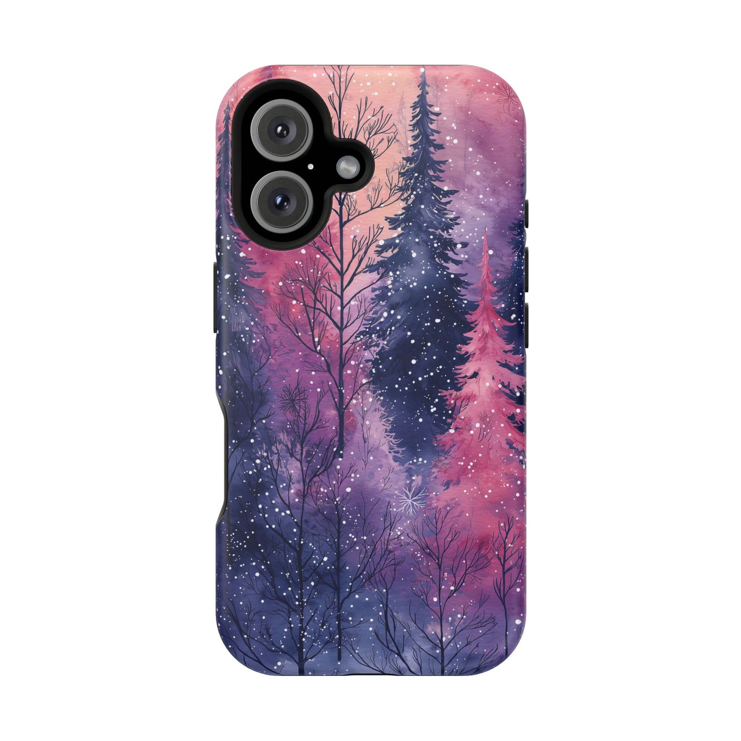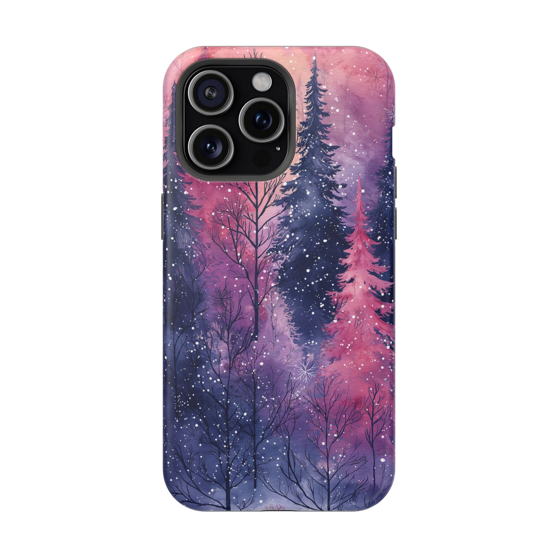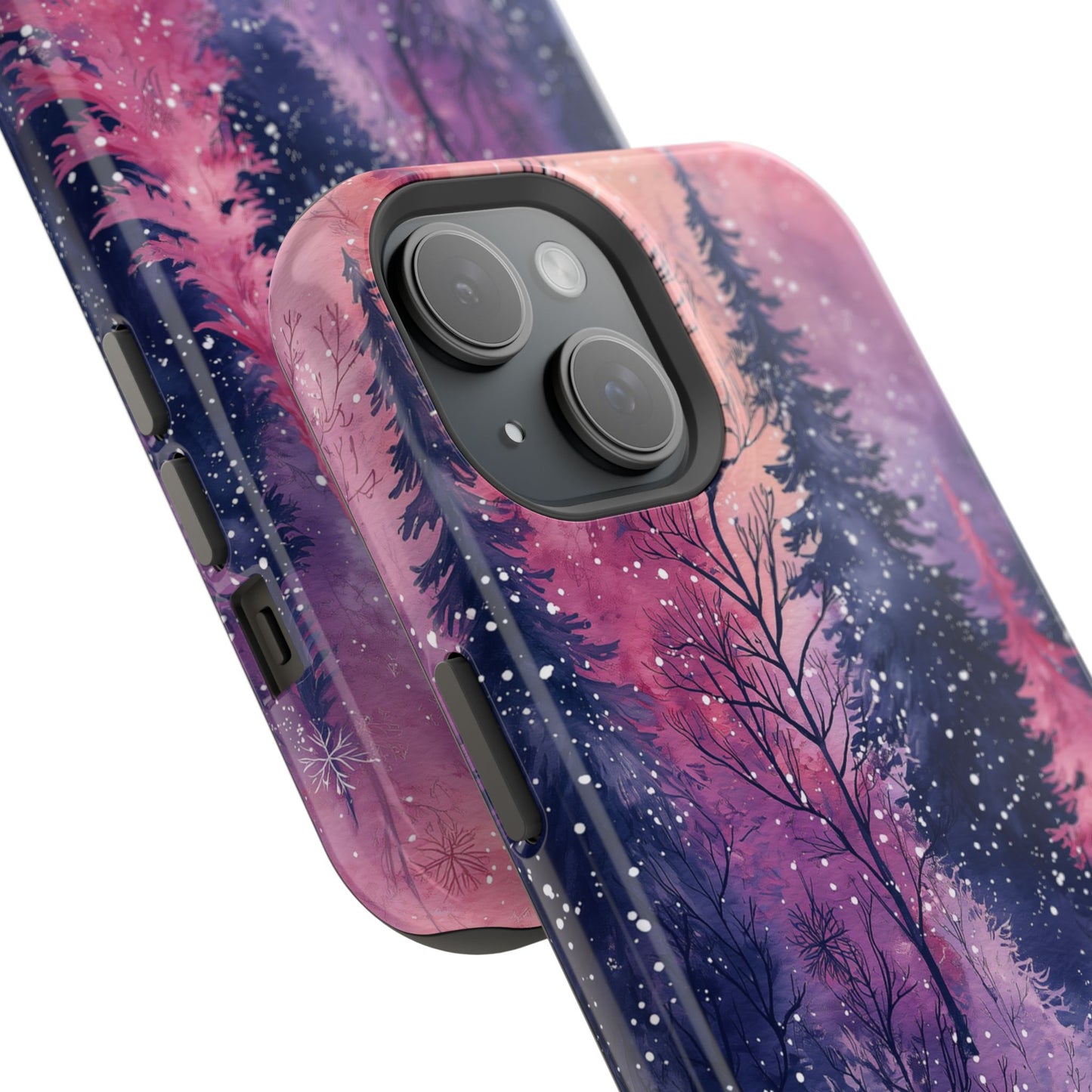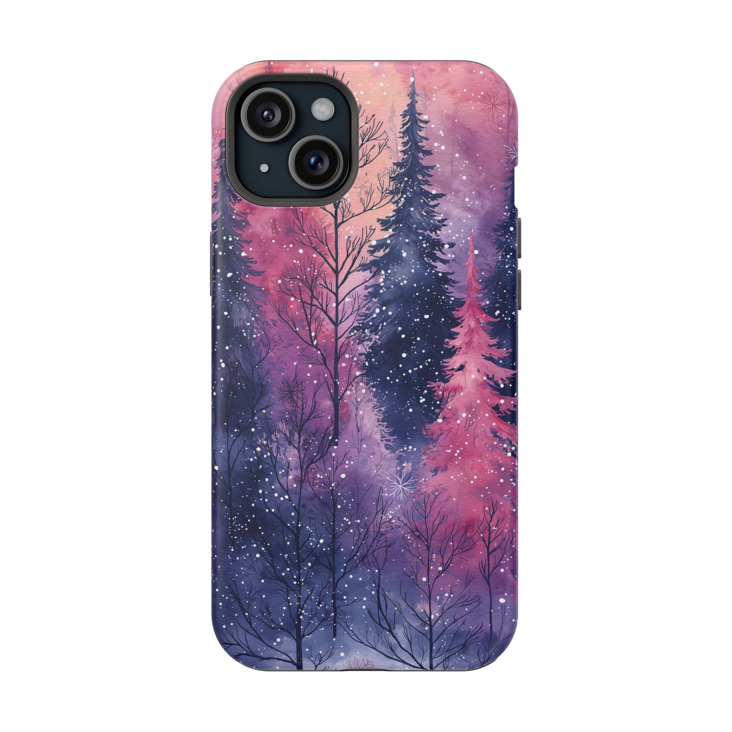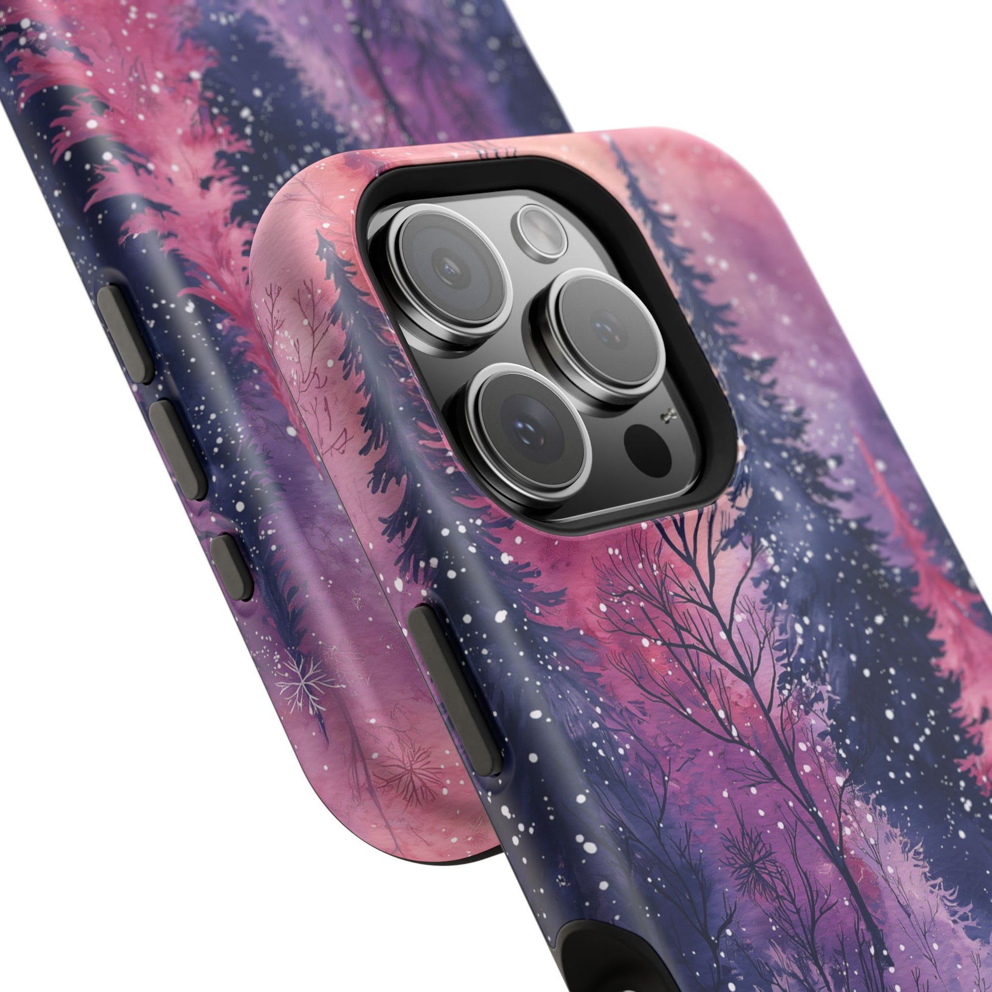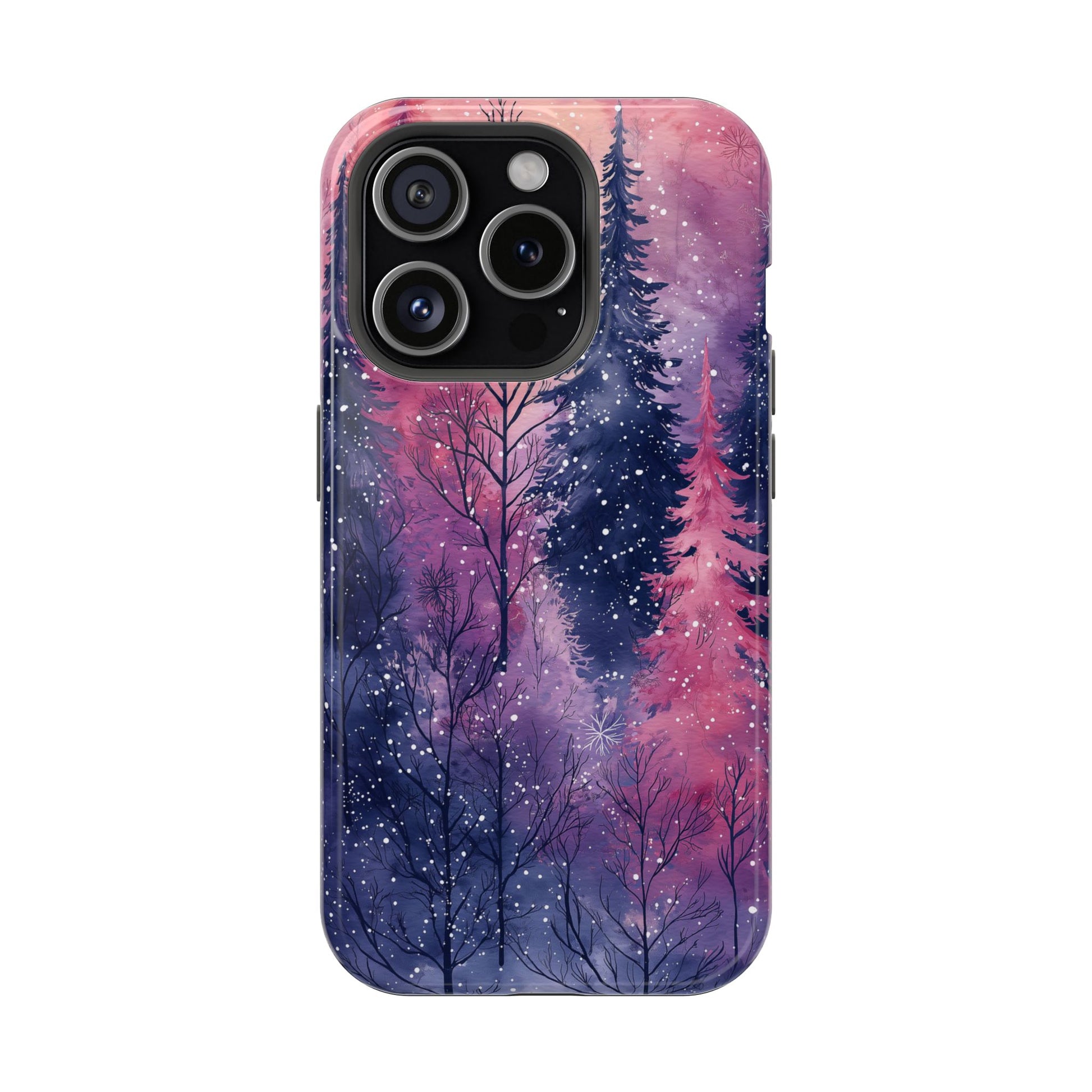 Bring the breathtaking beauty of a winter sunset to your phone with our Sunset Snow Forest MagSafe iPhone Case. Featuring an enchanting landscape of snow-covered trees in rich hues of pink, purple, and deep indigo, this case captures the magic of a twilight forest blanketed in snow. Perfect for nature lovers and dreamers, this case provides rugged protection in a slim, stylish profile. Its artistic, watercolor-inspired design adds a splash of winter romance to your phone, making it a unique accessory you'll love showing off.