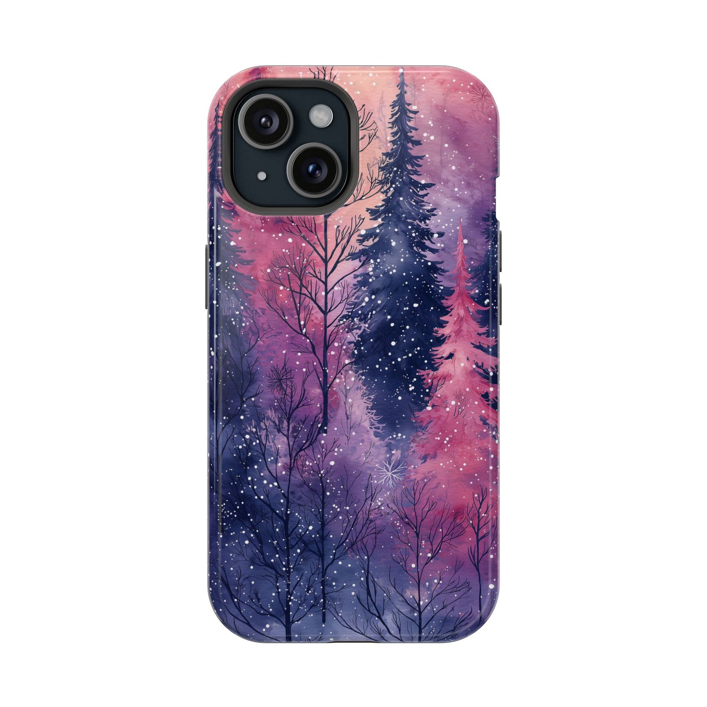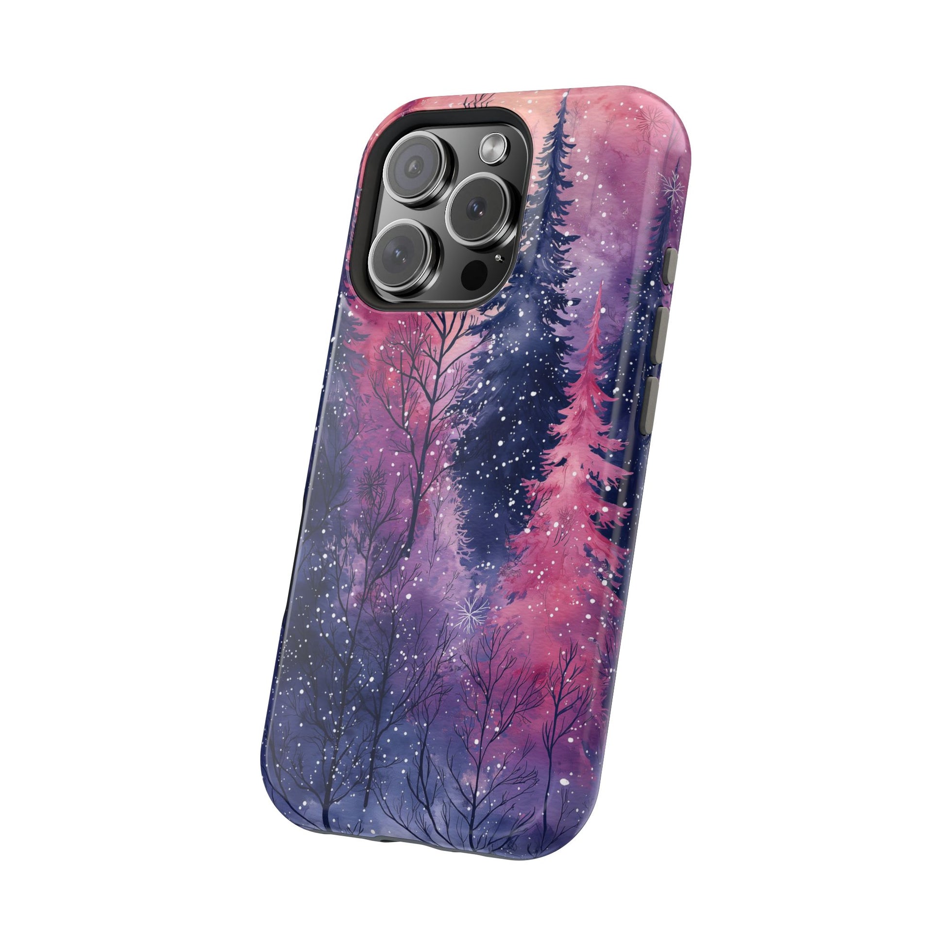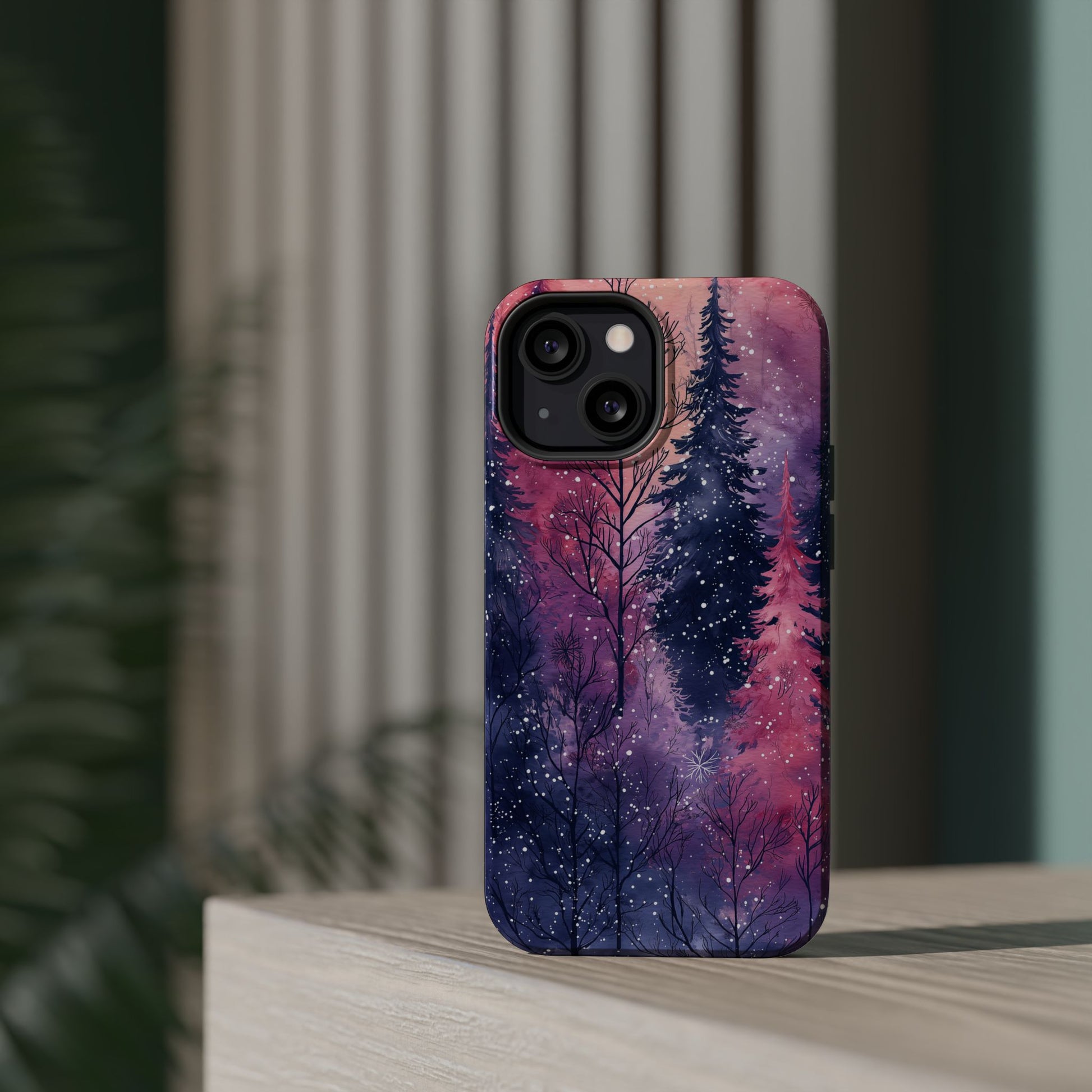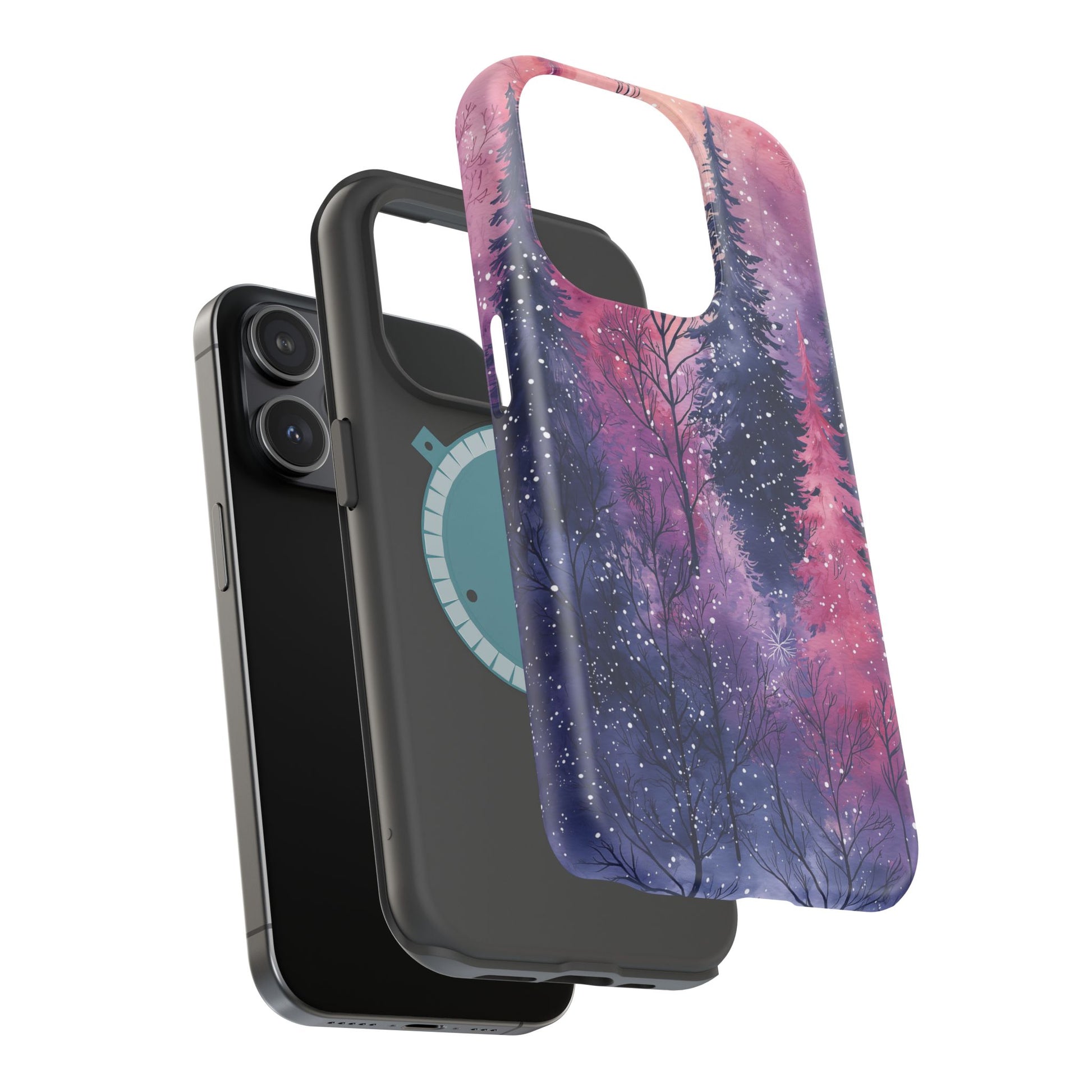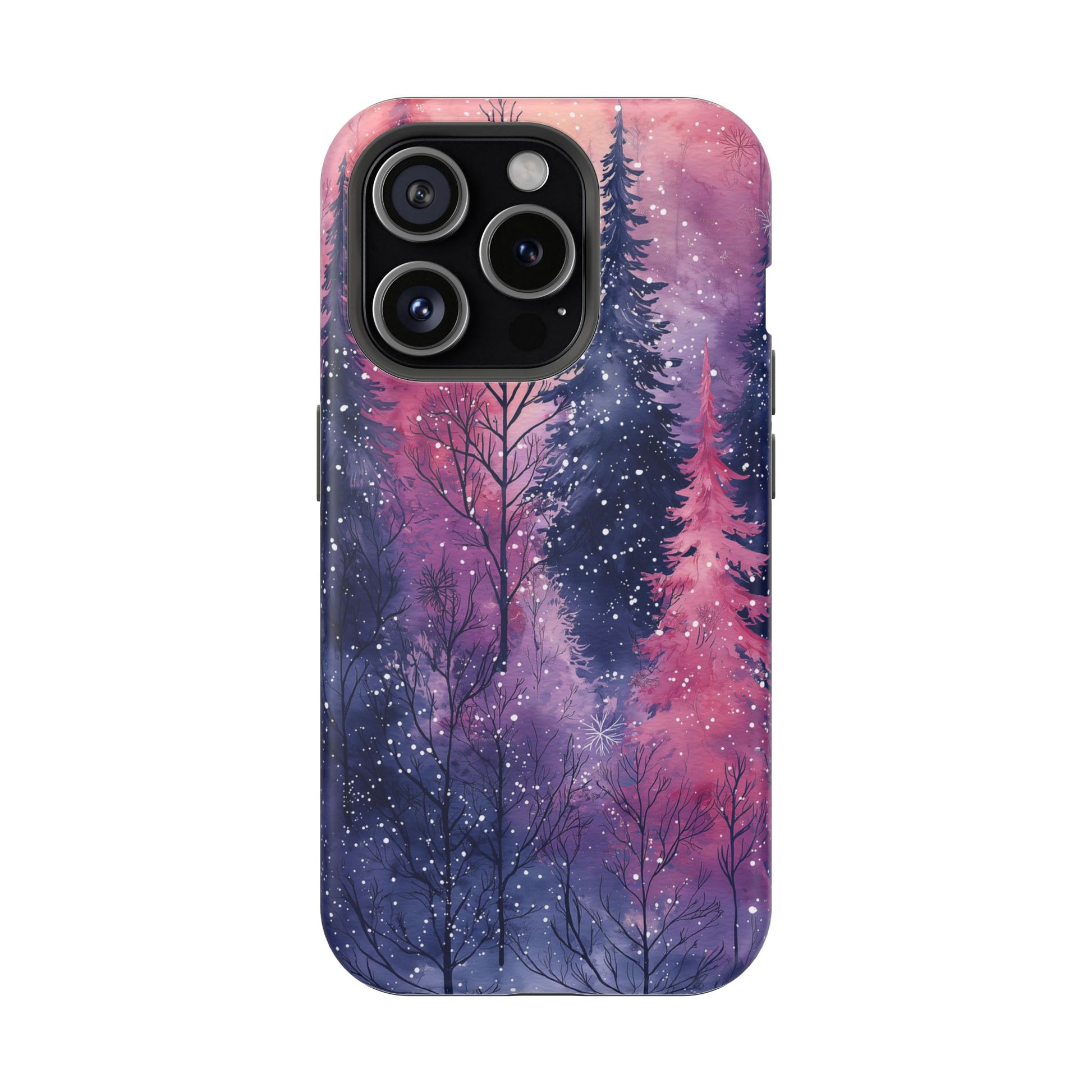 Bring the breathtaking beauty of a winter sunset to your phone with our Sunset Snow Forest MagSafe iPhone Case. Featuring an enchanting landscape of snow-covered trees in rich hues of pink, purple, and deep indigo, this case captures the magic of a twilight forest blanketed in snow. Perfect for nature lovers and dreamers, this case provides rugged protection in a slim, stylish profile. Its artistic, watercolor-inspired design adds a splash of winter romance to your phone, making it a unique accessory you'll love showing off.