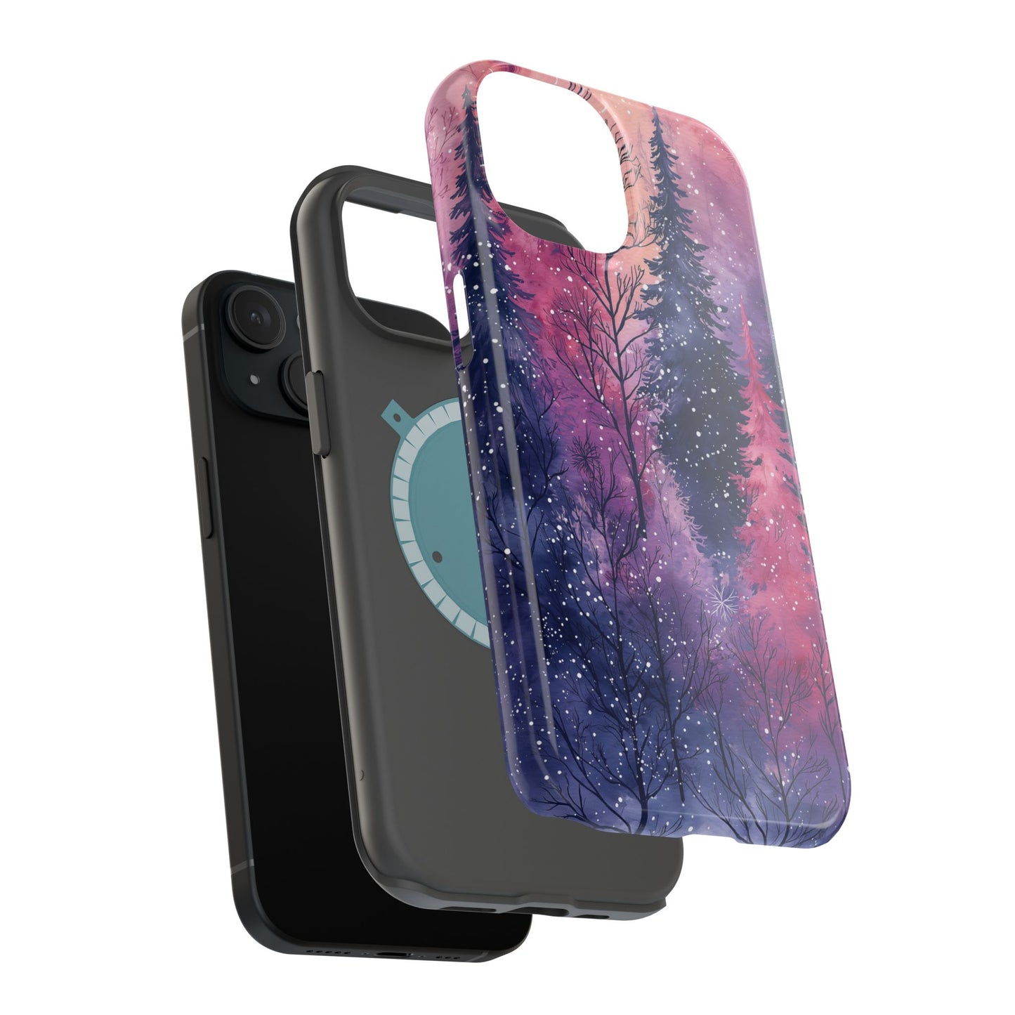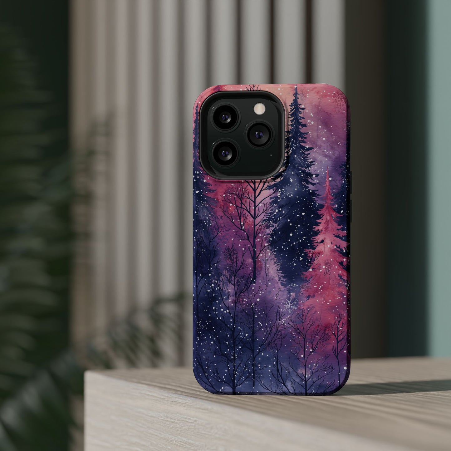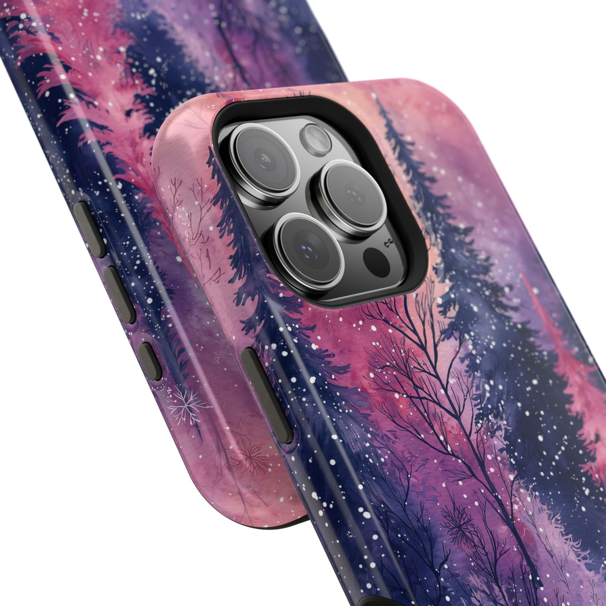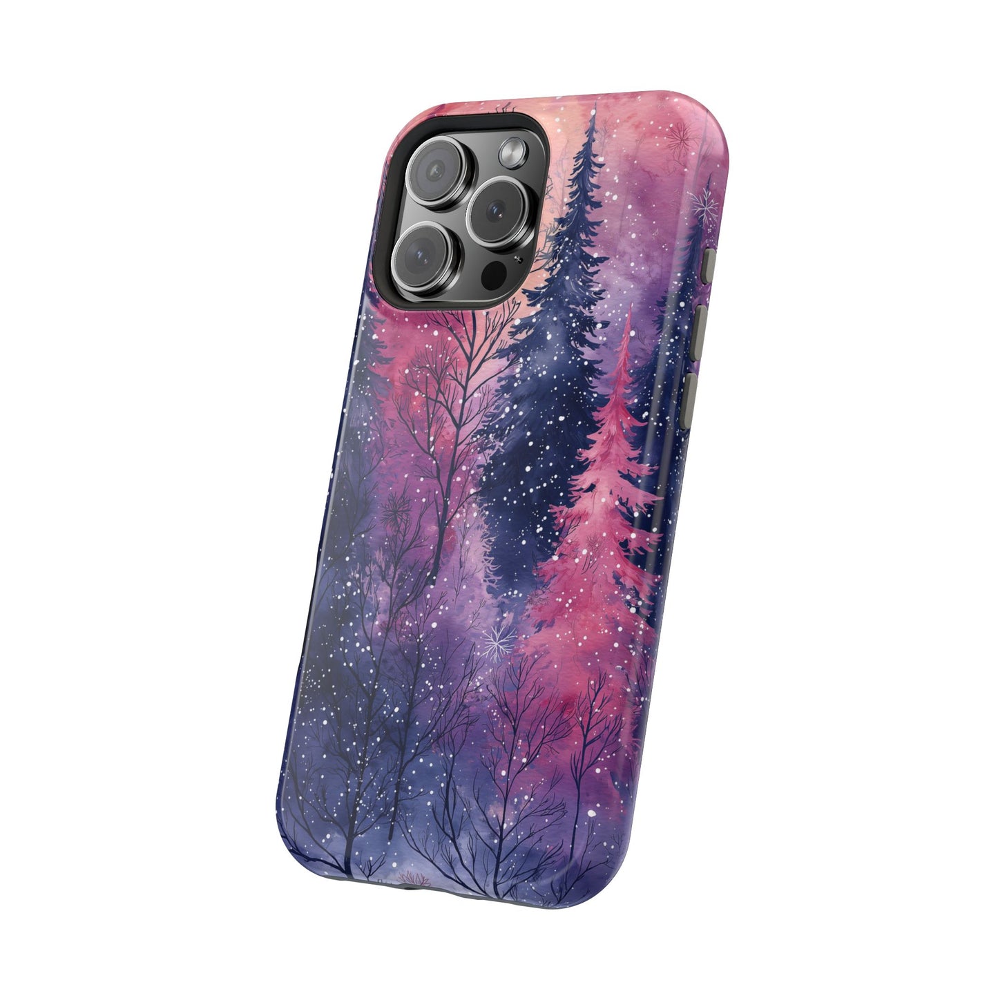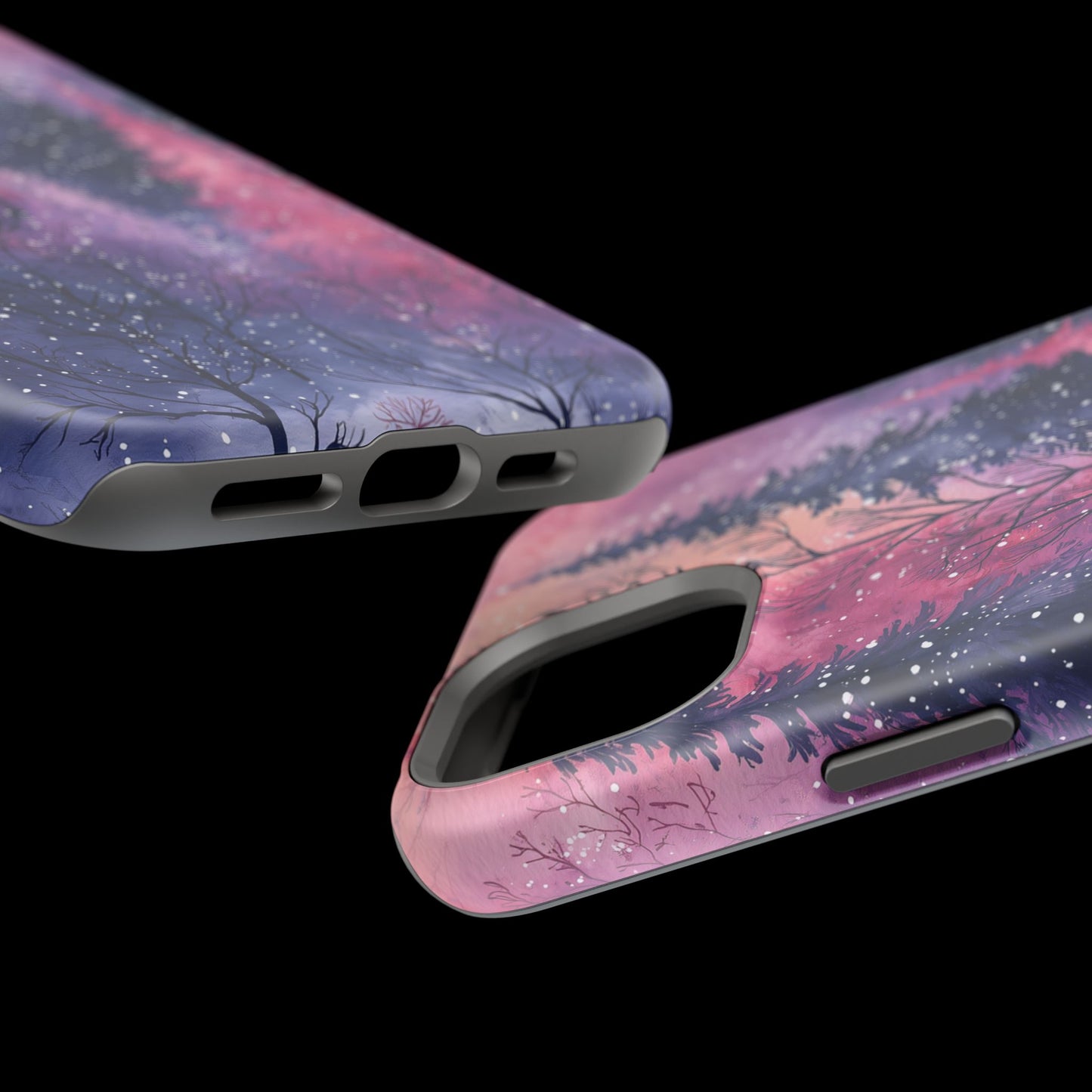 Bring the breathtaking beauty of a winter sunset to your phone with our Sunset Snow Forest MagSafe iPhone Case. Featuring an enchanting landscape of snow-covered trees in rich hues of pink, purple, and deep indigo, this case captures the magic of a twilight forest blanketed in snow. Perfect for nature lovers and dreamers, this case provides rugged protection in a slim, stylish profile. Its artistic, watercolor-inspired design adds a splash of winter romance to your phone, making it a unique accessory you'll love showing off.