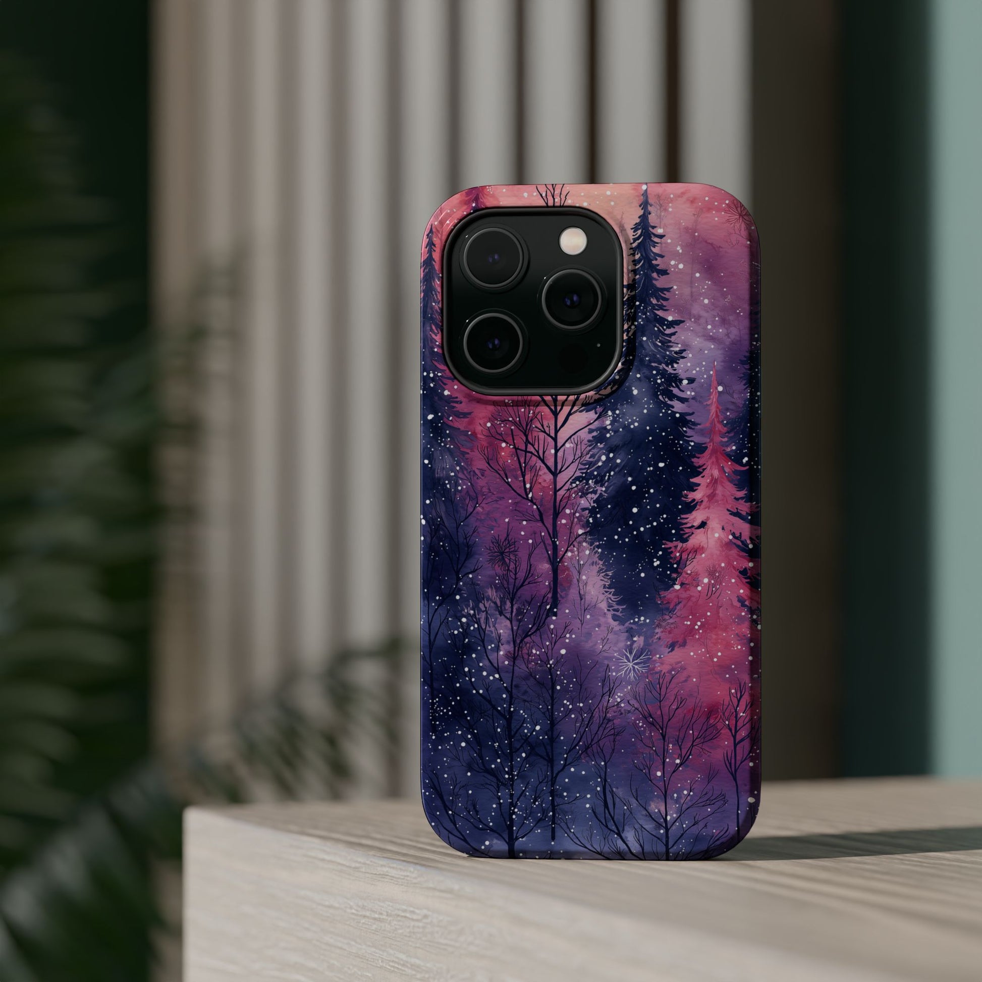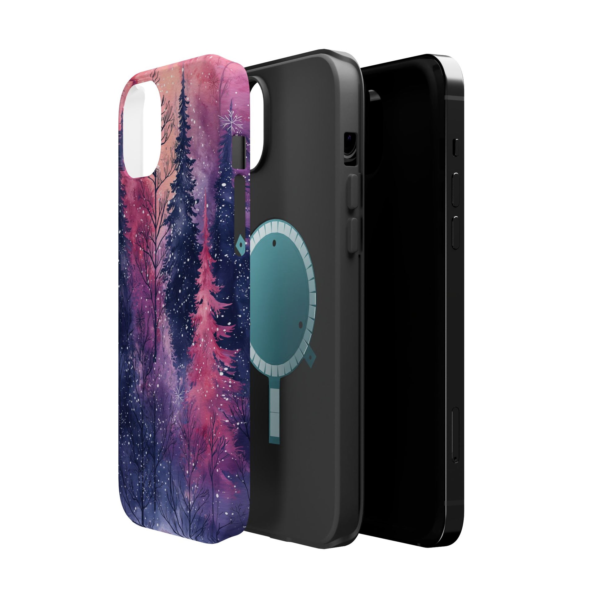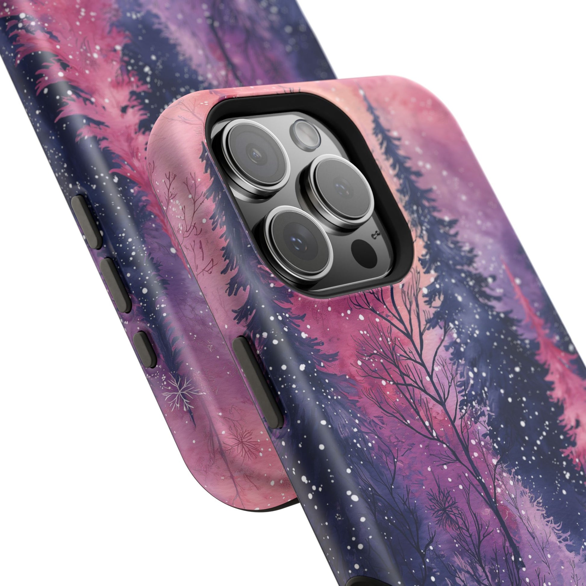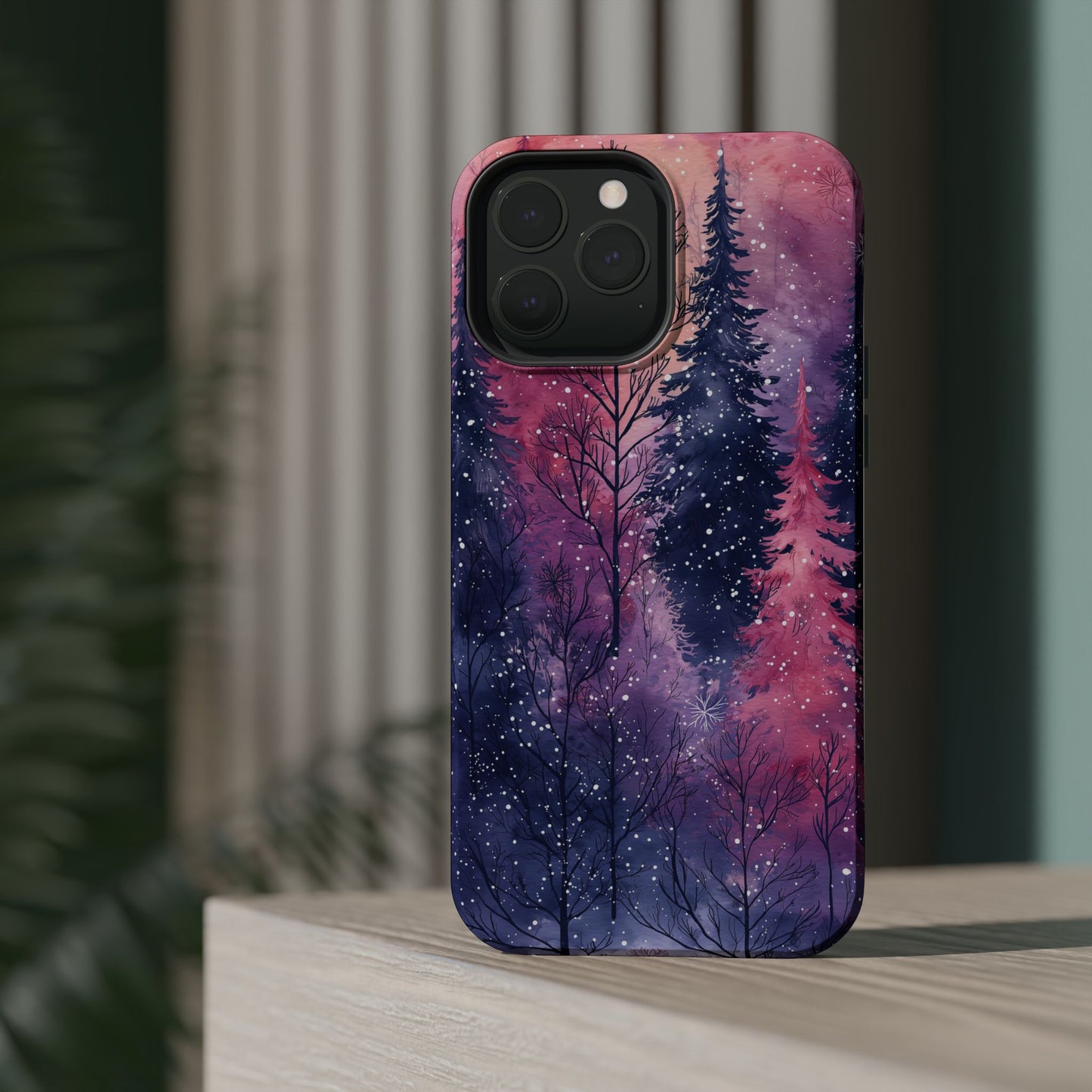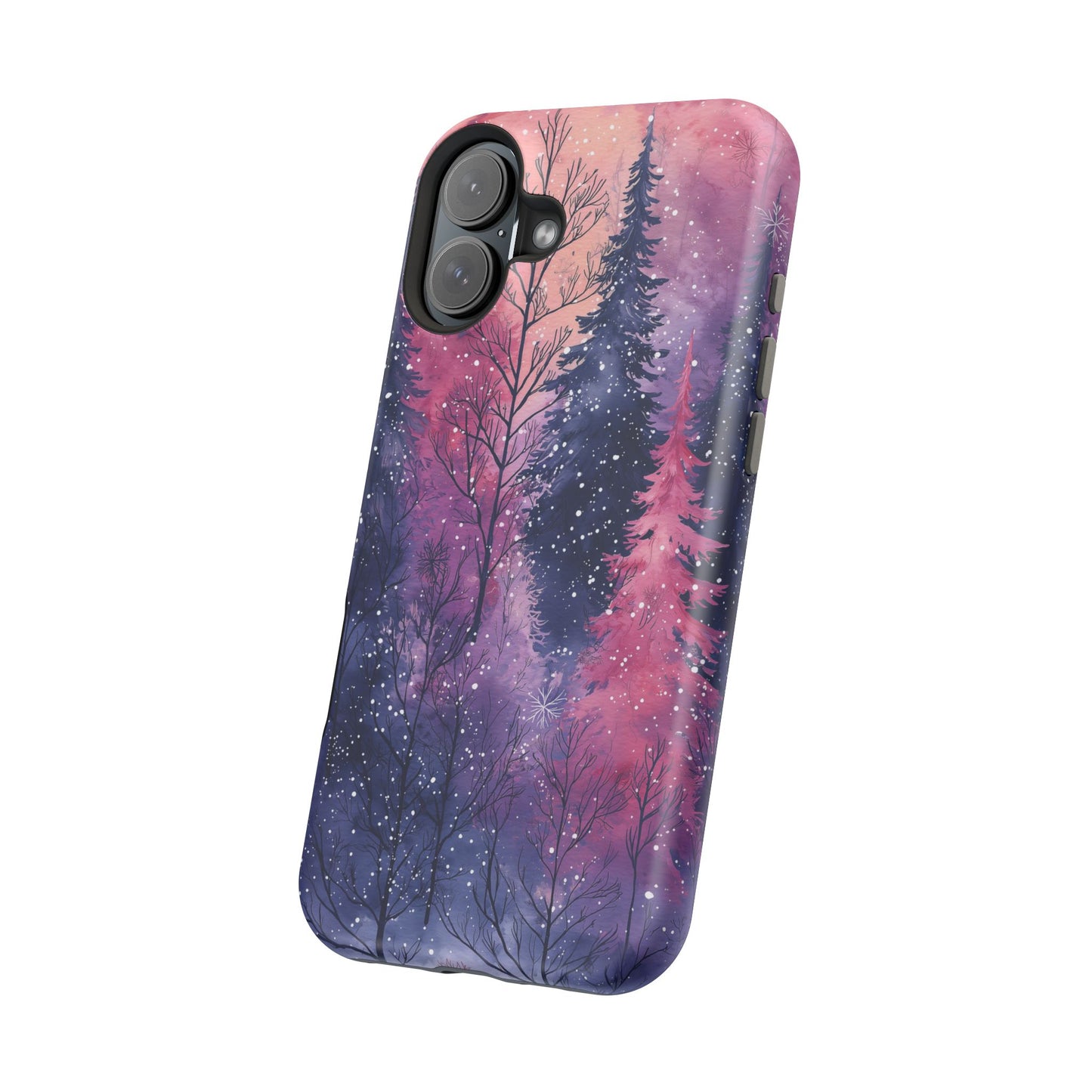 Bring the breathtaking beauty of a winter sunset to your phone with our Sunset Snow Forest MagSafe iPhone Case. Featuring an enchanting landscape of snow-covered trees in rich hues of pink, purple, and deep indigo, this case captures the magic of a twilight forest blanketed in snow. Perfect for nature lovers and dreamers, this case provides rugged protection in a slim, stylish profile. Its artistic, watercolor-inspired design adds a splash of winter romance to your phone, making it a unique accessory you'll love showing off.