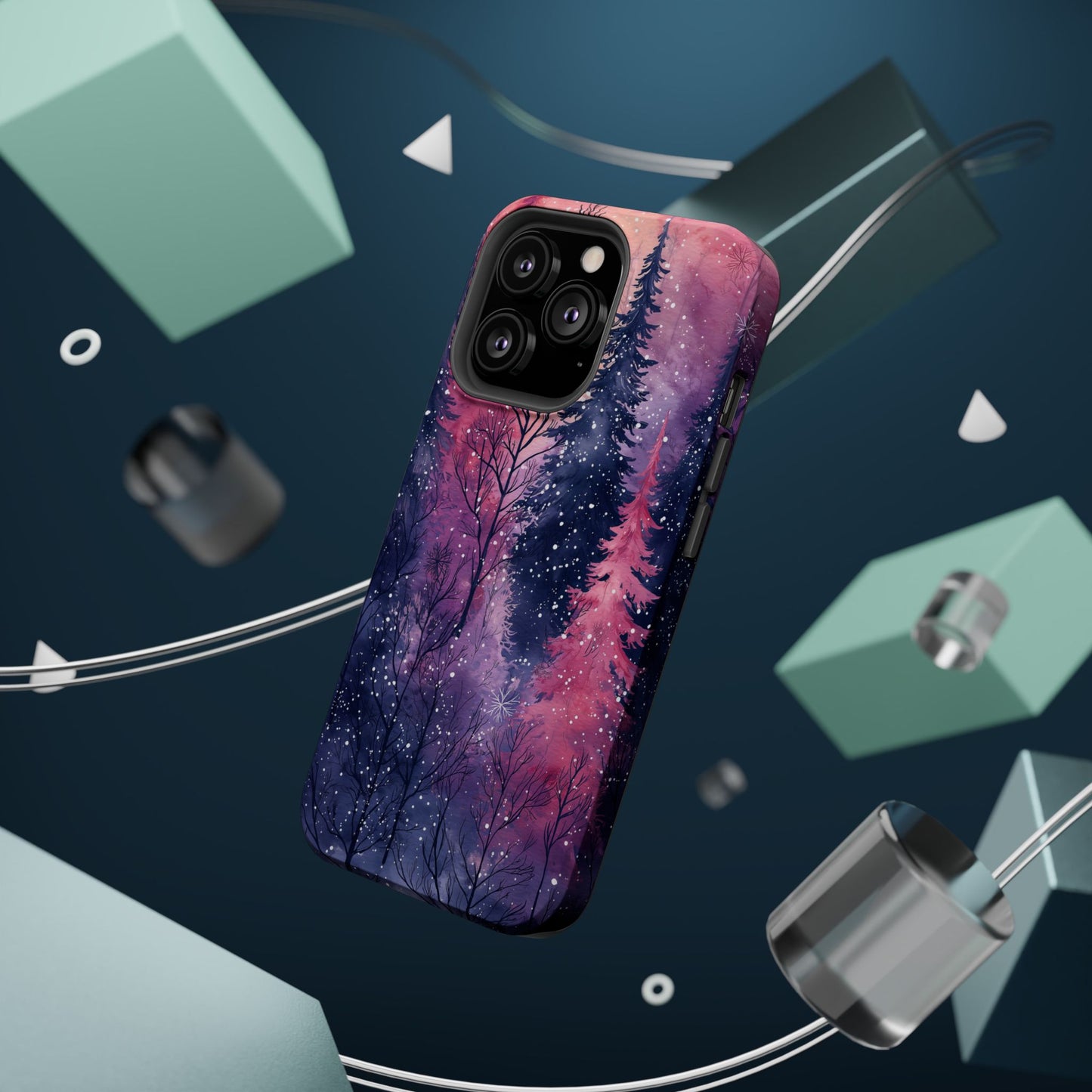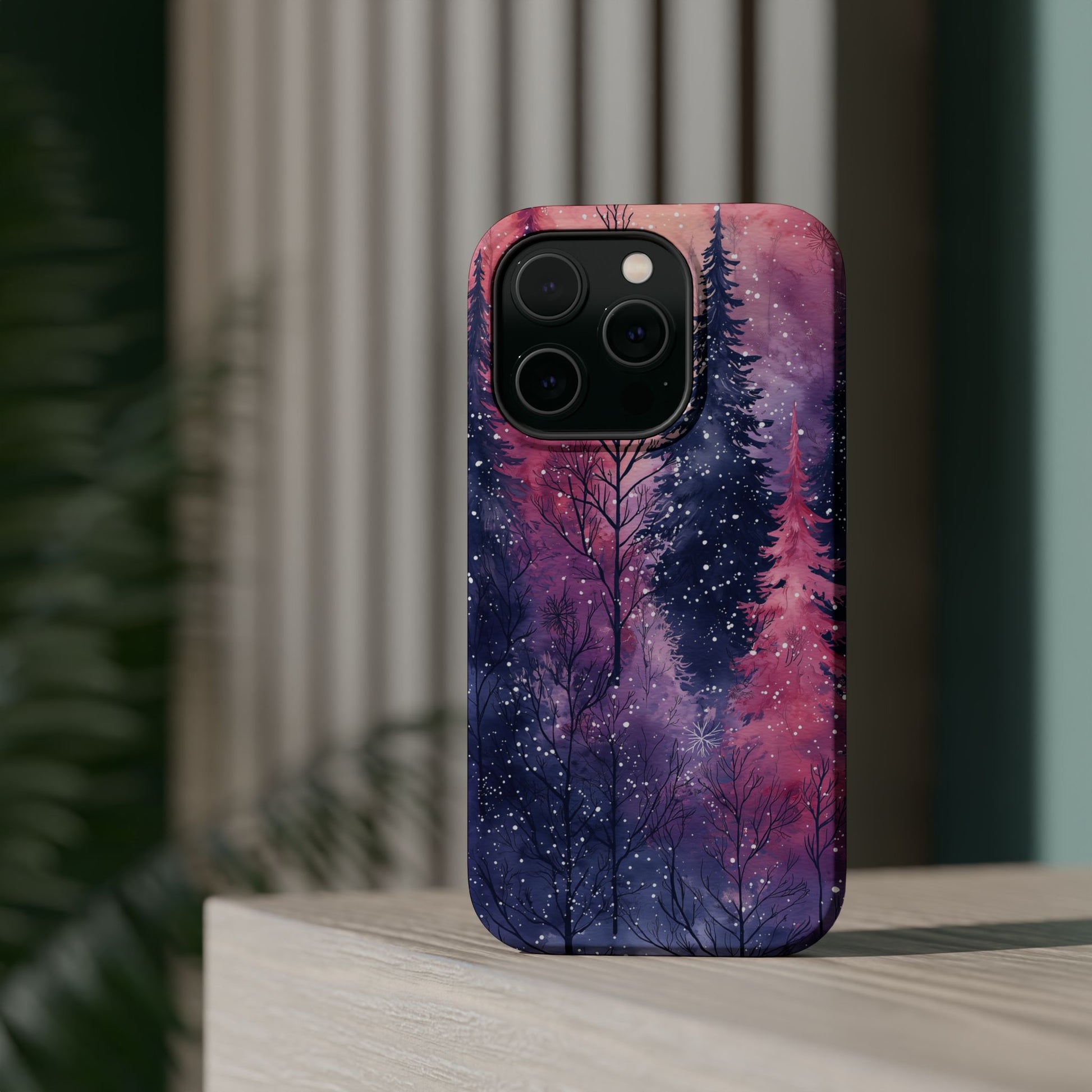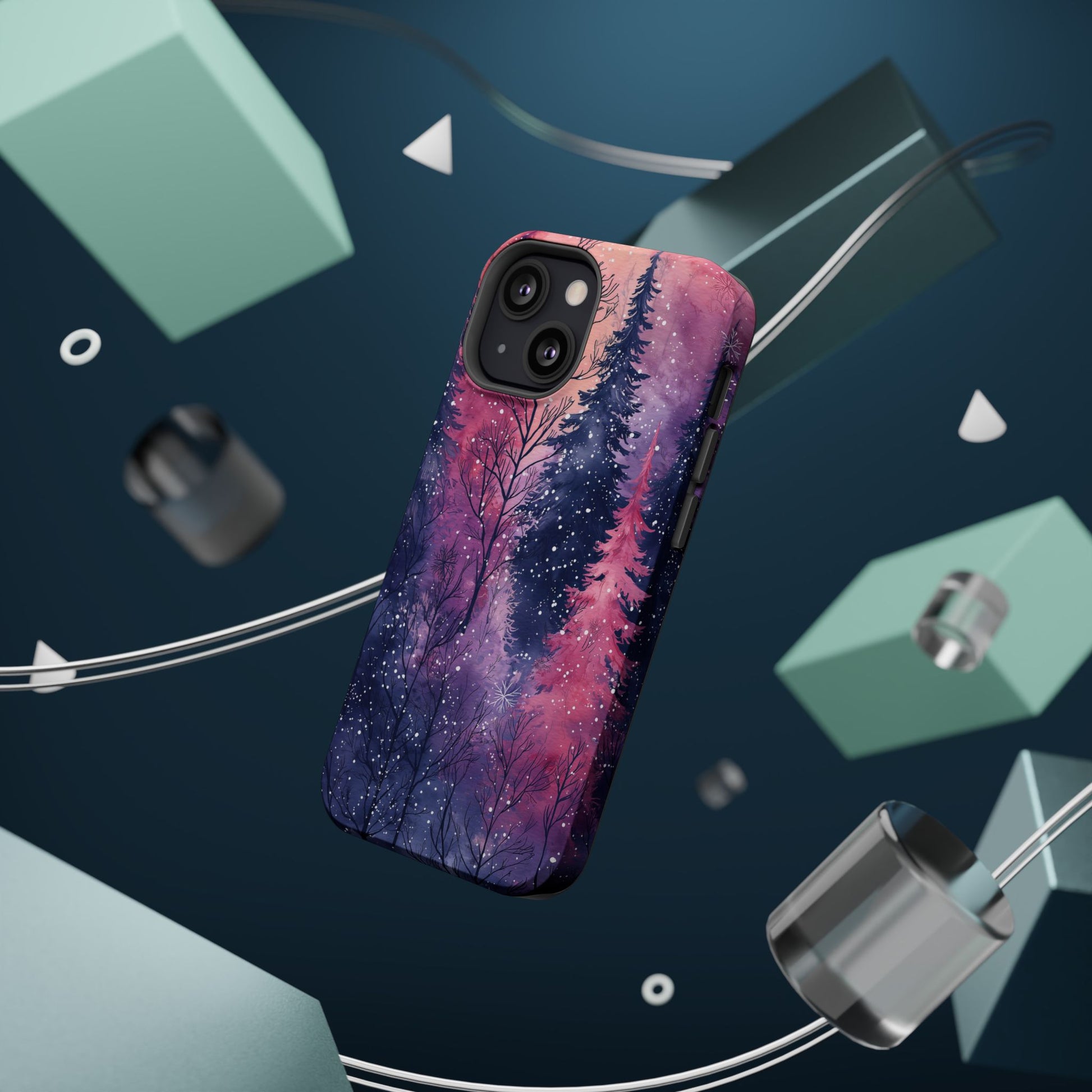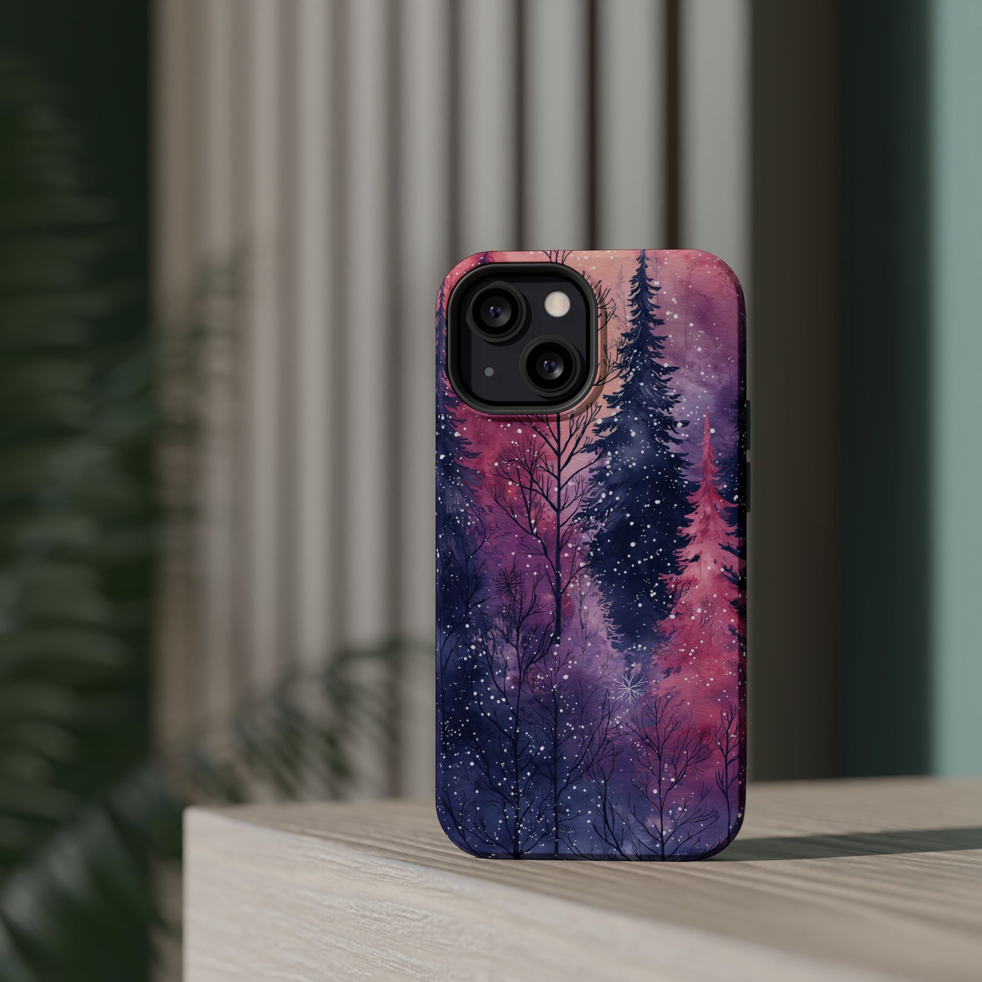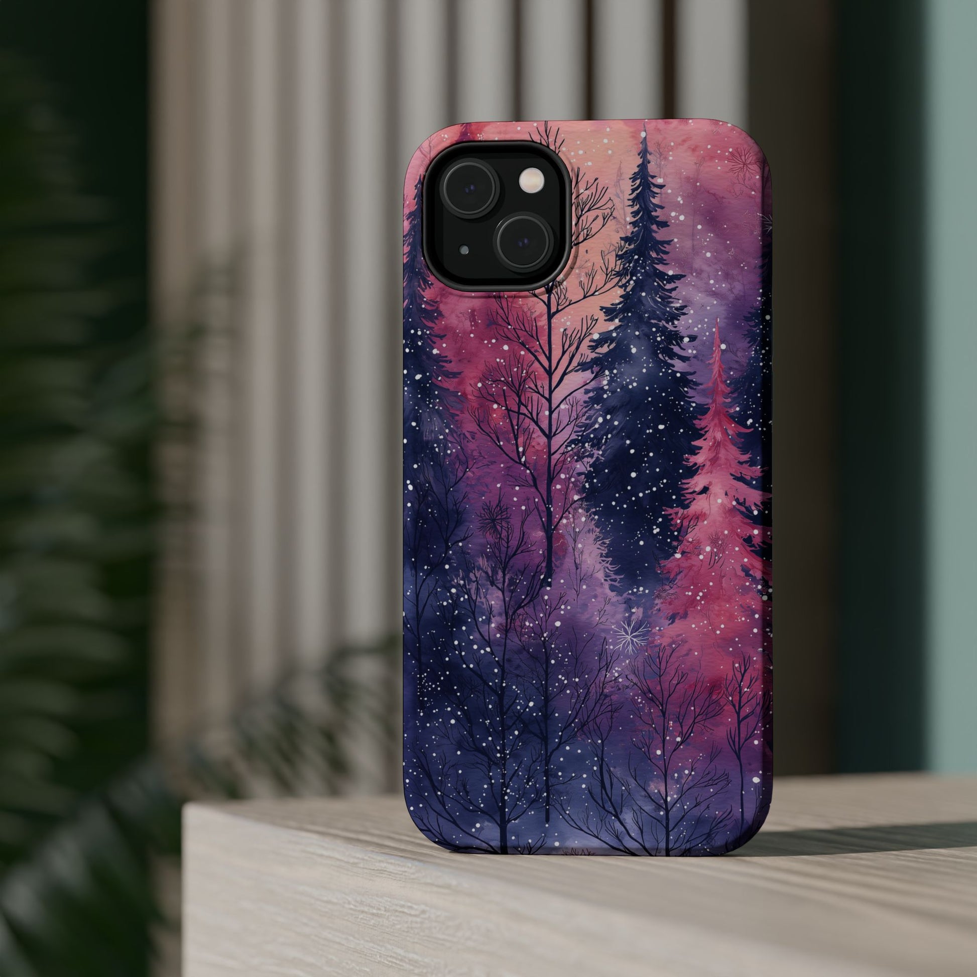 Bring the breathtaking beauty of a winter sunset to your phone with our Sunset Snow Forest MagSafe iPhone Case. Featuring an enchanting landscape of snow-covered trees in rich hues of pink, purple, and deep indigo, this case captures the magic of a twilight forest blanketed in snow. Perfect for nature lovers and dreamers, this case provides rugged protection in a slim, stylish profile. Its artistic, watercolor-inspired design adds a splash of winter romance to your phone, making it a unique accessory you'll love showing off.