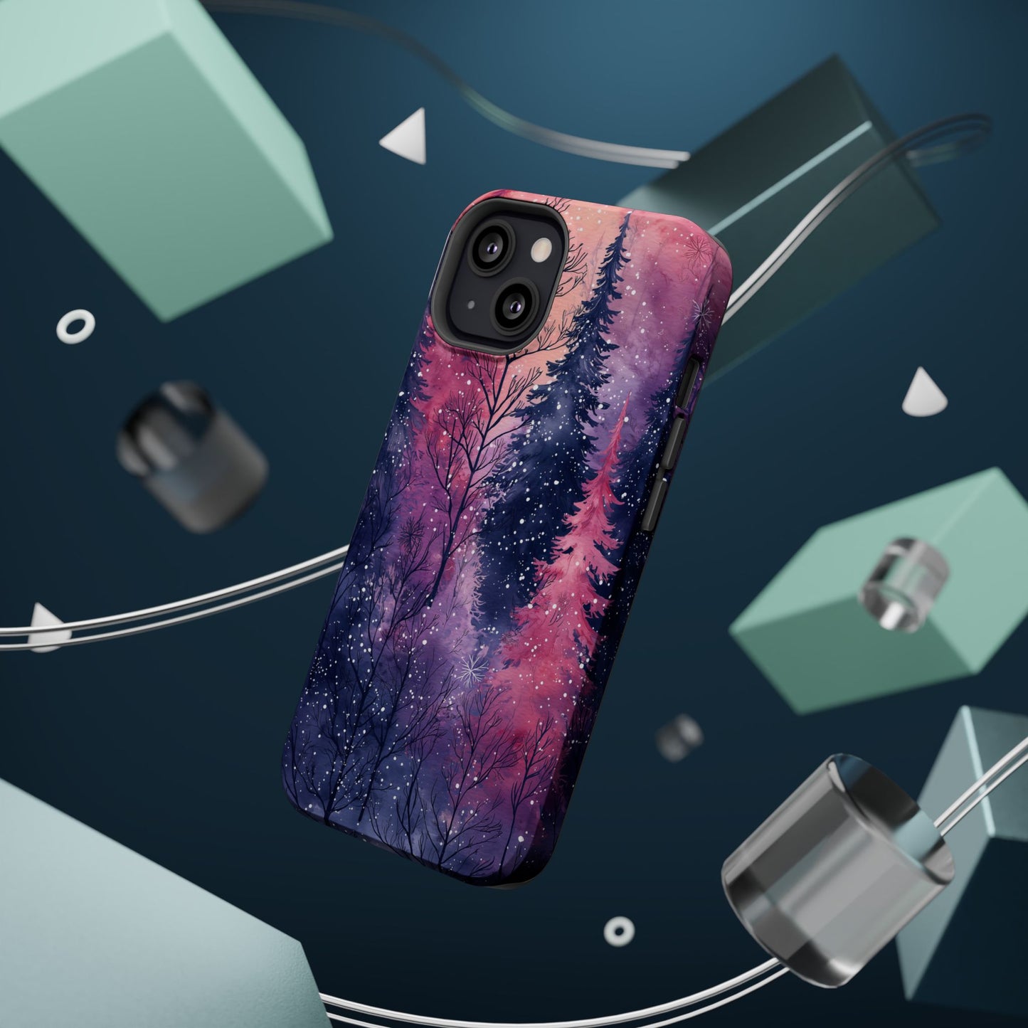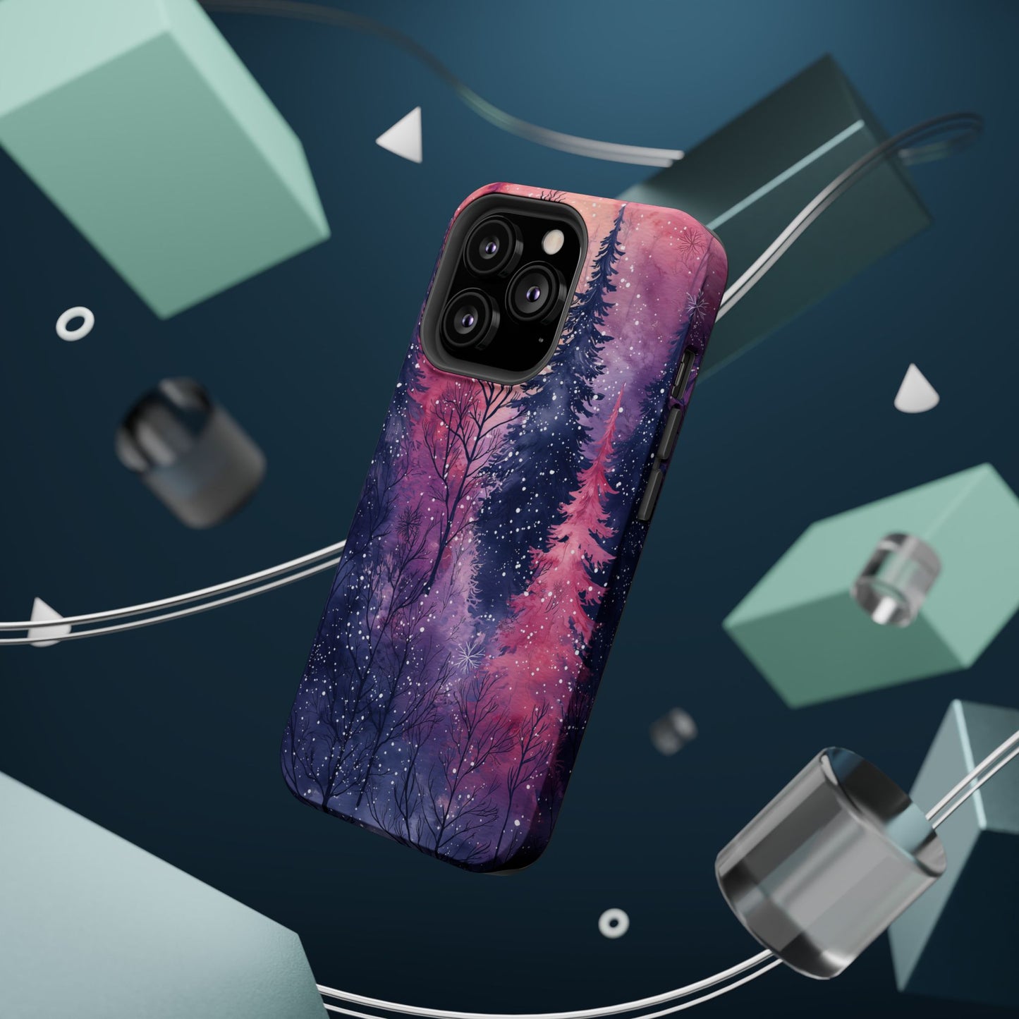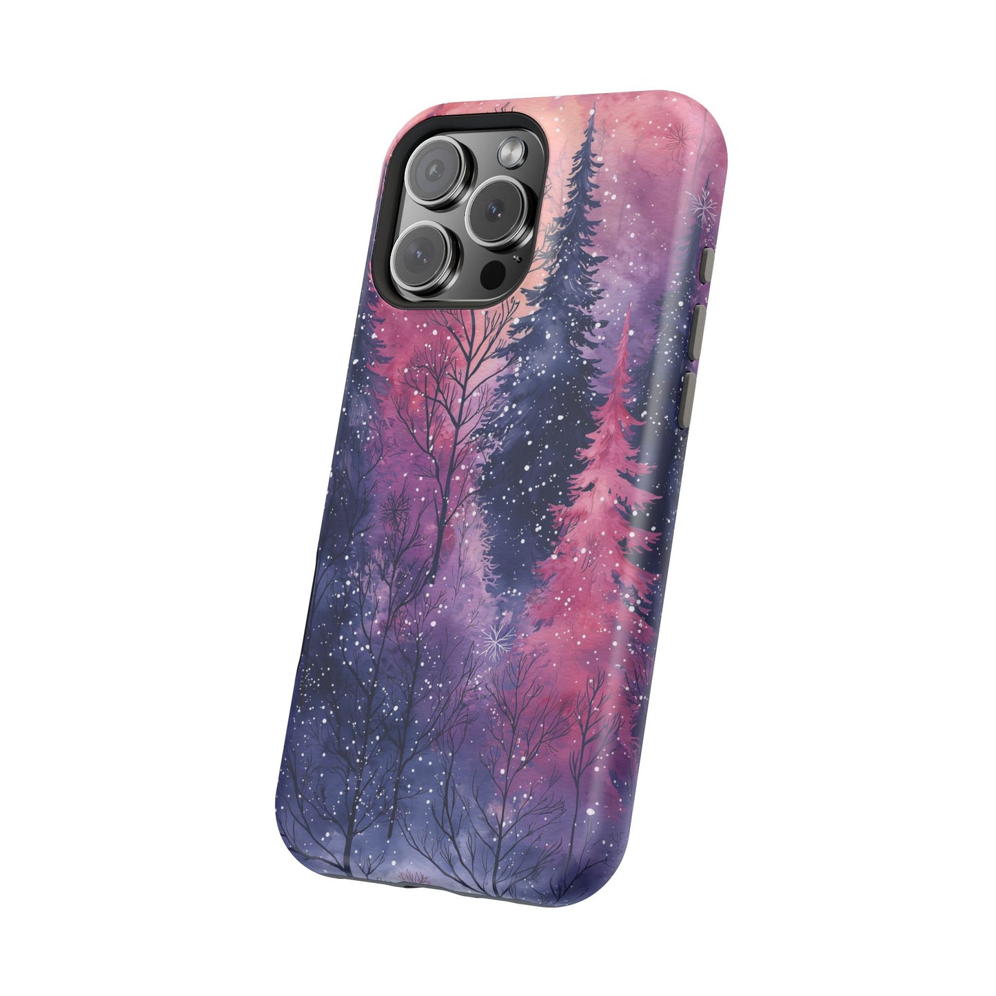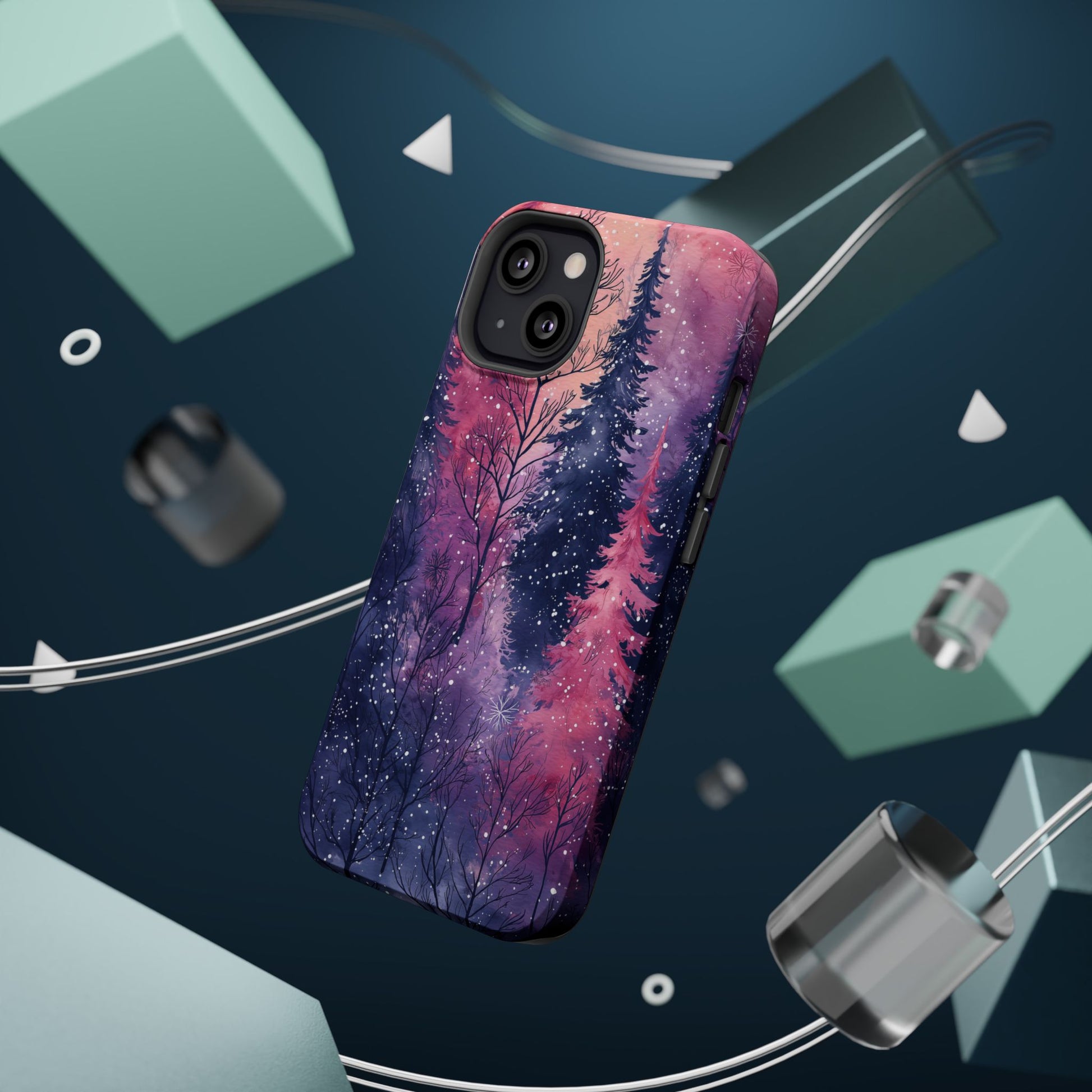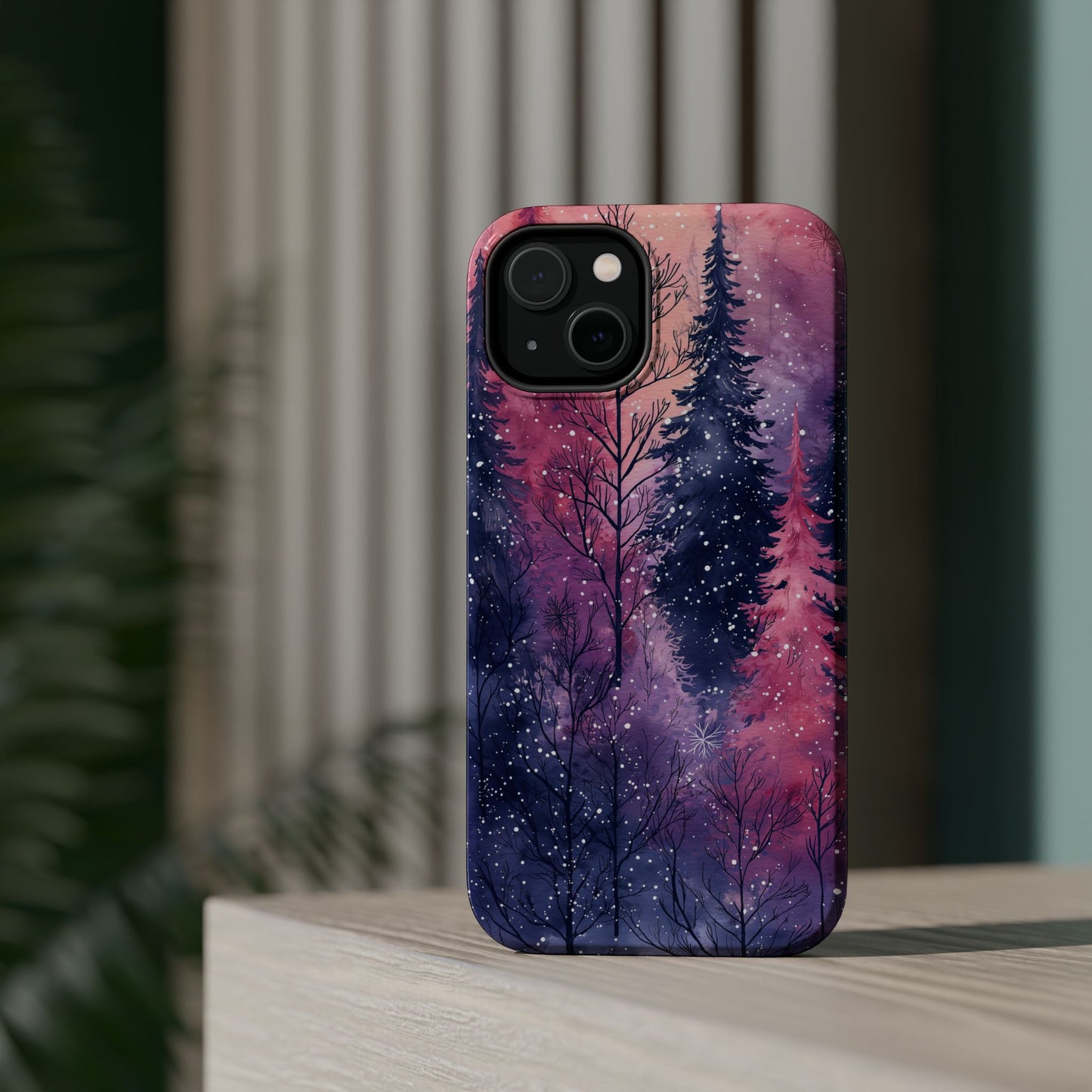 Bring the breathtaking beauty of a winter sunset to your phone with our Sunset Snow Forest MagSafe iPhone Case. Featuring an enchanting landscape of snow-covered trees in rich hues of pink, purple, and deep indigo, this case captures the magic of a twilight forest blanketed in snow. Perfect for nature lovers and dreamers, this case provides rugged protection in a slim, stylish profile. Its artistic, watercolor-inspired design adds a splash of winter romance to your phone, making it a unique accessory you'll love showing off.