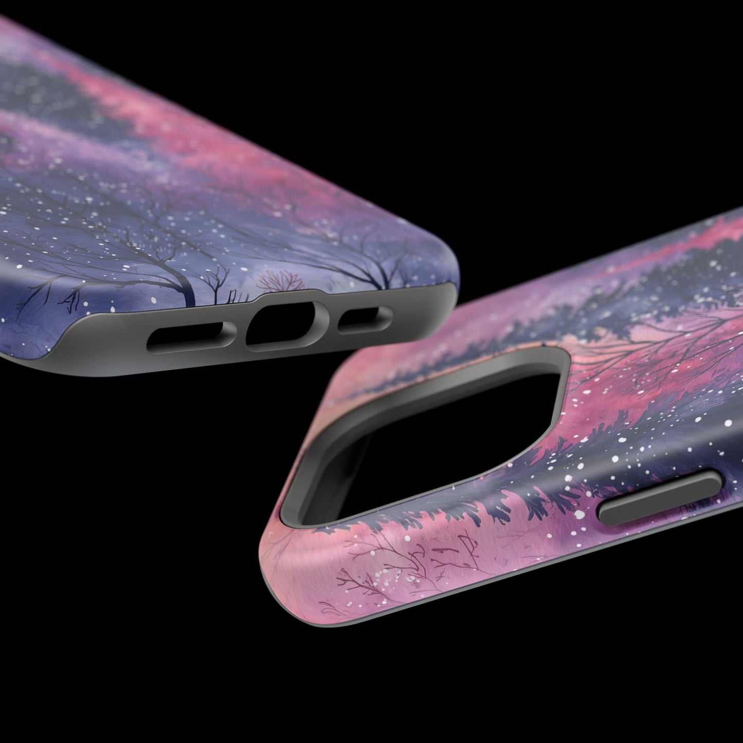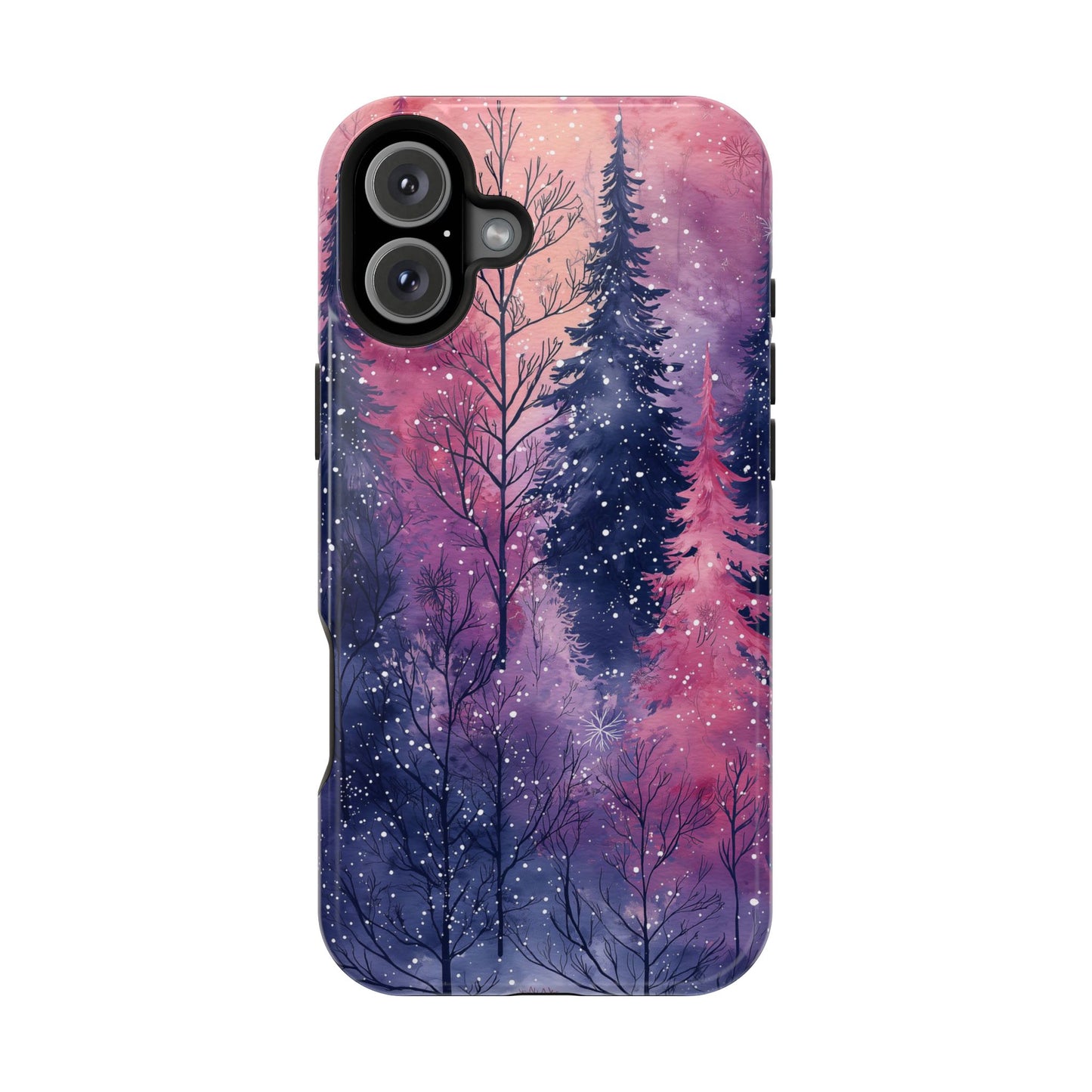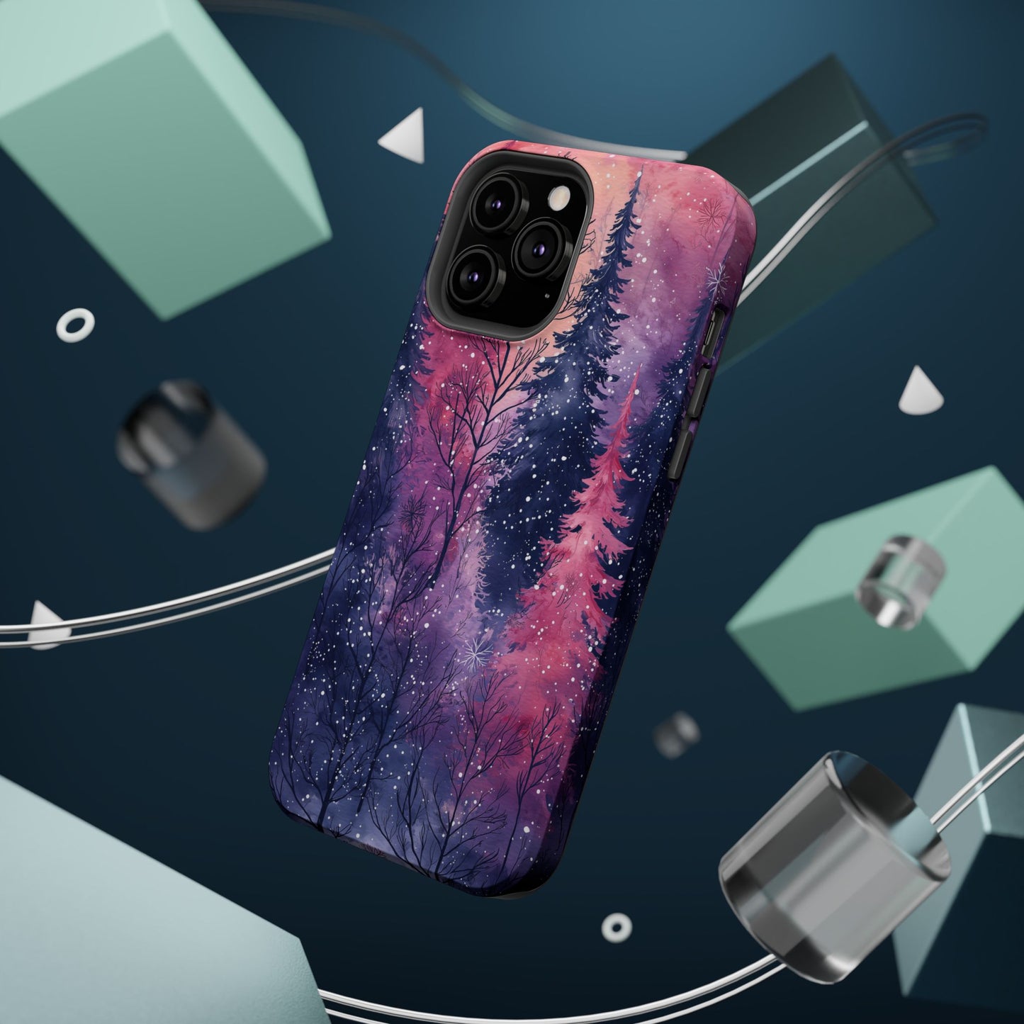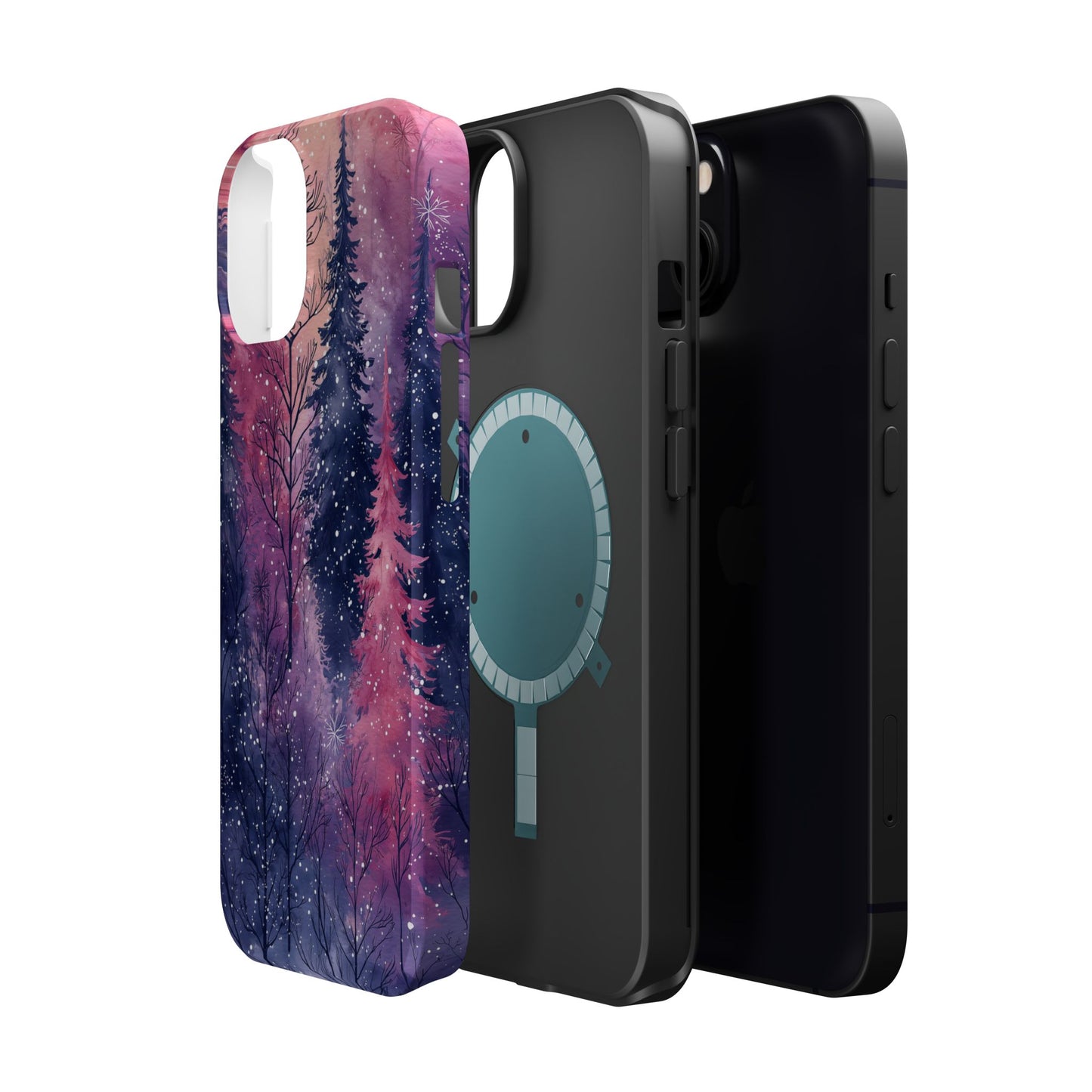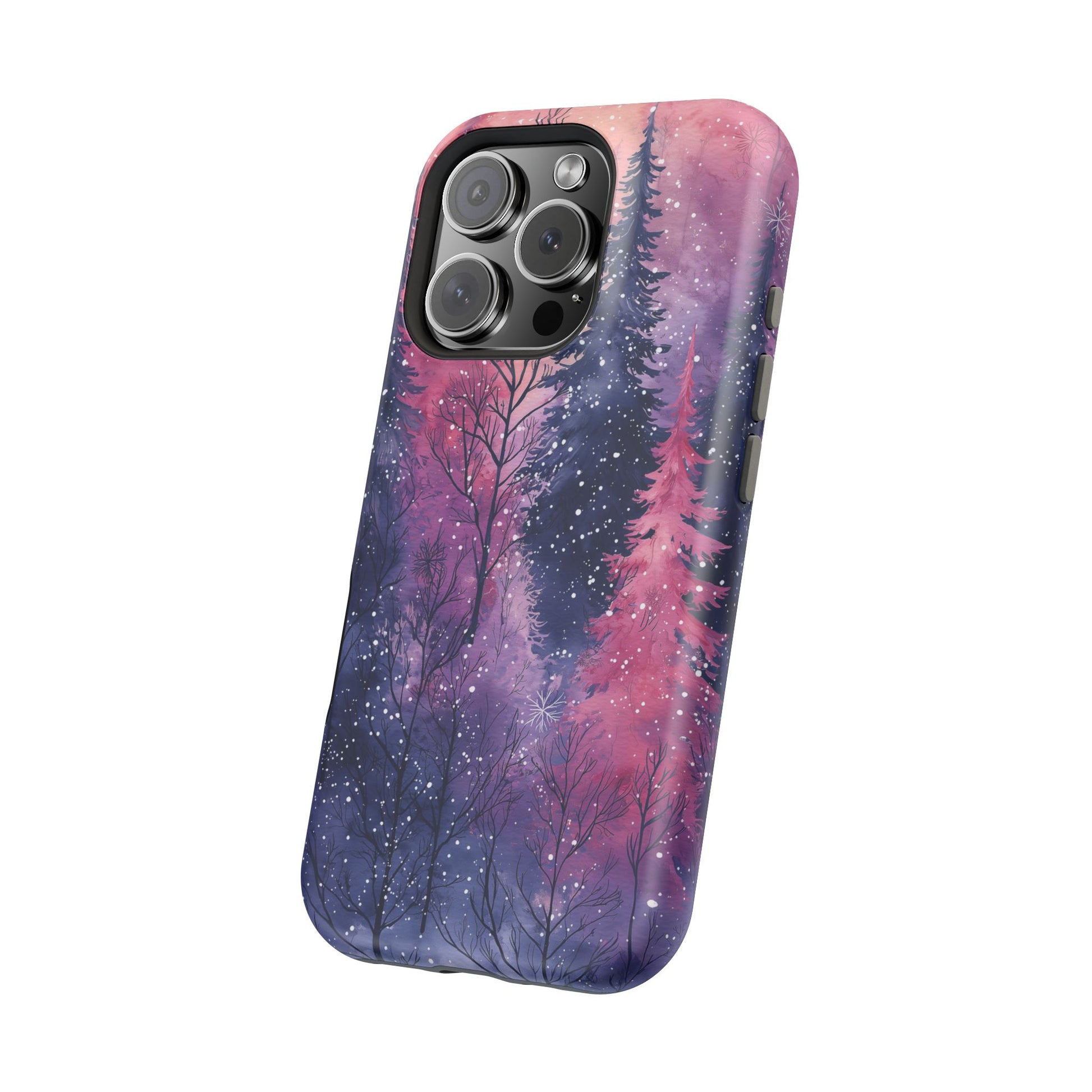 Bring the breathtaking beauty of a winter sunset to your phone with our Sunset Snow Forest MagSafe iPhone Case. Featuring an enchanting landscape of snow-covered trees in rich hues of pink, purple, and deep indigo, this case captures the magic of a twilight forest blanketed in snow. Perfect for nature lovers and dreamers, this case provides rugged protection in a slim, stylish profile. Its artistic, watercolor-inspired design adds a splash of winter romance to your phone, making it a unique accessory you'll love showing off.
