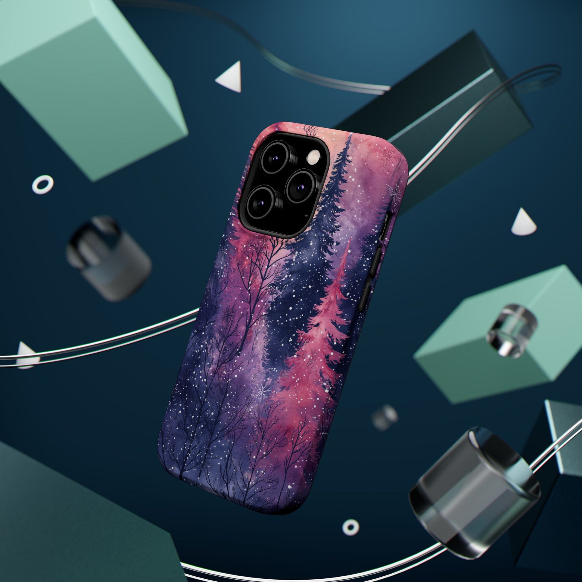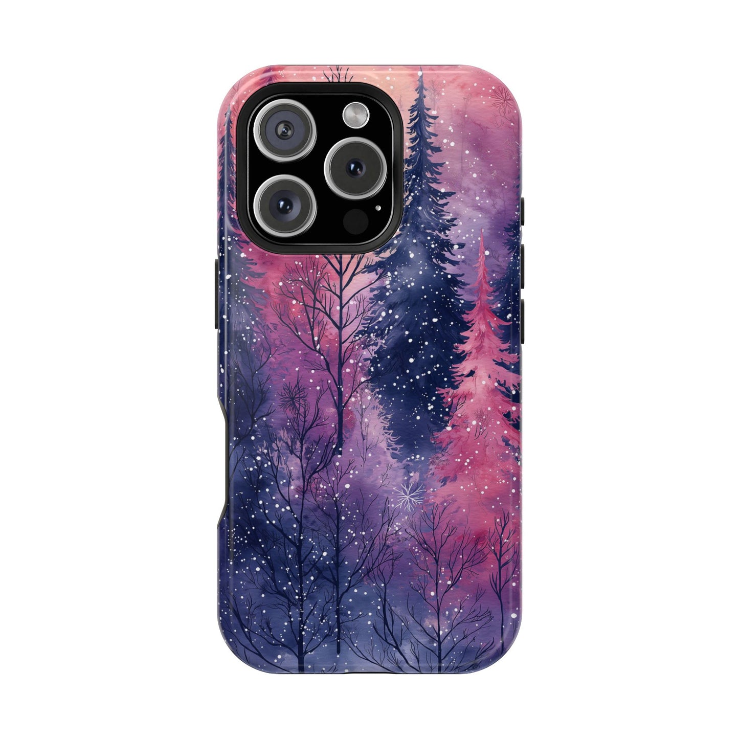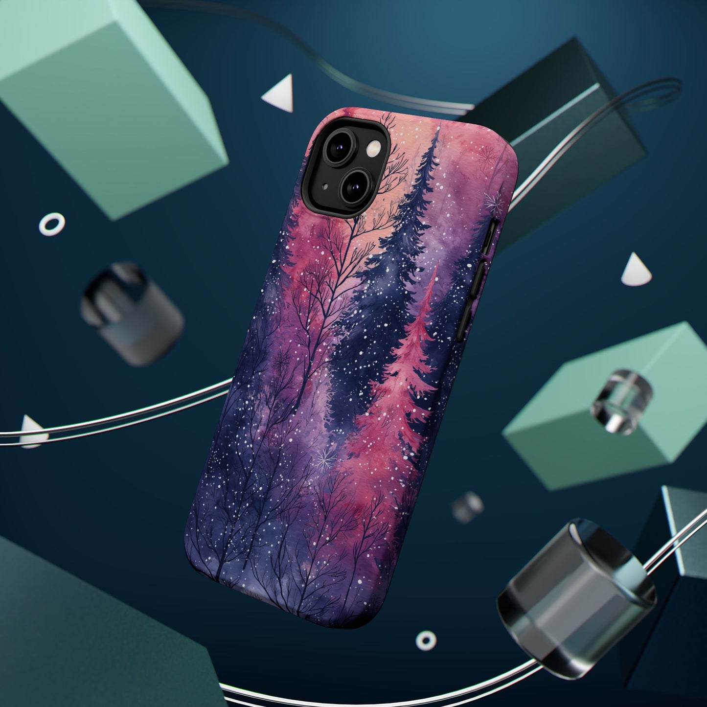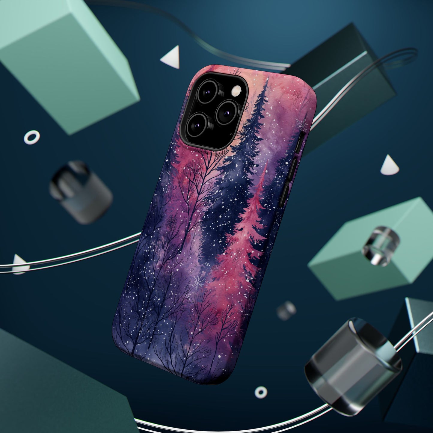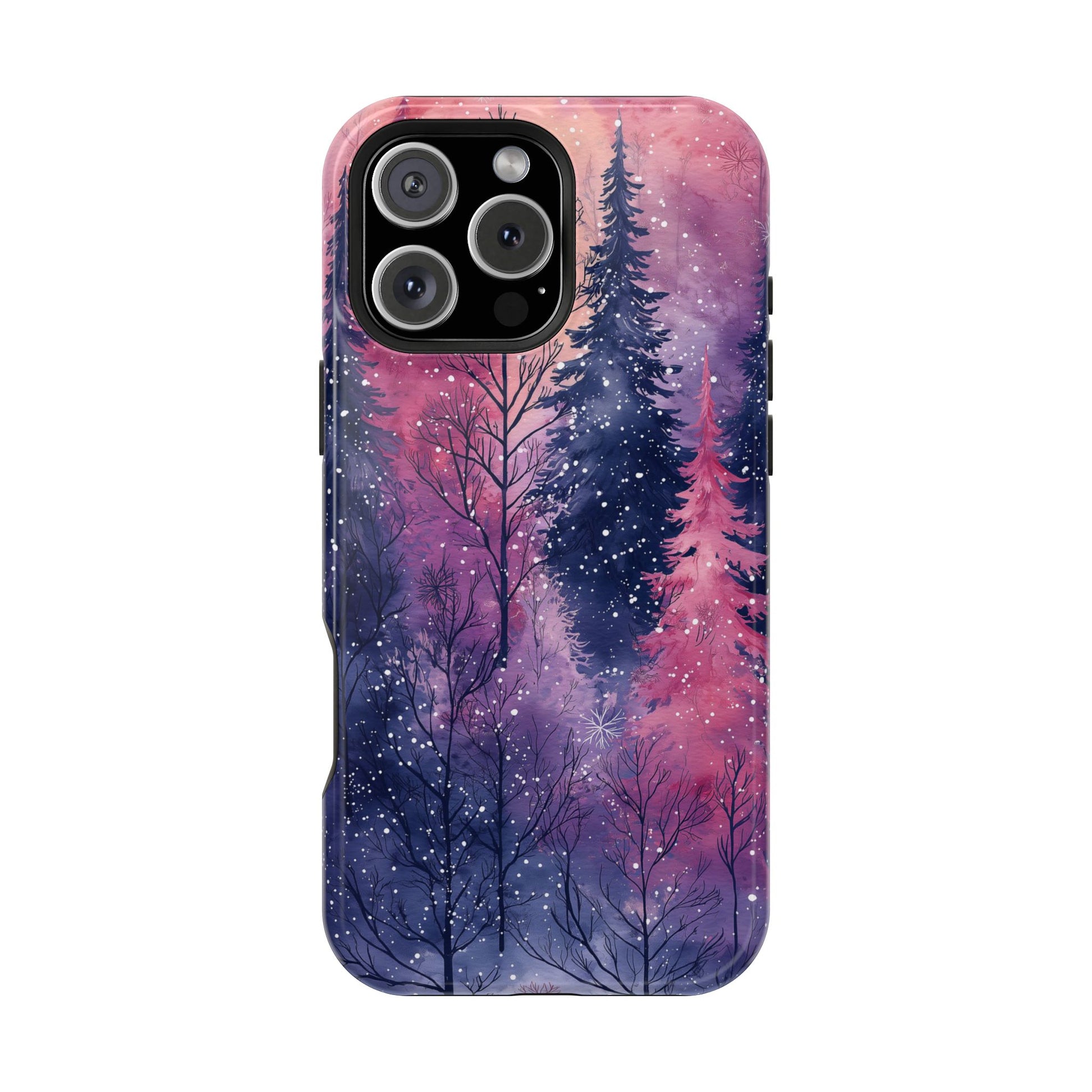 Bring the breathtaking beauty of a winter sunset to your phone with our Sunset Snow Forest MagSafe iPhone Case. Featuring an enchanting landscape of snow-covered trees in rich hues of pink, purple, and deep indigo, this case captures the magic of a twilight forest blanketed in snow. Perfect for nature lovers and dreamers, this case provides rugged protection in a slim, stylish profile. Its artistic, watercolor-inspired design adds a splash of winter romance to your phone, making it a unique accessory you'll love showing off.
