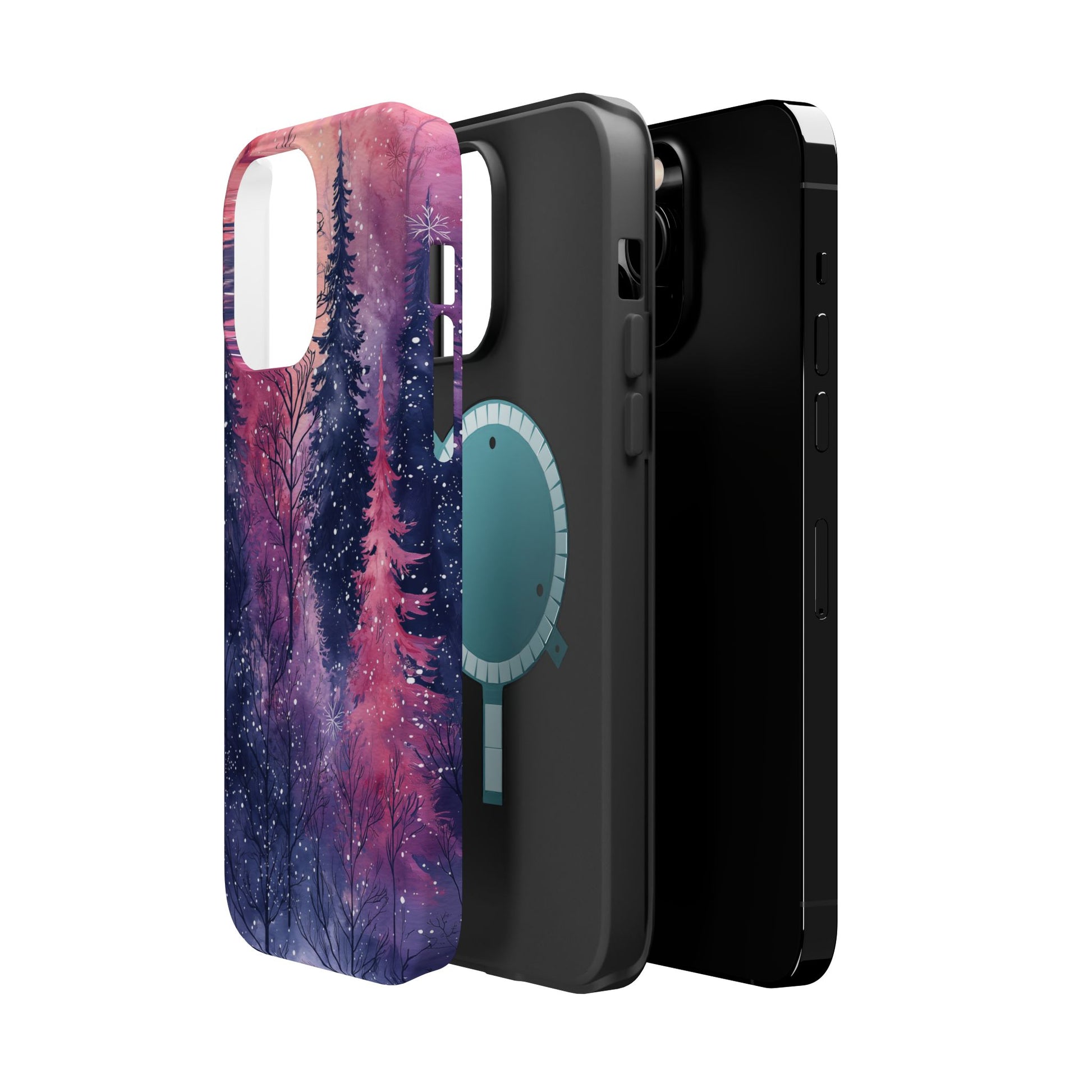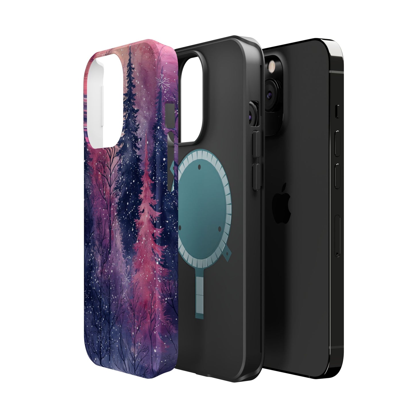 Bring the breathtaking beauty of a winter sunset to your phone with our Sunset Snow Forest MagSafe iPhone Case. Featuring an enchanting landscape of snow-covered trees in rich hues of pink, purple, and deep indigo, this case captures the magic of a twilight forest blanketed in snow. Perfect fo...