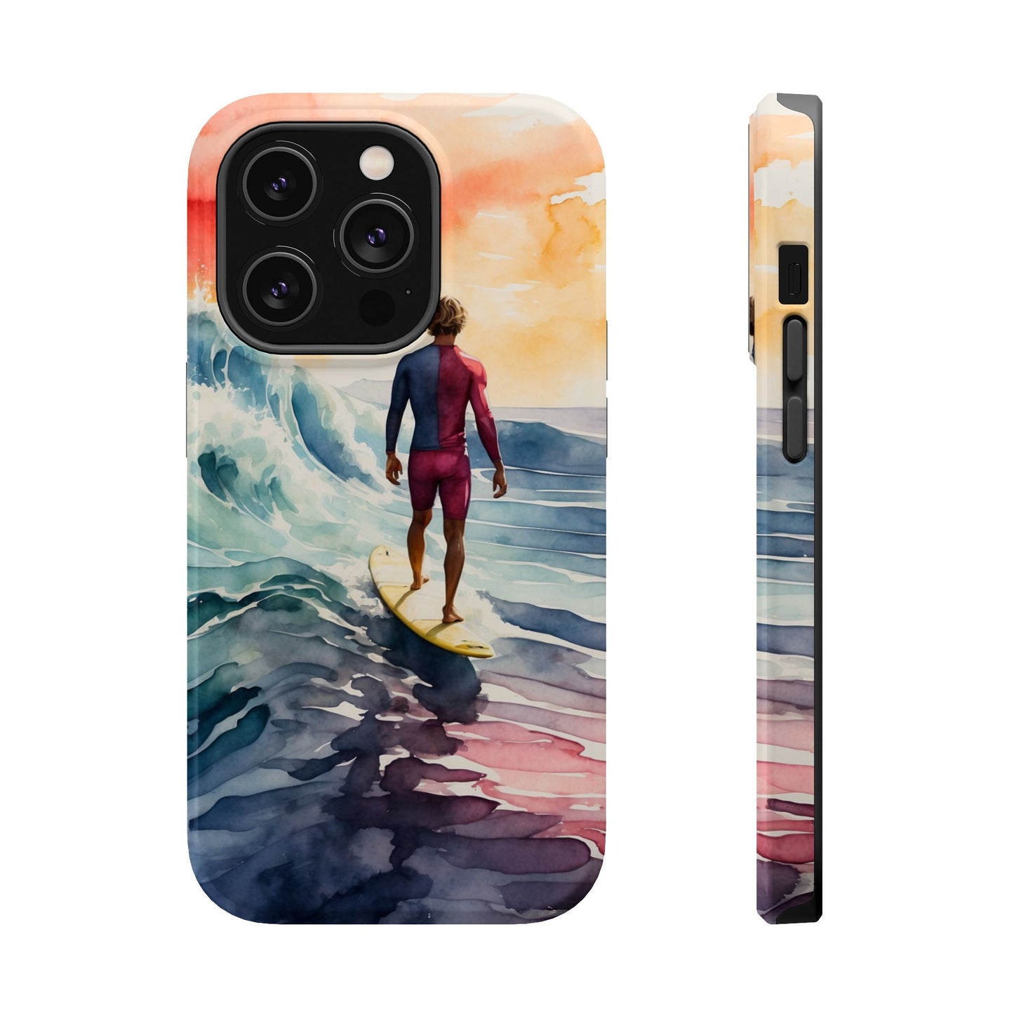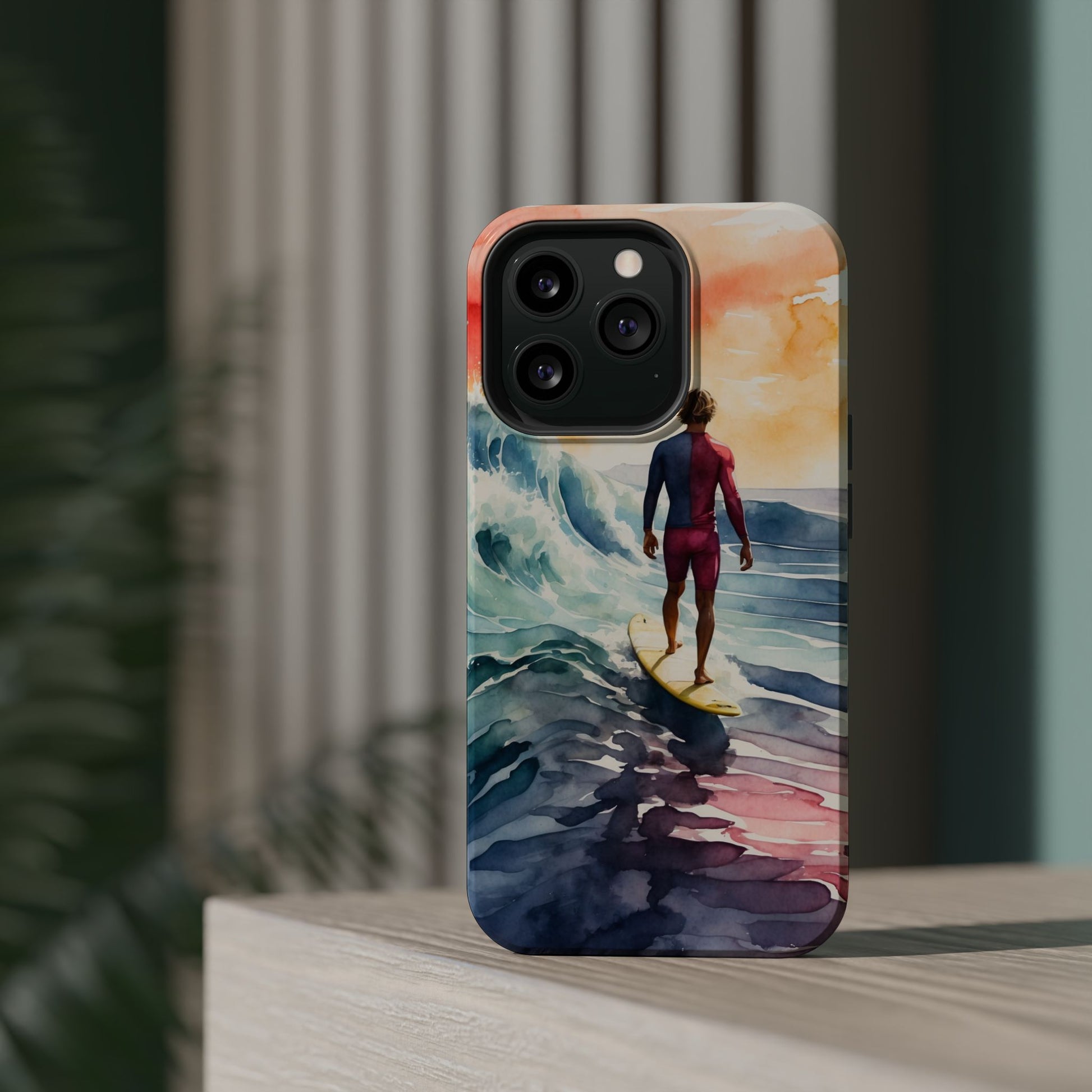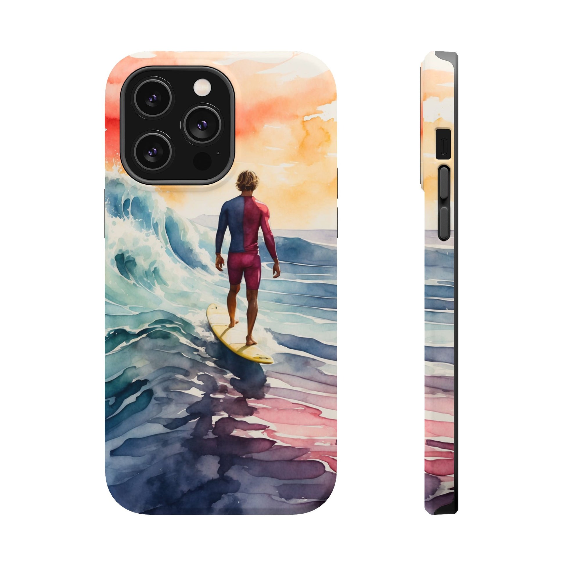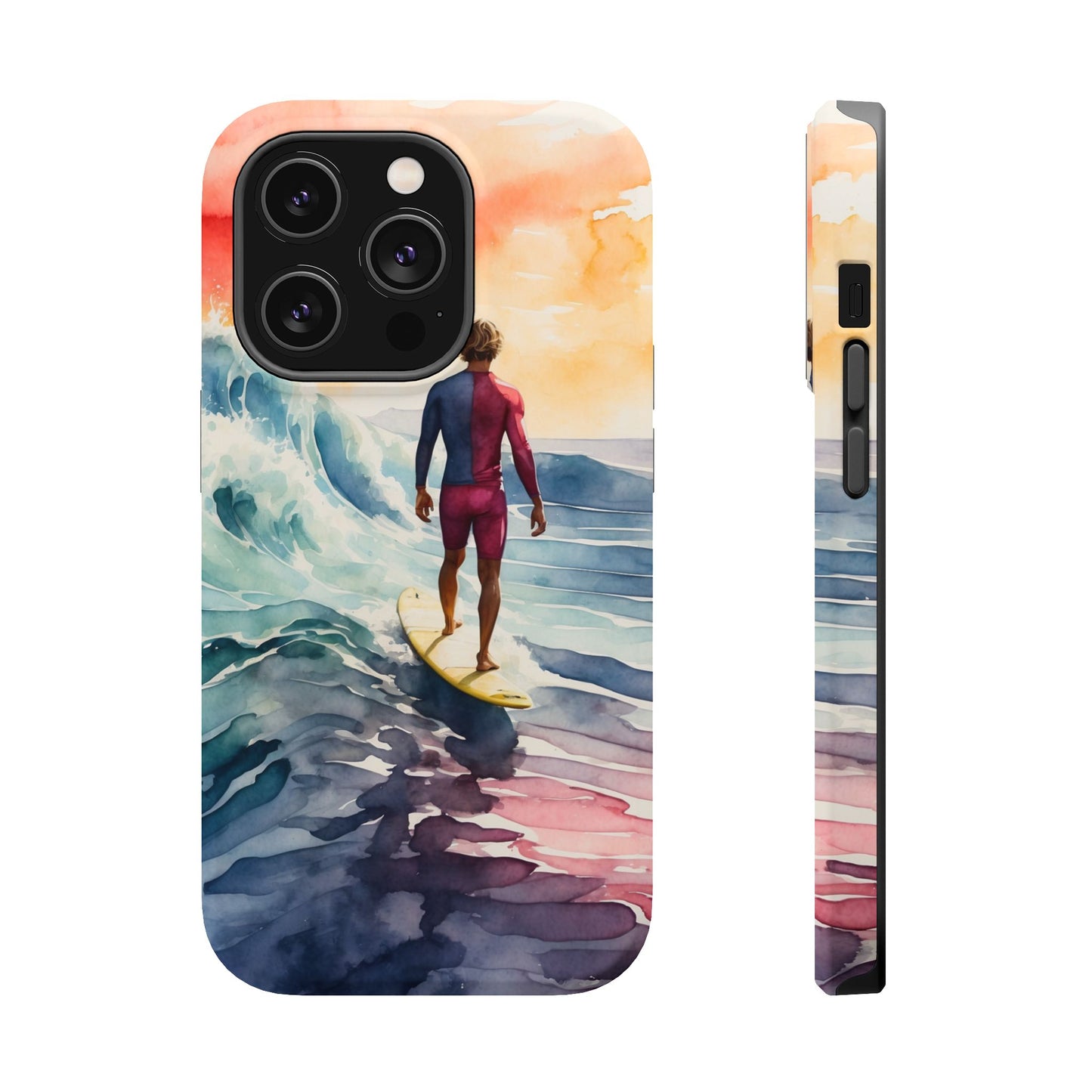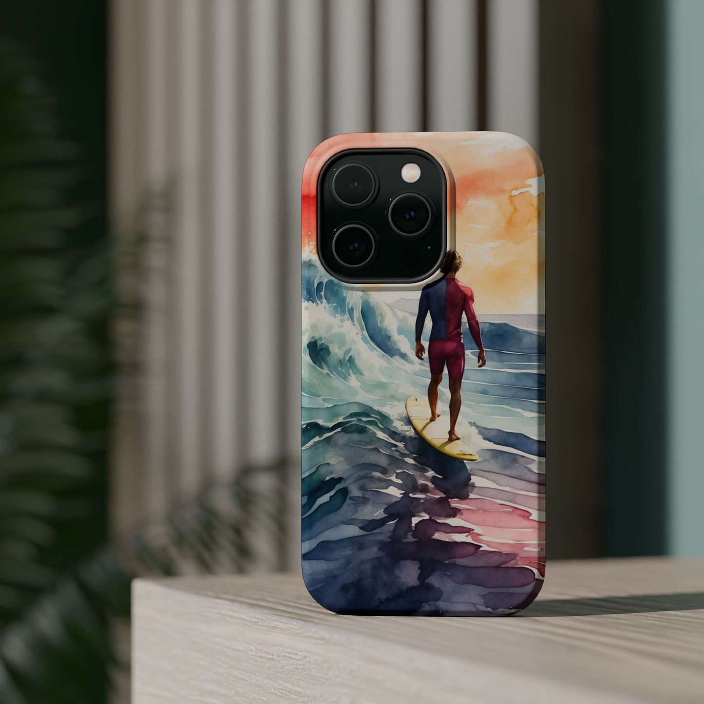Surfer’s Sunset Wave MagSafe iPhone Case – Vibrant Watercolor Design