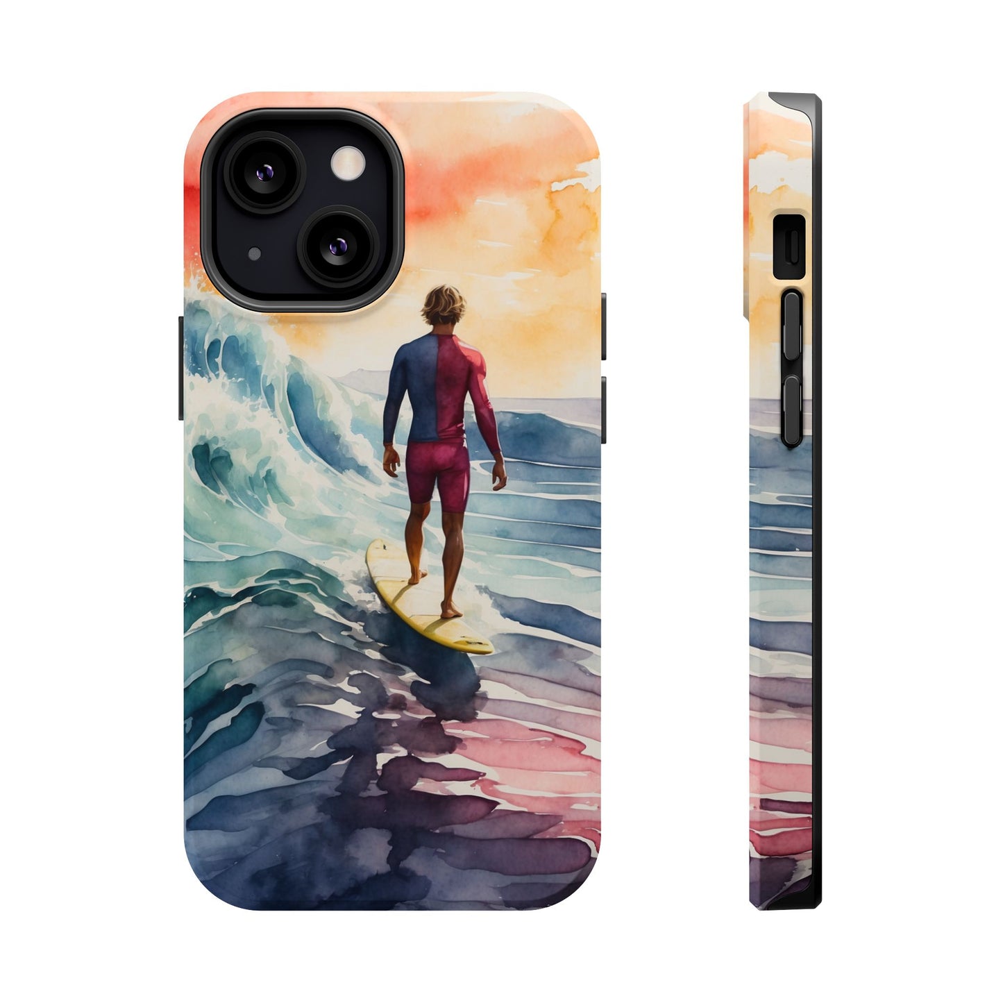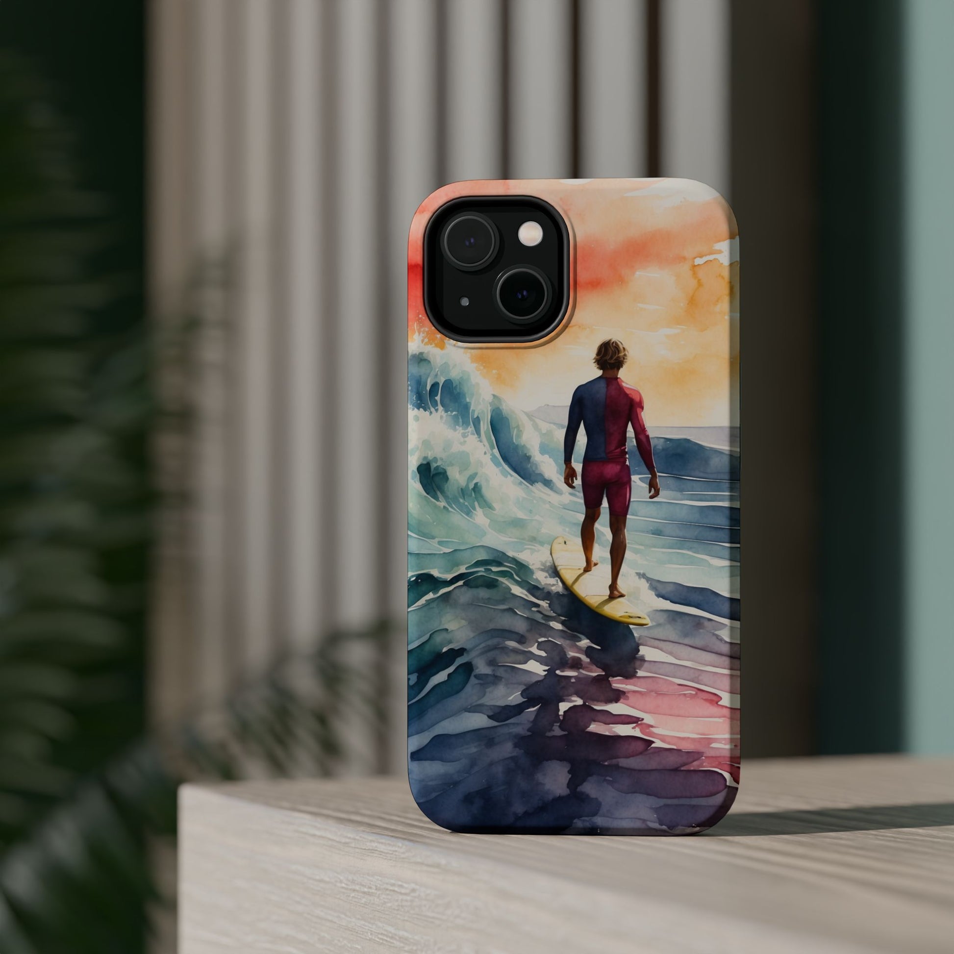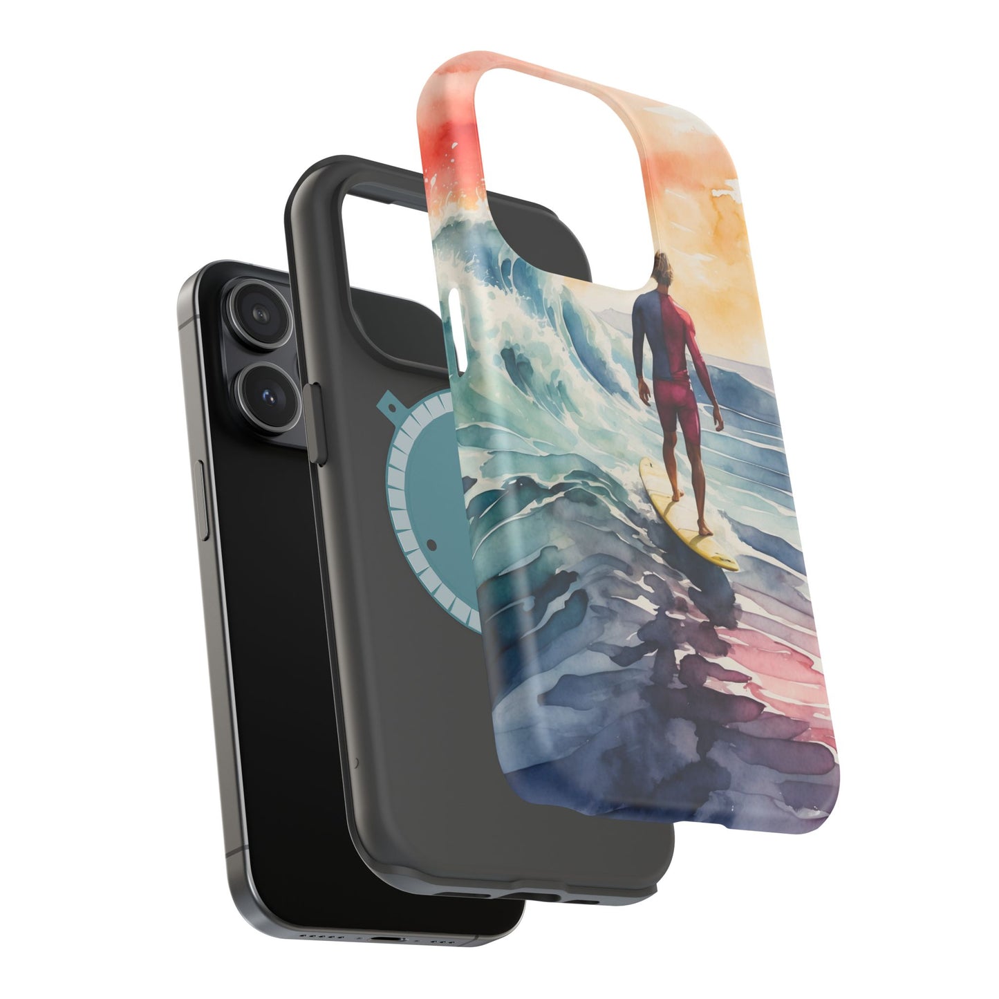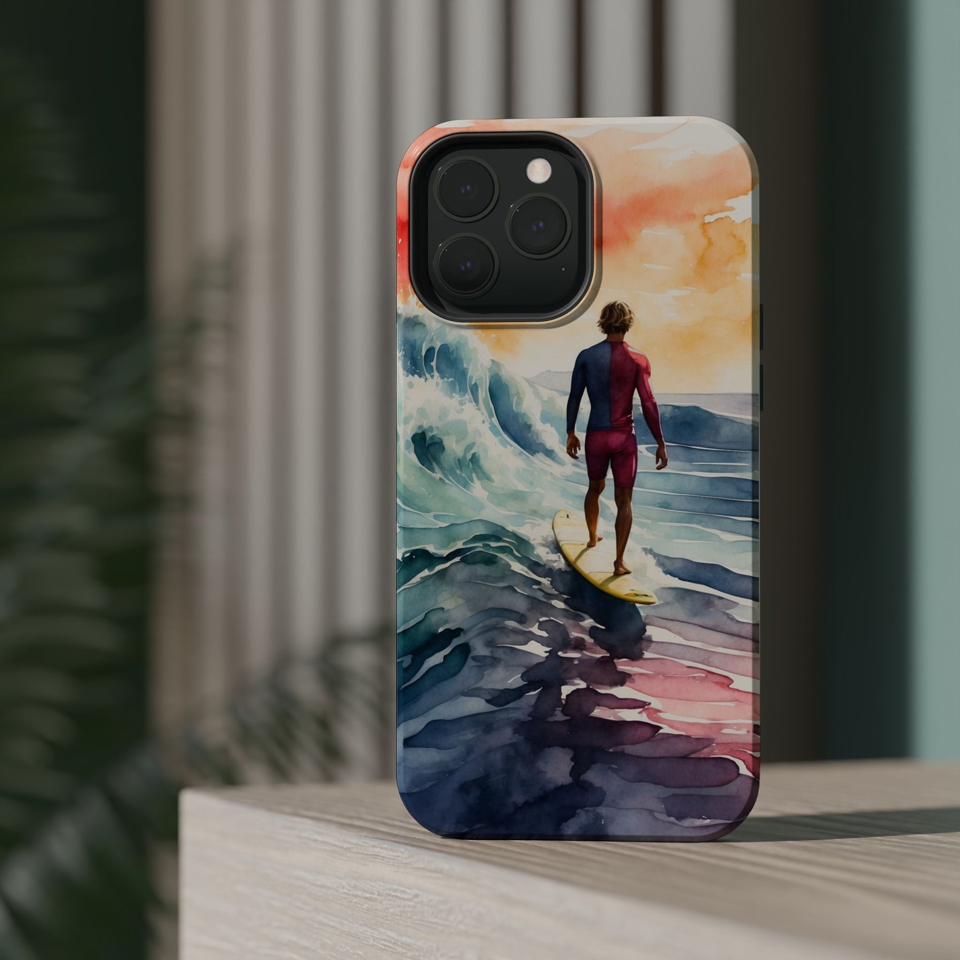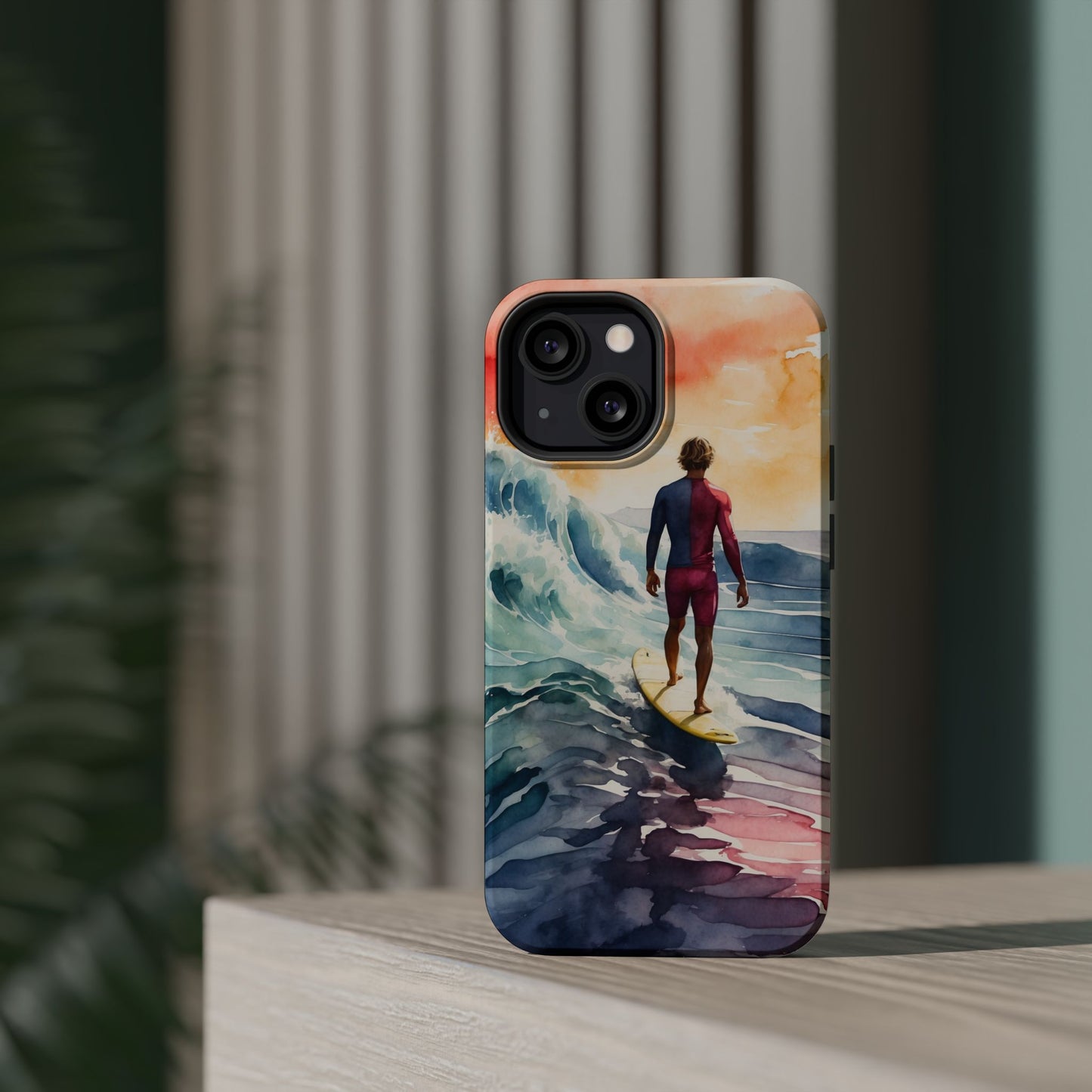 Surfer’s Sunset Wave MagSafe iPhone Case – Vibrant Watercolor Design