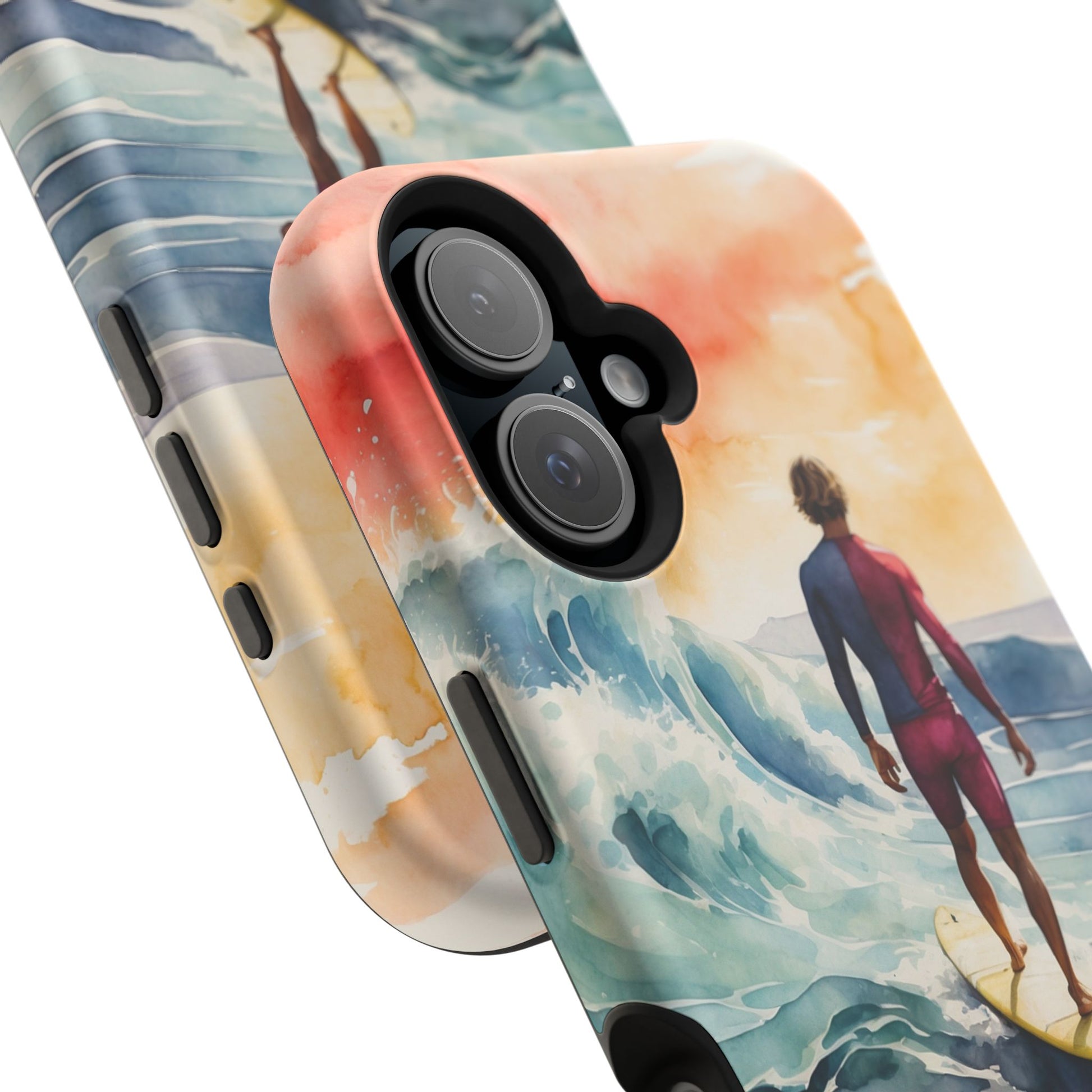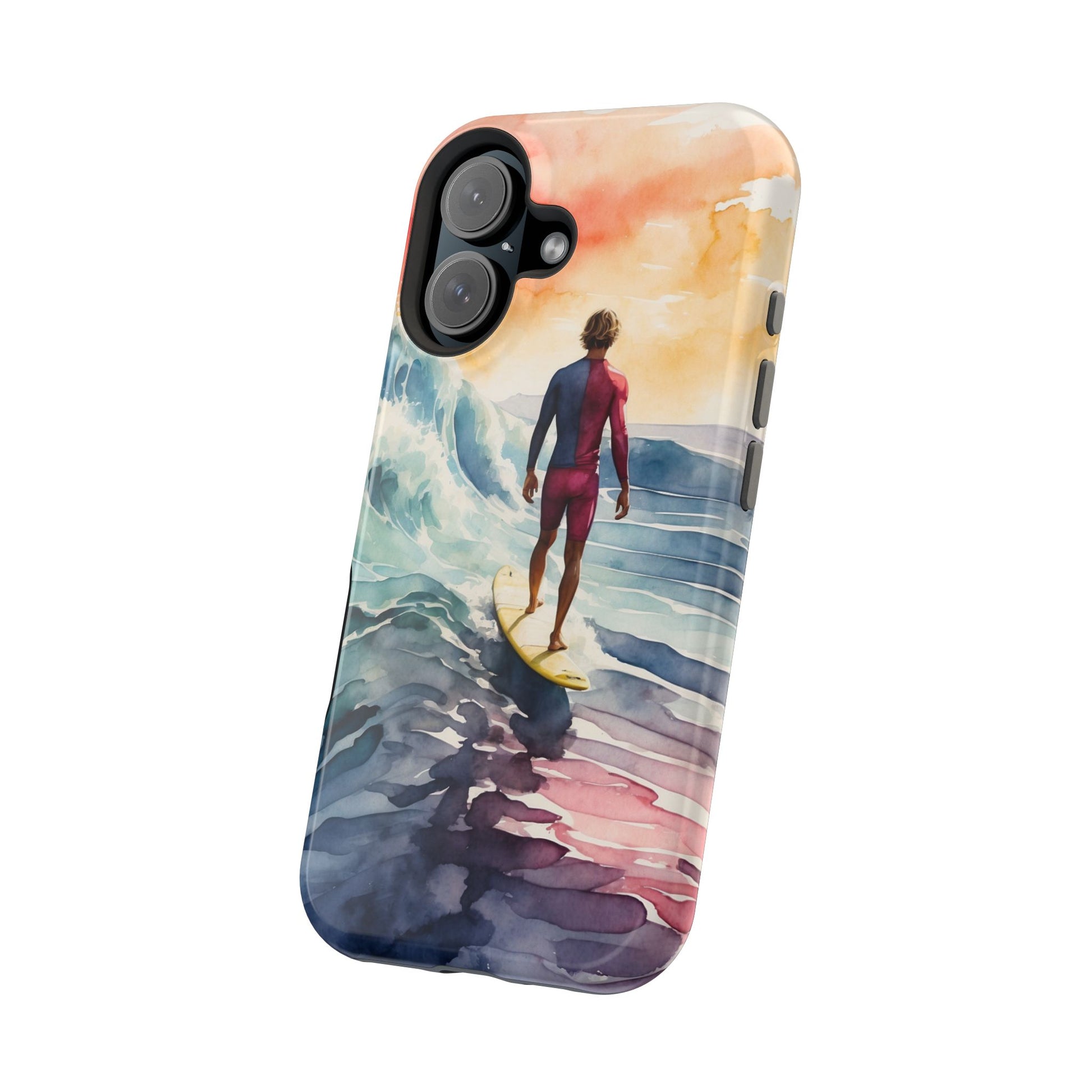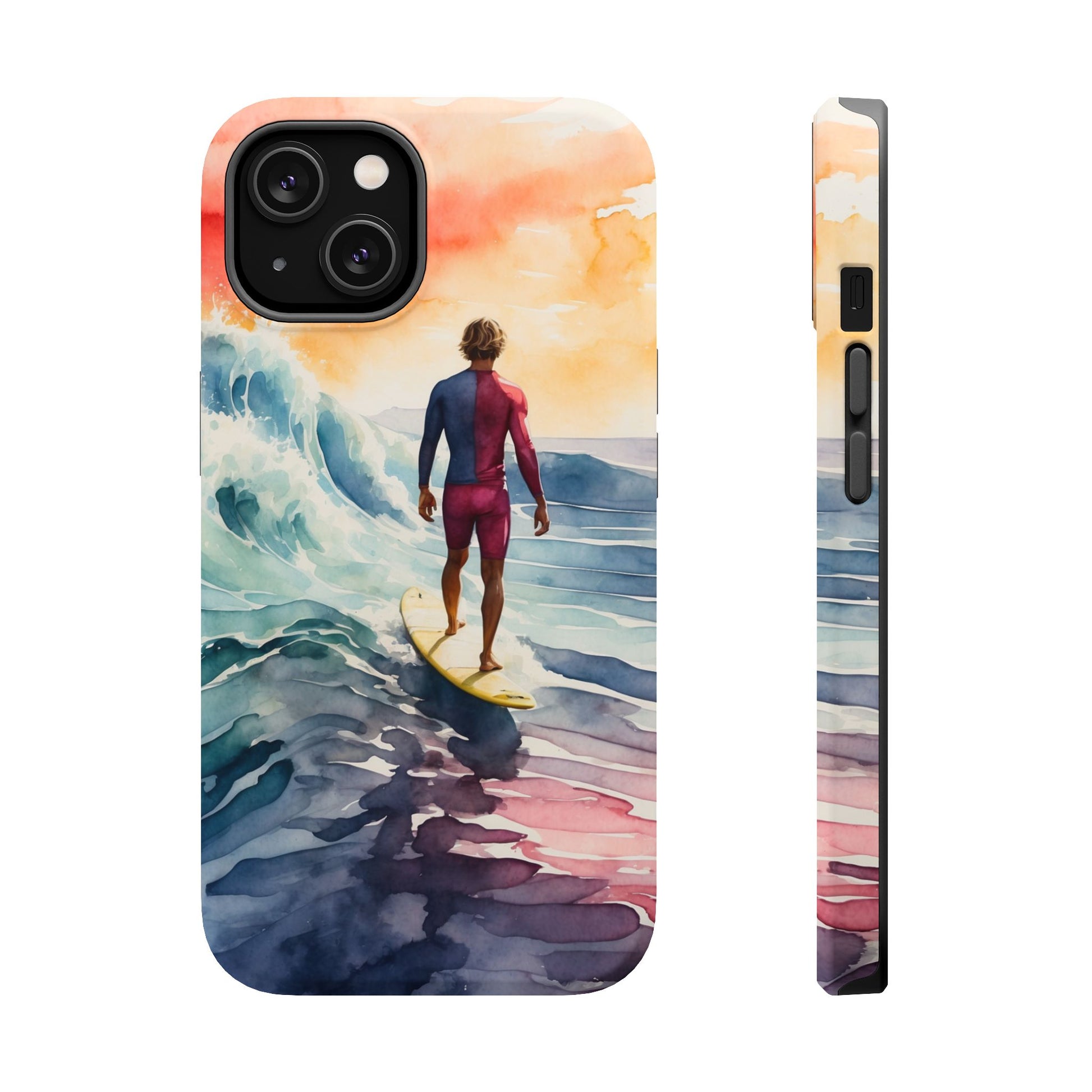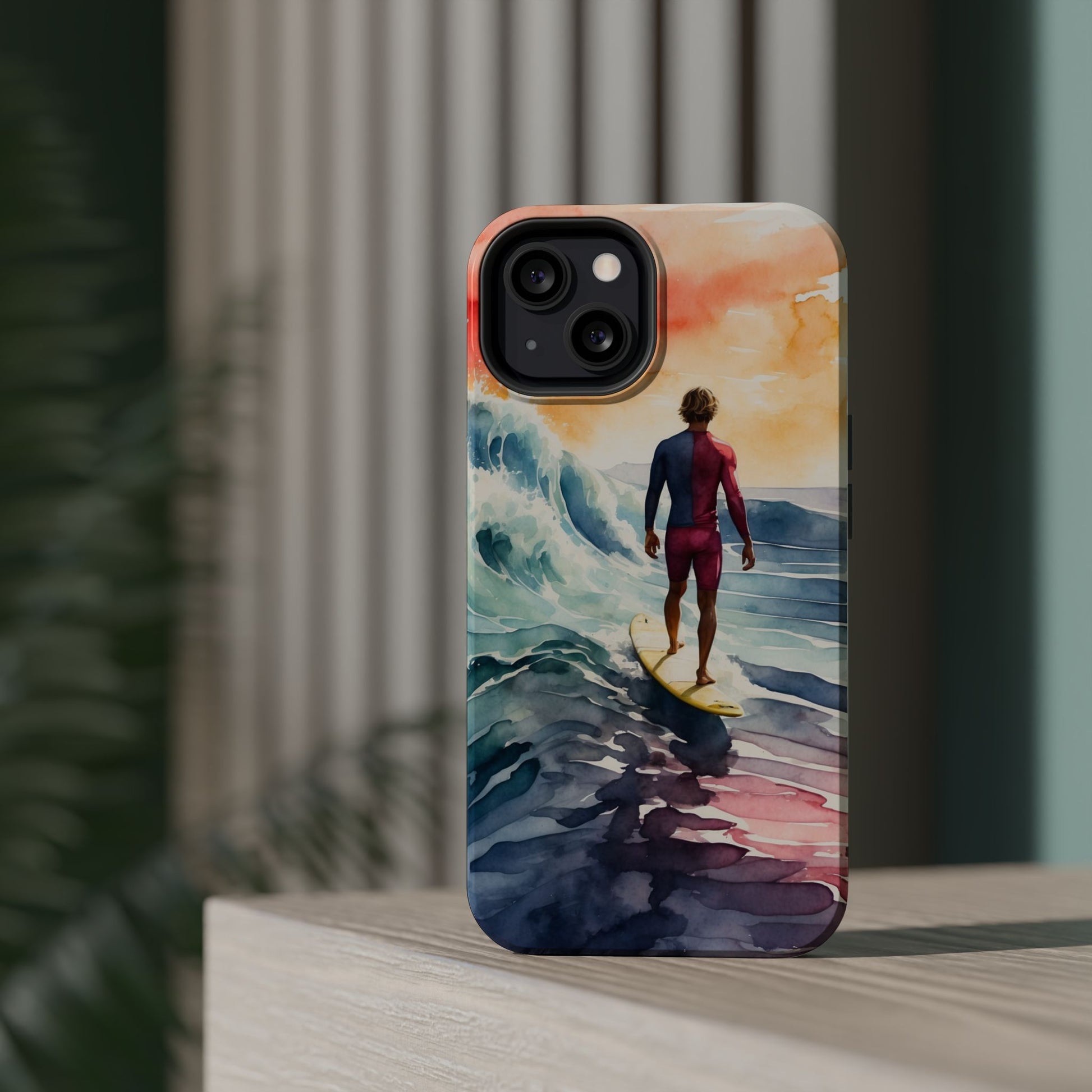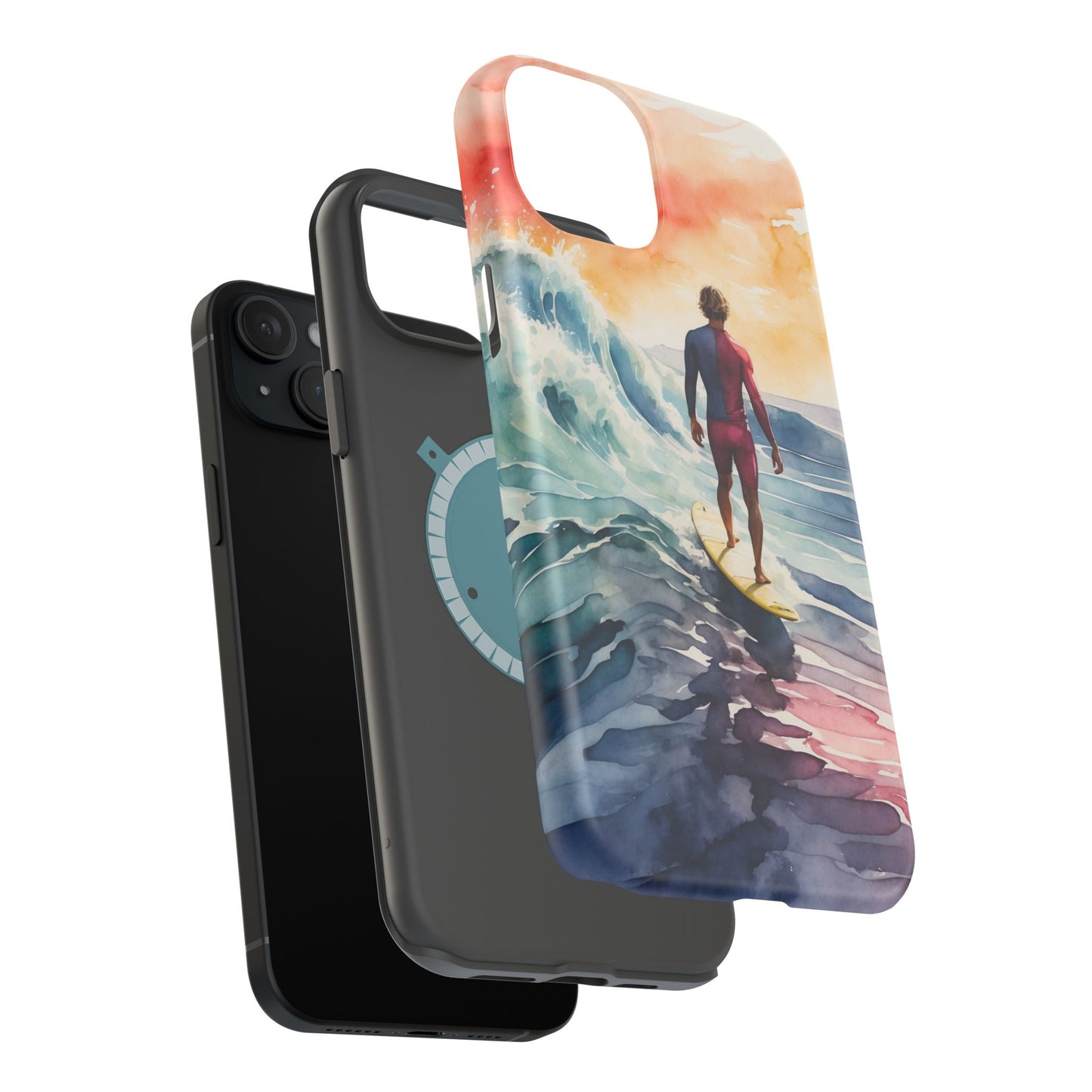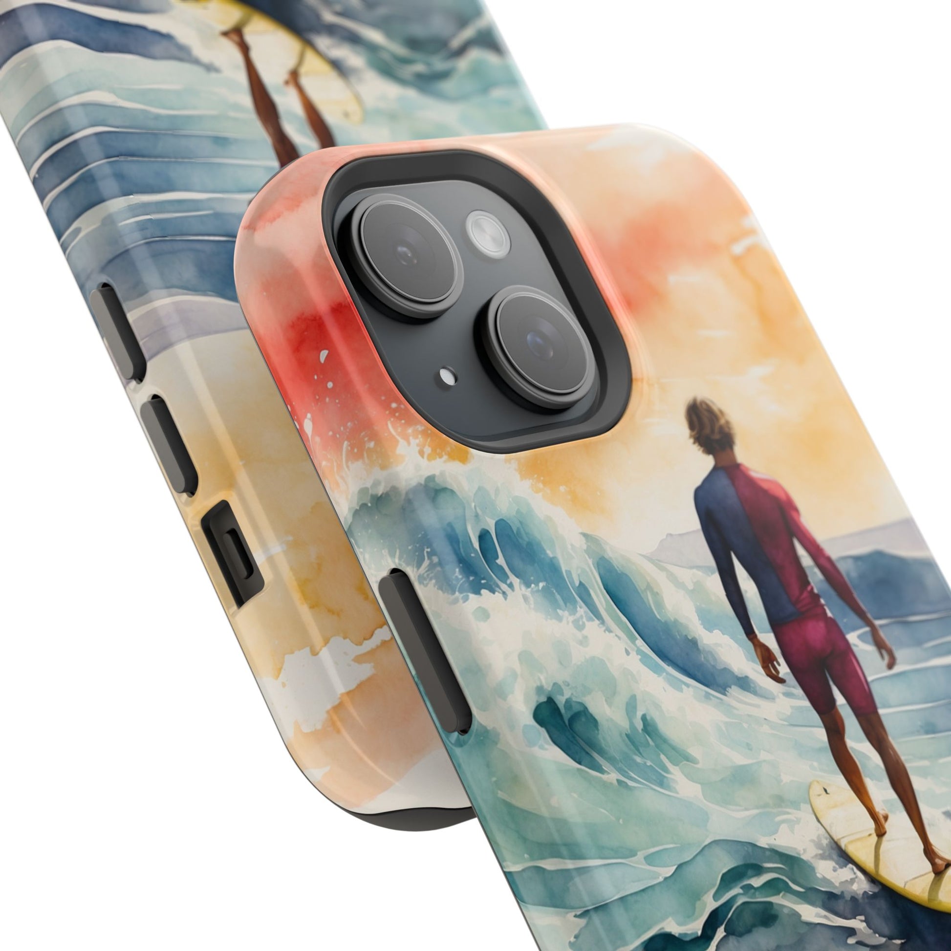 Surfer’s Sunset Wave MagSafe iPhone Case – Vibrant Watercolor Design