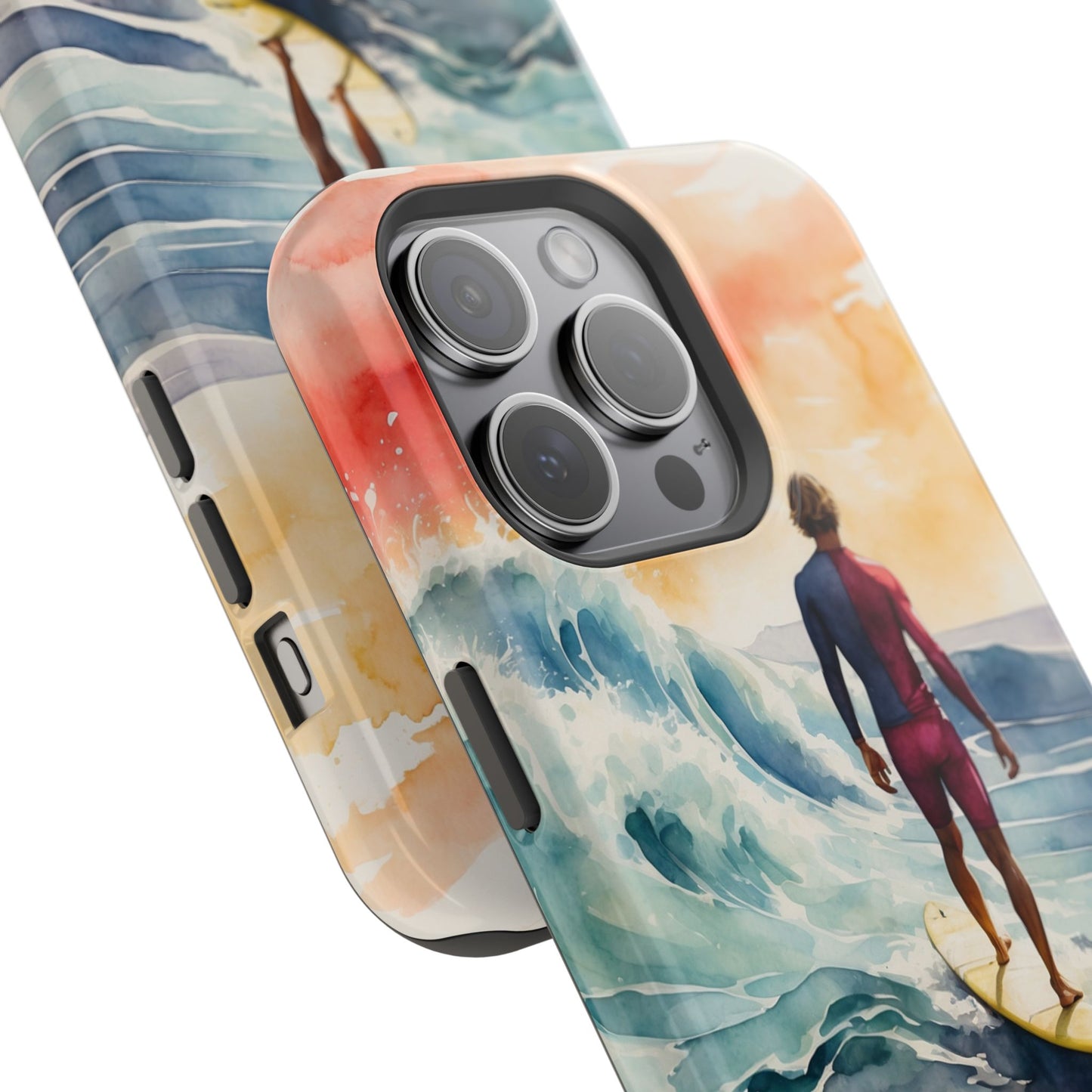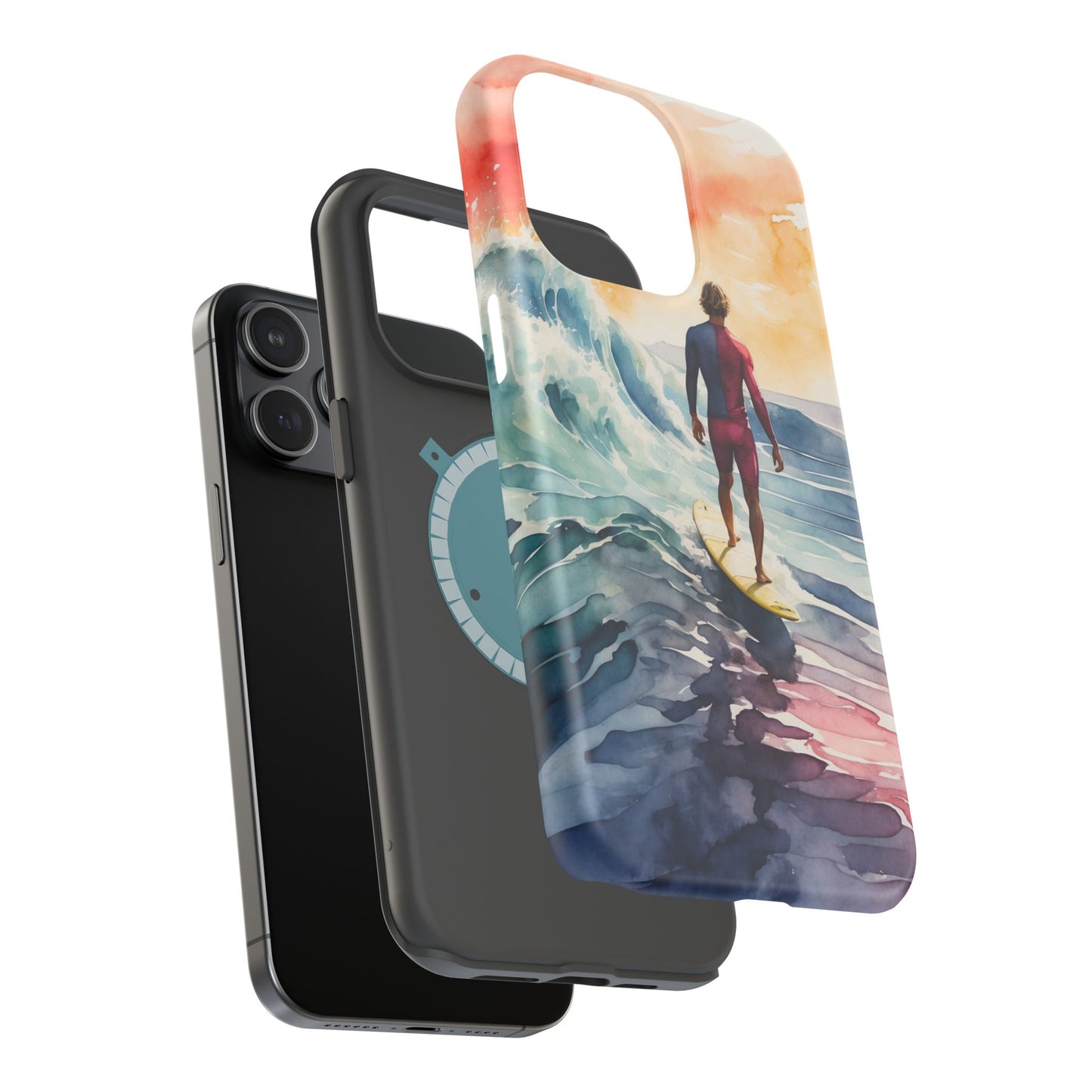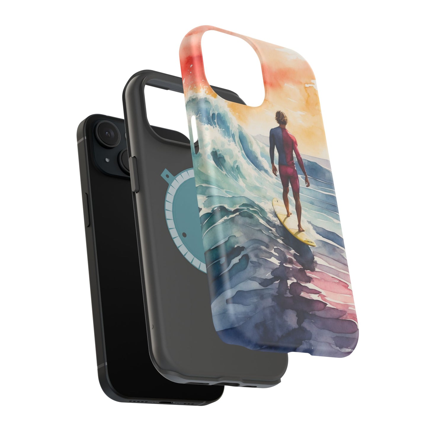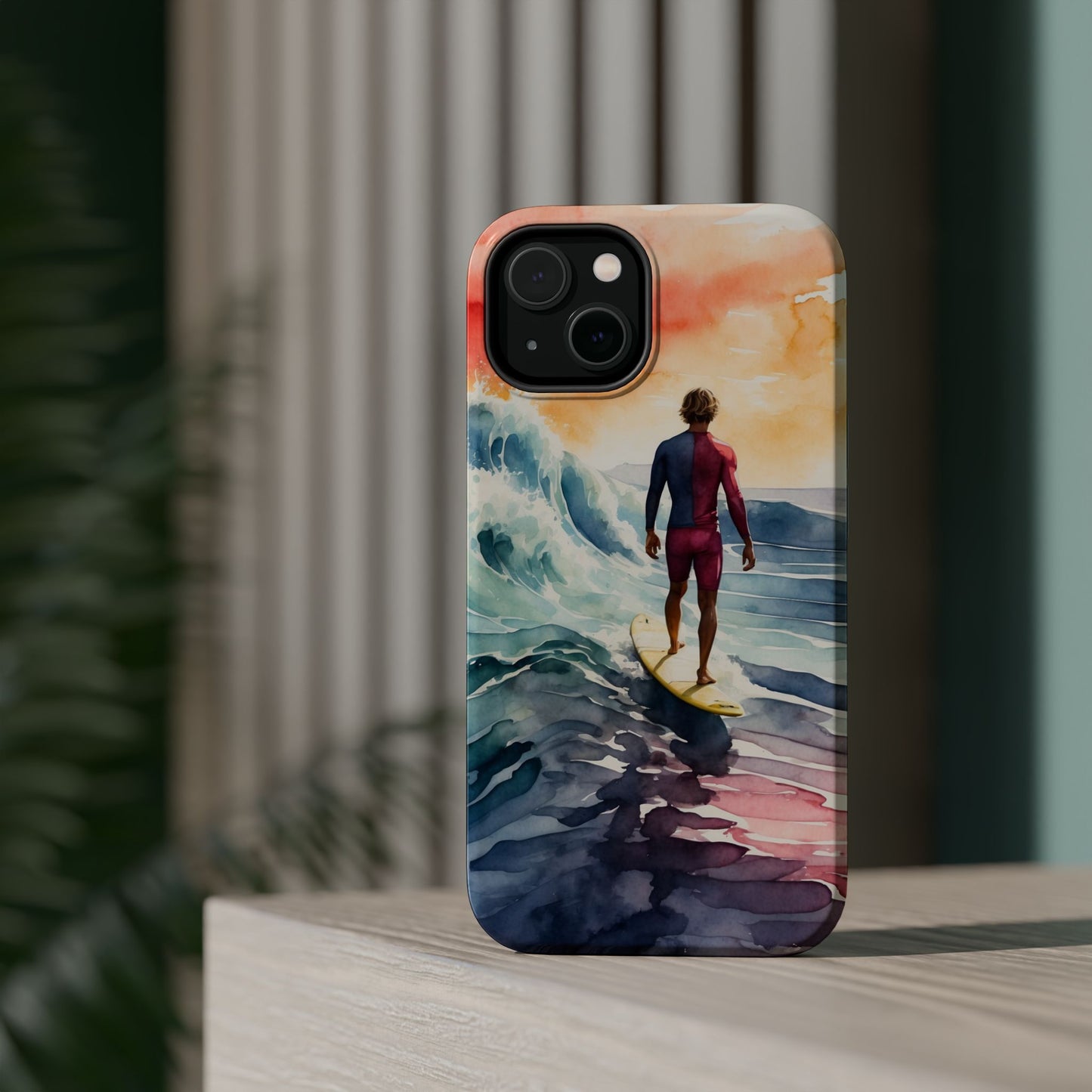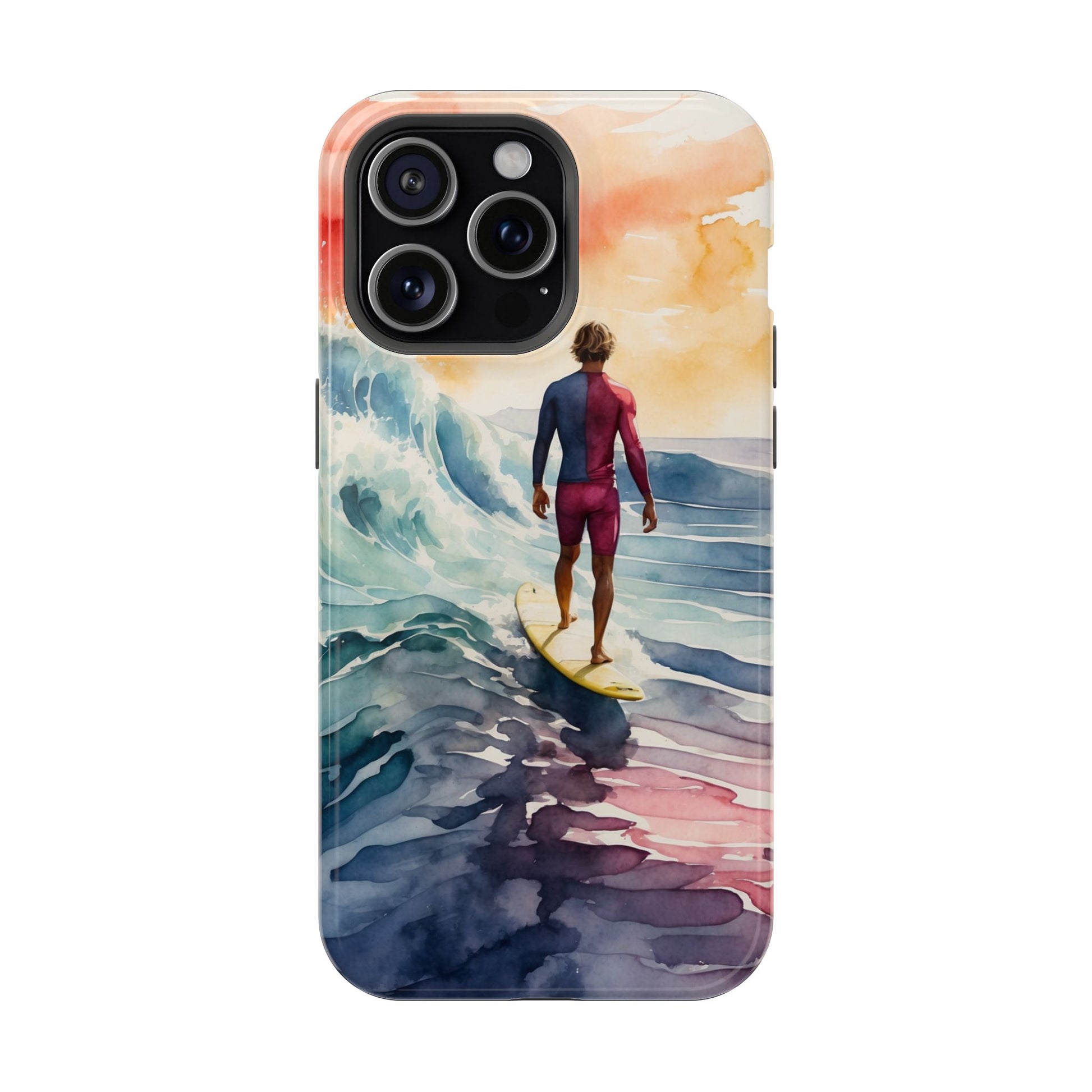 Surfer’s Sunset Wave MagSafe iPhone Case – Vibrant Watercolor Design