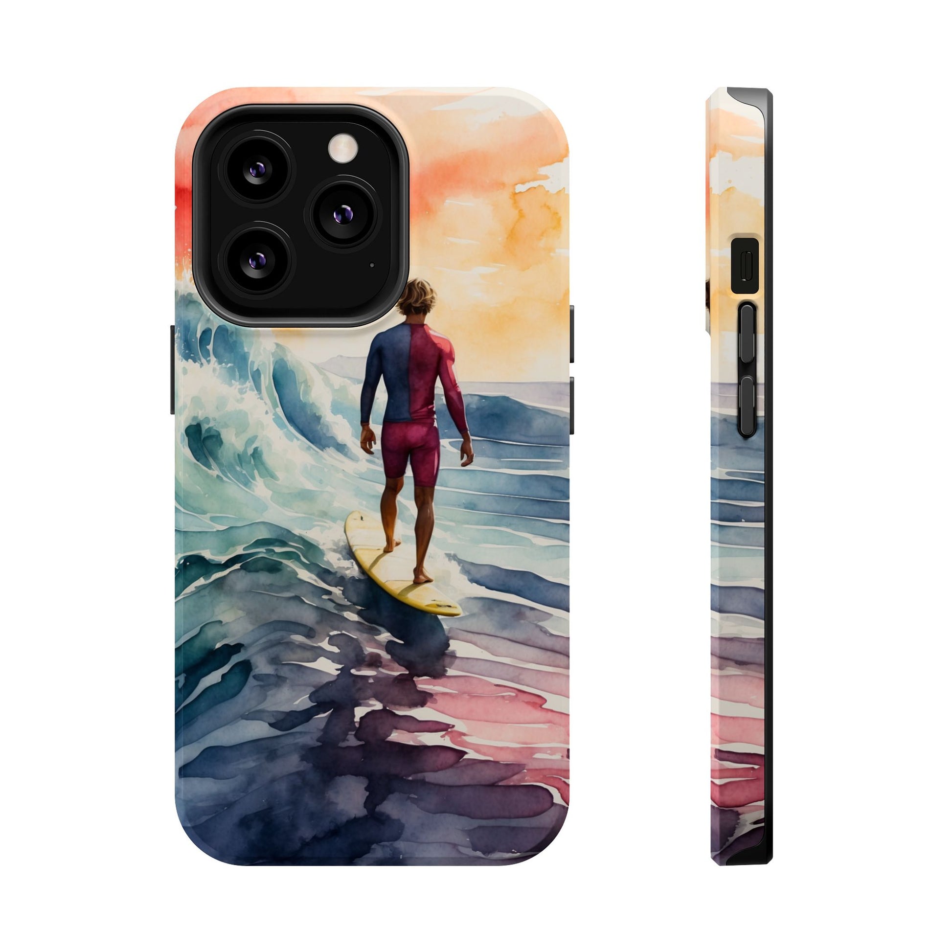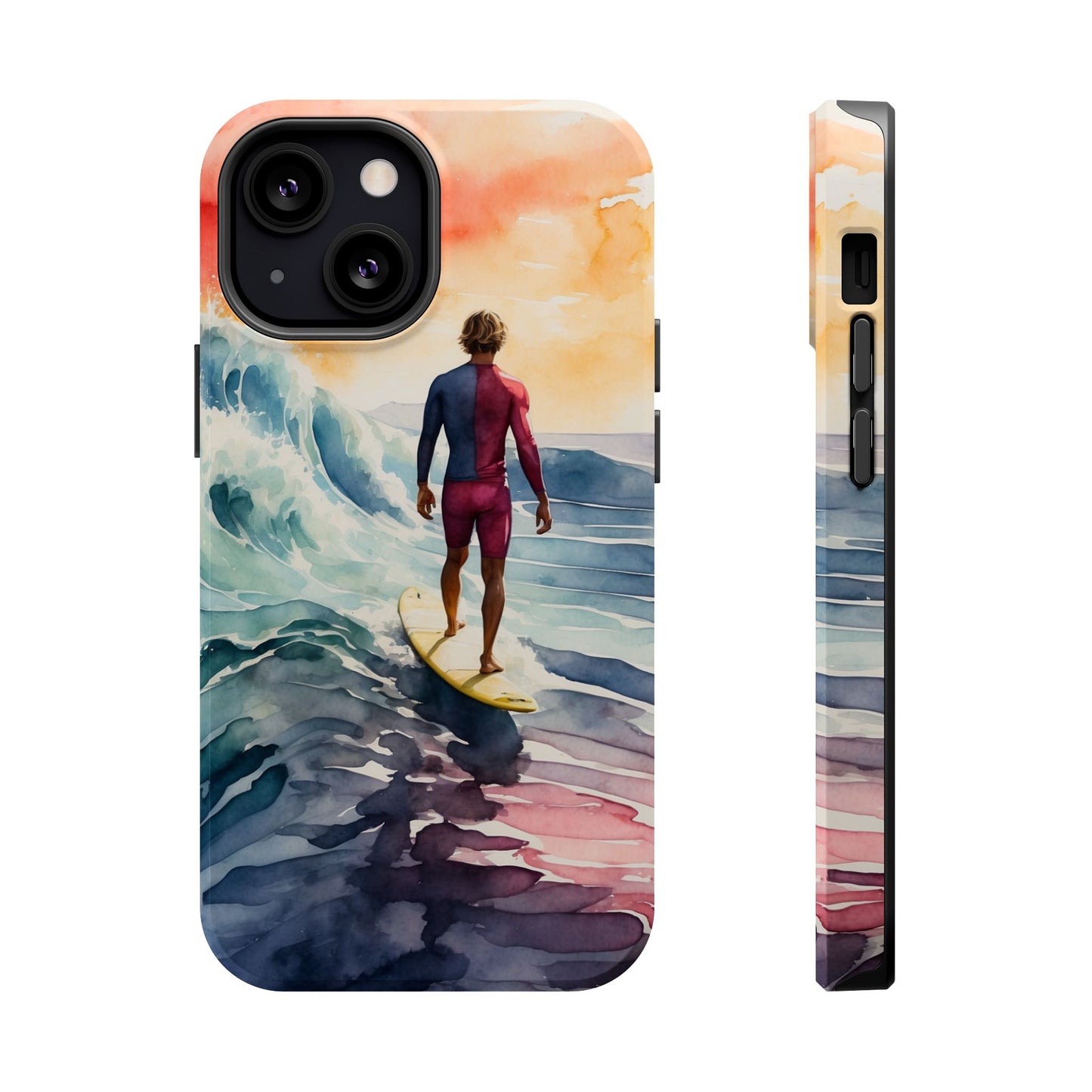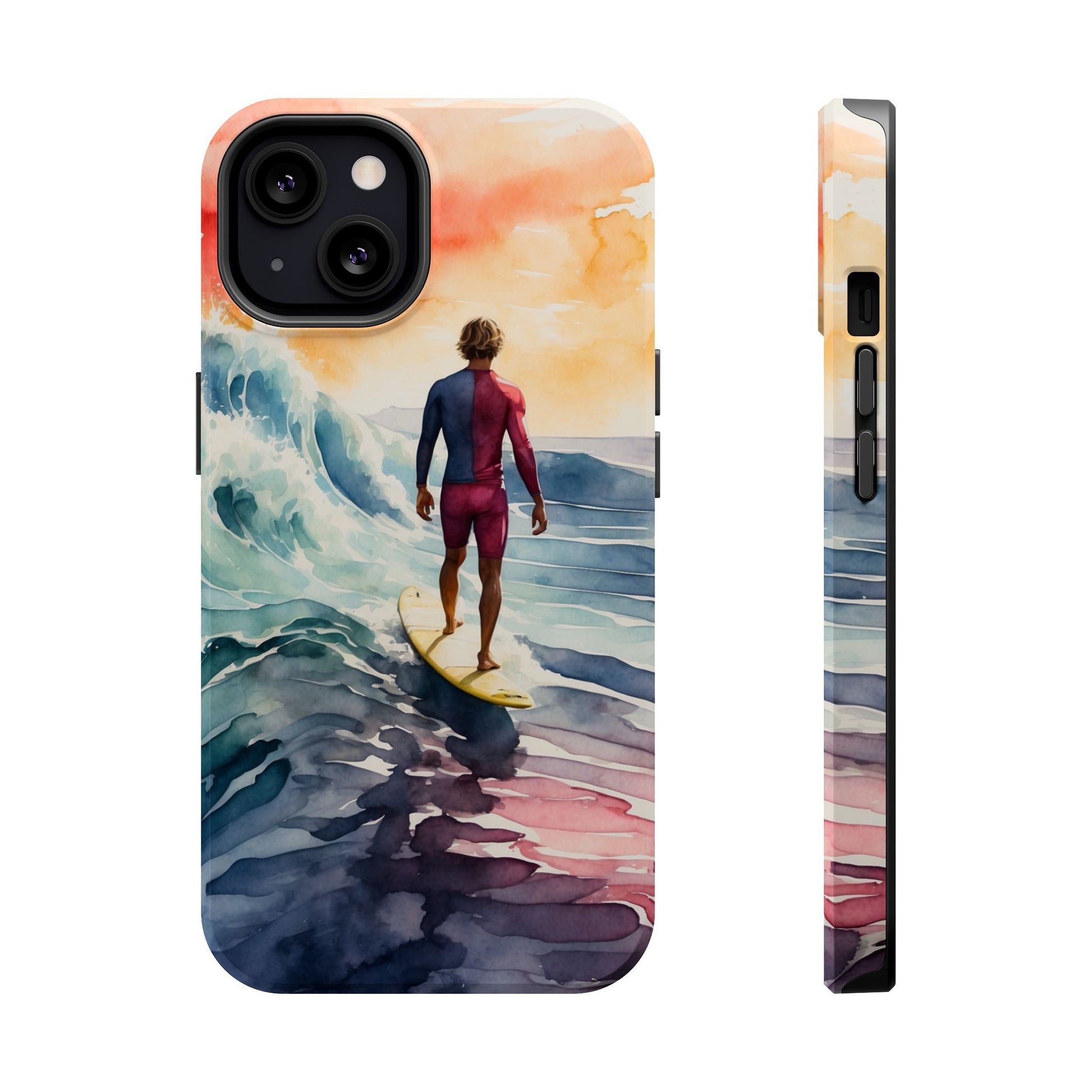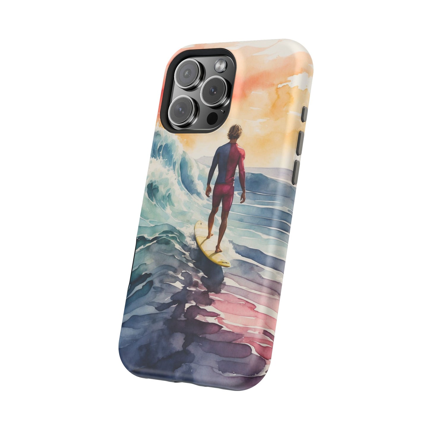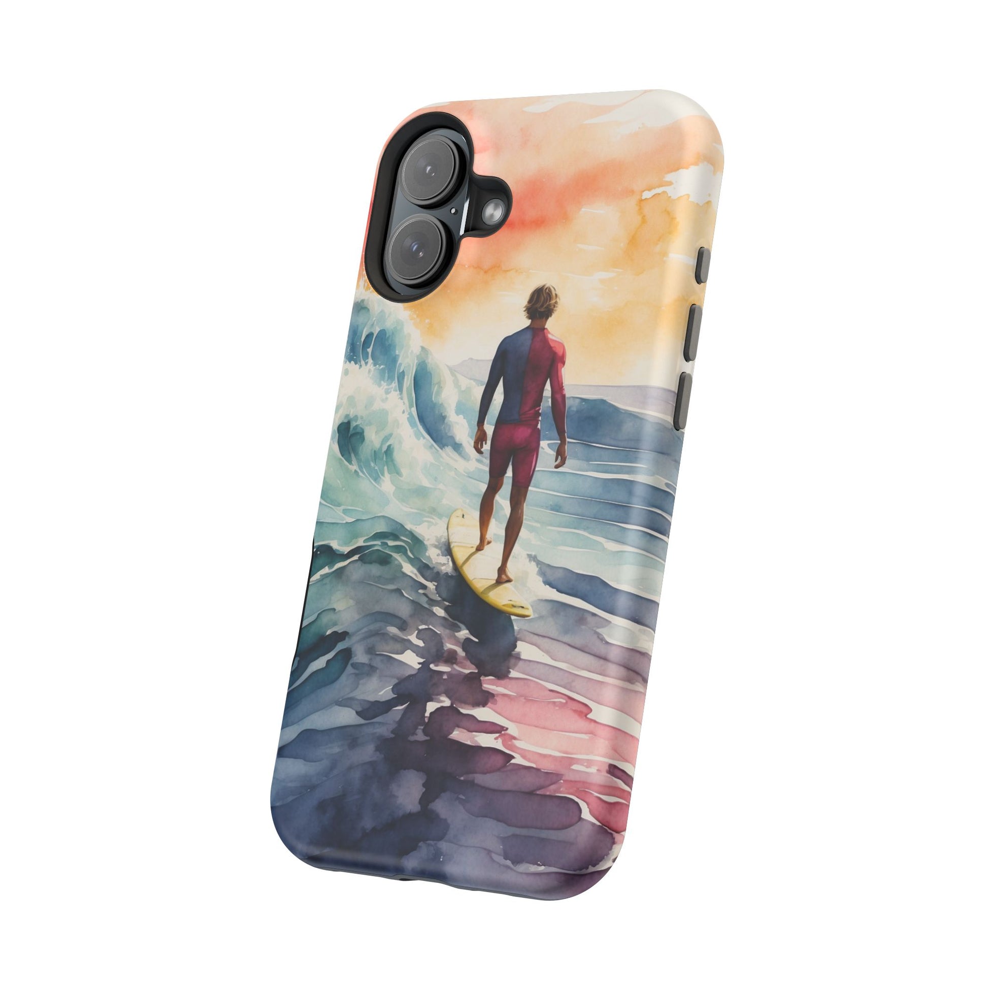 Surfer’s Sunset Wave MagSafe iPhone Case – Vibrant Watercolor Design