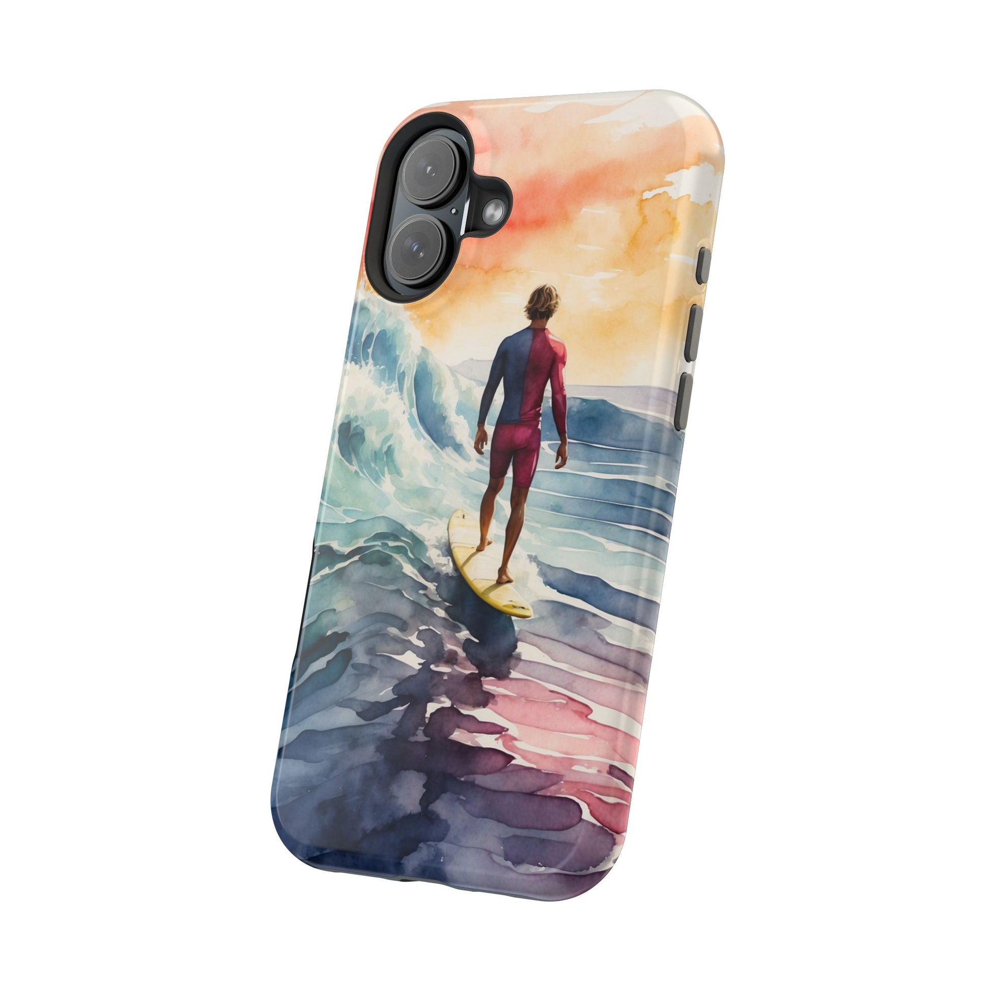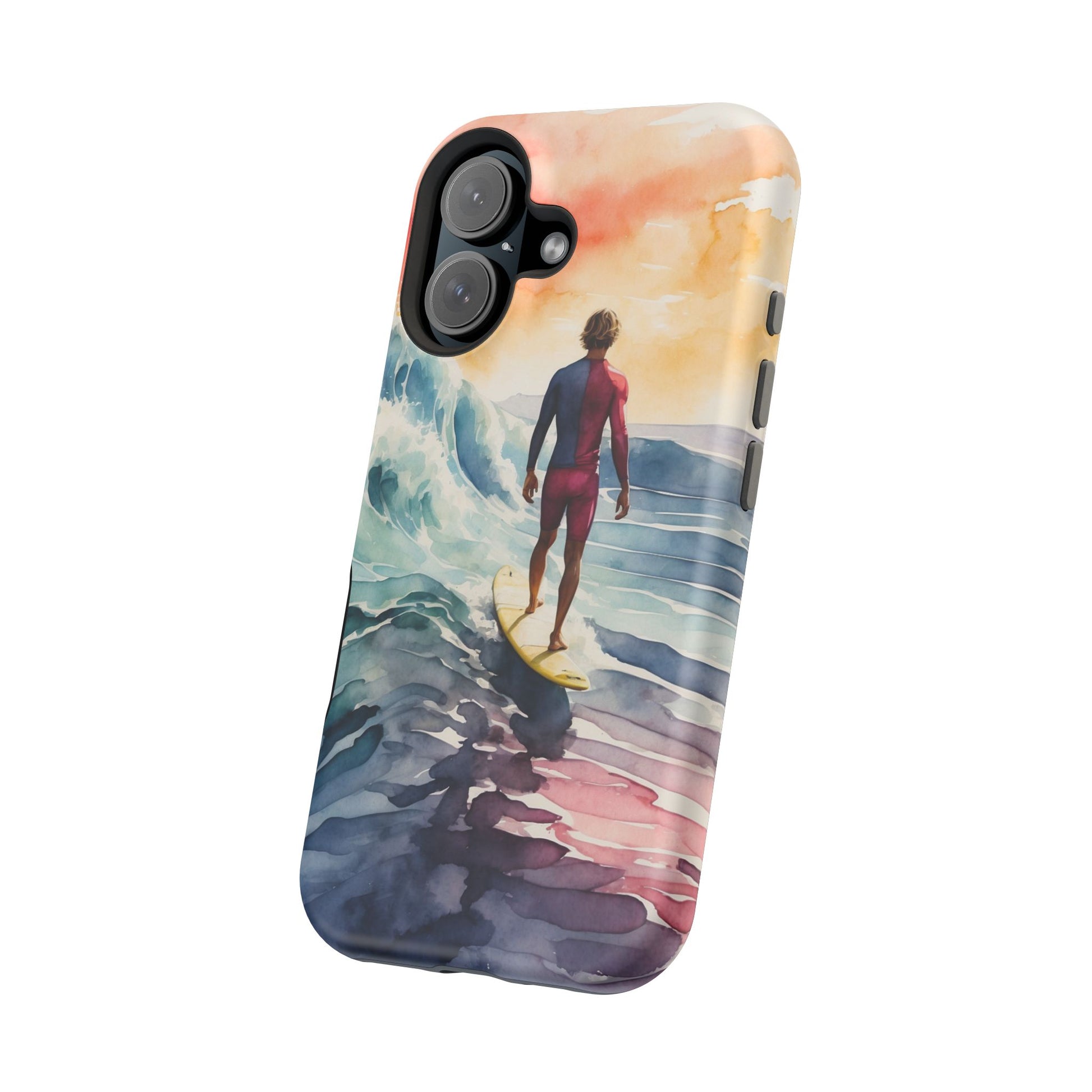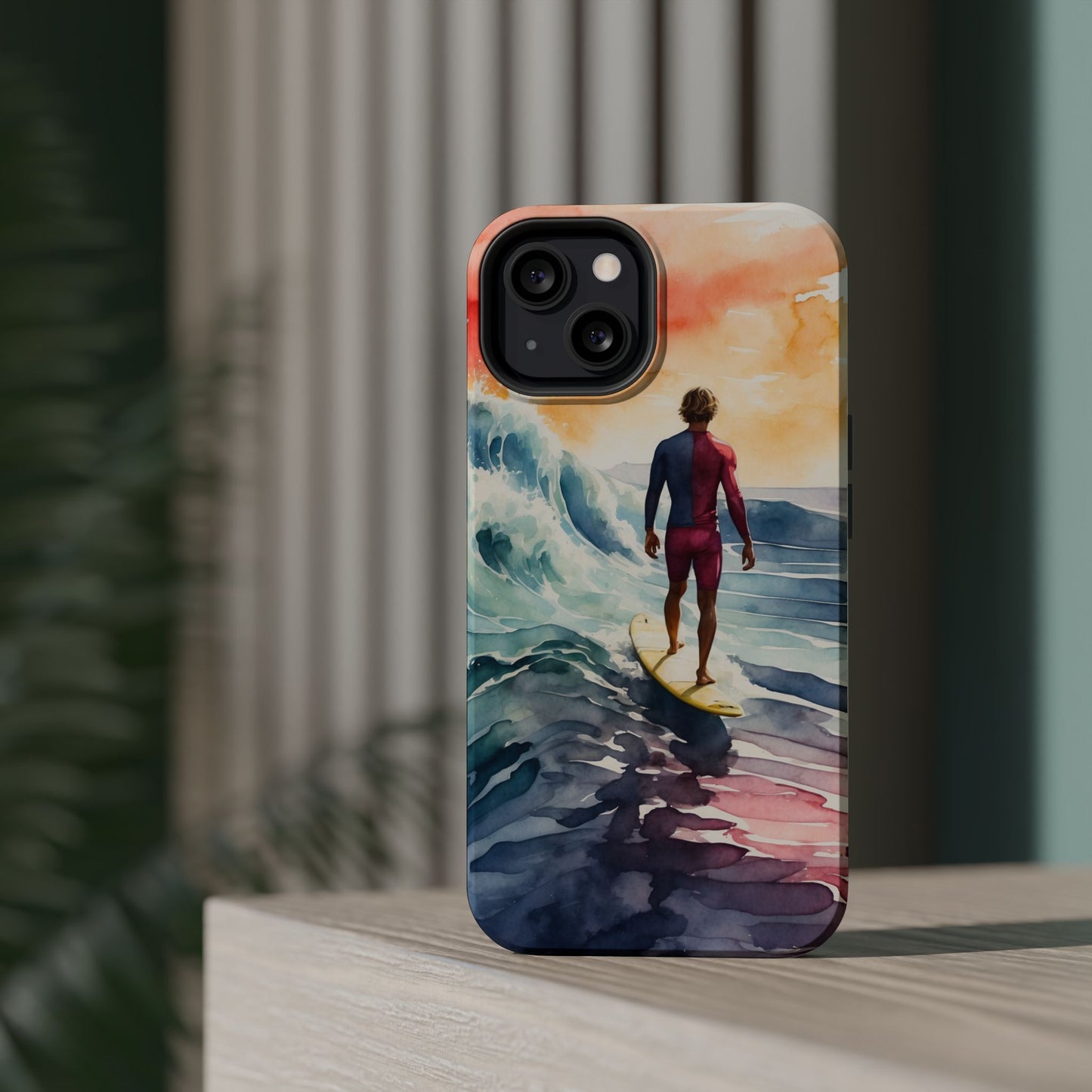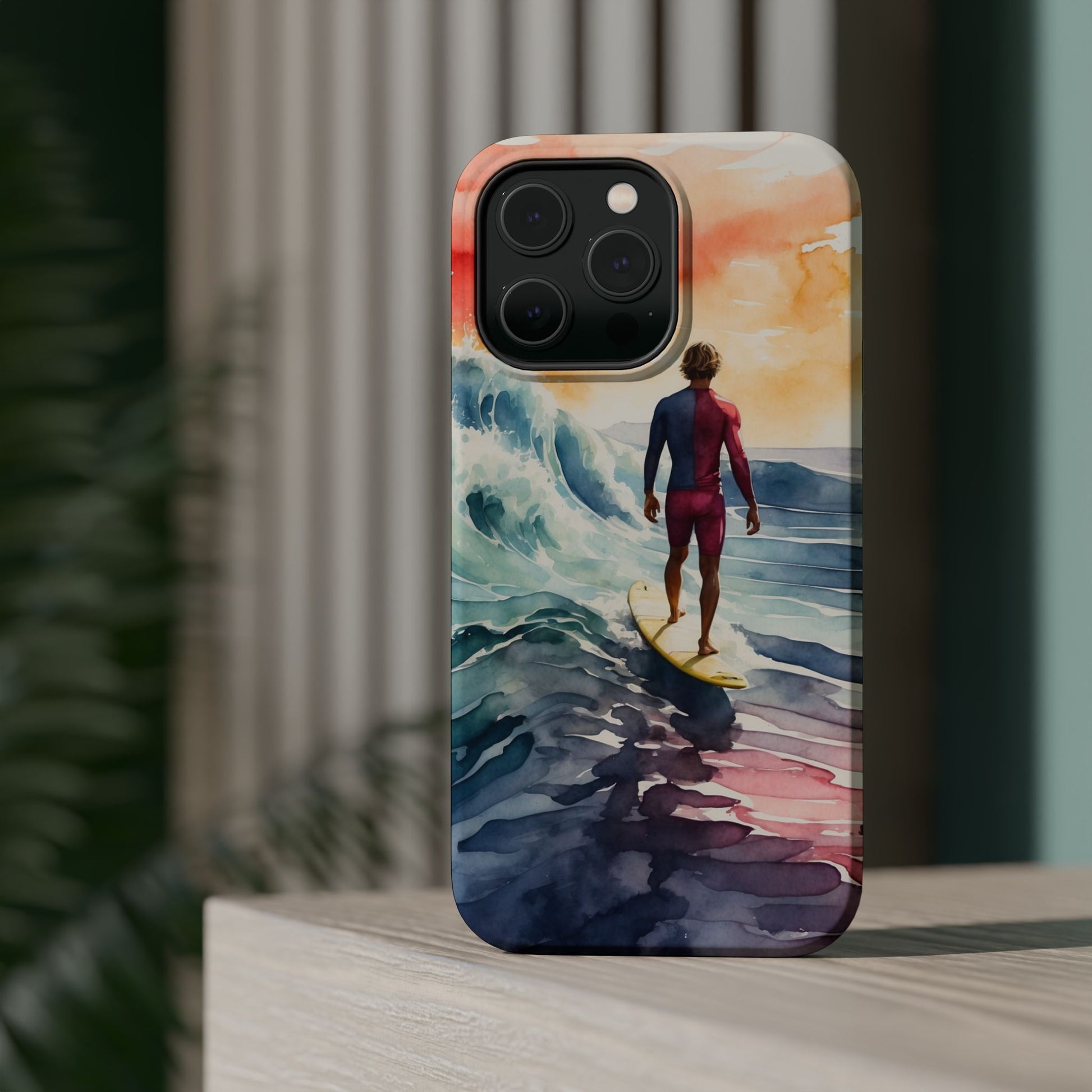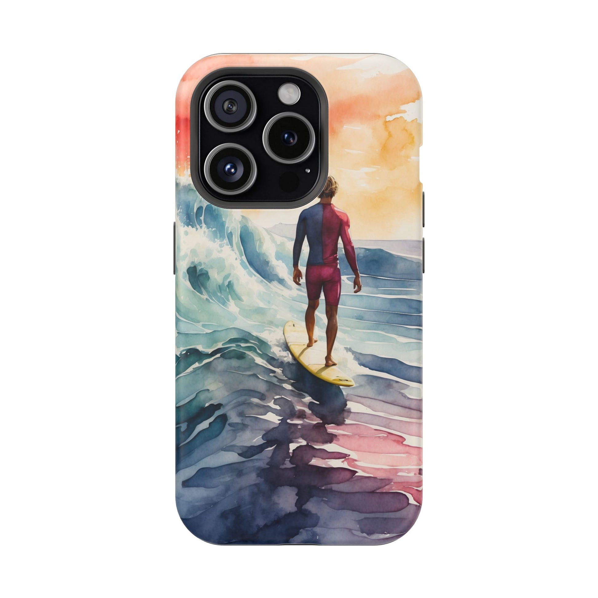 Surfer’s Sunset Wave MagSafe iPhone Case – Vibrant Watercolor Design