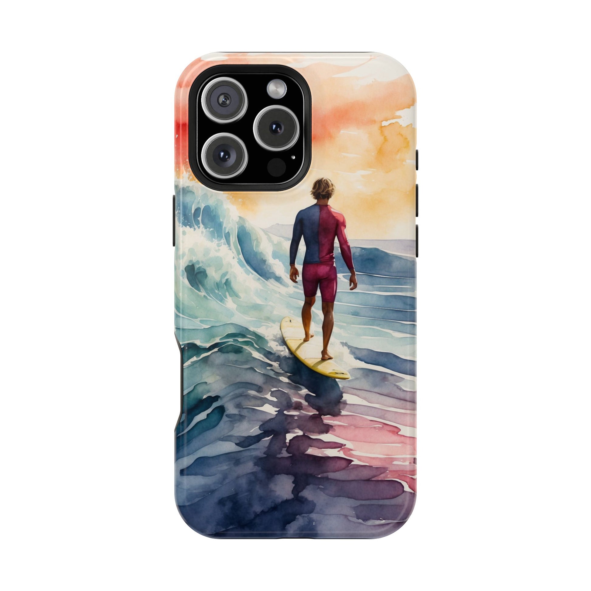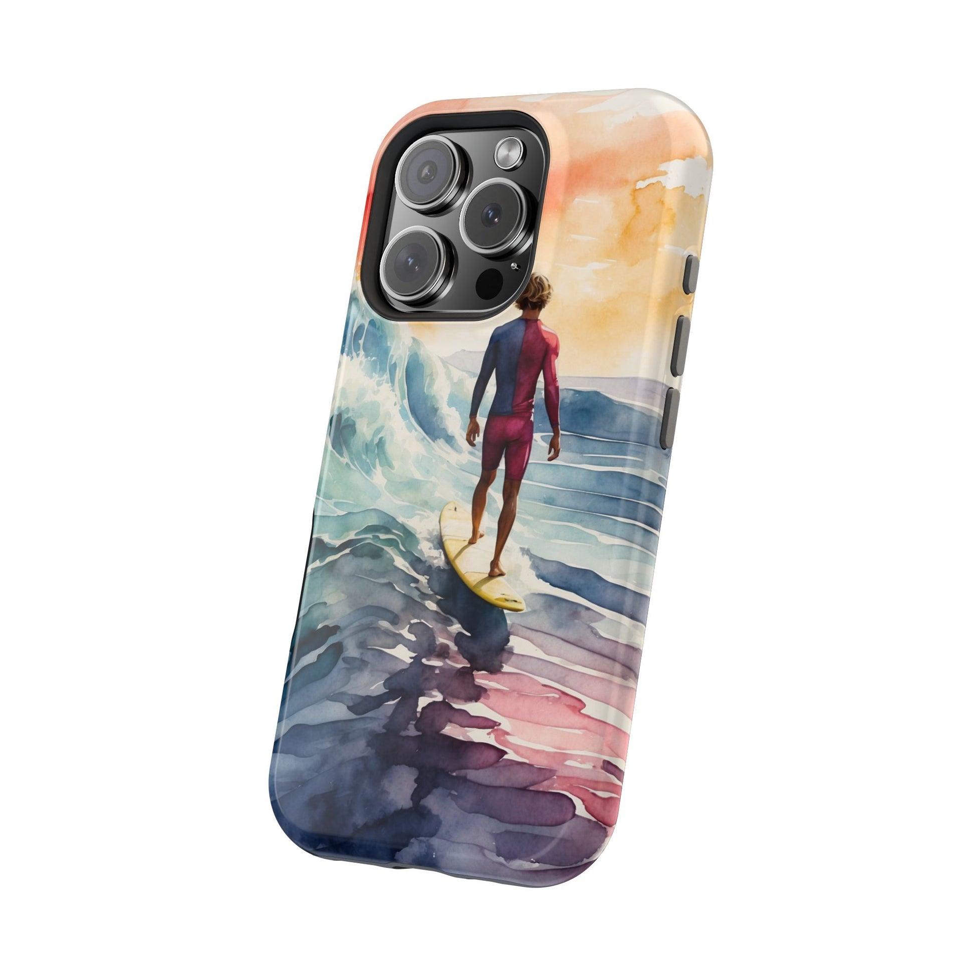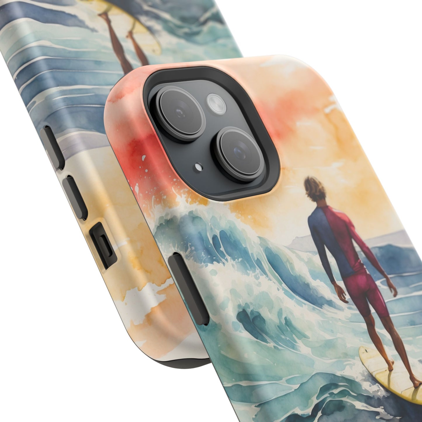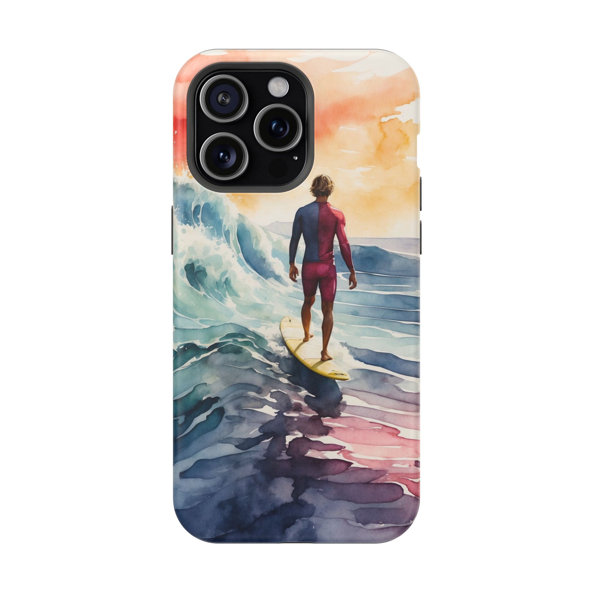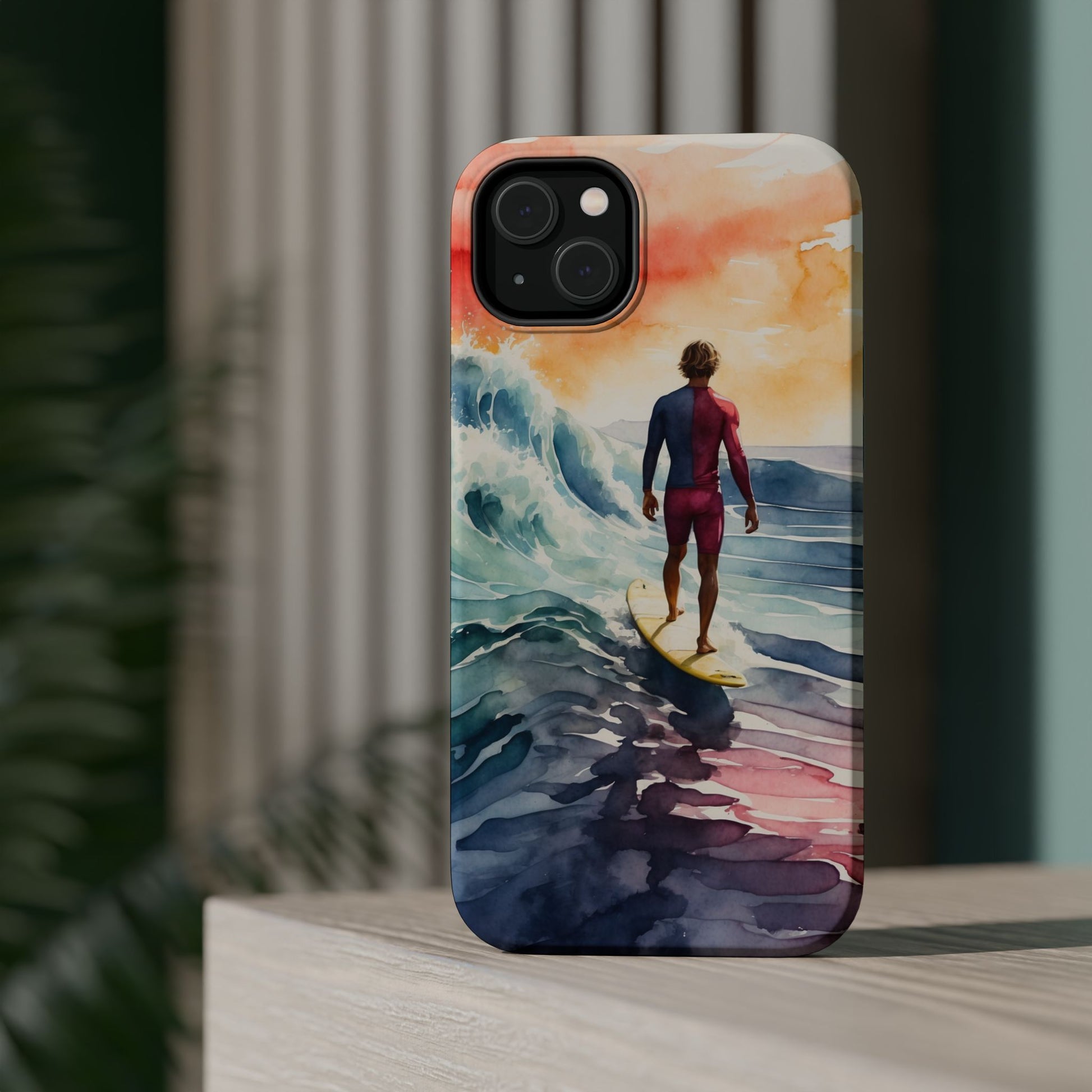 Surfer’s Sunset Wave MagSafe iPhone Case – Vibrant Watercolor Design