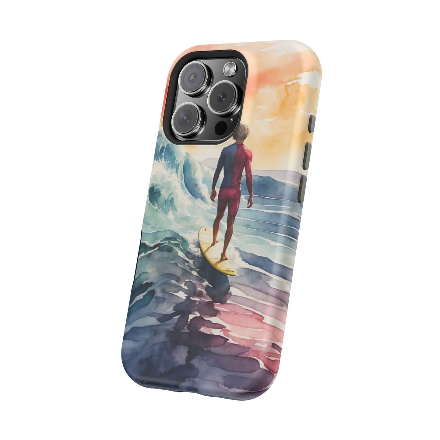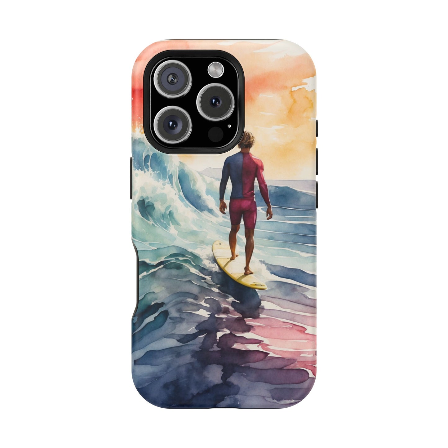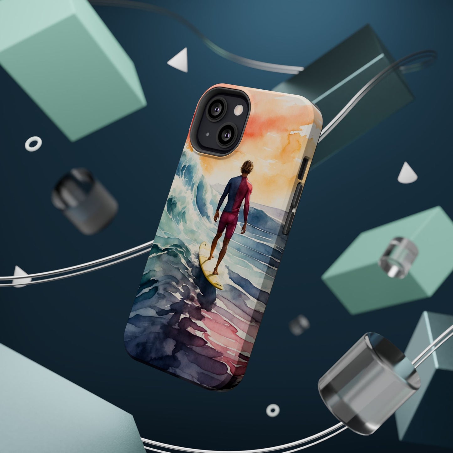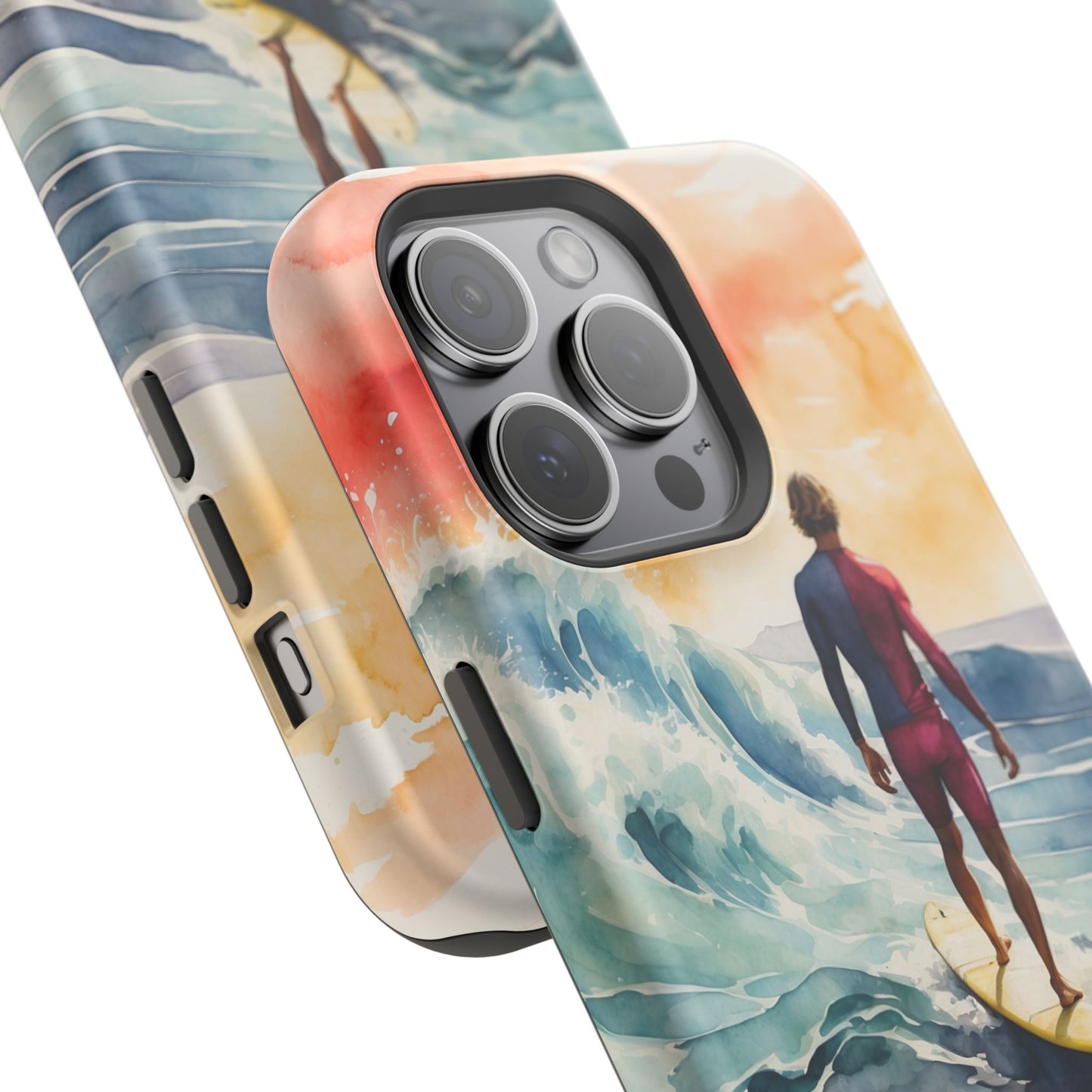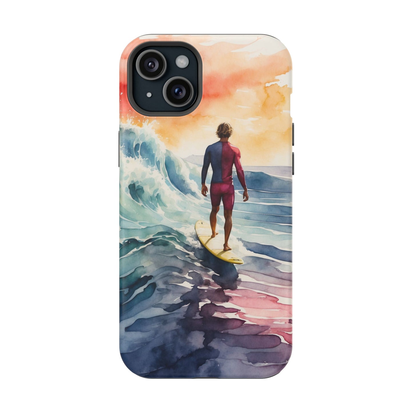 Surfer’s Sunset Wave MagSafe iPhone Case – Vibrant Watercolor Design