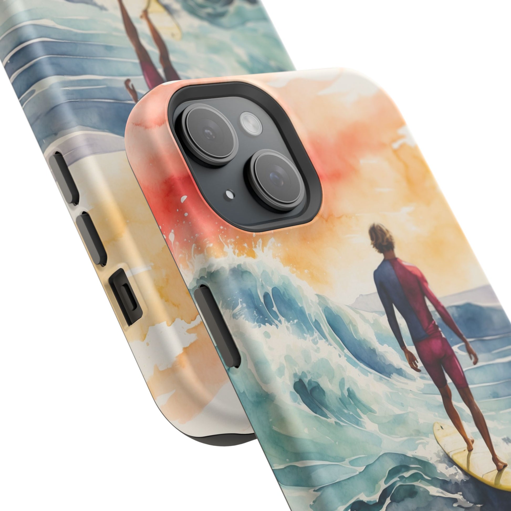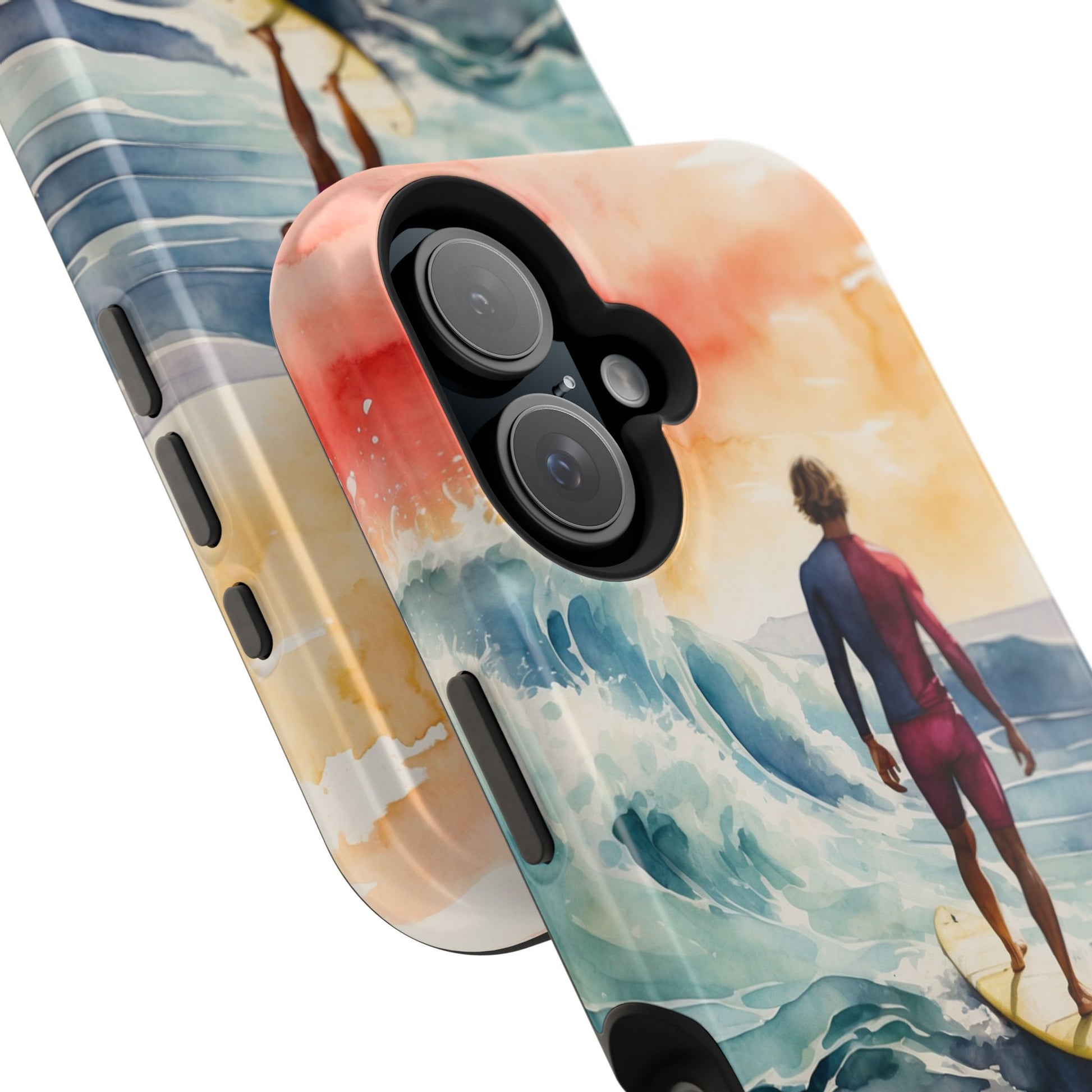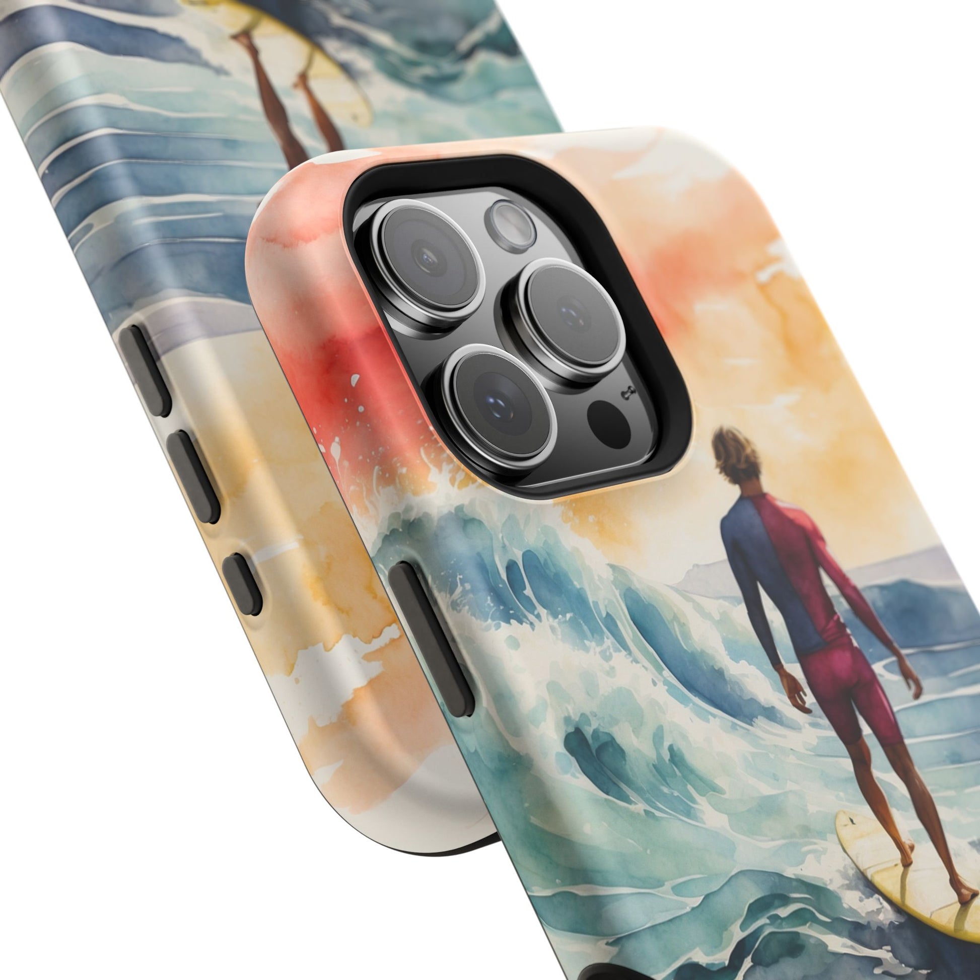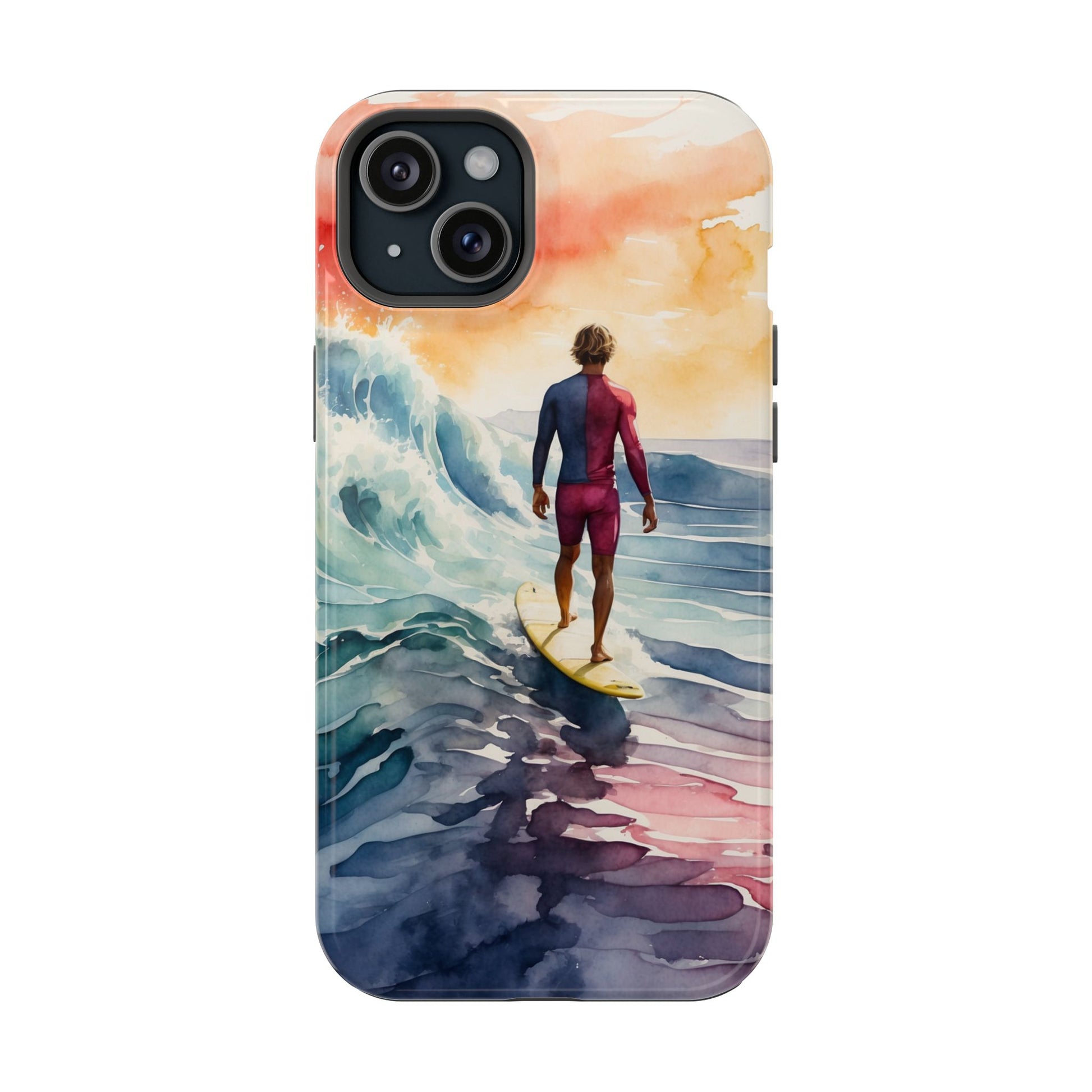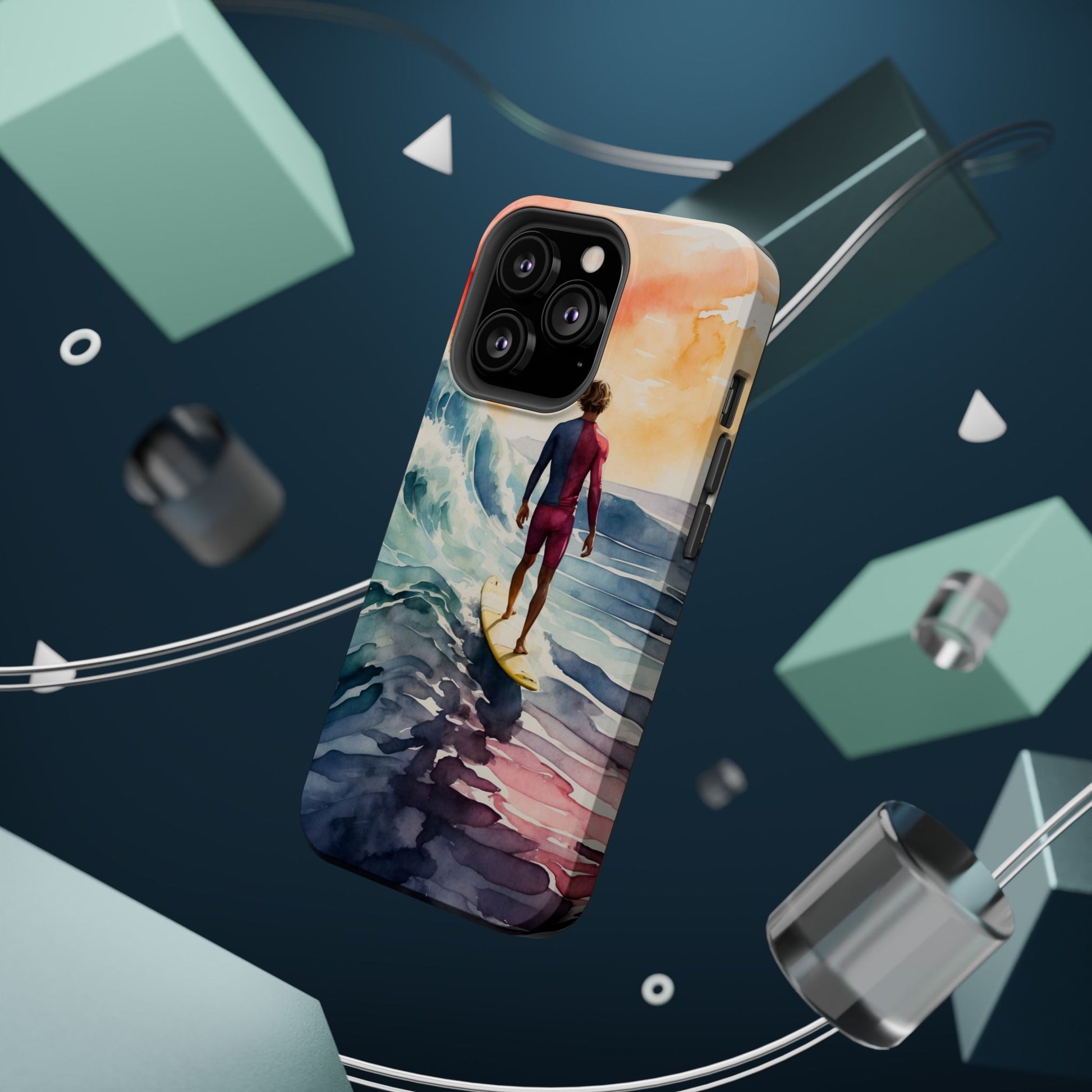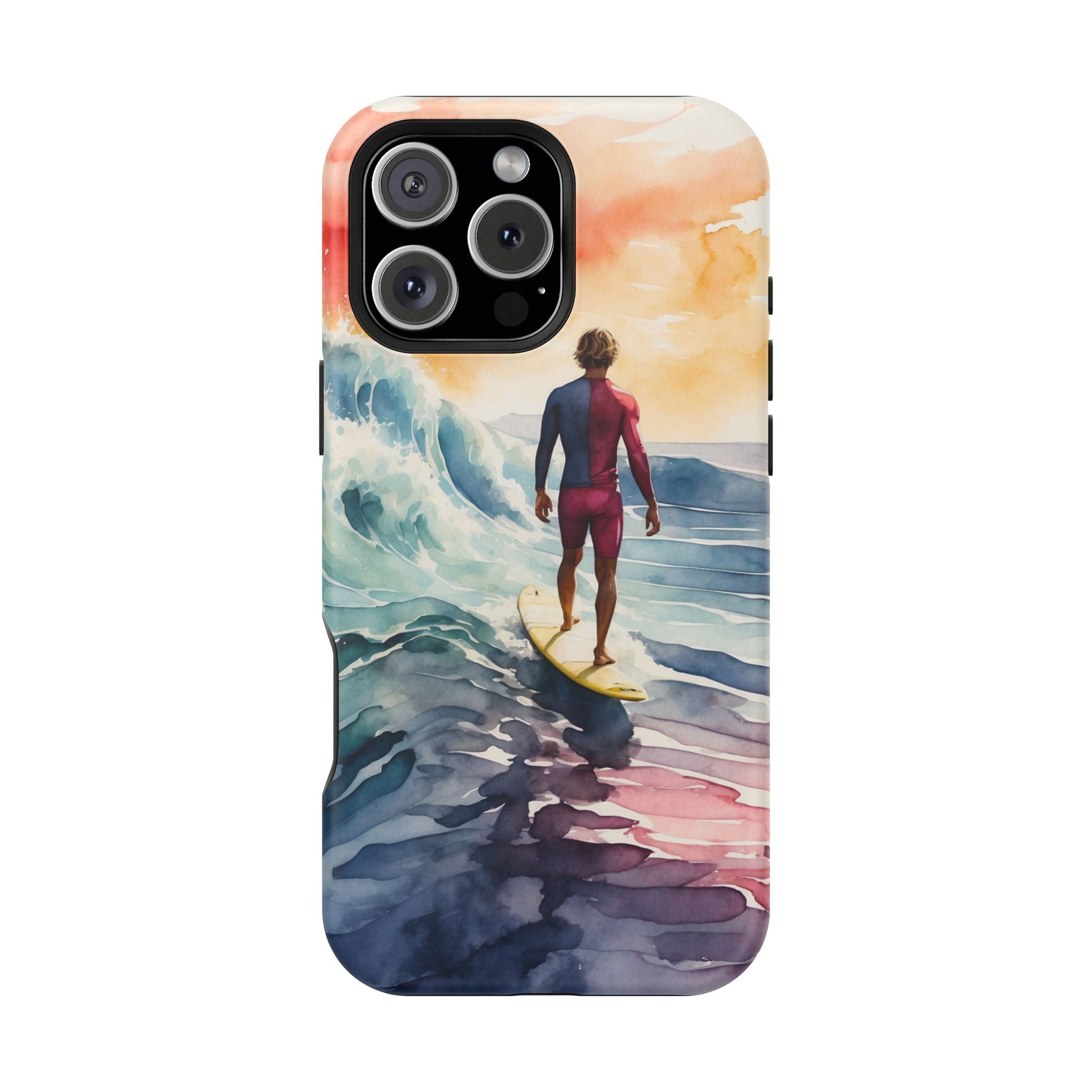 Surfer’s Sunset Wave MagSafe iPhone Case – Vibrant Watercolor Design