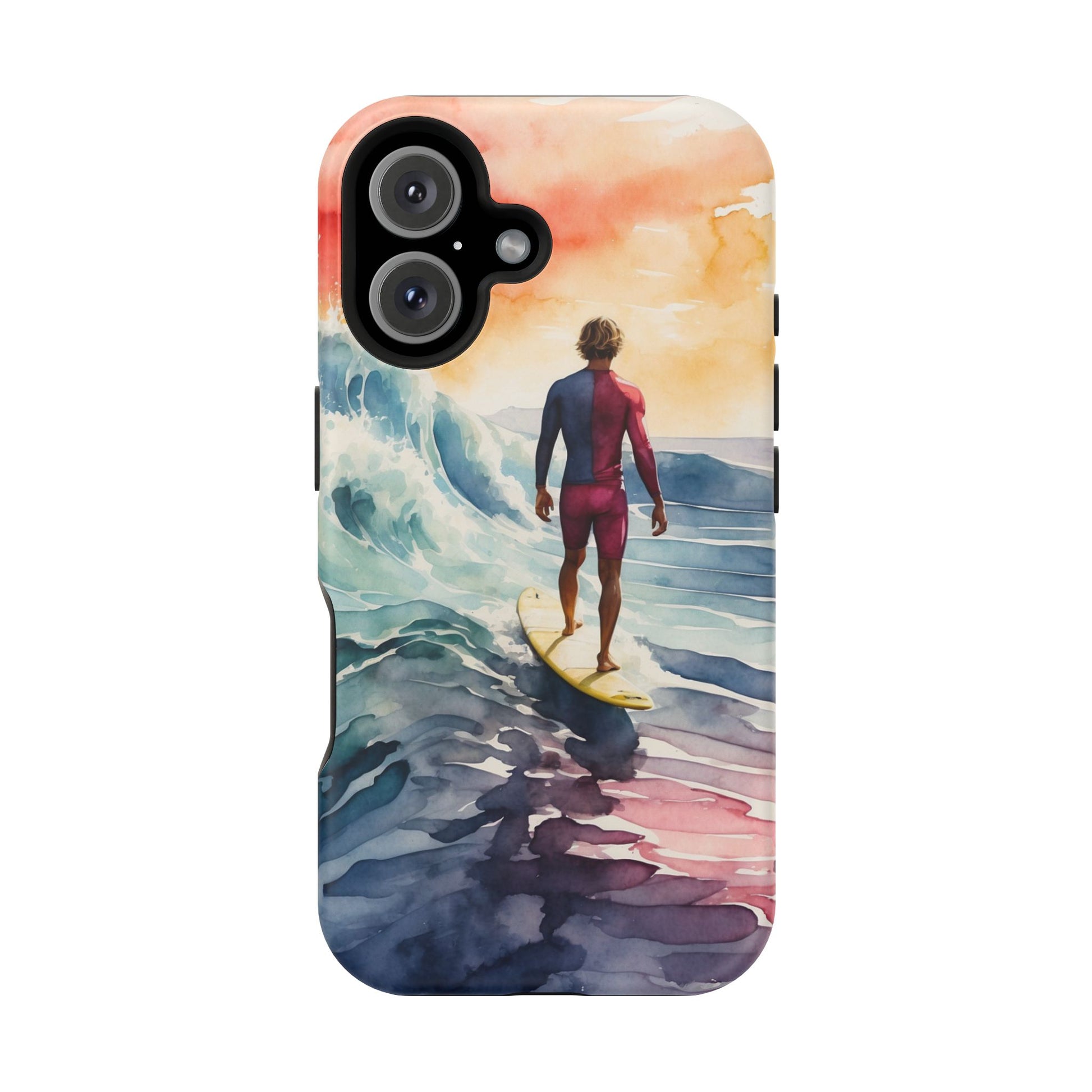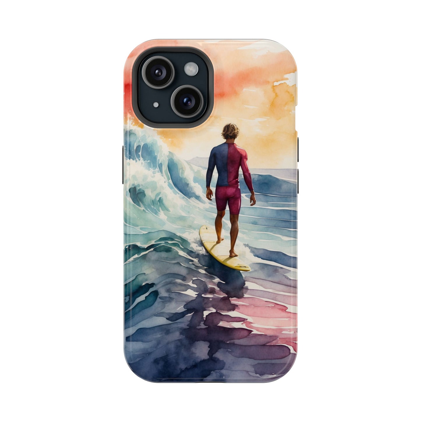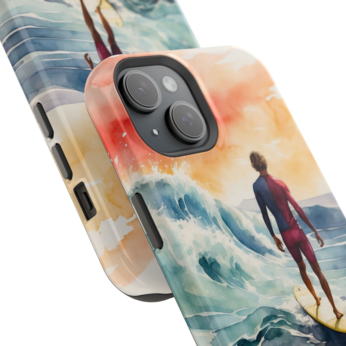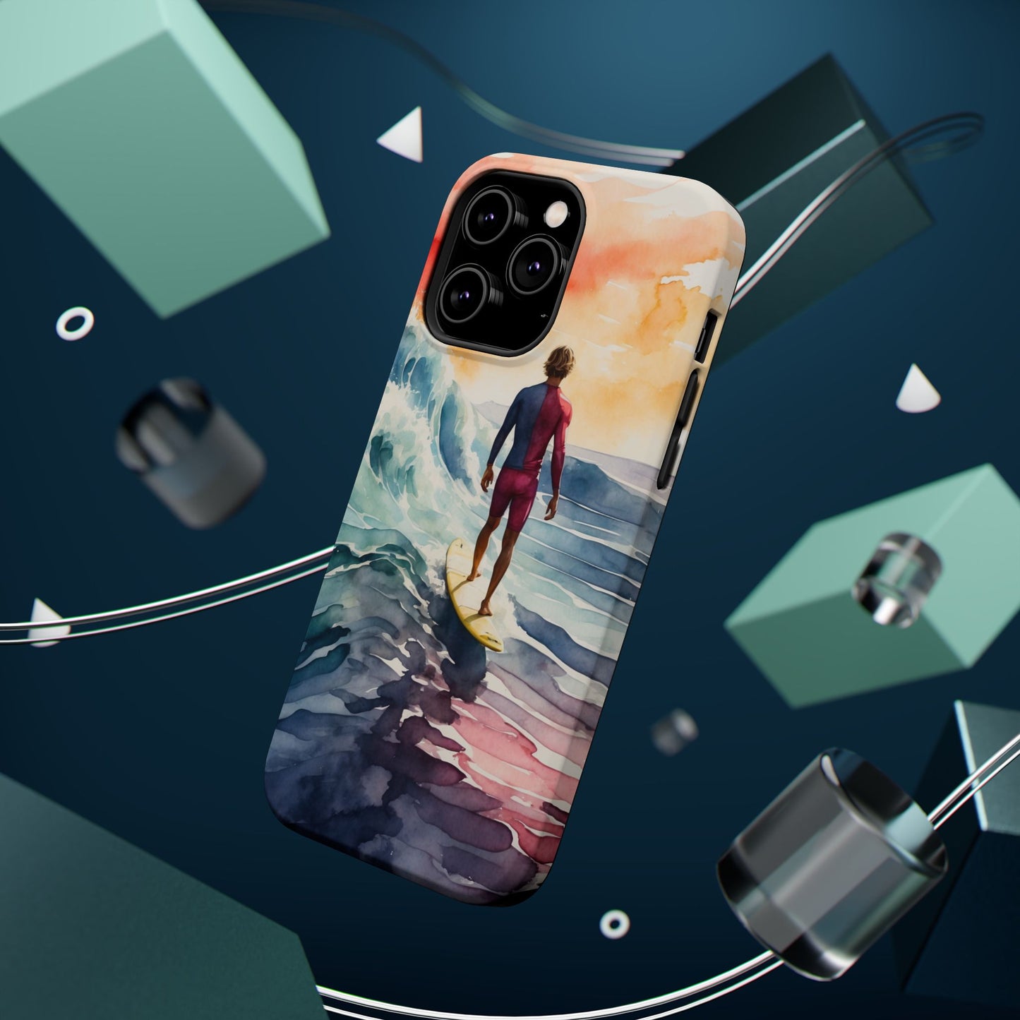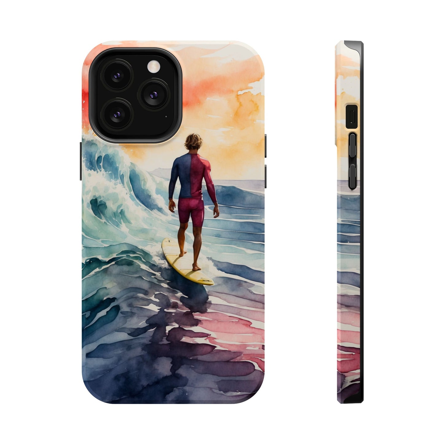 Surfer’s Sunset Wave MagSafe iPhone Case – Vibrant Watercolor Design