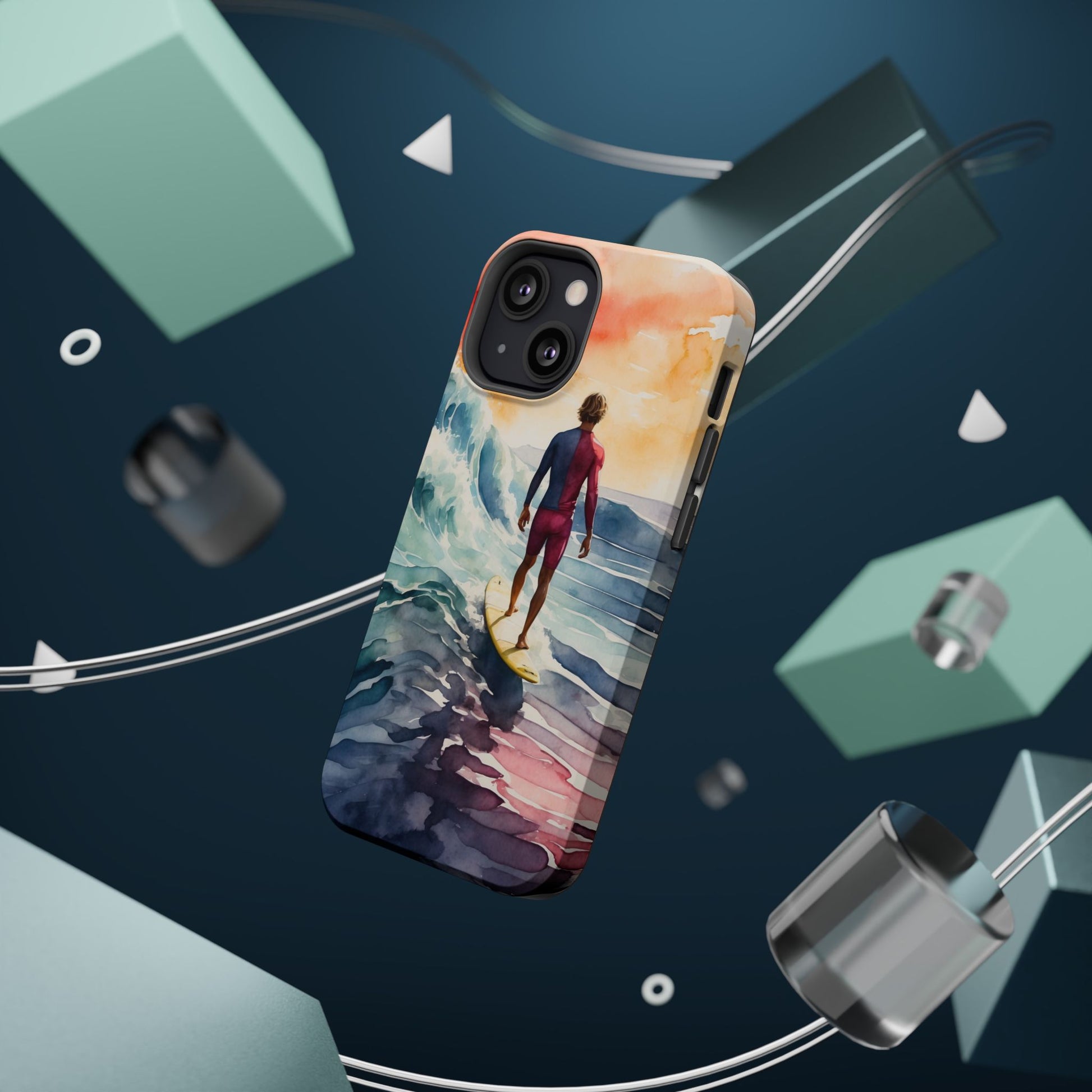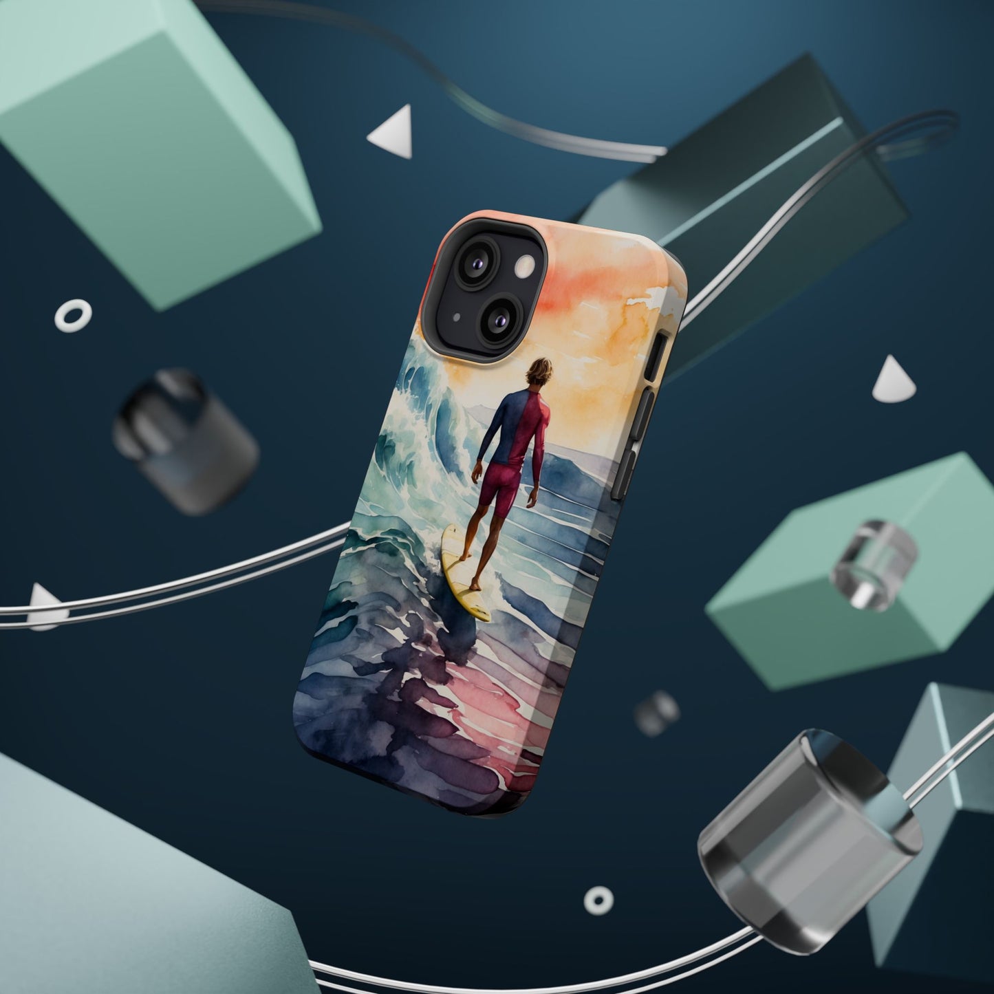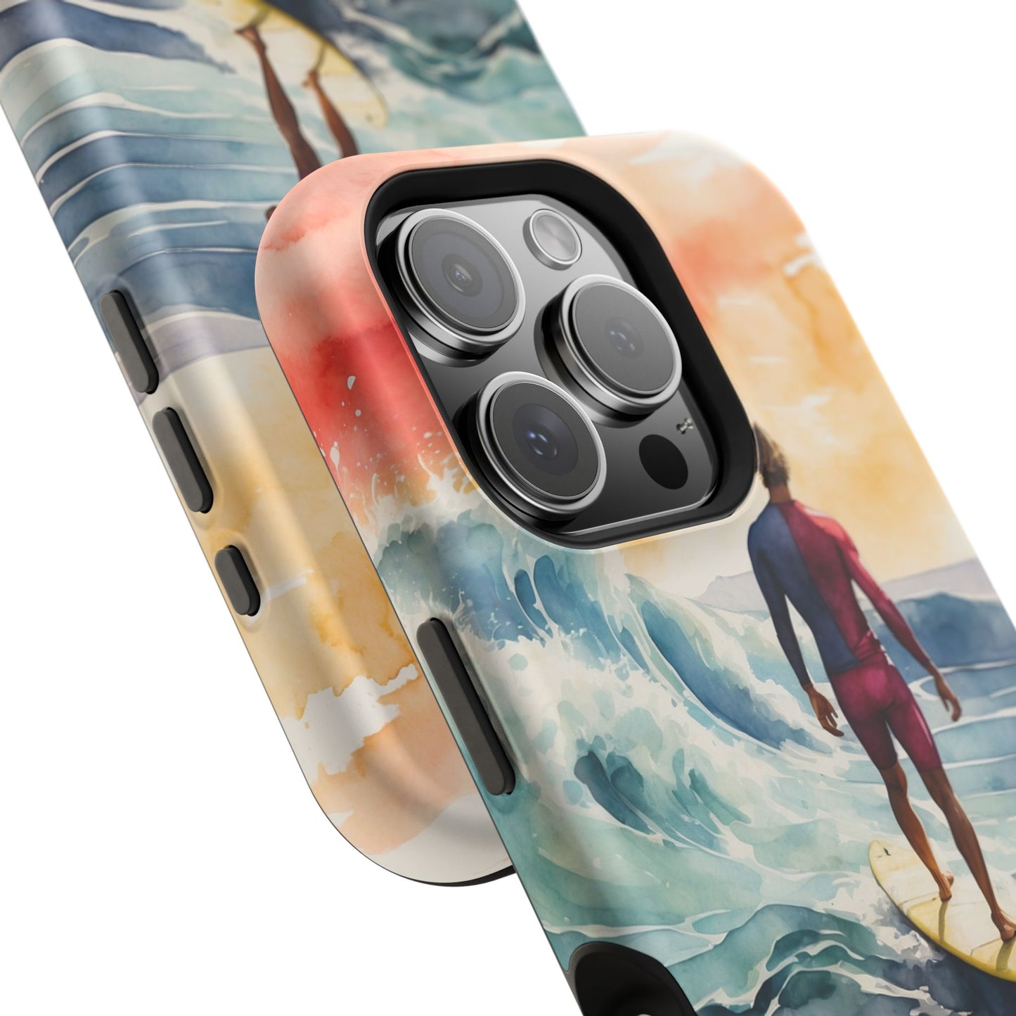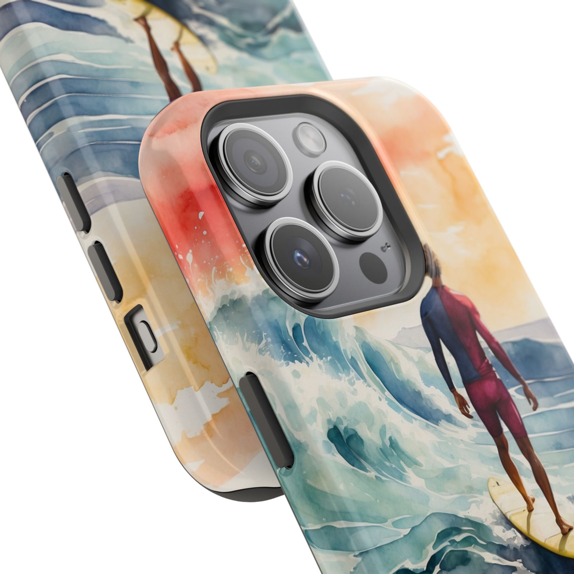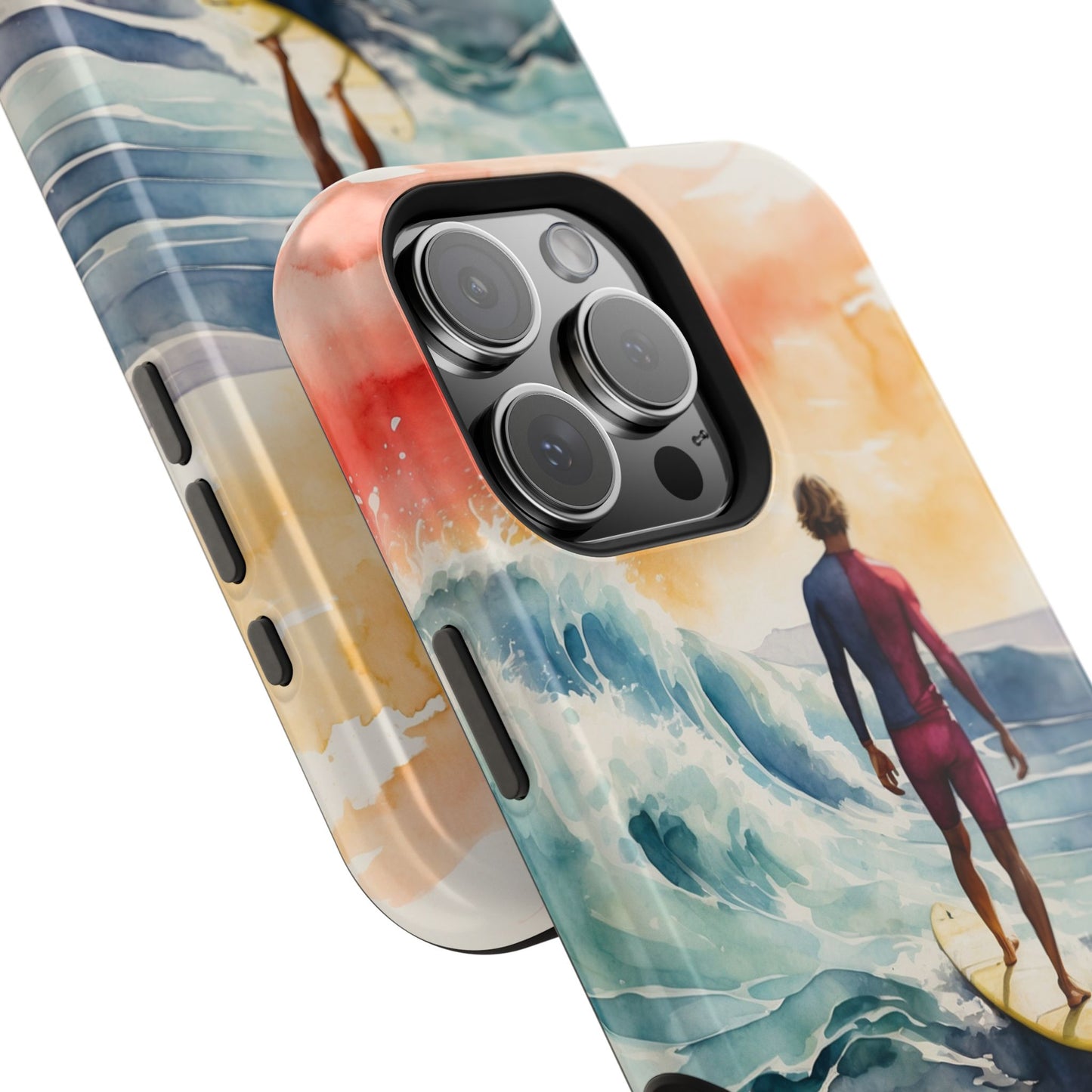 Surfer’s Sunset Wave MagSafe iPhone Case – Vibrant Watercolor Design