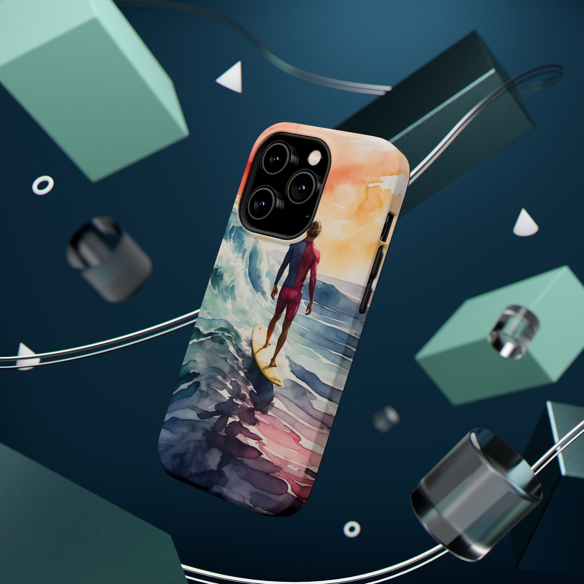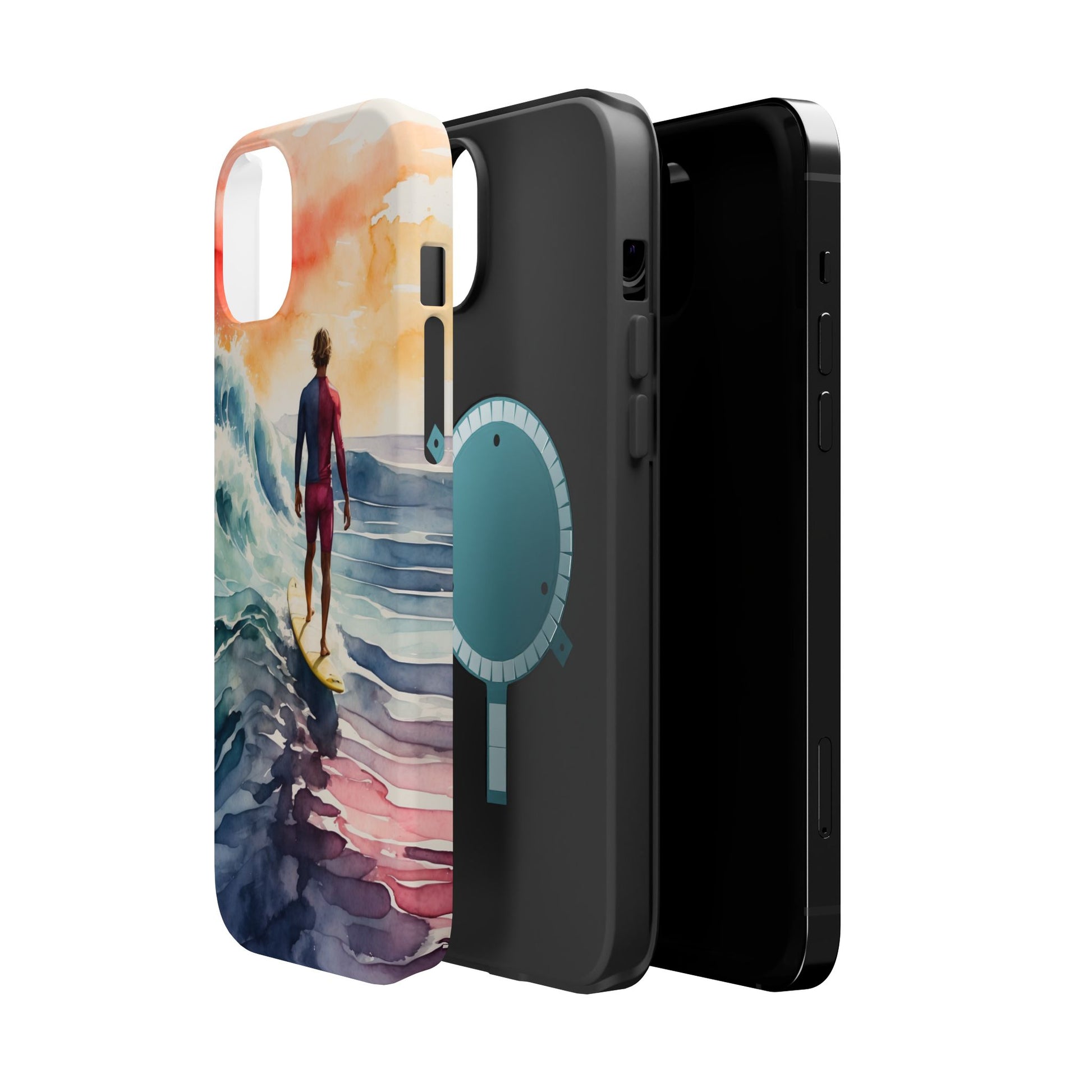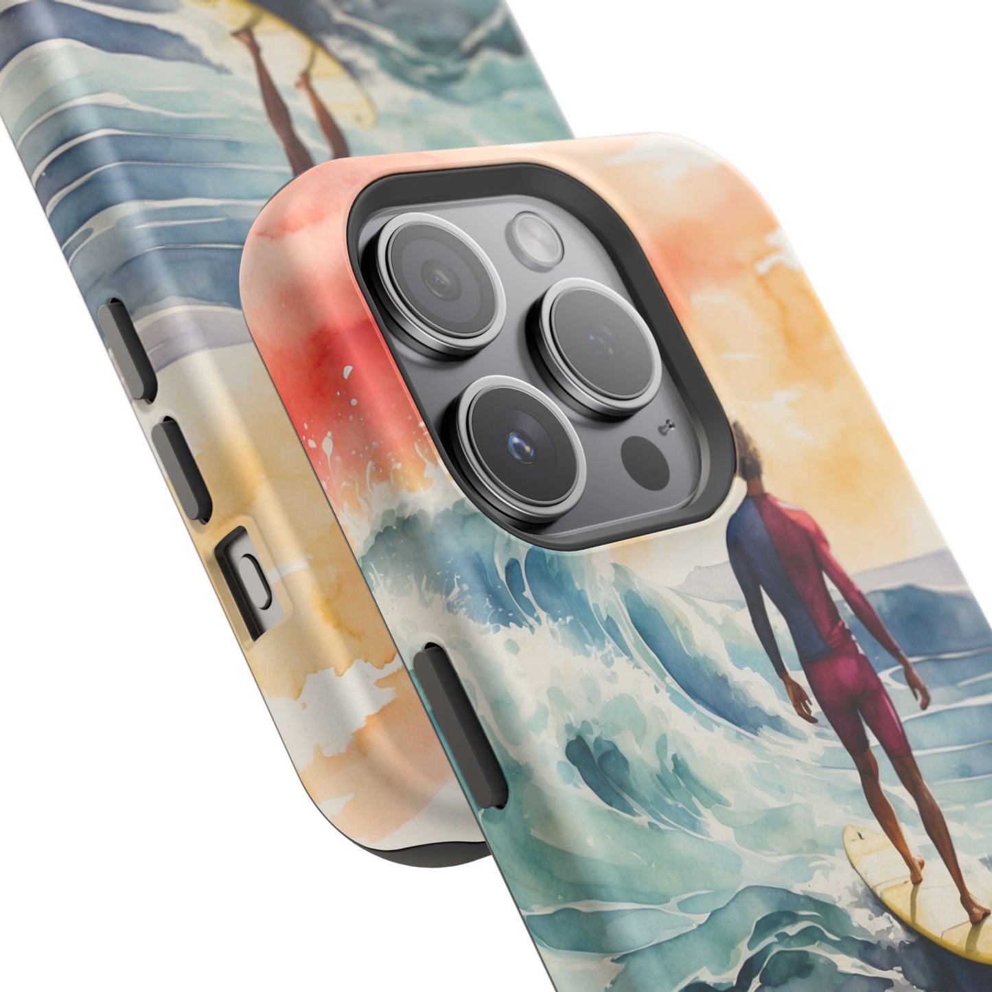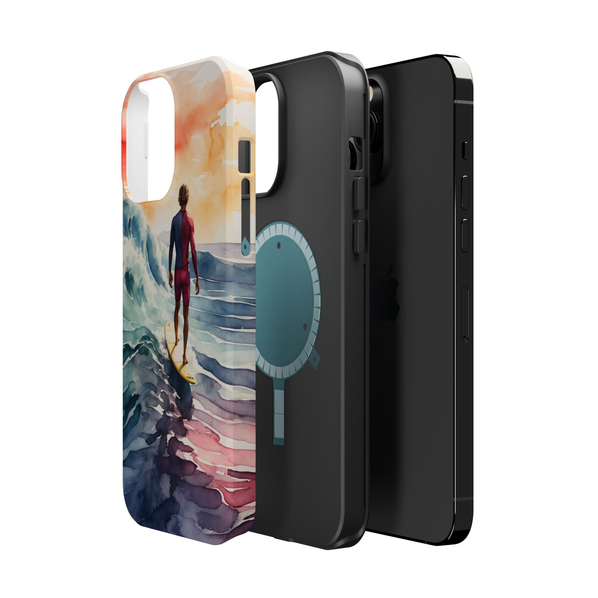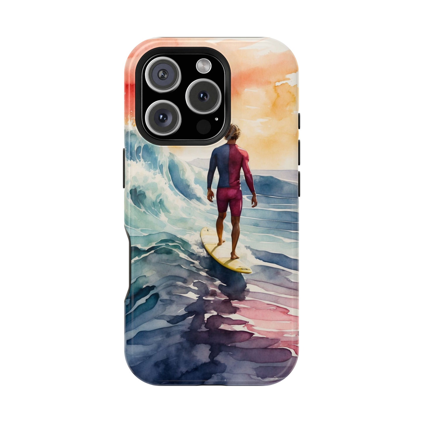 Surfer’s Sunset Wave MagSafe iPhone Case – Vibrant Watercolor Design