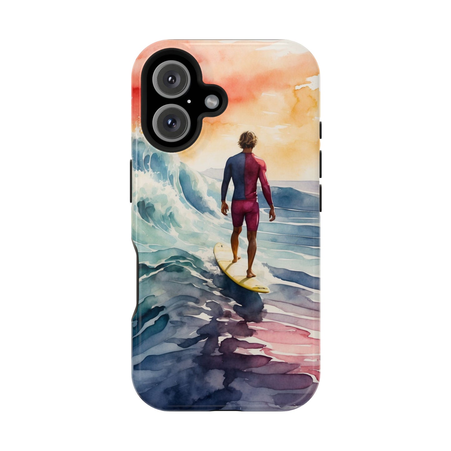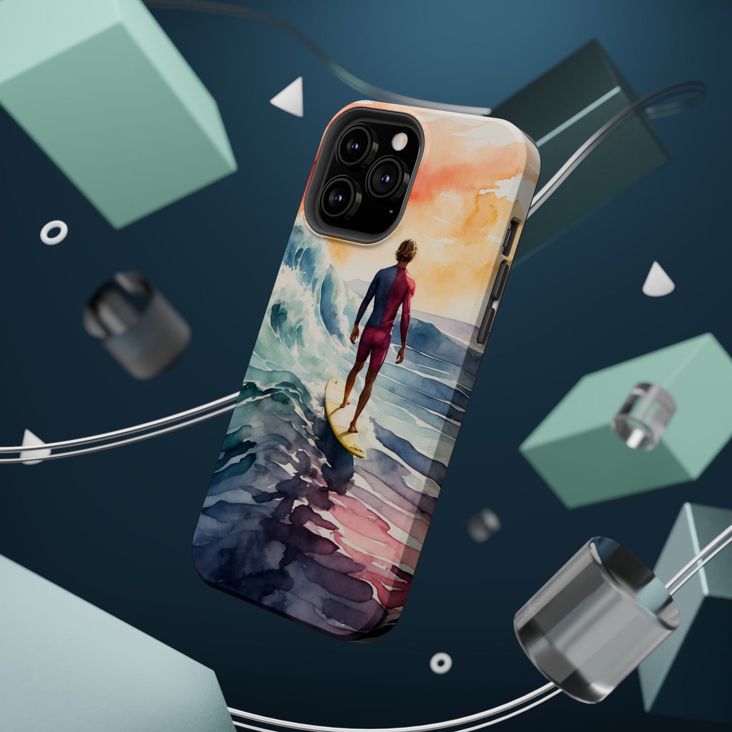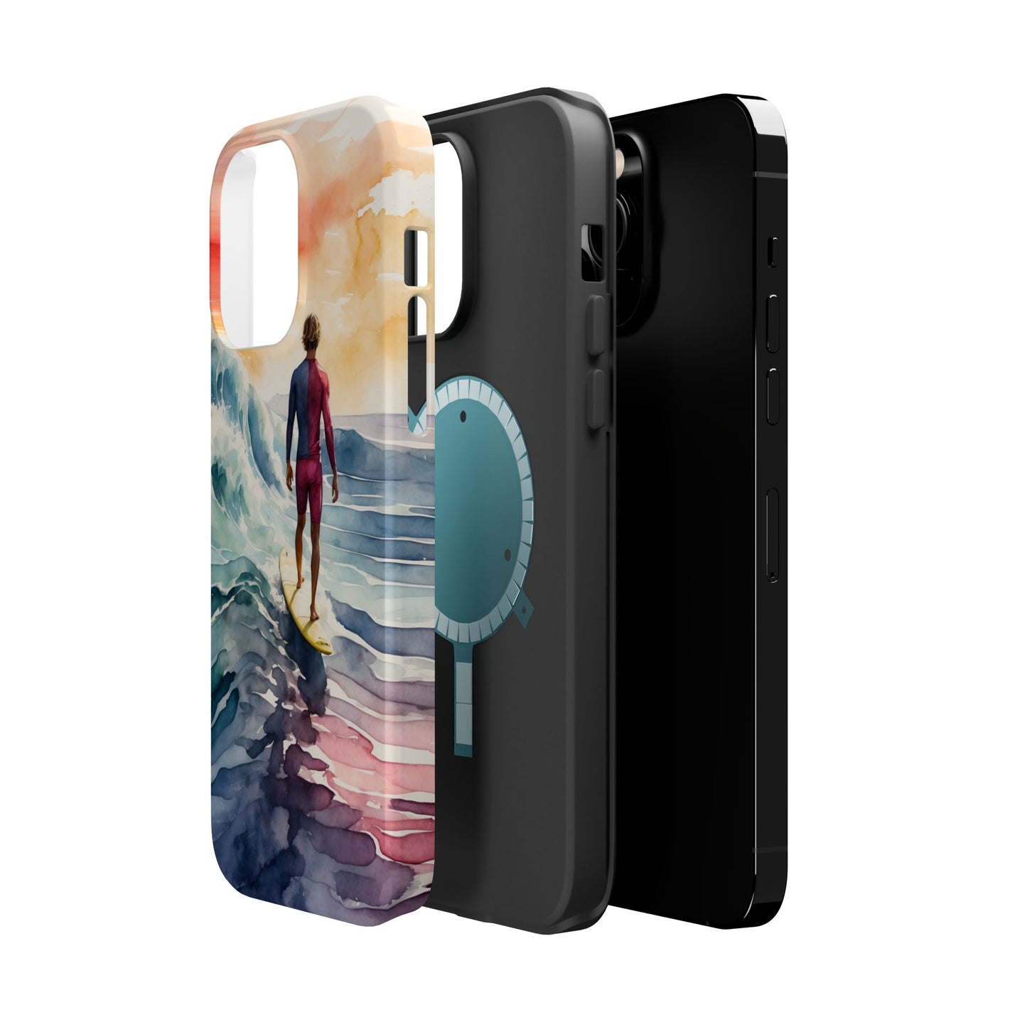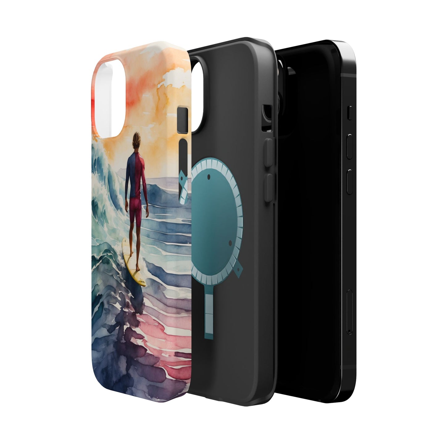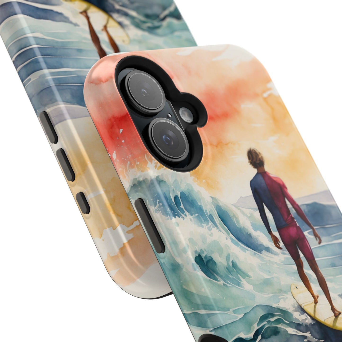 Surfer’s Sunset Wave MagSafe iPhone Case – Vibrant Watercolor Design