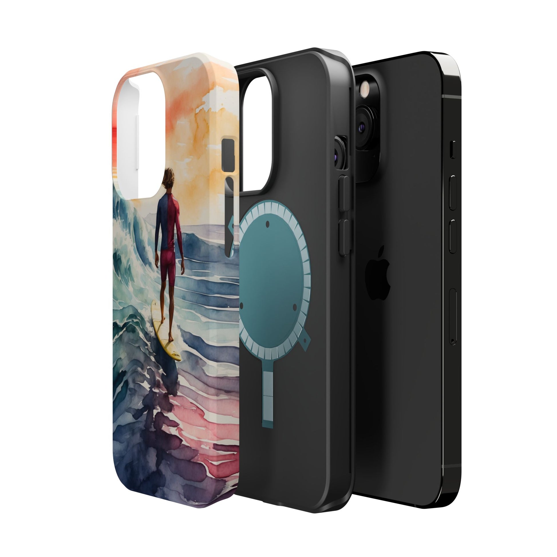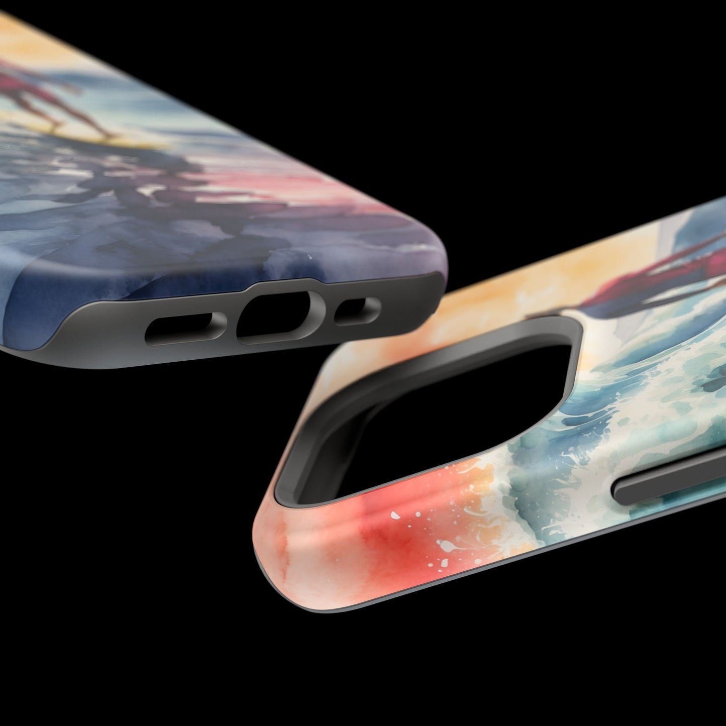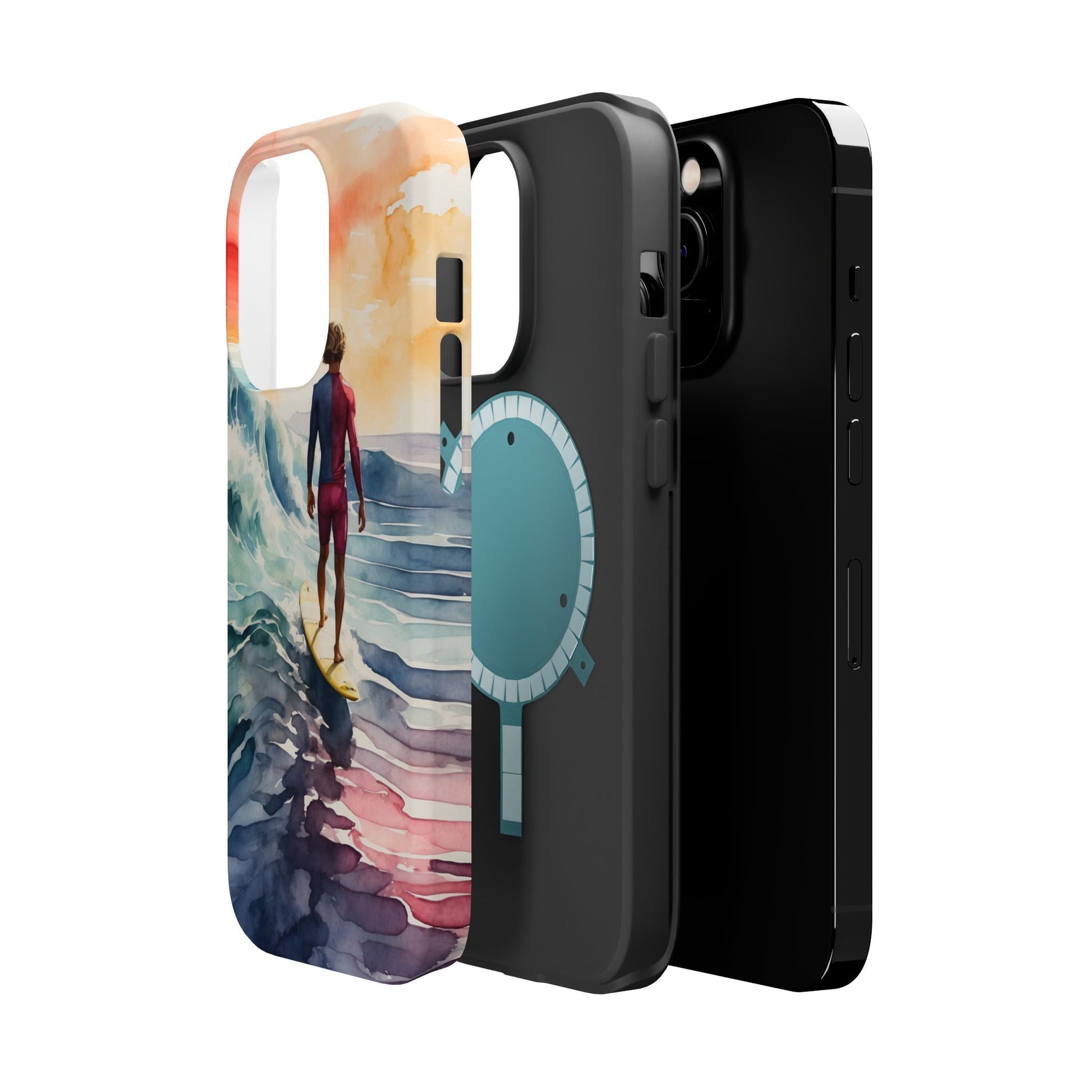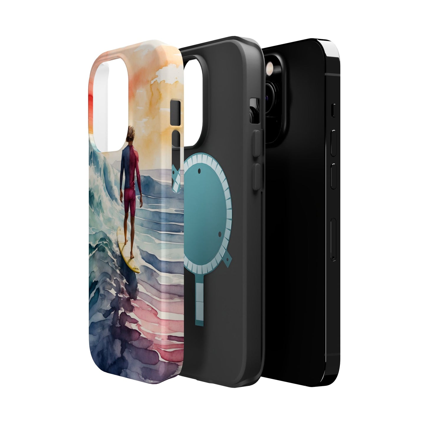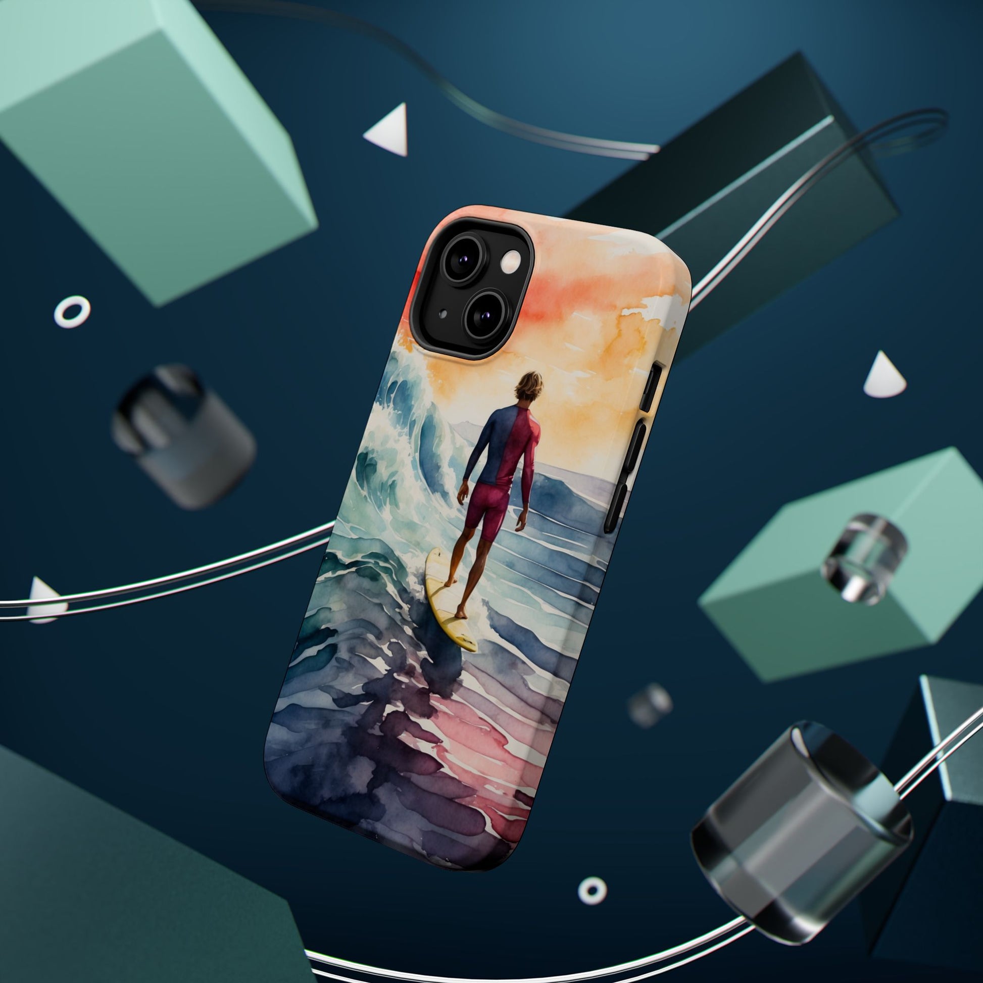 Surfer’s Sunset Wave MagSafe iPhone Case – Vibrant Watercolor Design