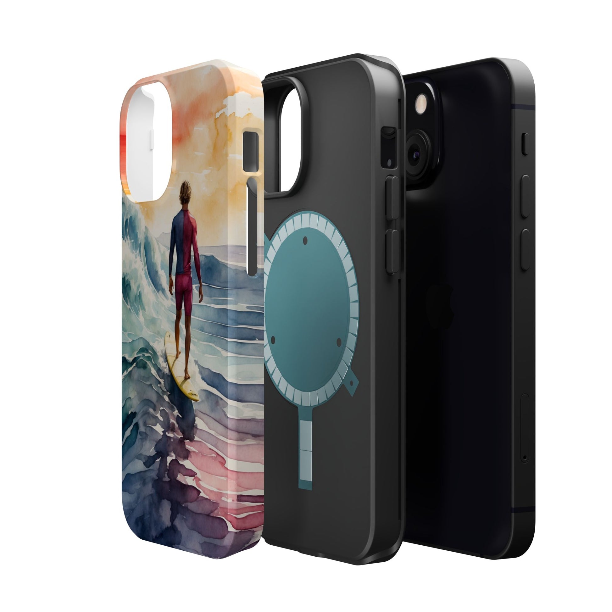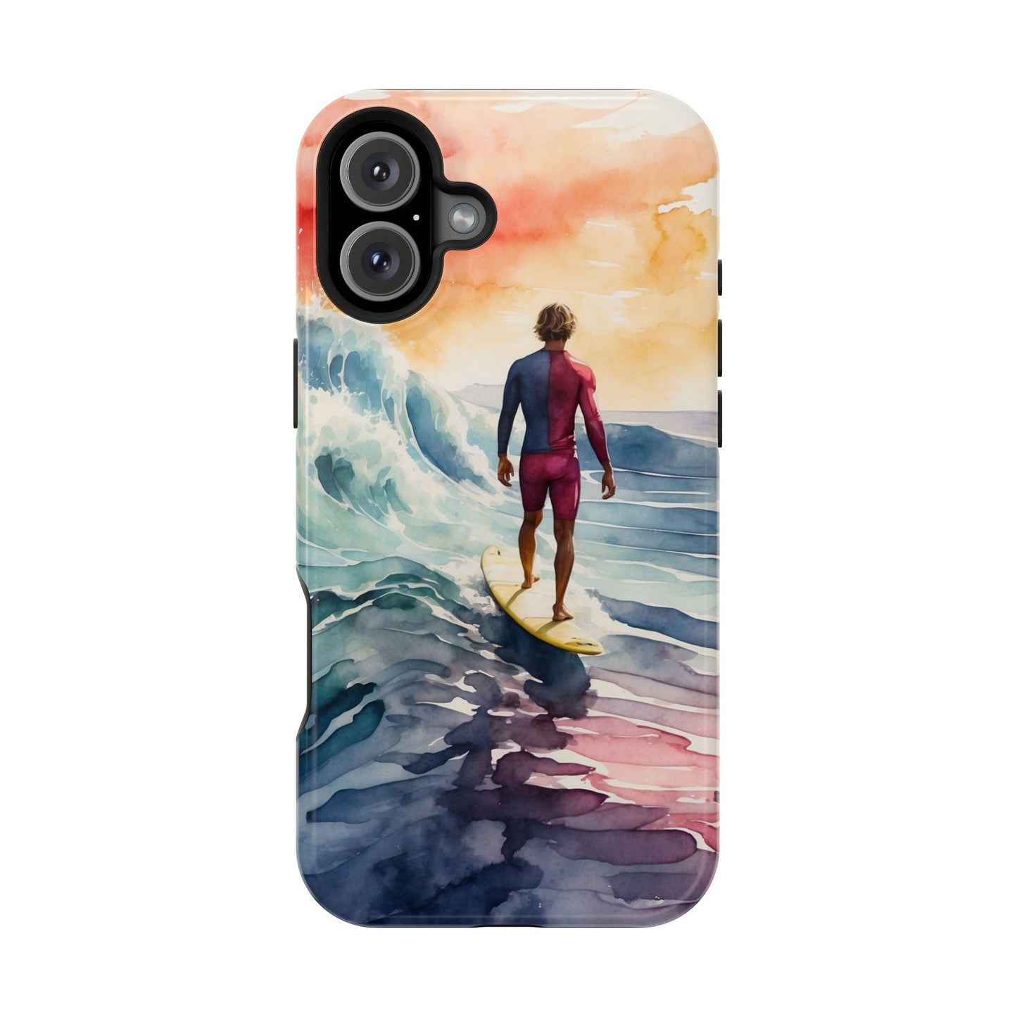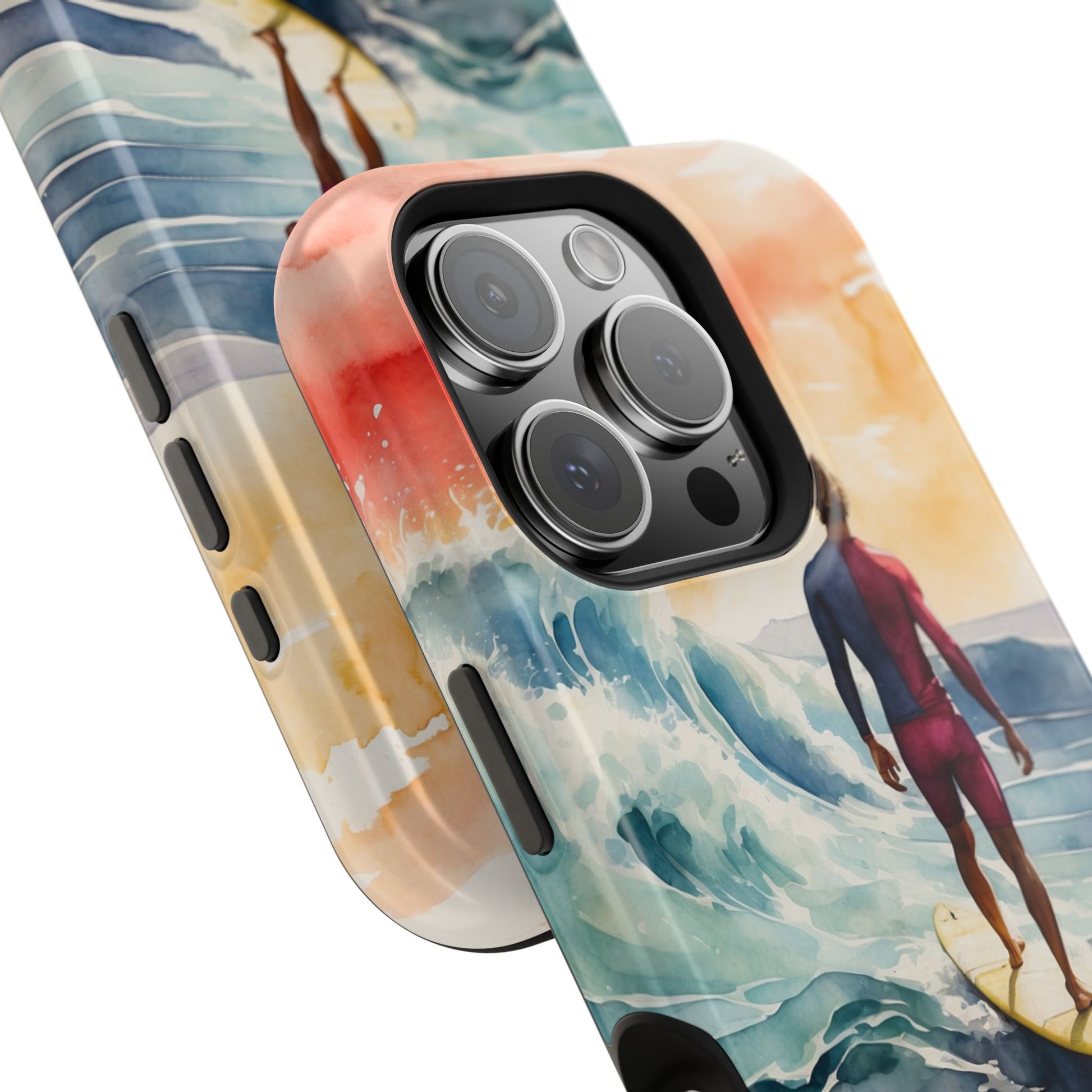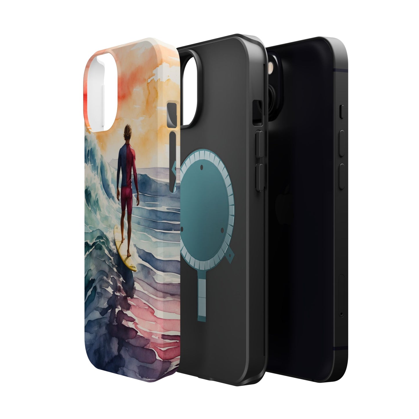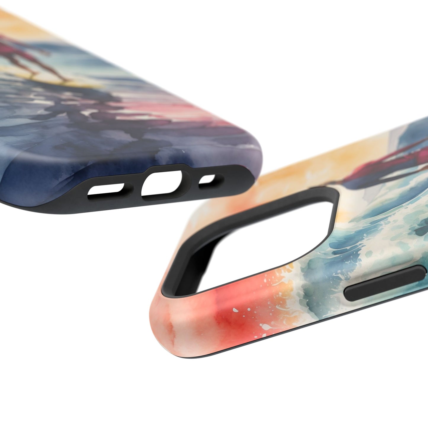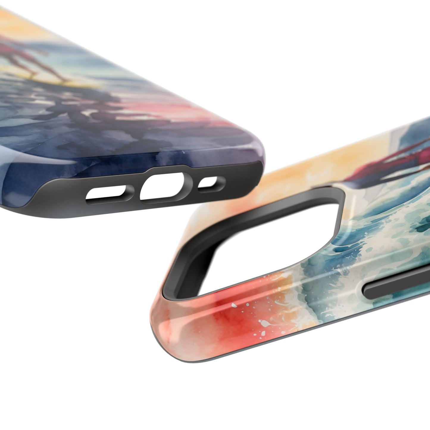 Surfer’s Sunset Wave MagSafe iPhone Case – Vibrant Watercolor Design
