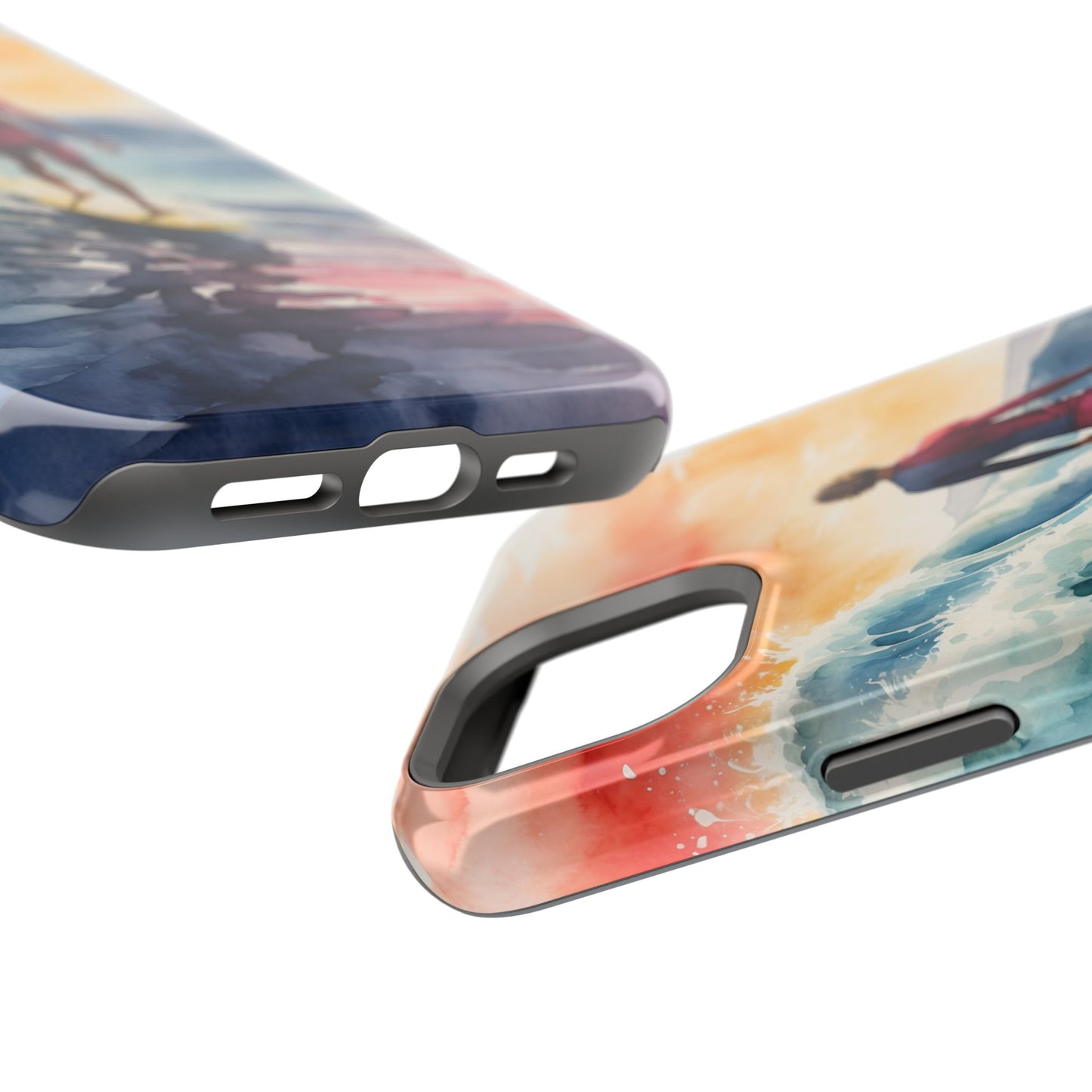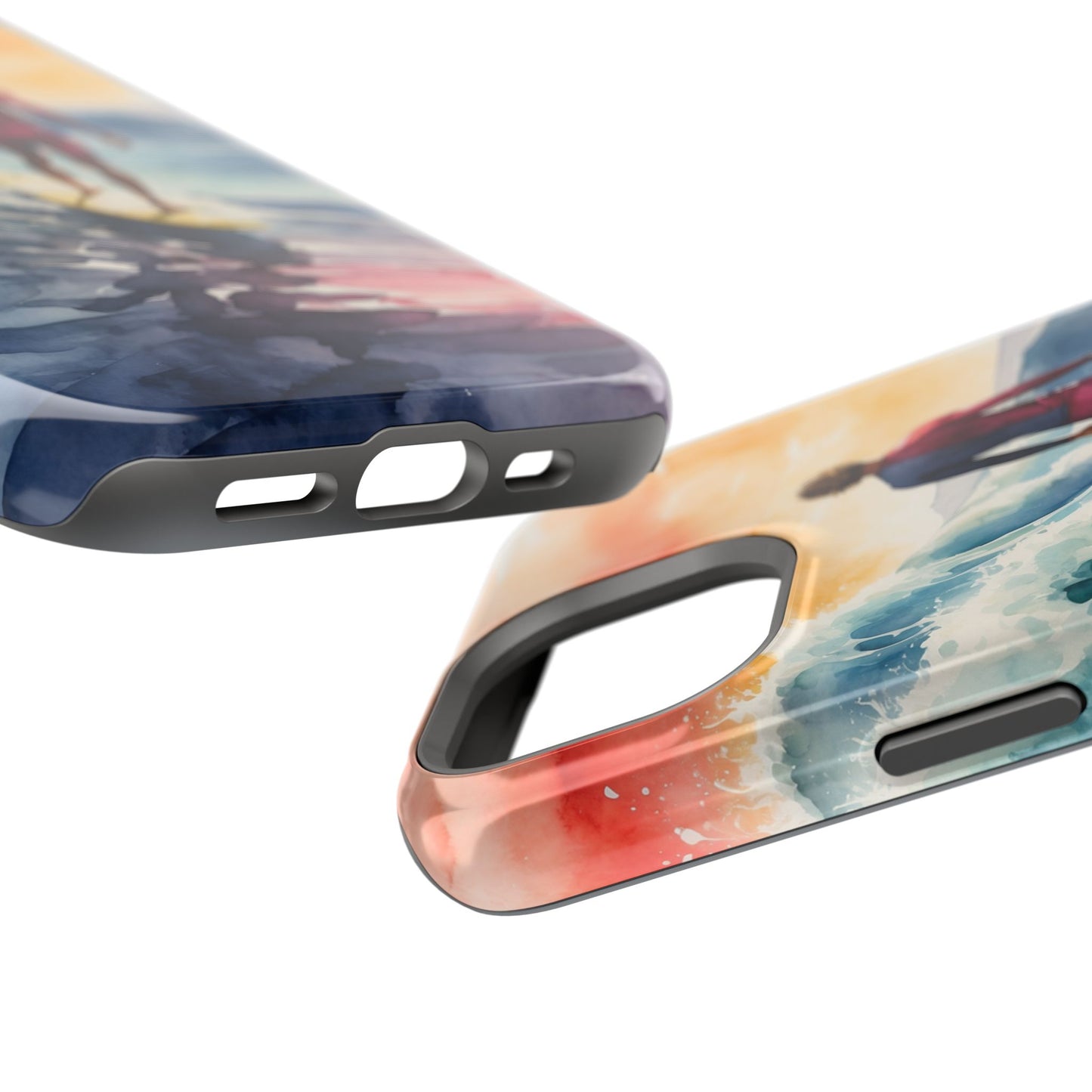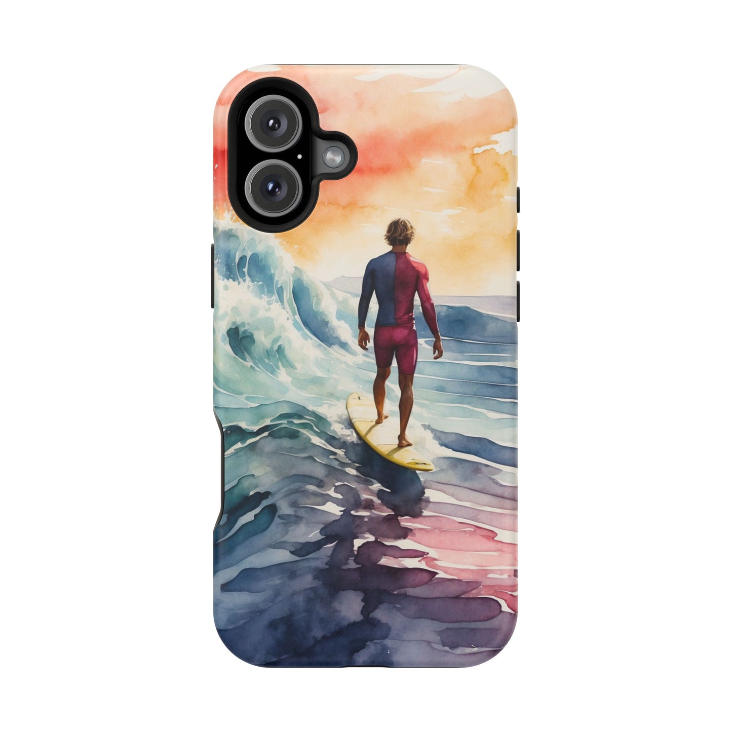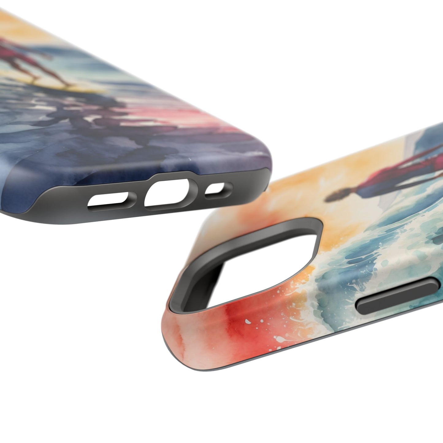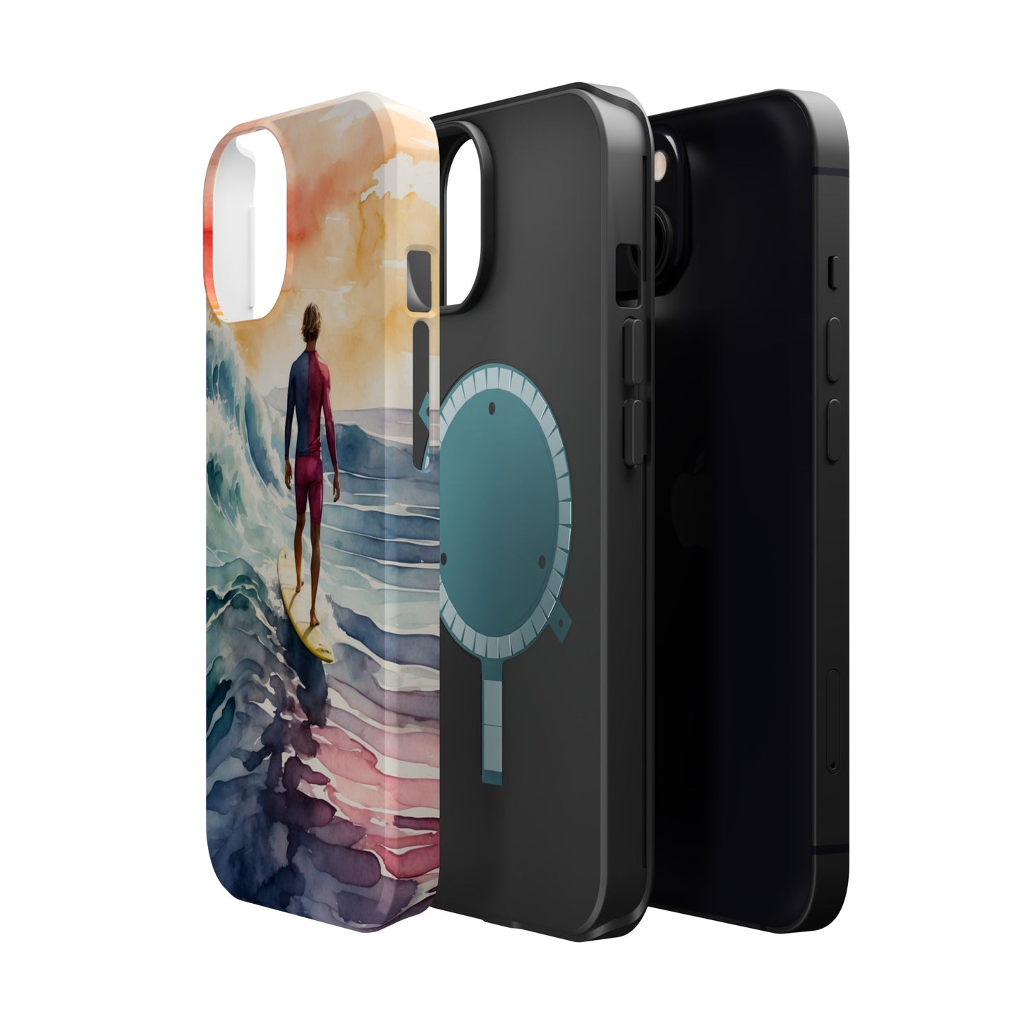 Surfer’s Sunset Wave MagSafe iPhone Case – Vibrant Watercolor Design