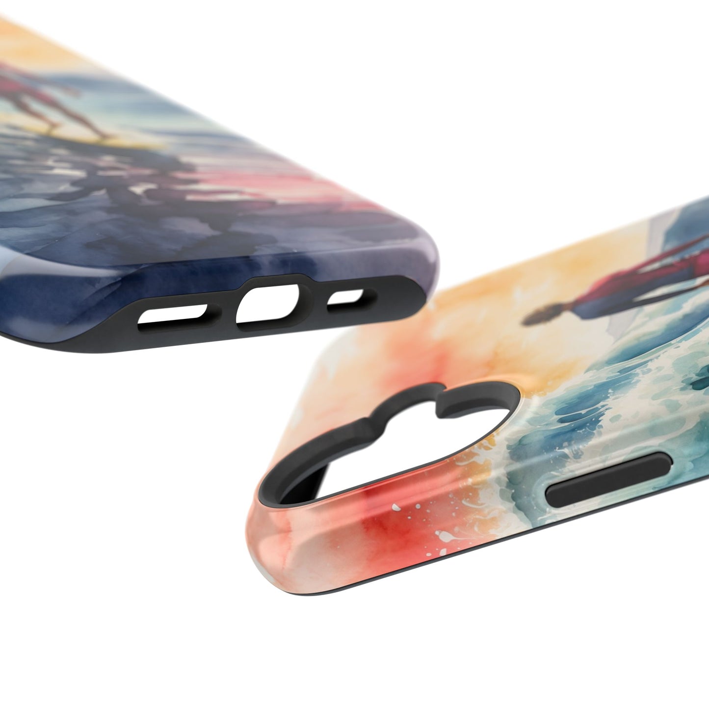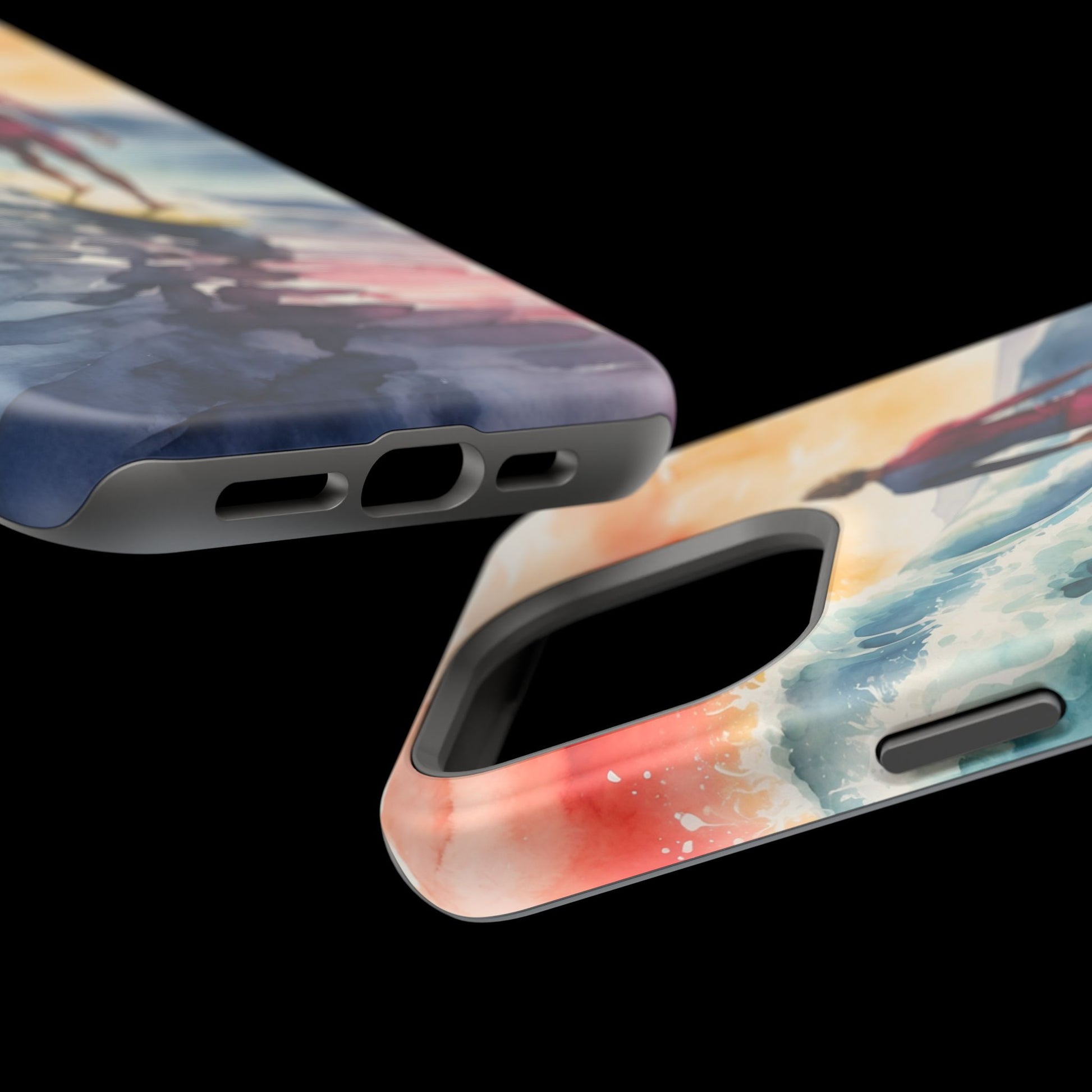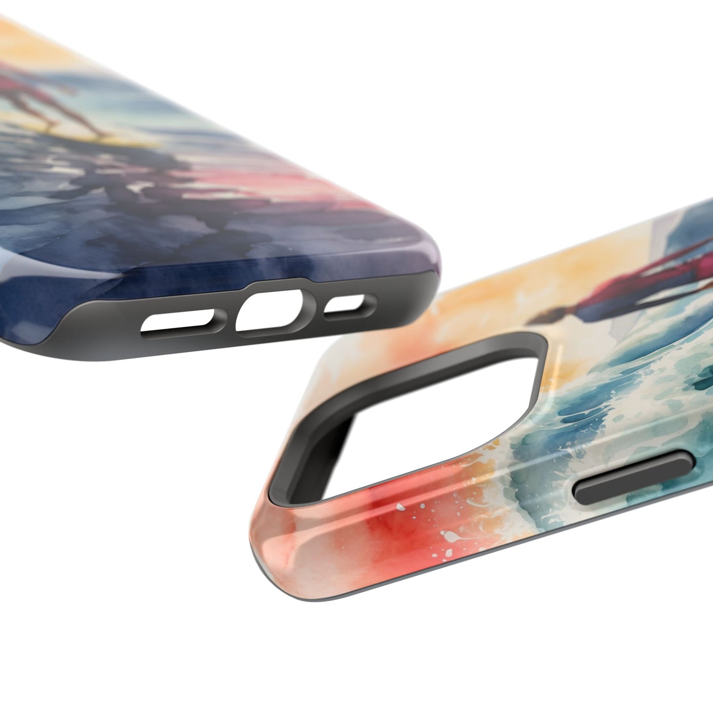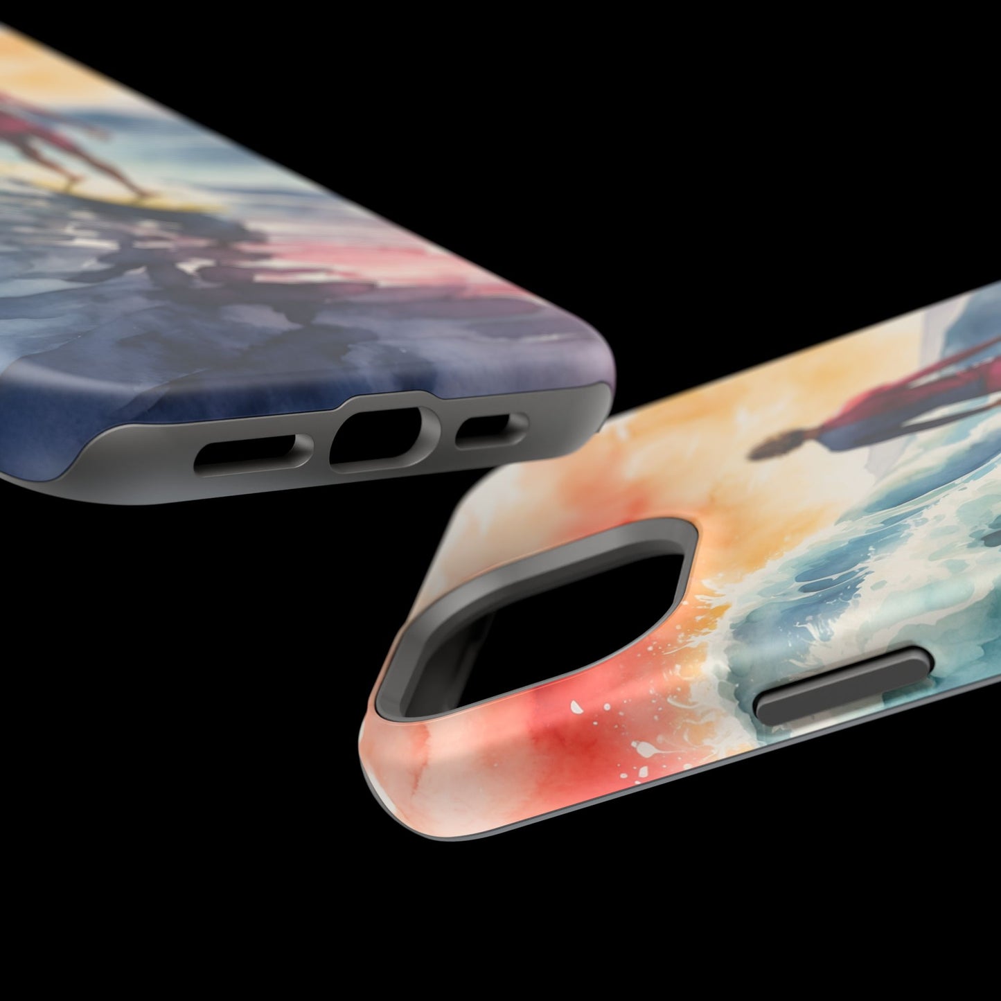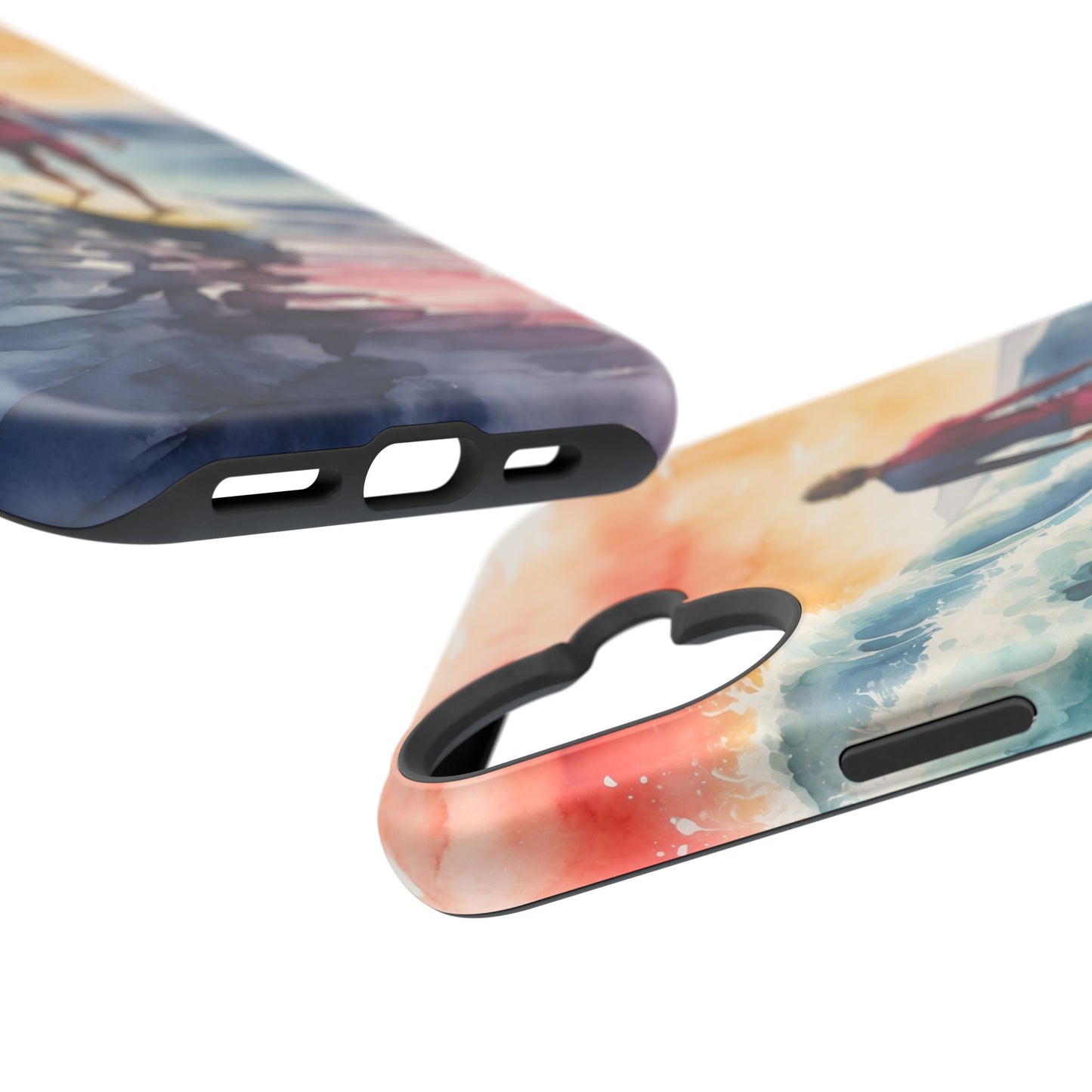 Surfer’s Sunset Wave MagSafe iPhone Case – Vibrant Watercolor Design