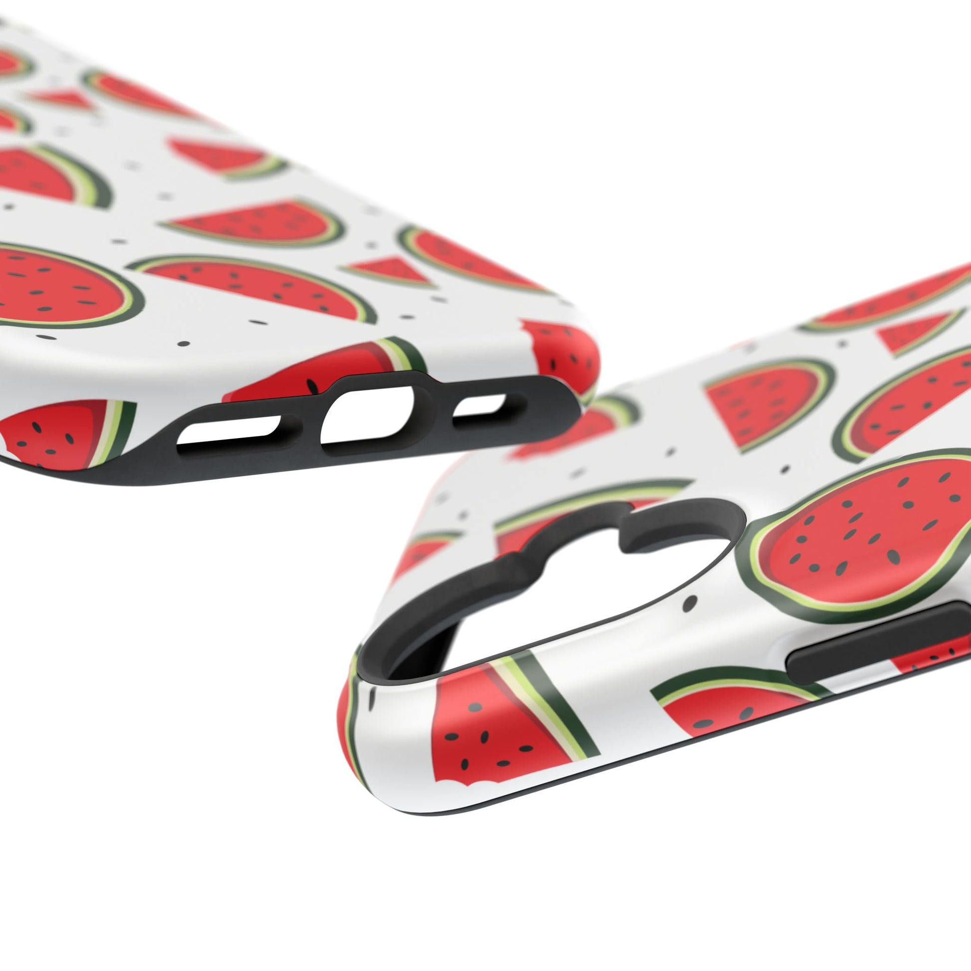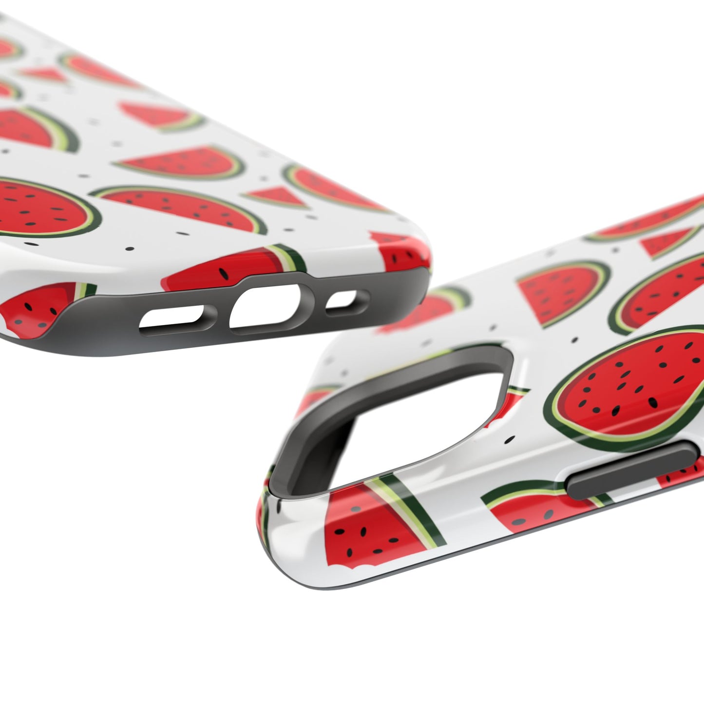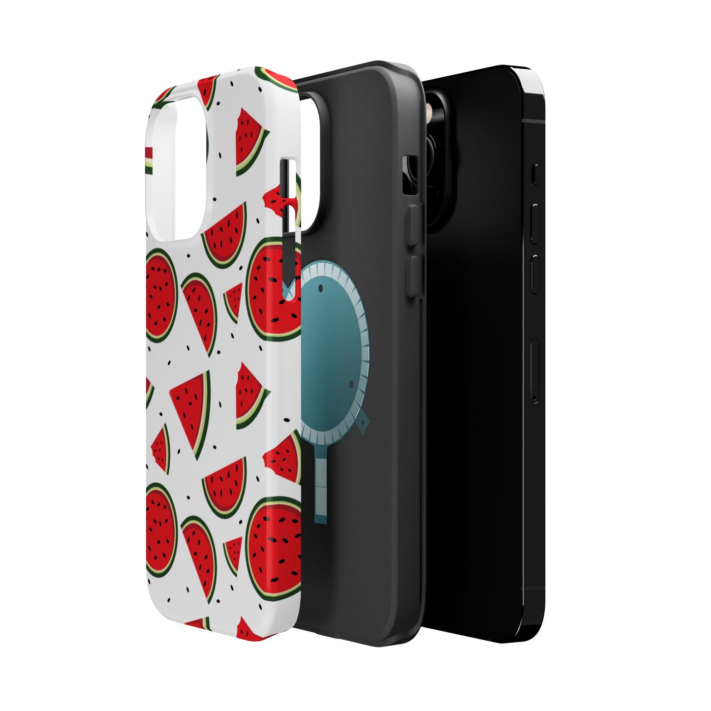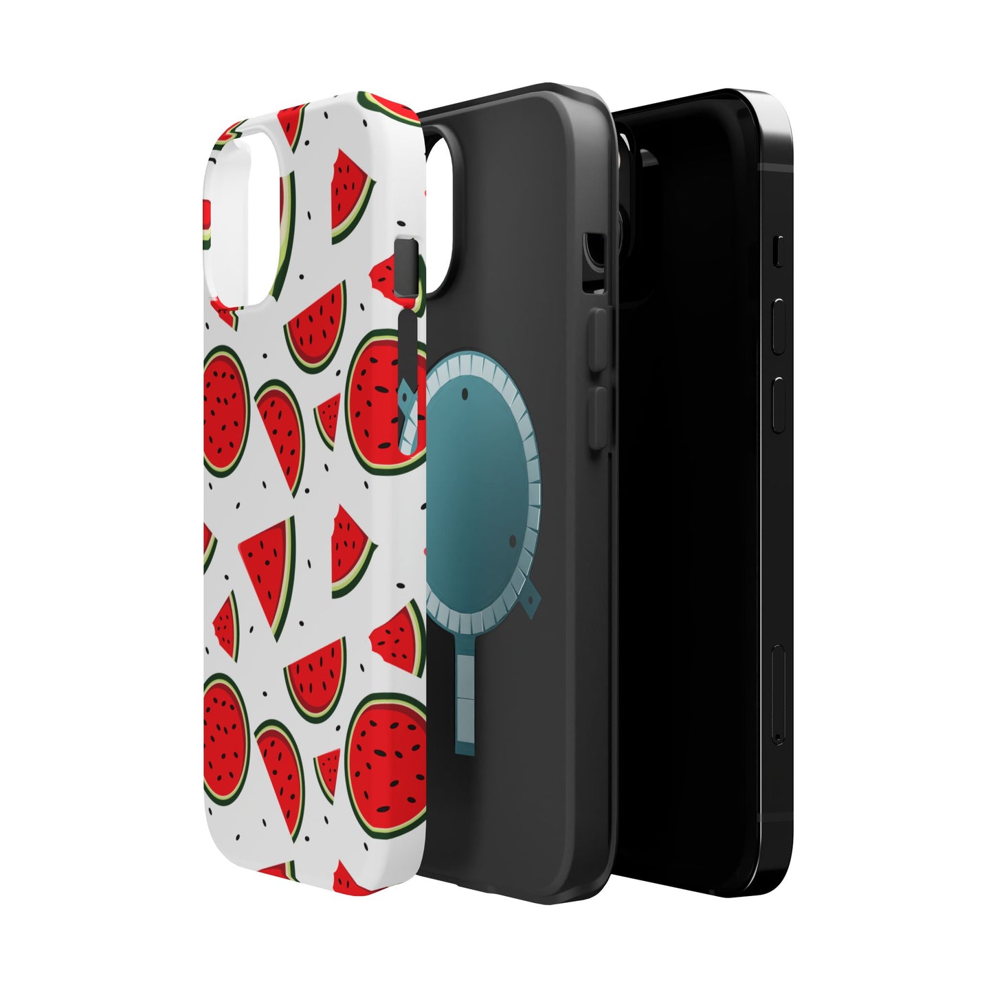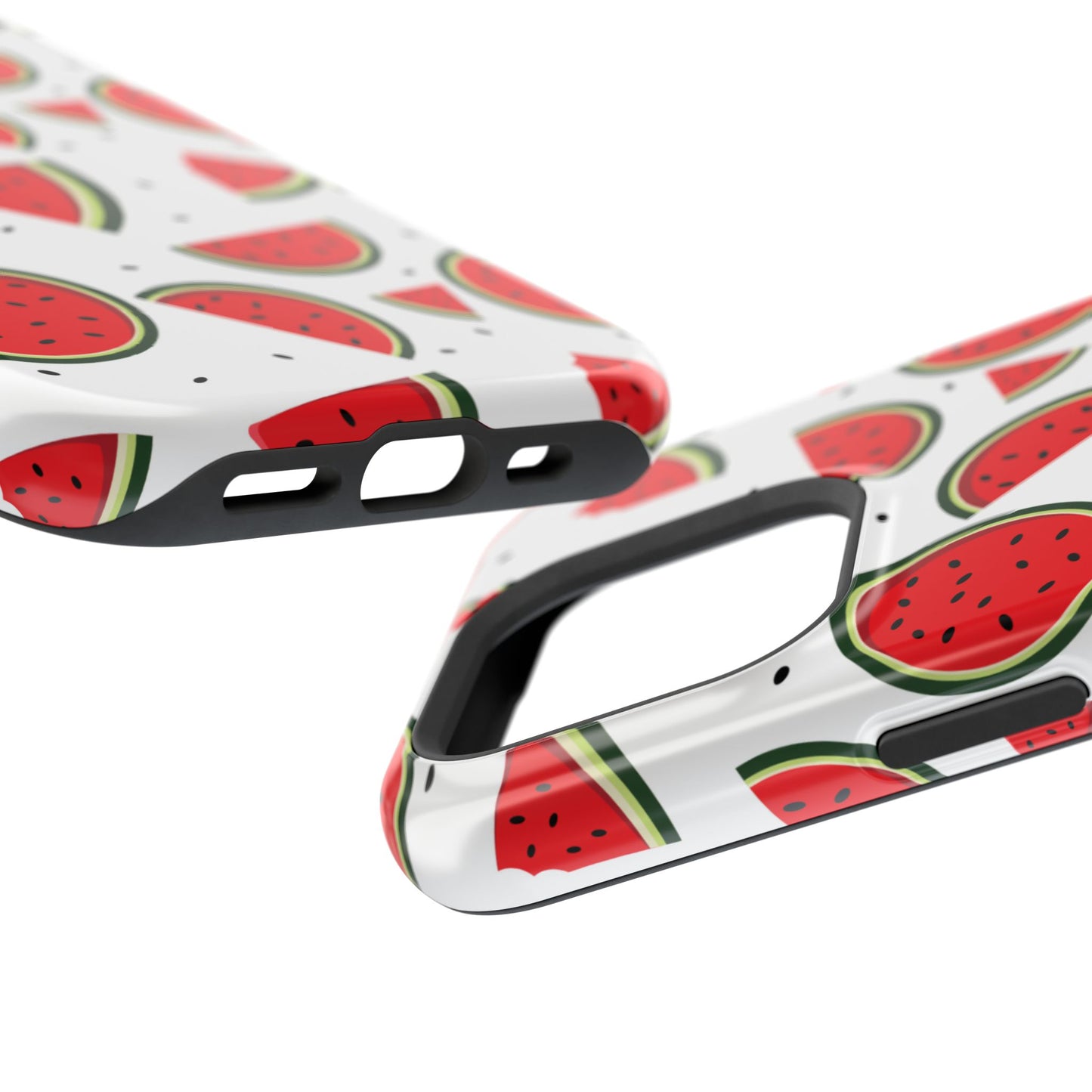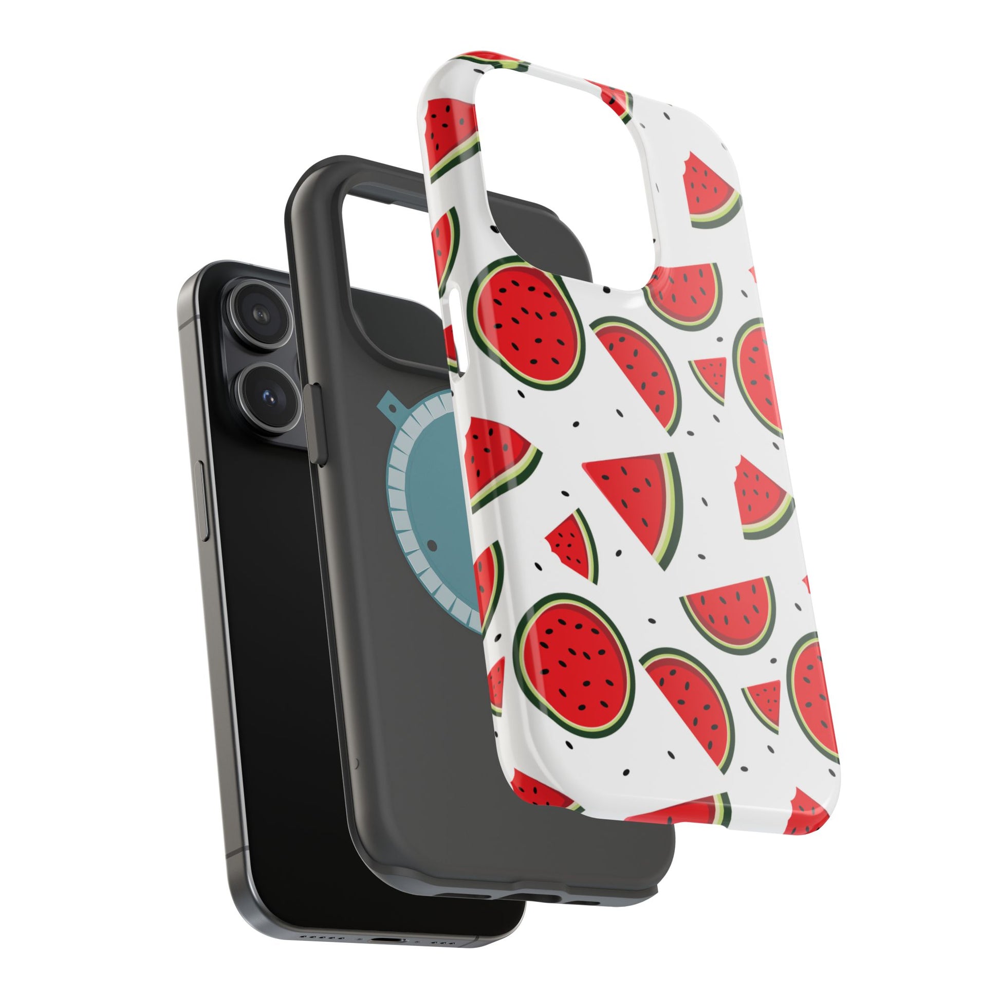 Stay cool and stylish with our Sweet Watermelon MagSafe iPhone Case! Featuring a cheerful pattern of vibrant watermelon slices and rounds on a crisp white background, this case adds a fresh and playful touch to your phone. Perfect for capturing those summer vibes all year round, the design is fun yet minimal, making it easy to match with any look. Made with a tough polycarbonate shell and a shock-absorbing TPU liner, this case offers top-notch protection while keeping your phone cute and colorful.