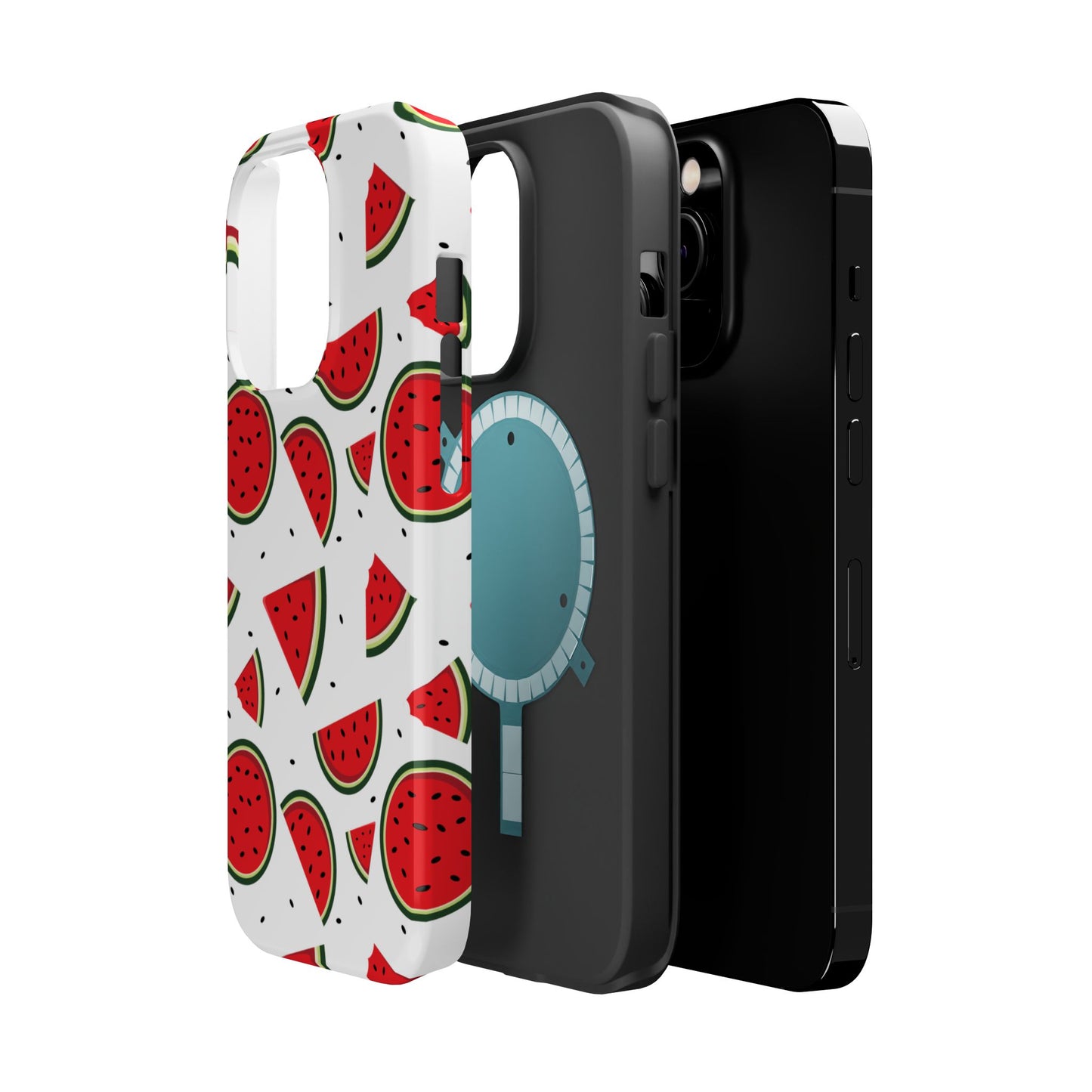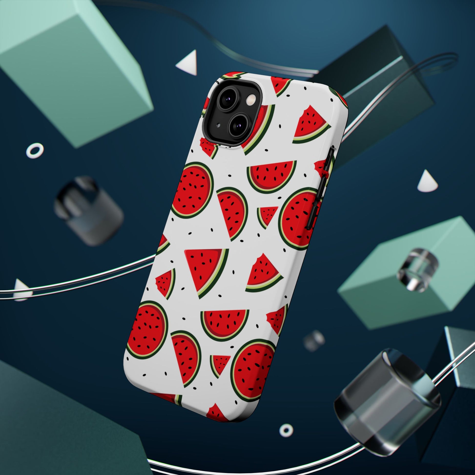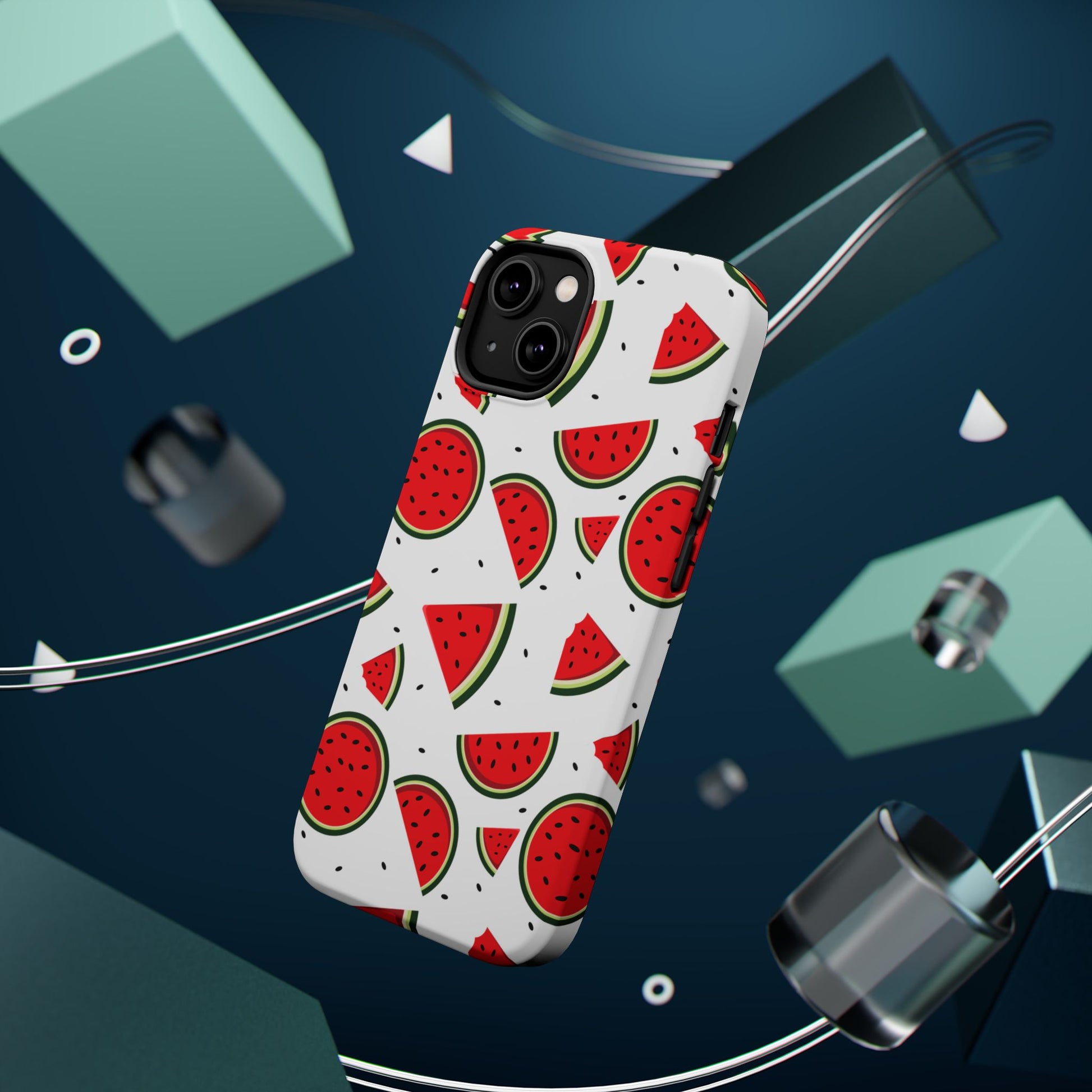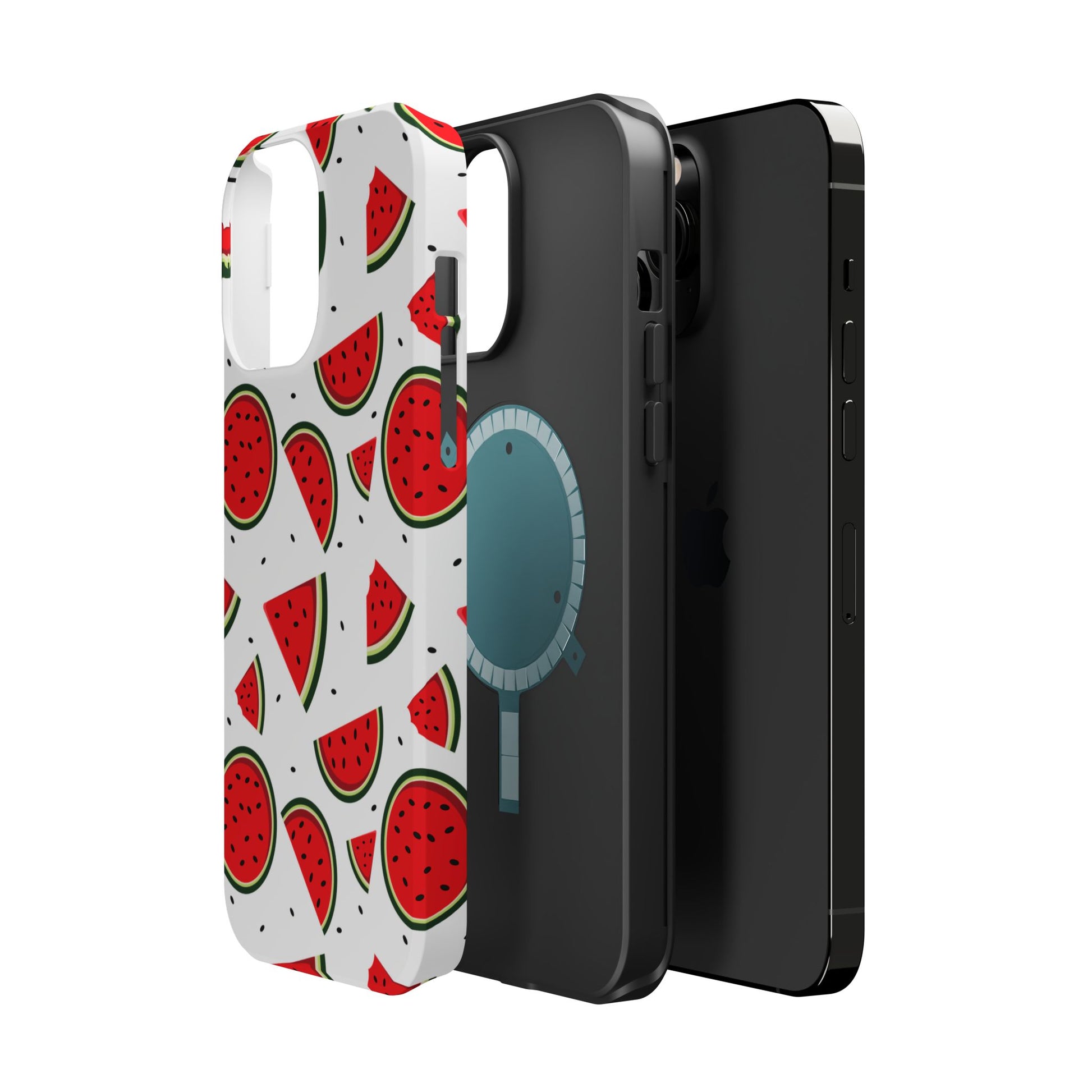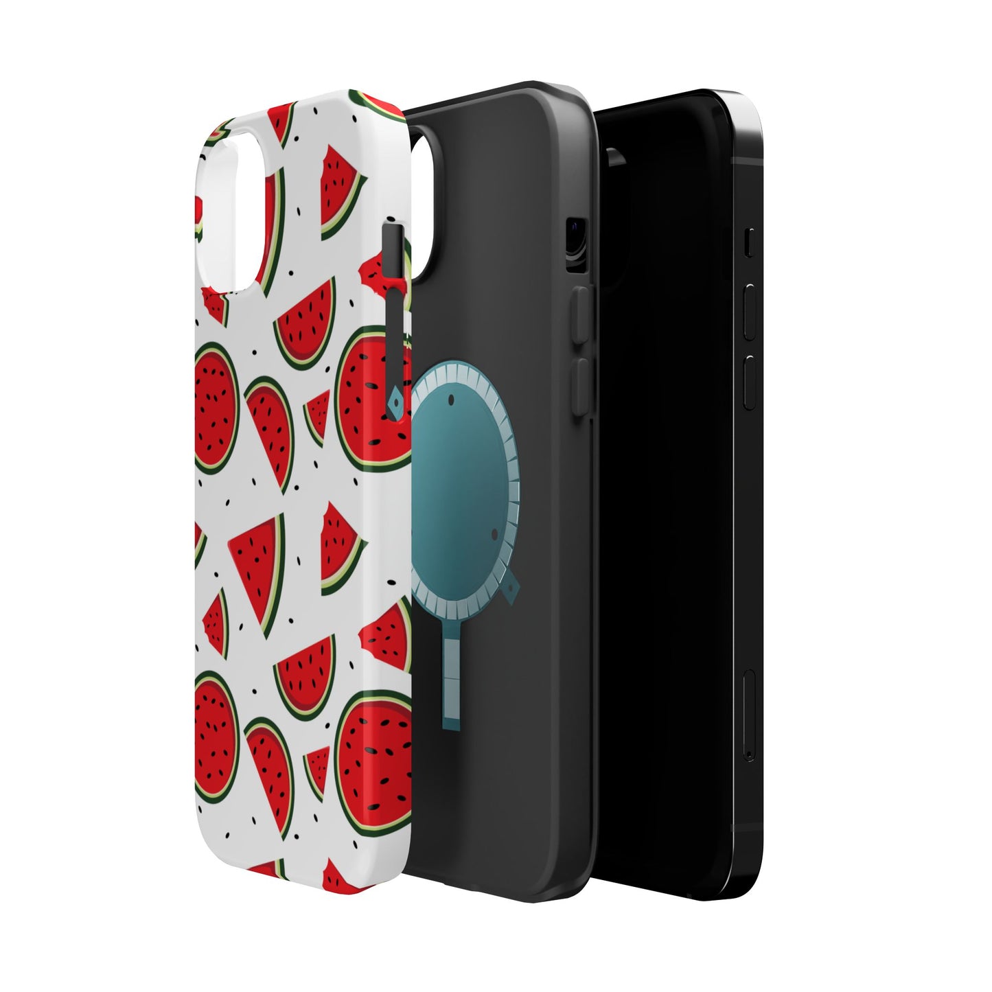 Stay cool and stylish with our Sweet Watermelon MagSafe iPhone Case! Featuring a cheerful pattern of vibrant watermelon slices and rounds on a crisp white background, this case adds a fresh and playful touch to your phone. Perfect for capturing those summer vibes all year round, the design is fun yet minimal, making it easy to match with any look. Made with a tough polycarbonate shell and a shock-absorbing TPU liner, this case offers top-notch protection while keeping your phone cute and colorful.