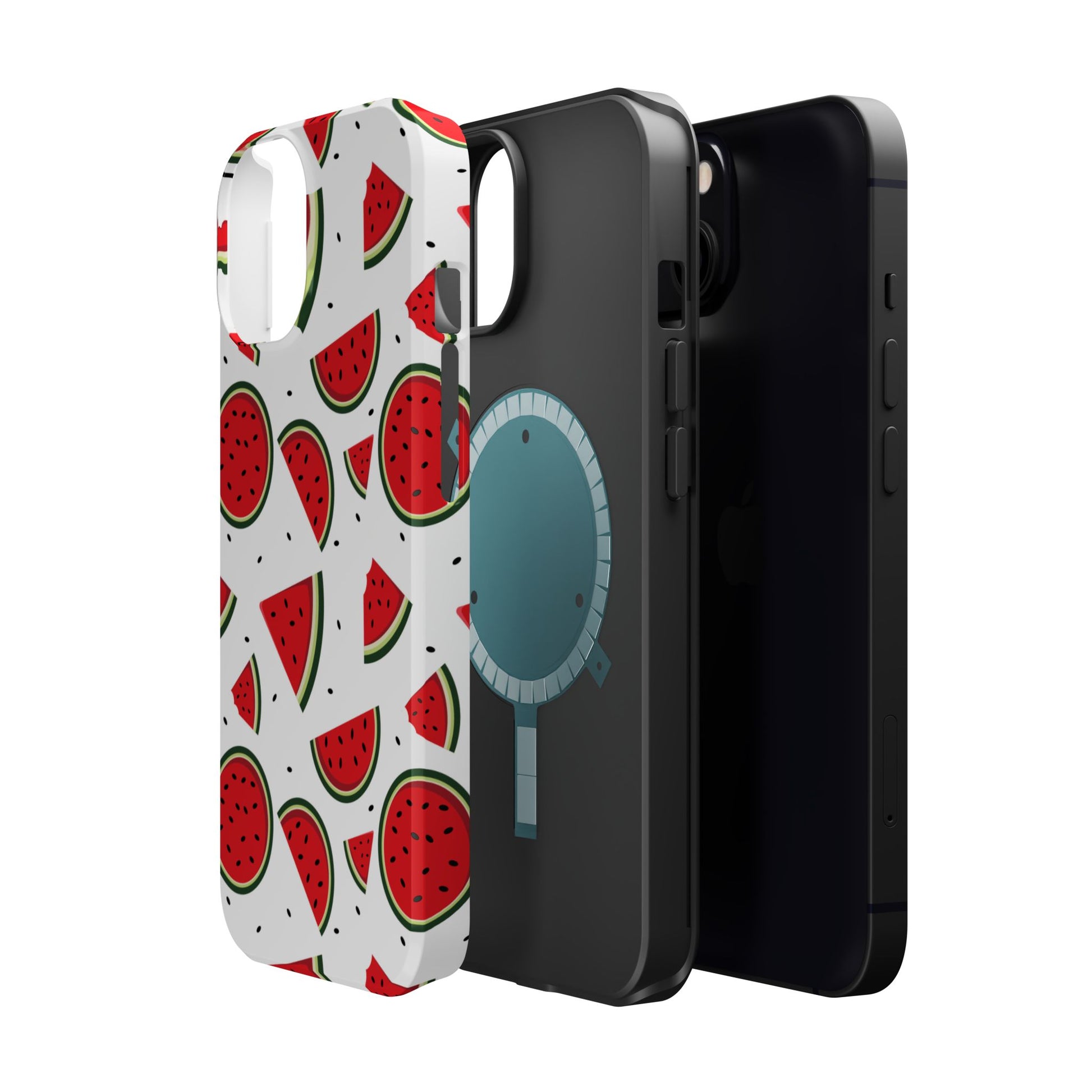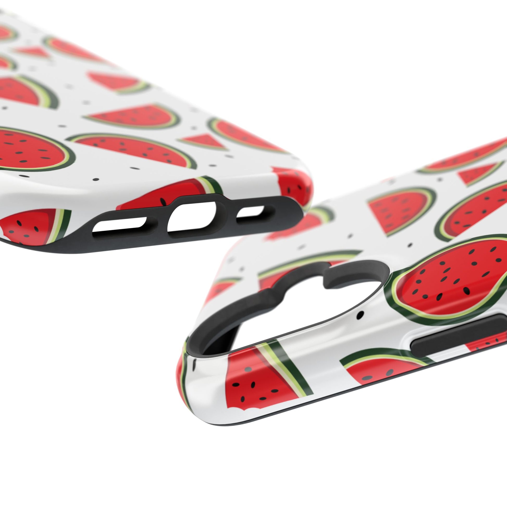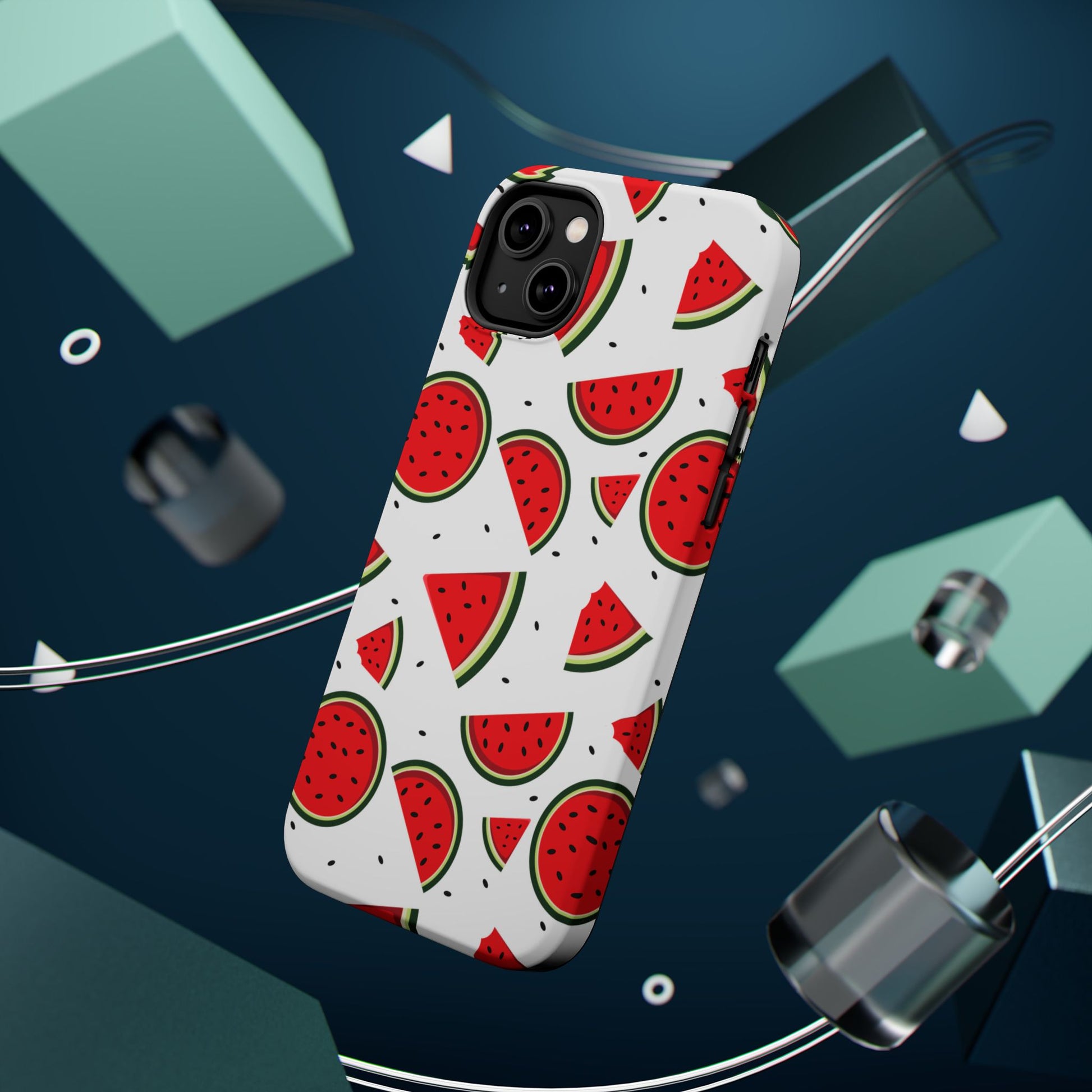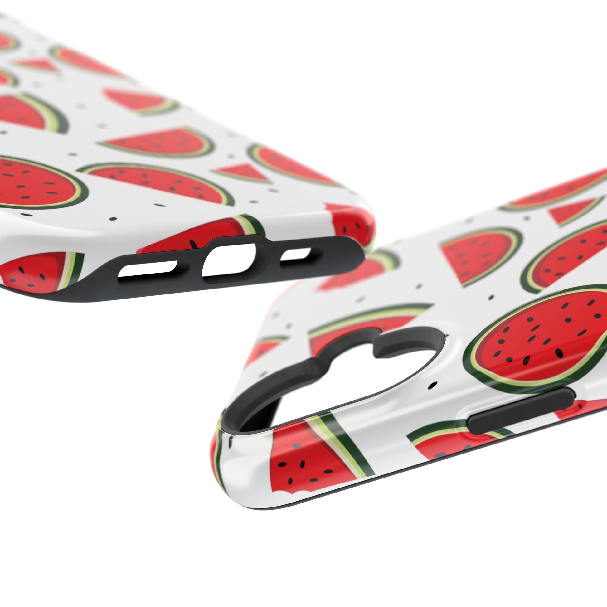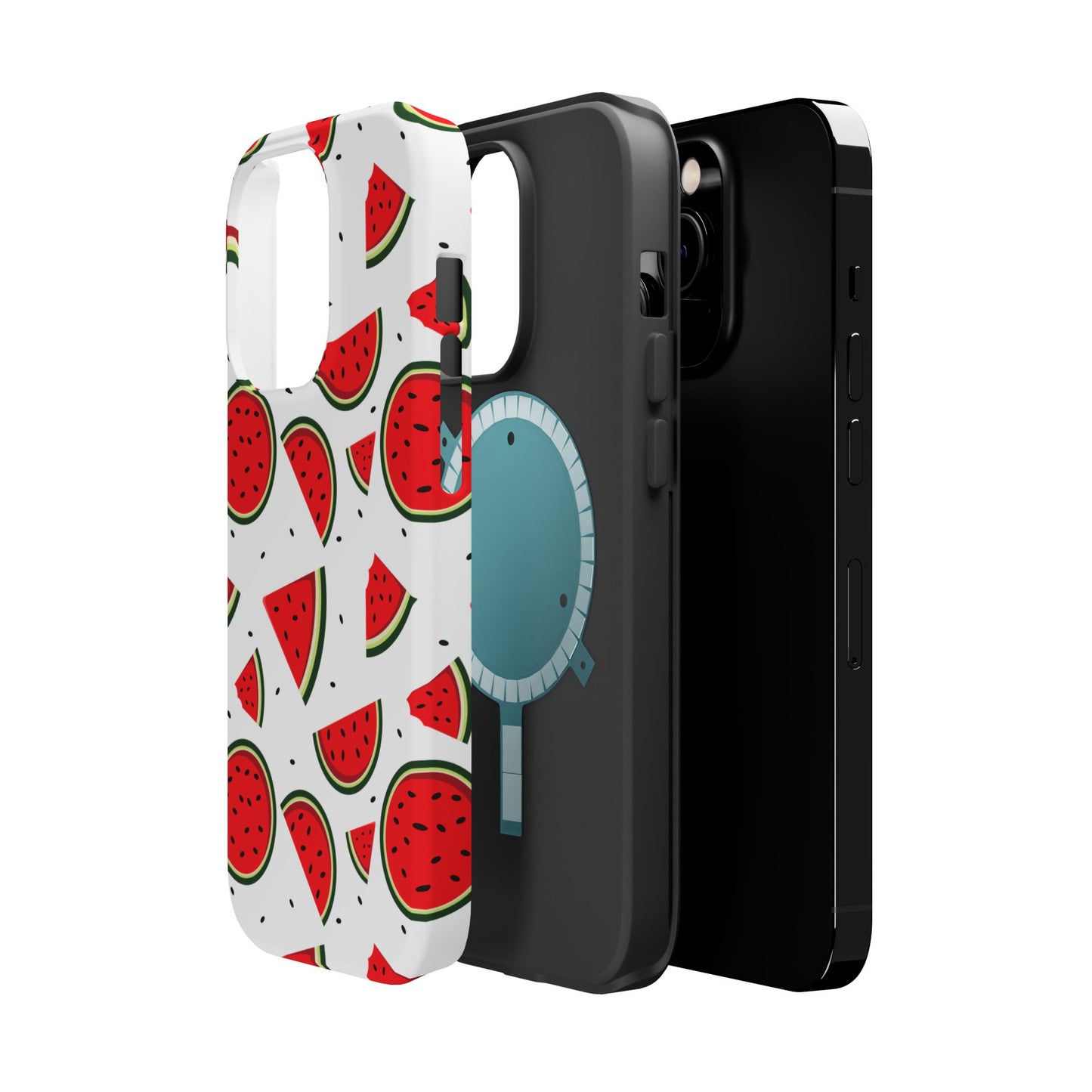 Stay cool and stylish with our Sweet Watermelon MagSafe iPhone Case! Featuring a cheerful pattern of vibrant watermelon slices and rounds on a crisp white background, this case adds a fresh and playful touch to your phone. Perfect for capturing those summer vibes all year round, the design is fun yet minimal, making it easy to match with any look. Made with a tough polycarbonate shell and a shock-absorbing TPU liner, this case offers top-notch protection while keeping your phone cute and colorful.