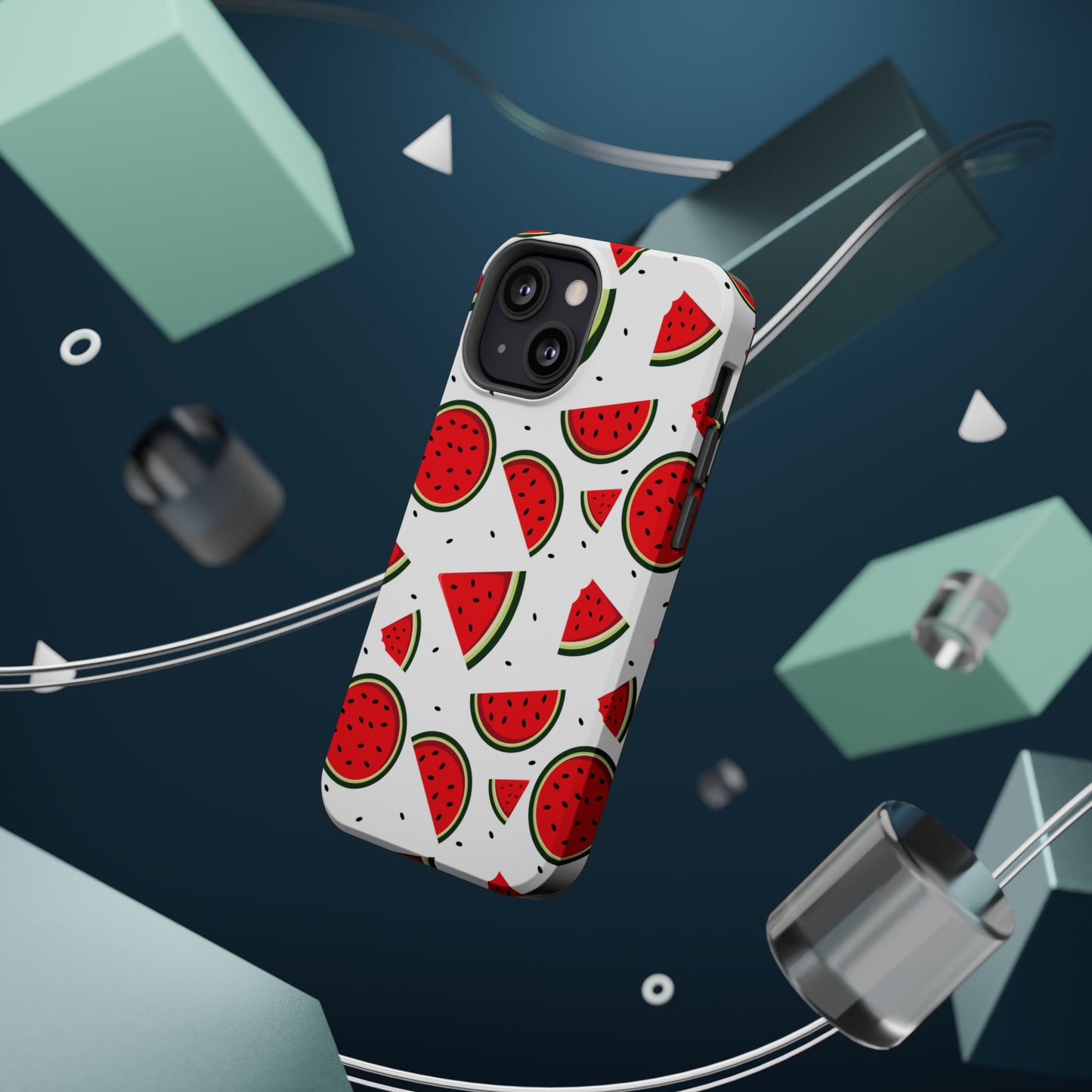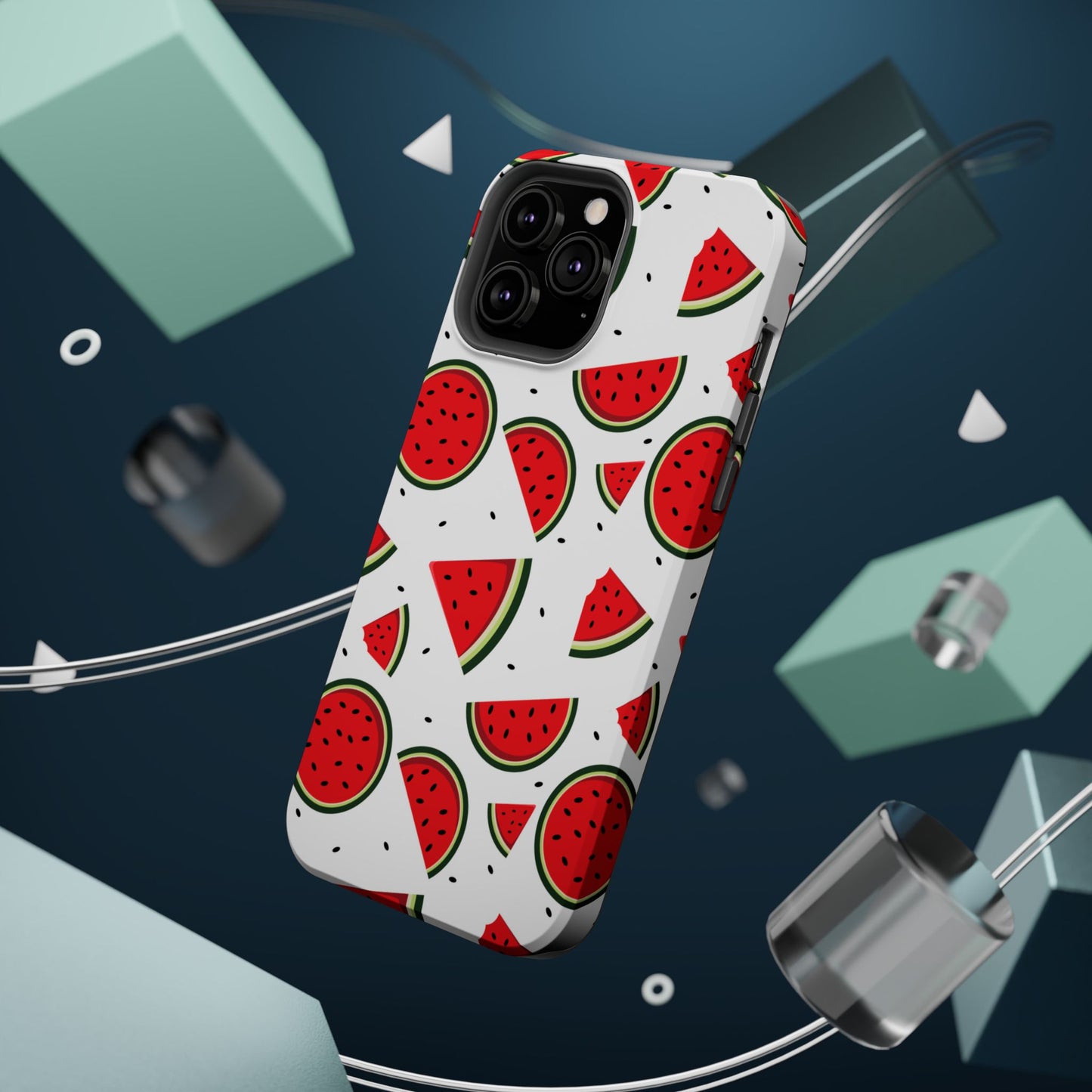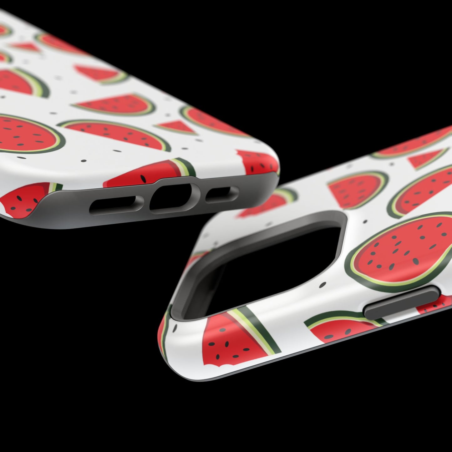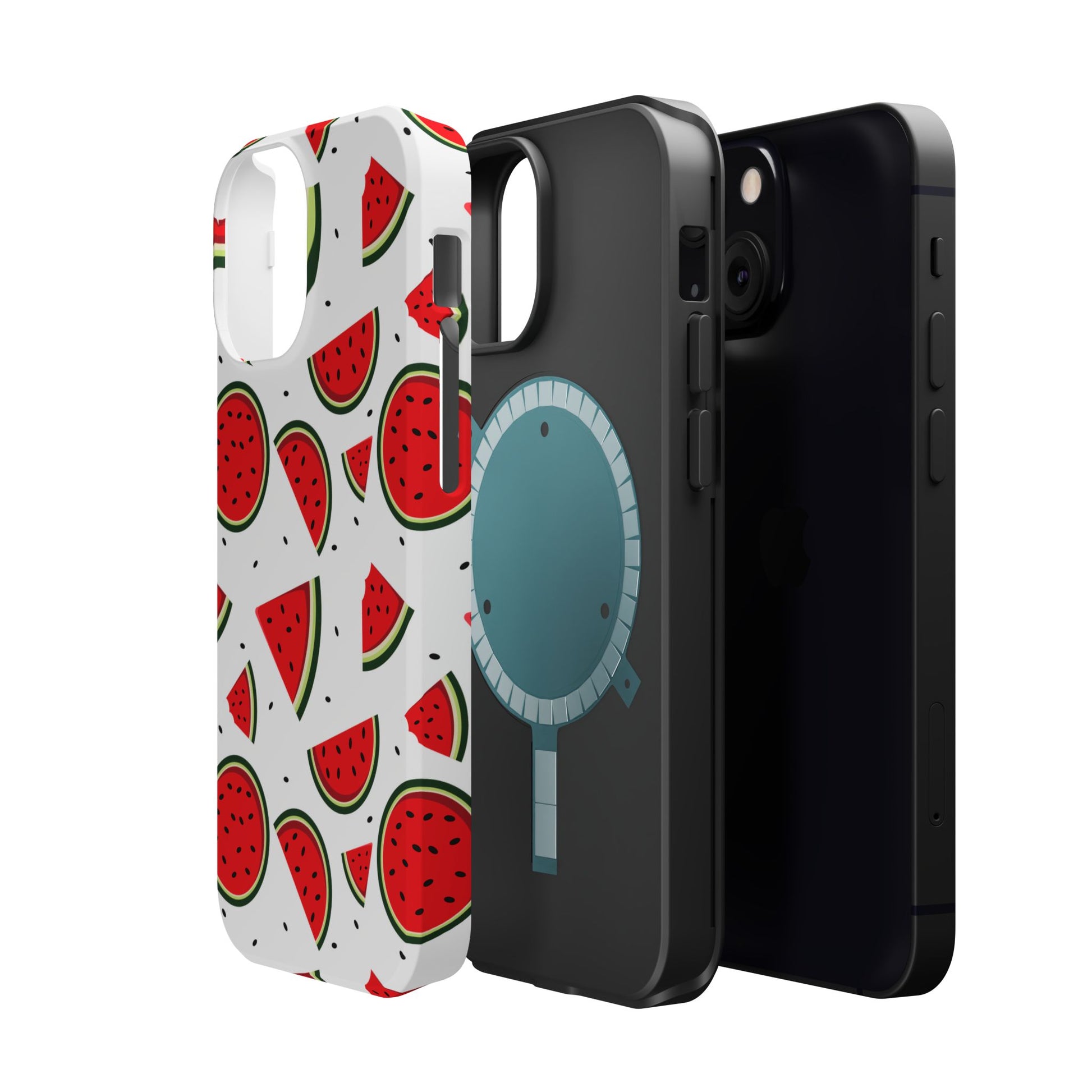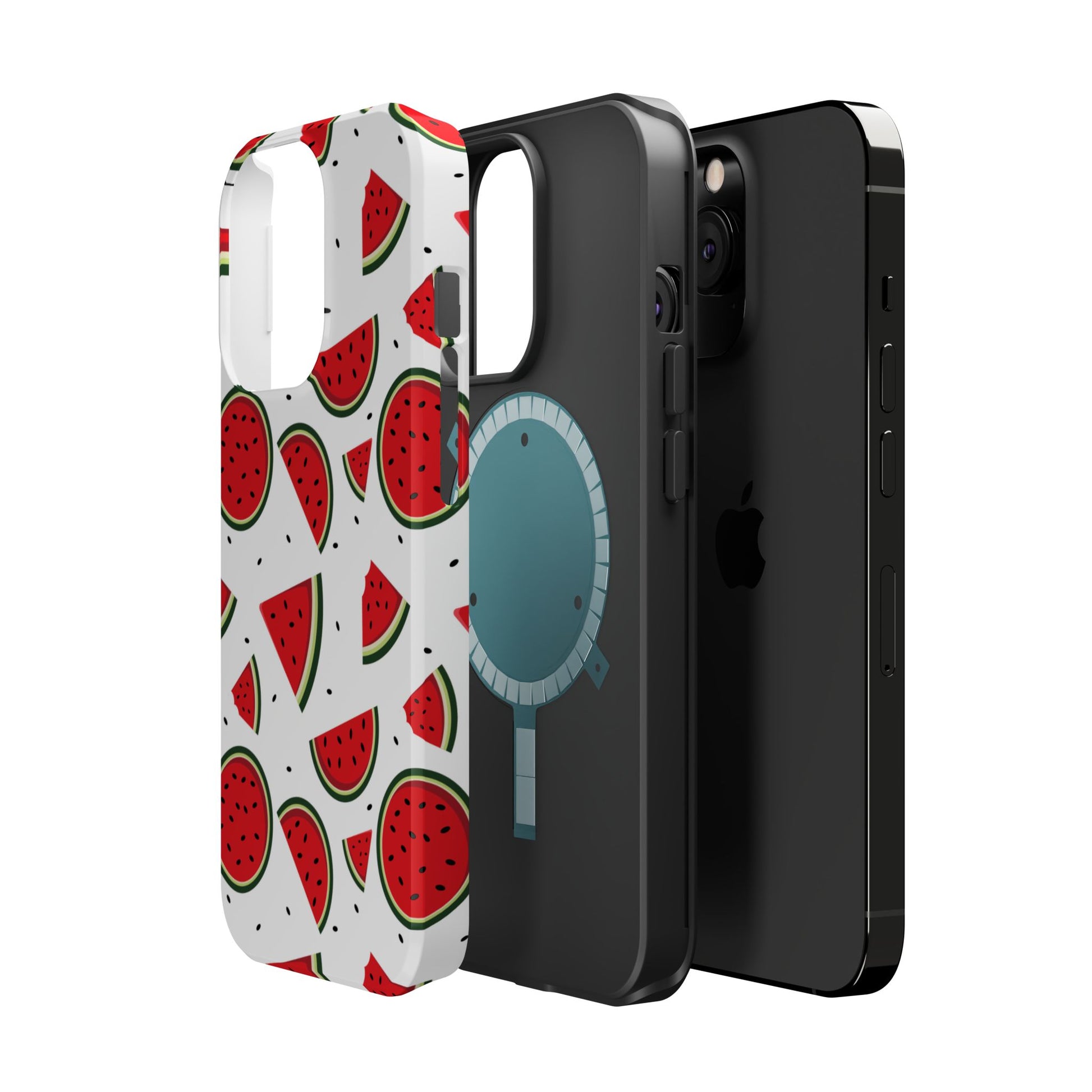 Stay cool and stylish with our Sweet Watermelon MagSafe iPhone Case! Featuring a cheerful pattern of vibrant watermelon slices and rounds on a crisp white background, this case adds a fresh and playful touch to your phone. Perfect for capturing those summer vibes all year round, the design is fun yet minimal, making it easy to match with any look. Made with a tough polycarbonate shell and a shock-absorbing TPU liner, this case offers top-notch protection while keeping your phone cute and colorful.