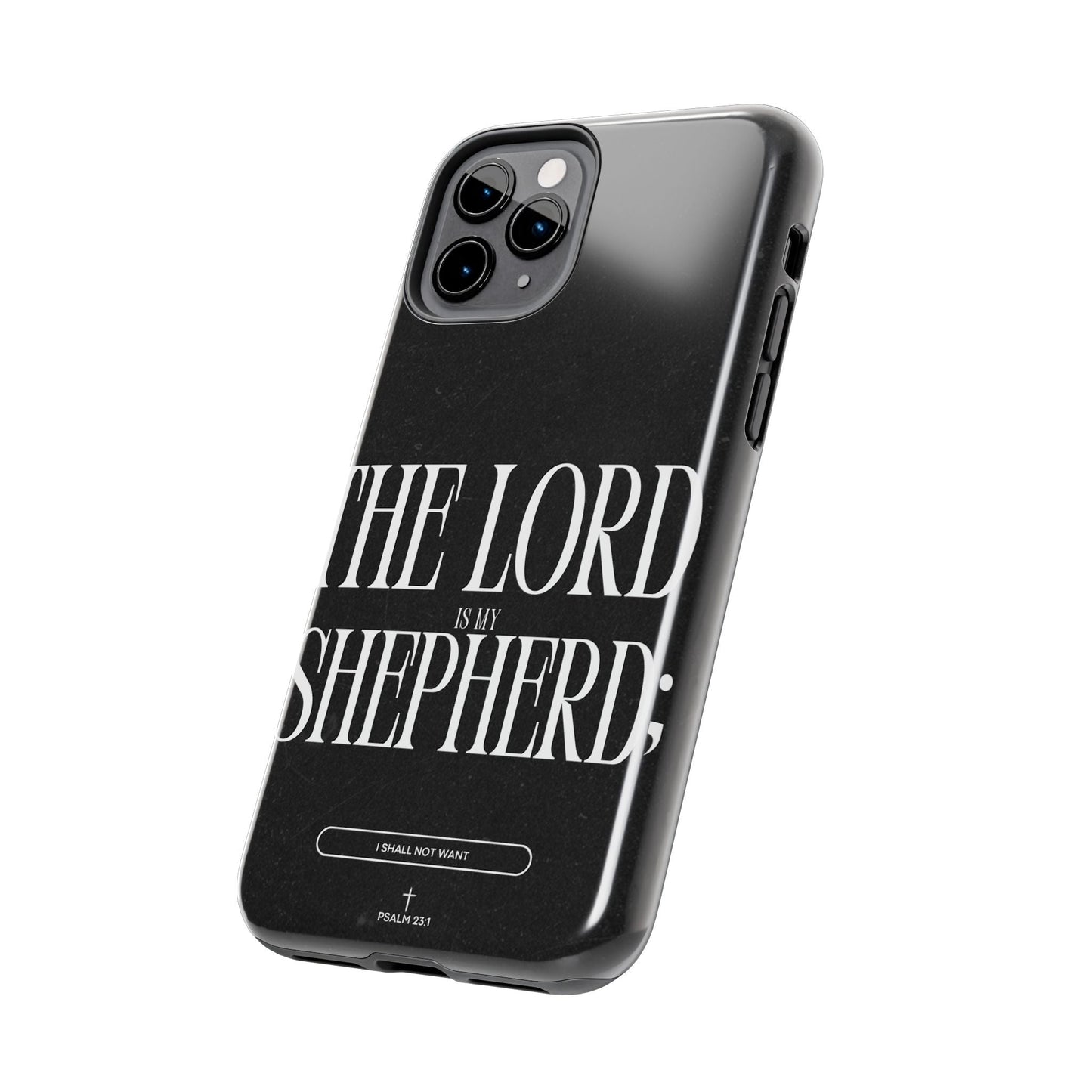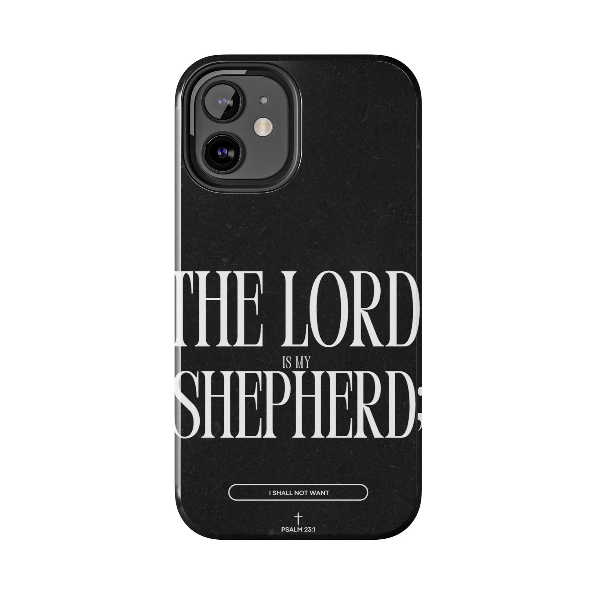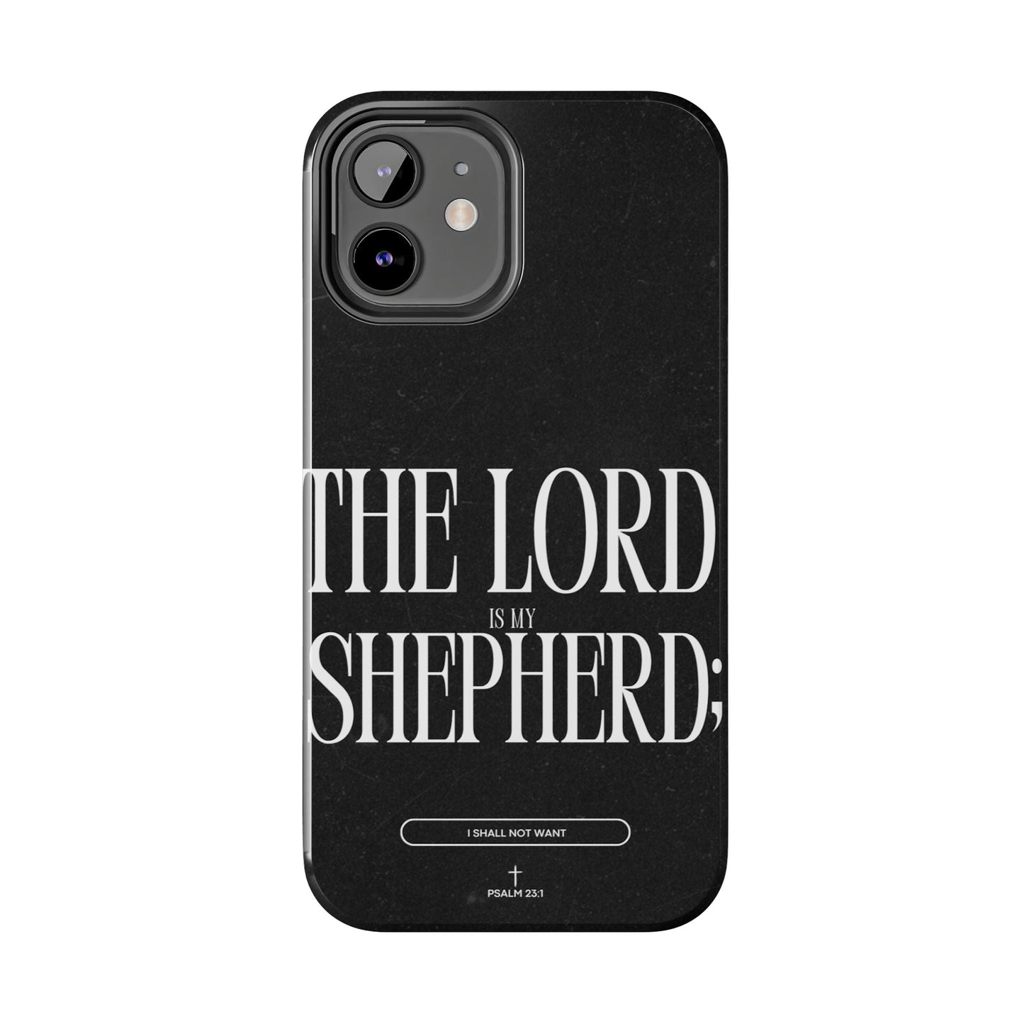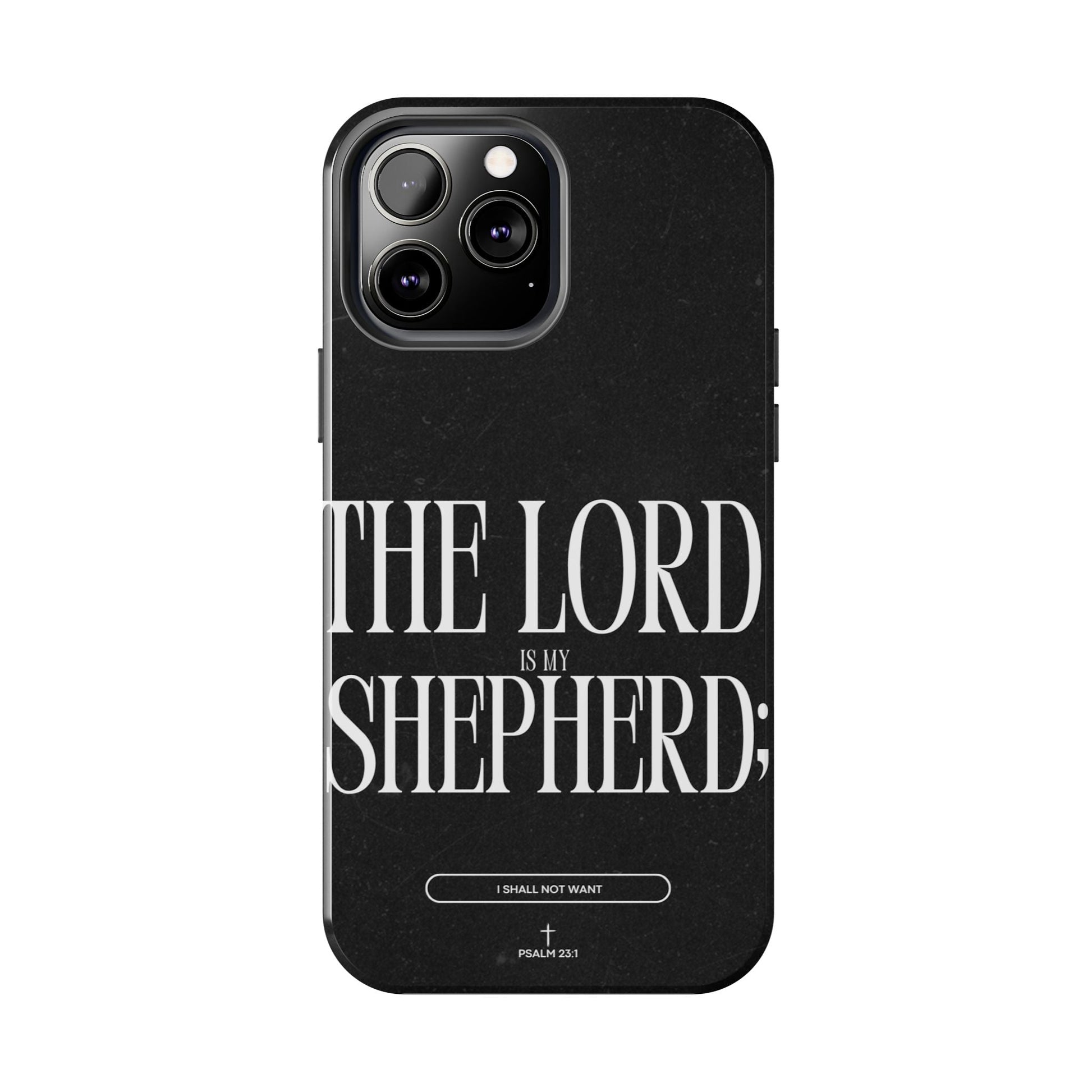 Carry a reminder of God's protection with this bold and elegant iPhone case, featuring Psalm 23:1 in striking typography. The black distressed background gives a modern, minimalistic look, while the powerful words “The Lord is my Shepherd” serve as a daily source of comfort and faith.