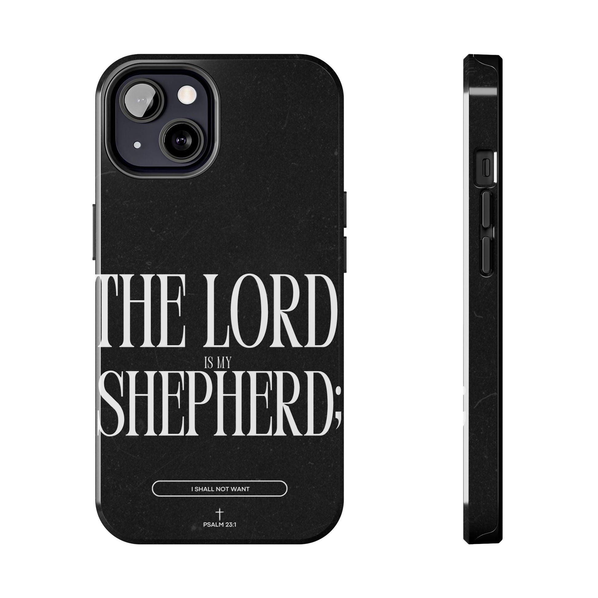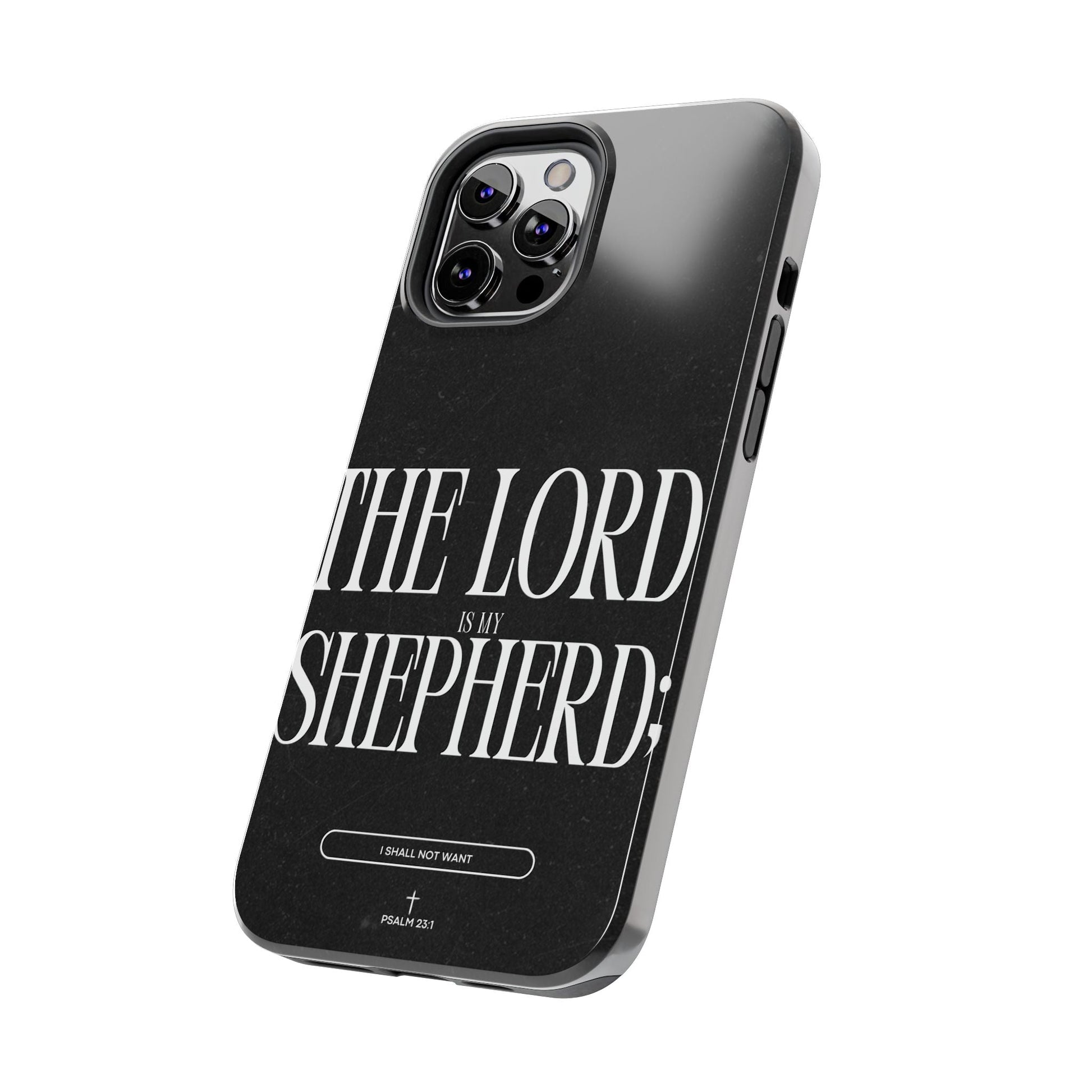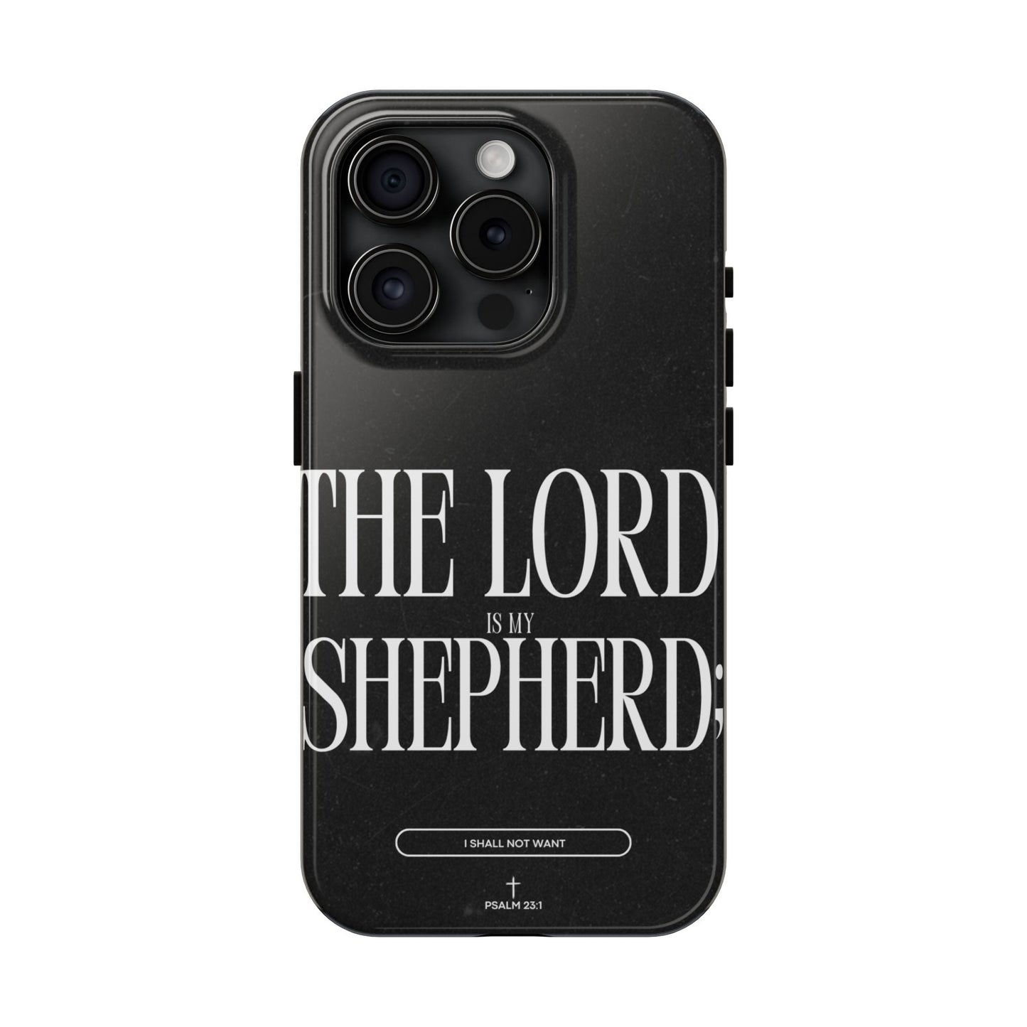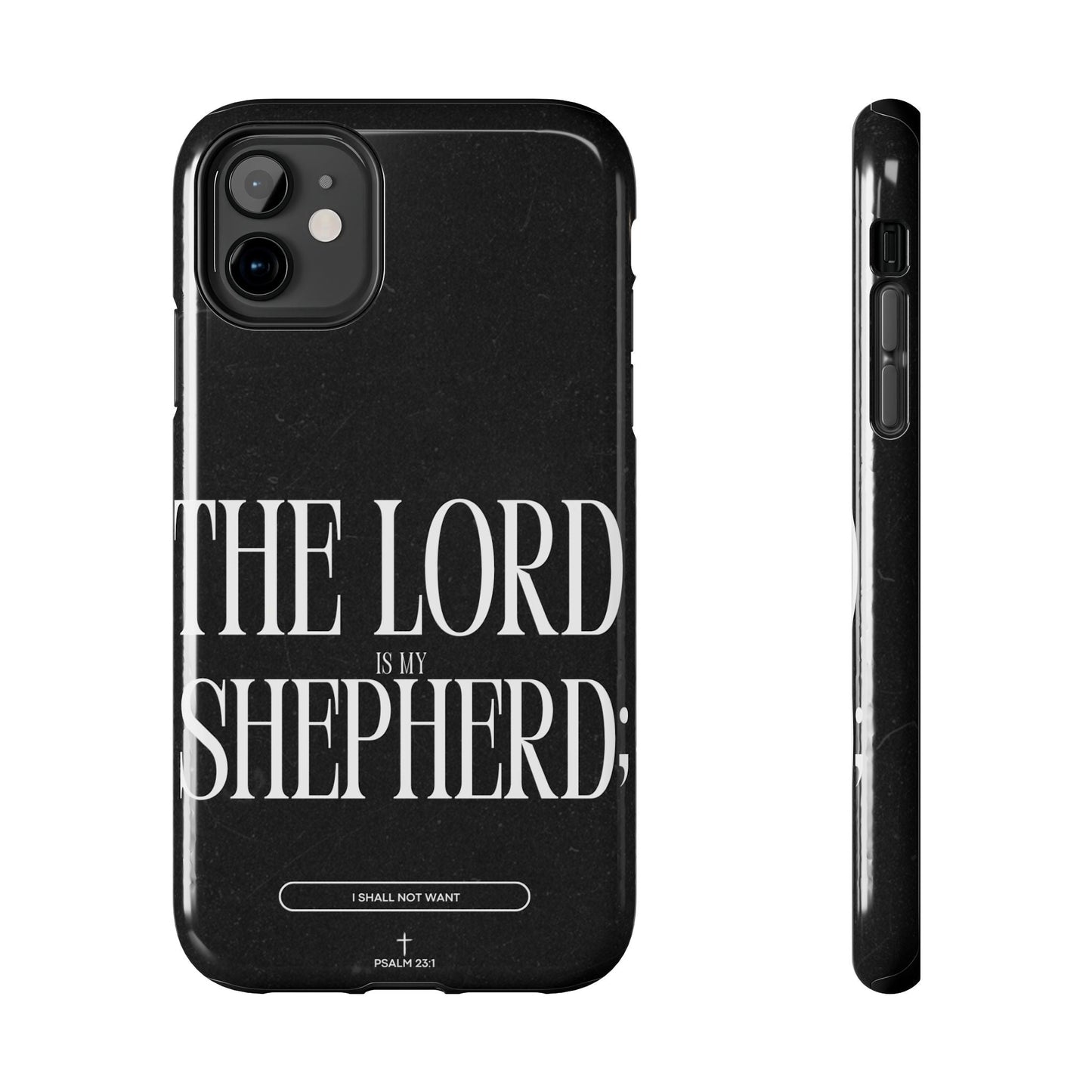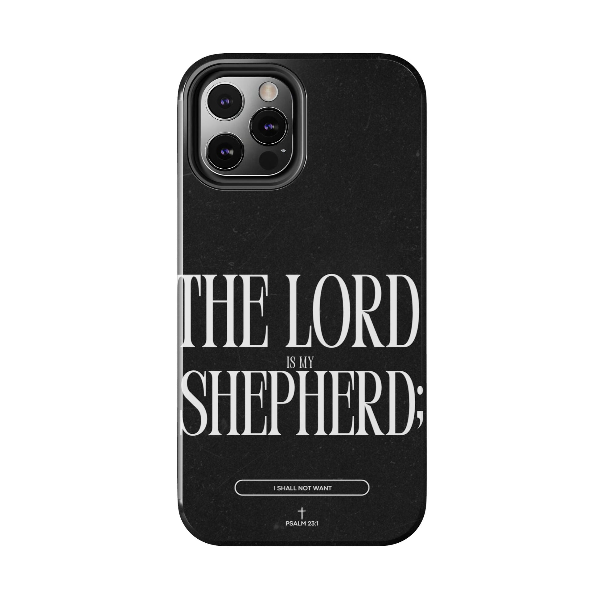 Carry a reminder of God's protection with this bold and elegant iPhone case, featuring Psalm 23:1 in striking typography. The black distressed background gives a modern, minimalistic look, while the powerful words “The Lord is my Shepherd” serve as a daily source of comfort and faith.