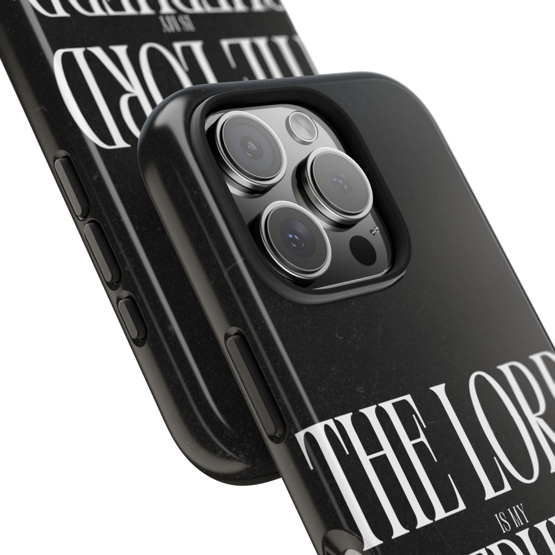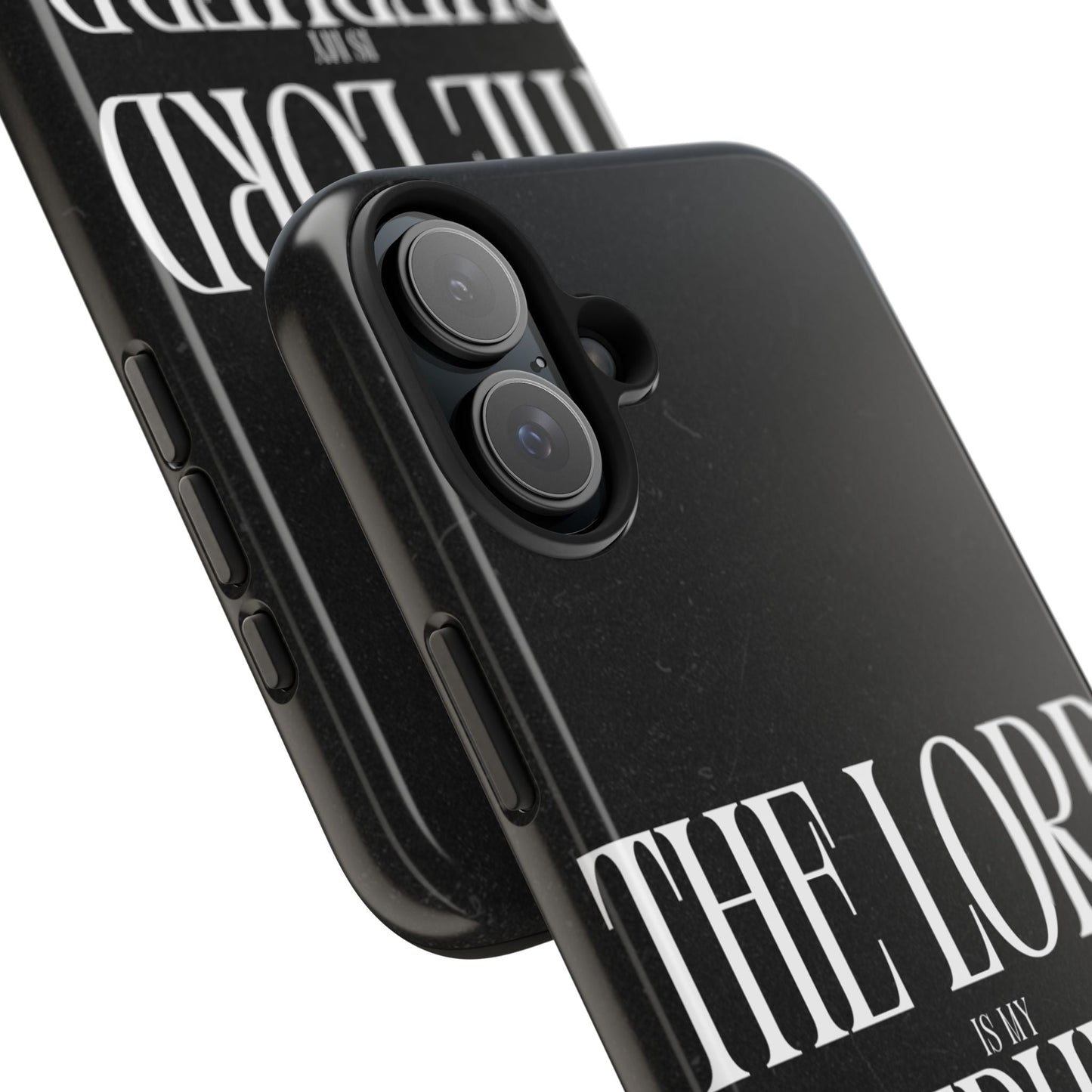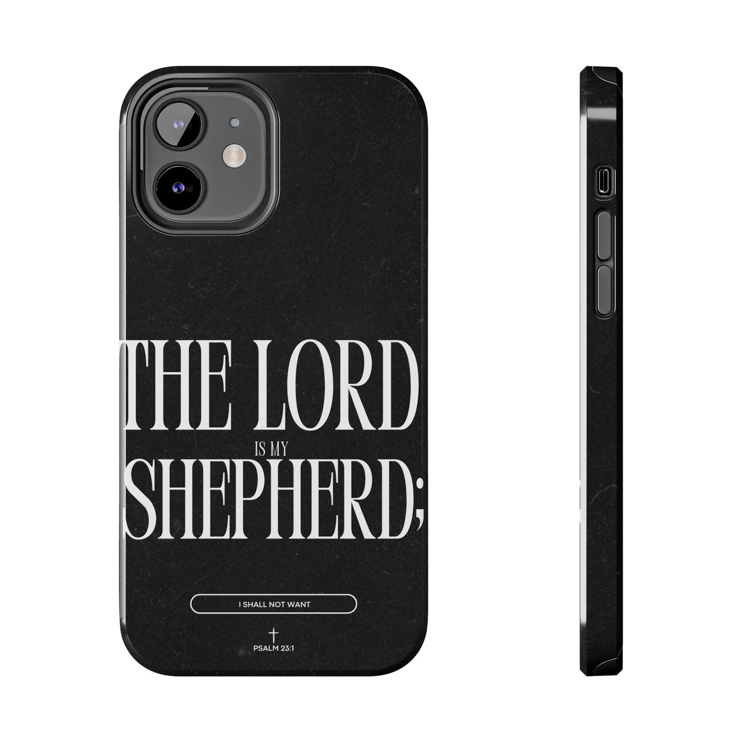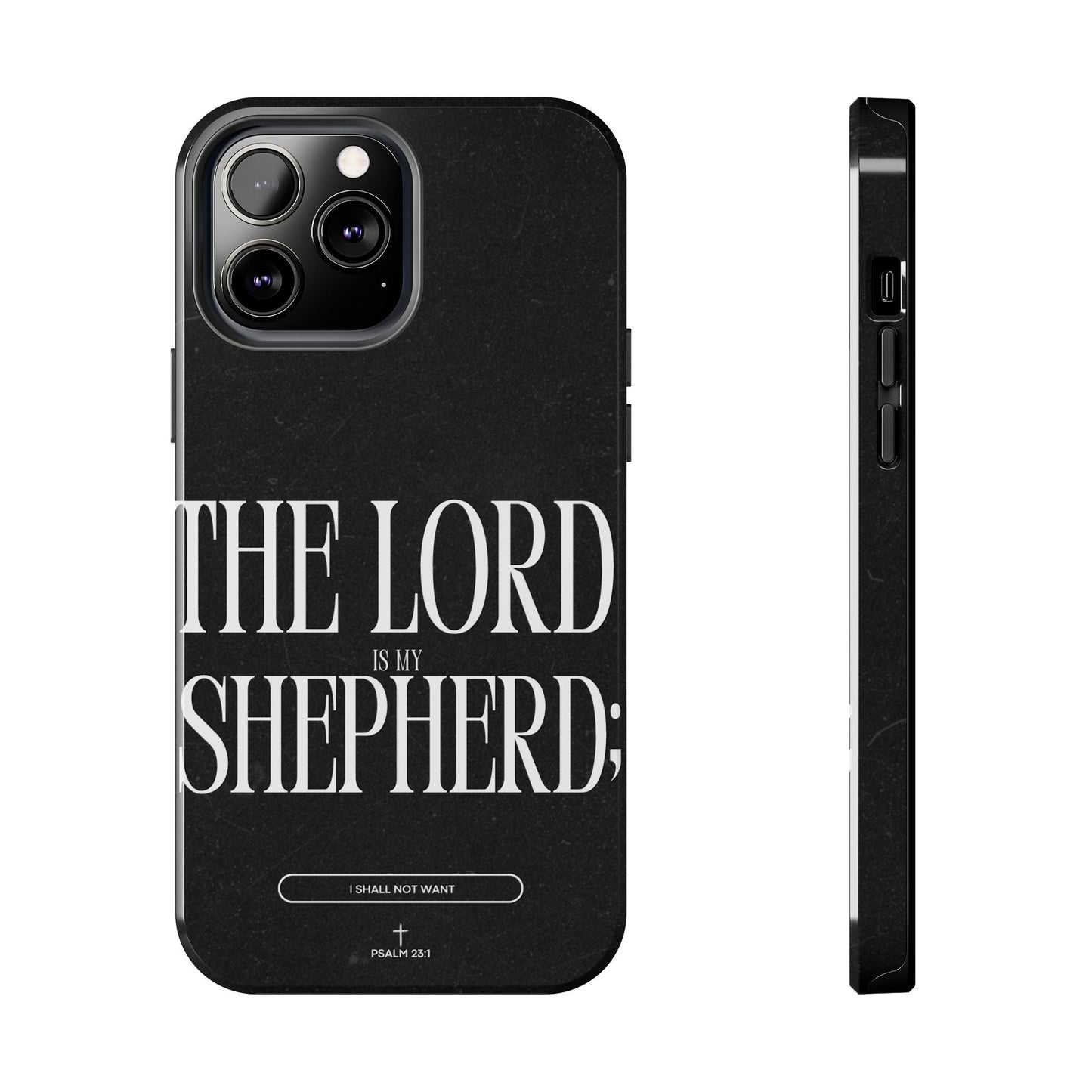 Carry a reminder of God's protection with this bold and elegant iPhone case, featuring Psalm 23:1 in striking typography. The black distressed background gives a modern, minimalistic look, while the powerful words “The Lord is my Shepherd” serve as a daily source of comfort and faith.