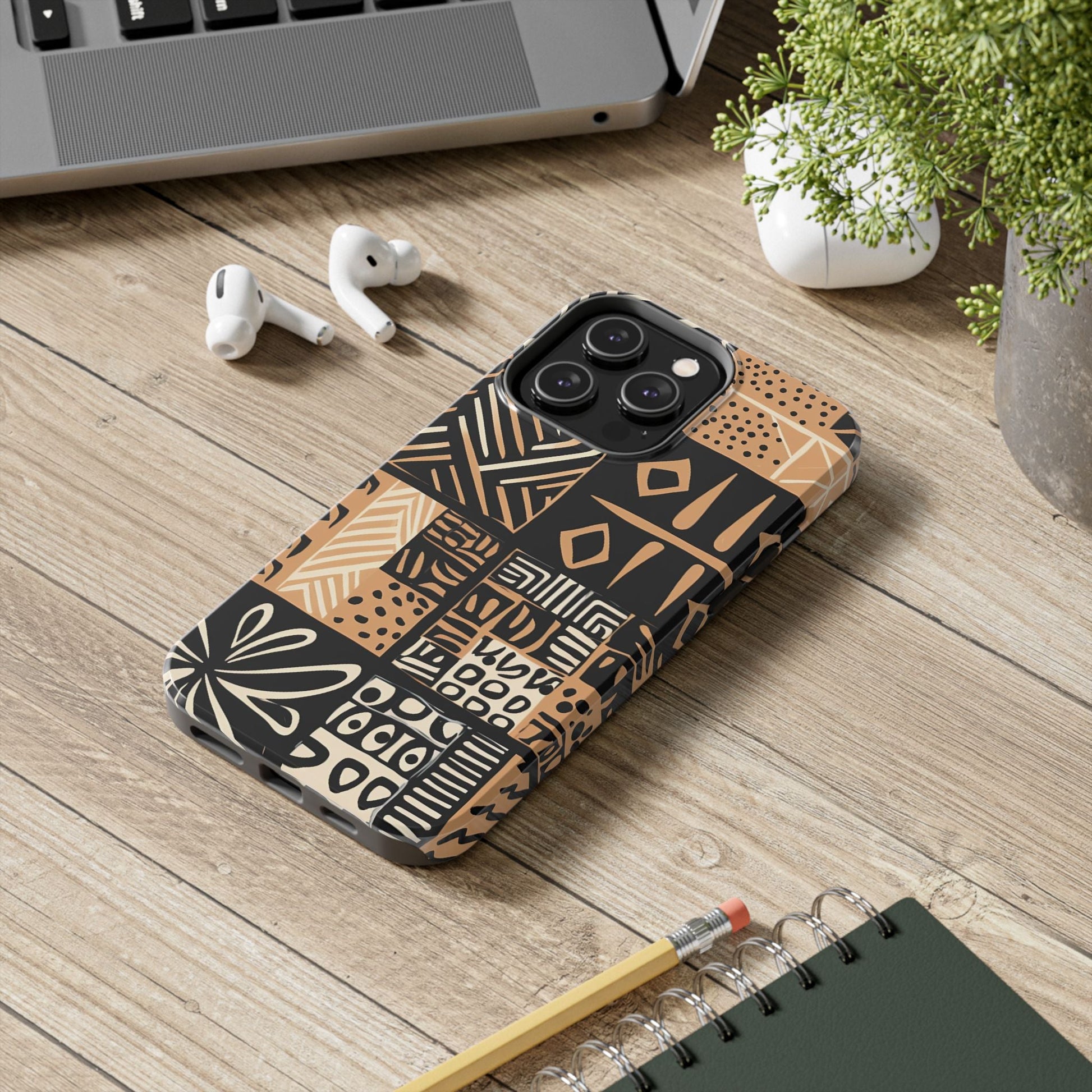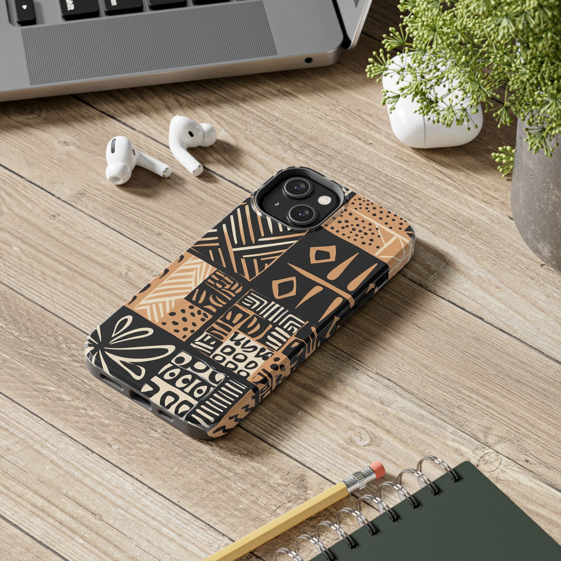 Protect your iPhone in style with our Tribal Geo-Pattern Case, featuring bold geometric designs and earthy tones inspired by traditional African artistry. It’s the perfect mix of cultural expression and practical protection.