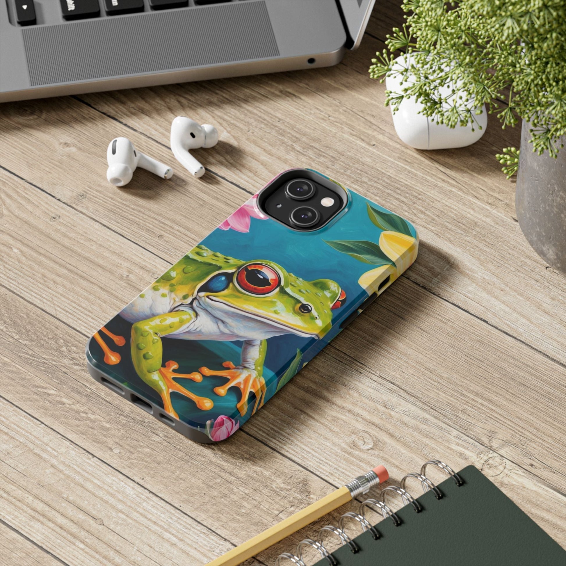 Bright, bold, and beautifully wild—the Tropical Frog & Bold Blooms iPhone Case is perfect for those who love vivid nature-inspired art! Featuring a realistic green tree frog with striking red eyes, perched on lush green leaves, and surrounded by pink and yellow tropical flowers, this case brings the beauty of the rainforest right to your hands. Crafted with a tough polycarbonate shell and shock-absorbing TPU bumper, it keeps your phone safe from drops and daily wear while turning it into a stunning statement piece.