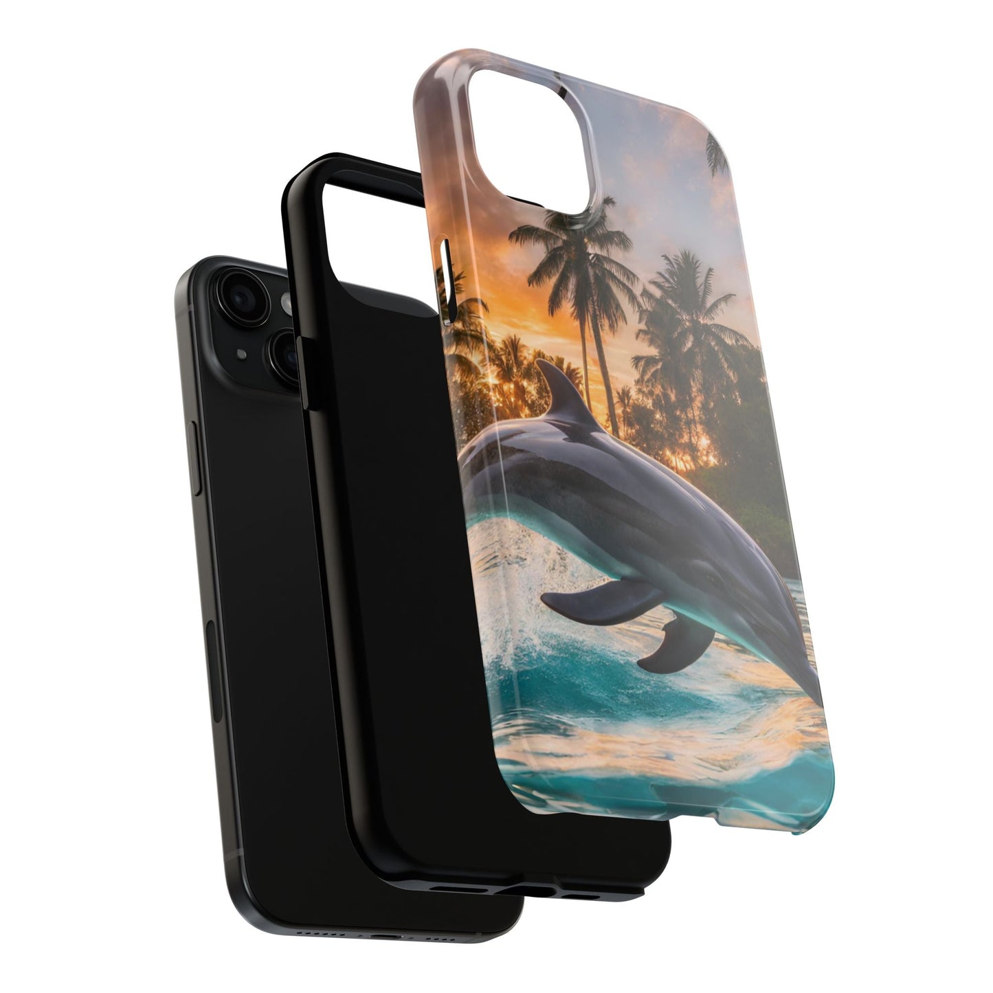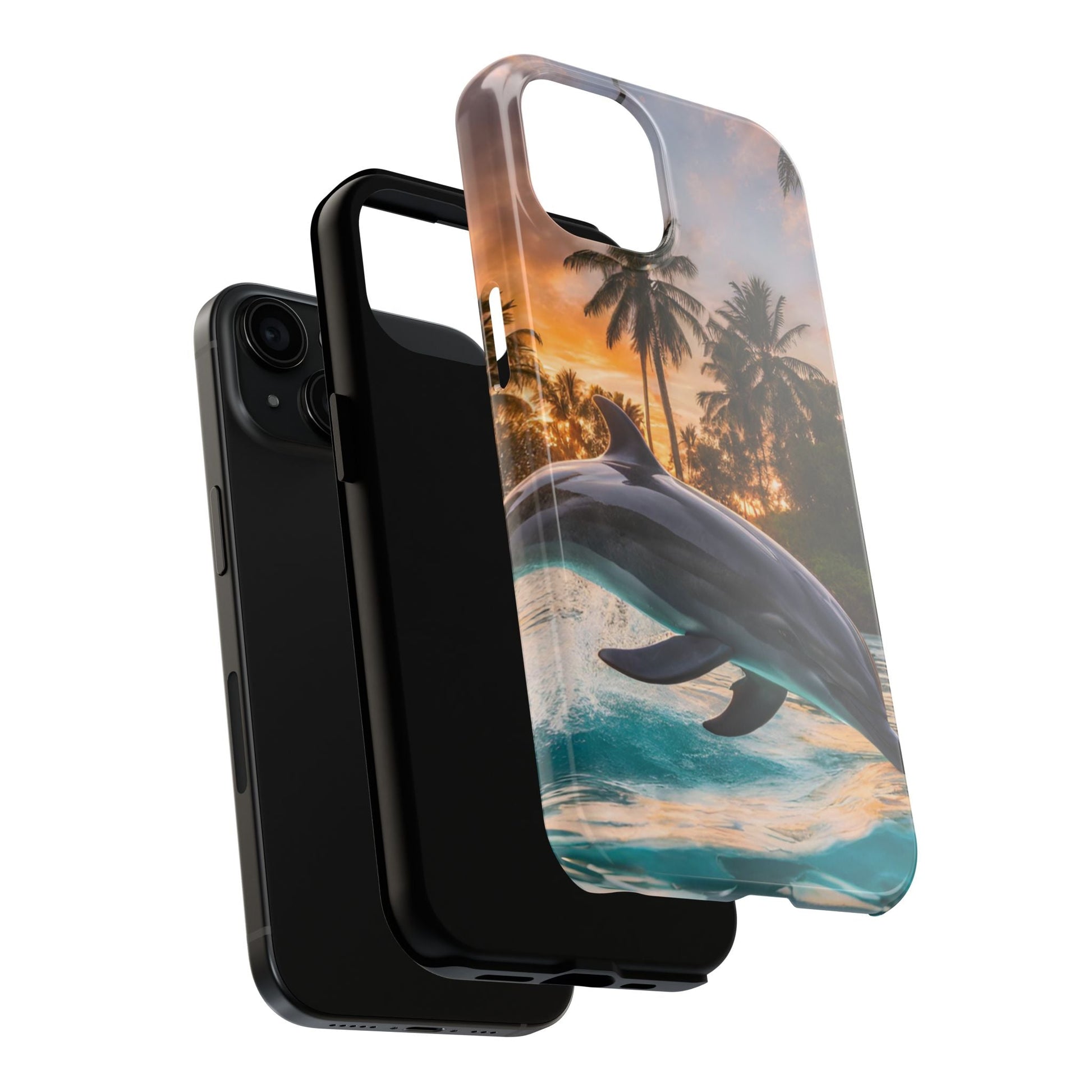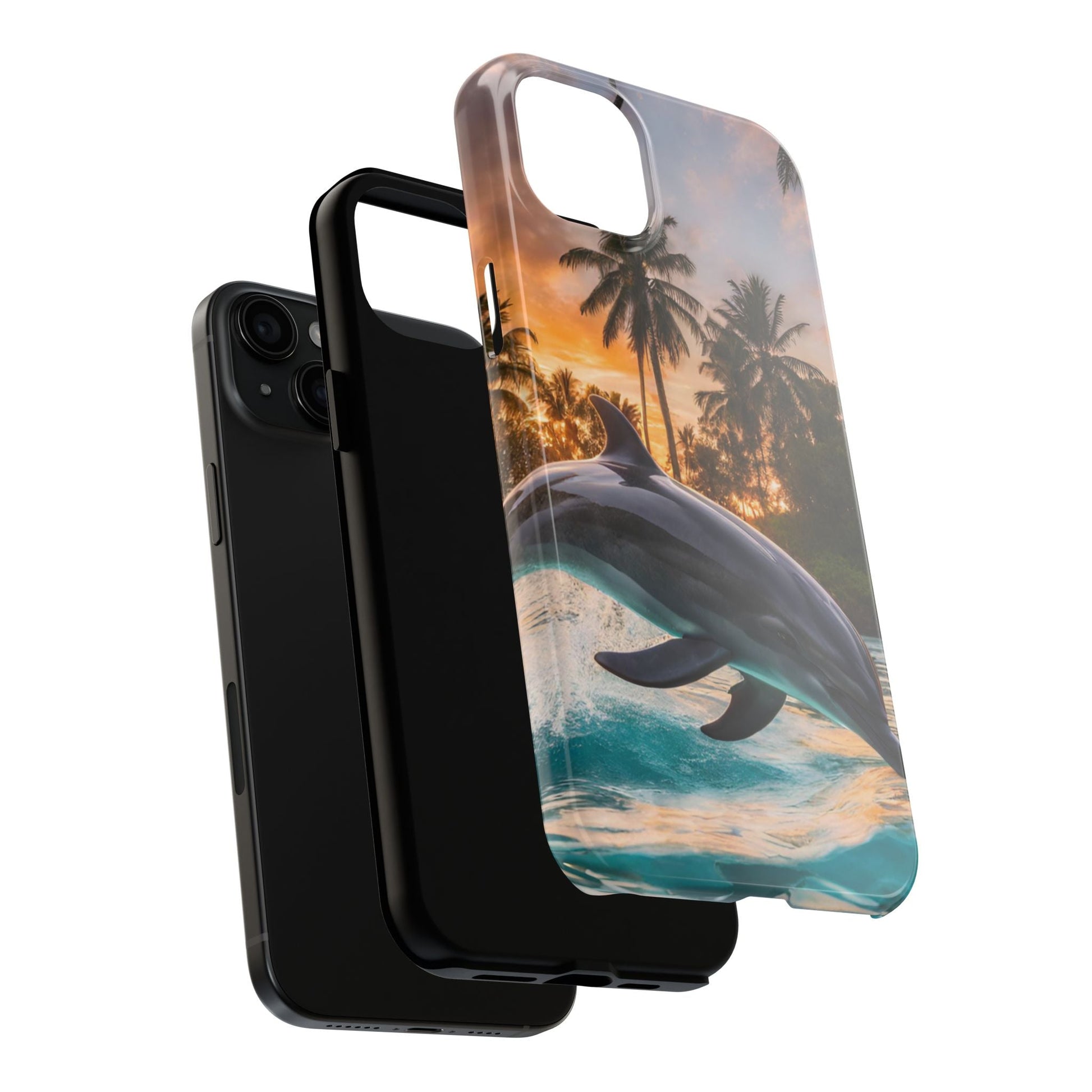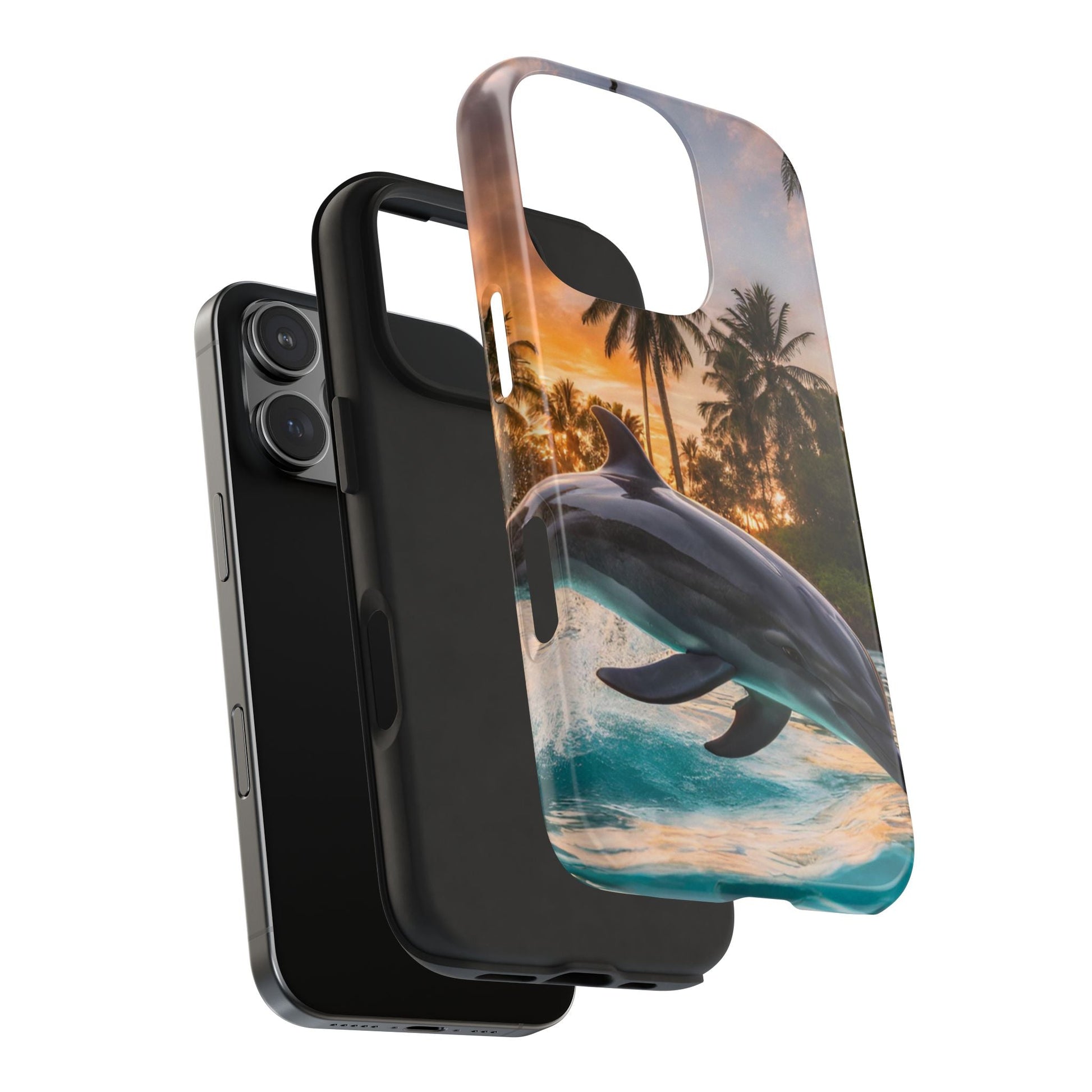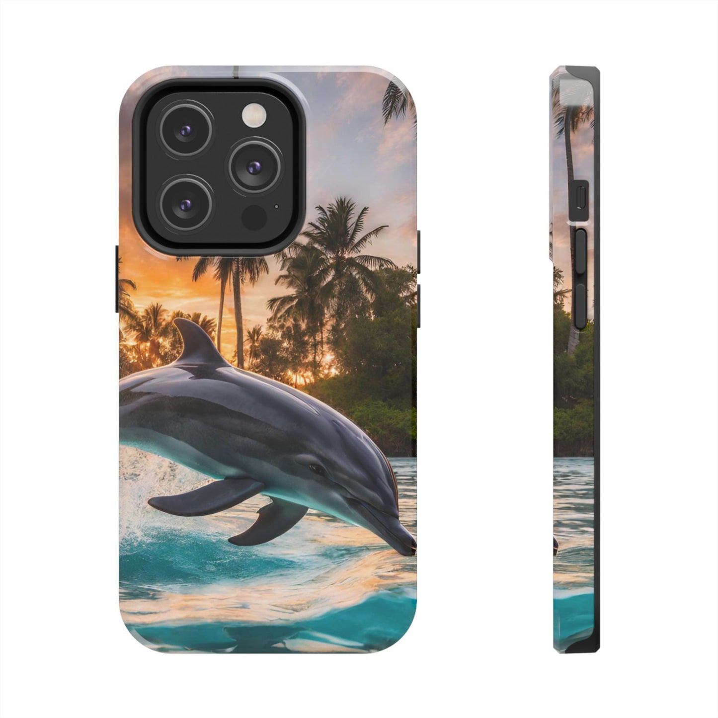 Escape to the tropics with this Tropical Paradise Dolphin iPhone Case! Featuring a majestic dolphin leaping through crystal-clear turquoise waters, surrounded by lush palm trees and a golden sunset, this case is a dream for ocean lovers. The high-resolution print captures every detail, while the shockproof TPU bumper and durable polycarbonate shell keep your phone safe from drops and scratches—so you can bring paradise with you everywhere!