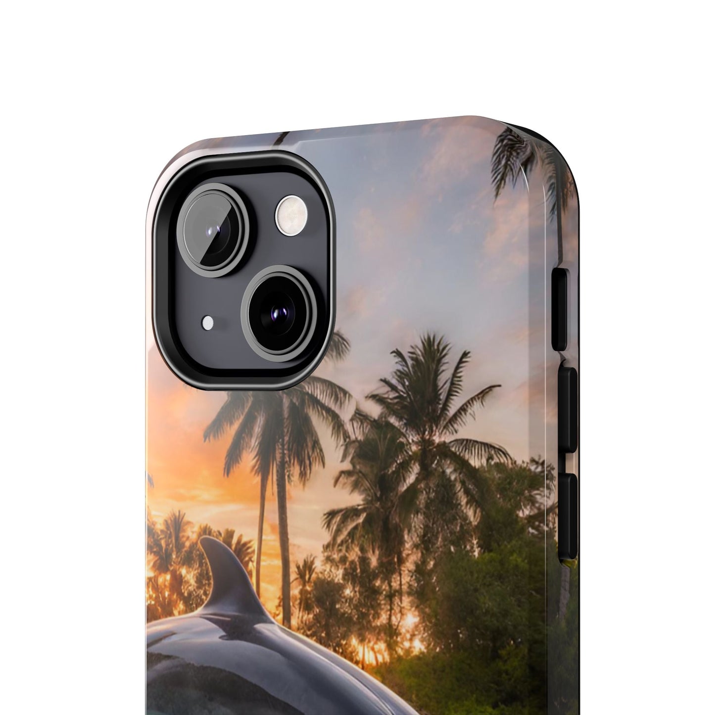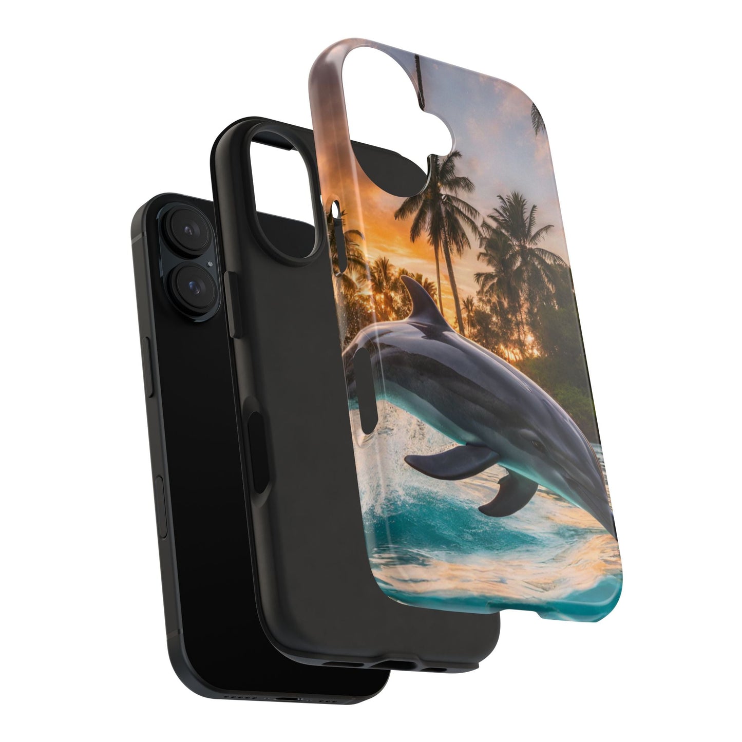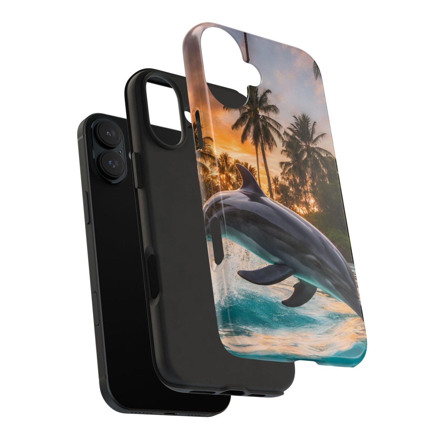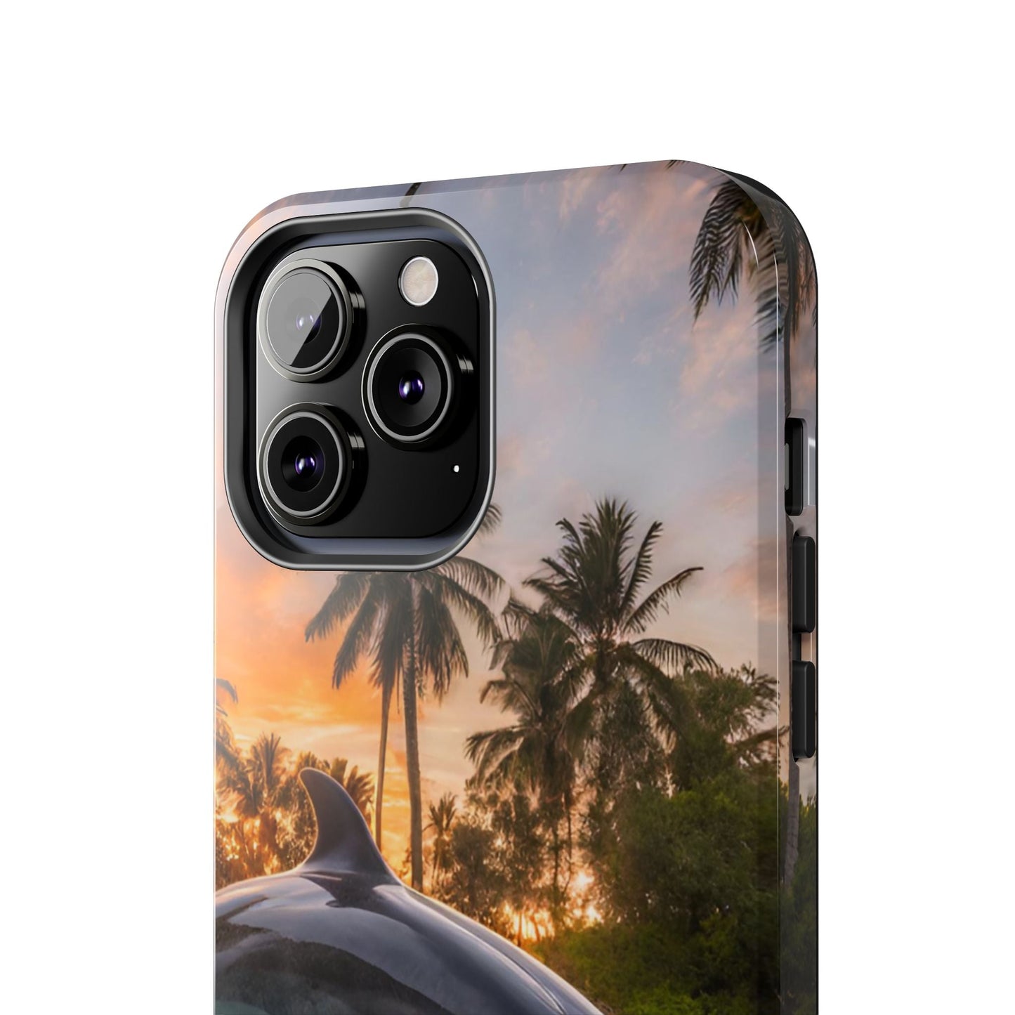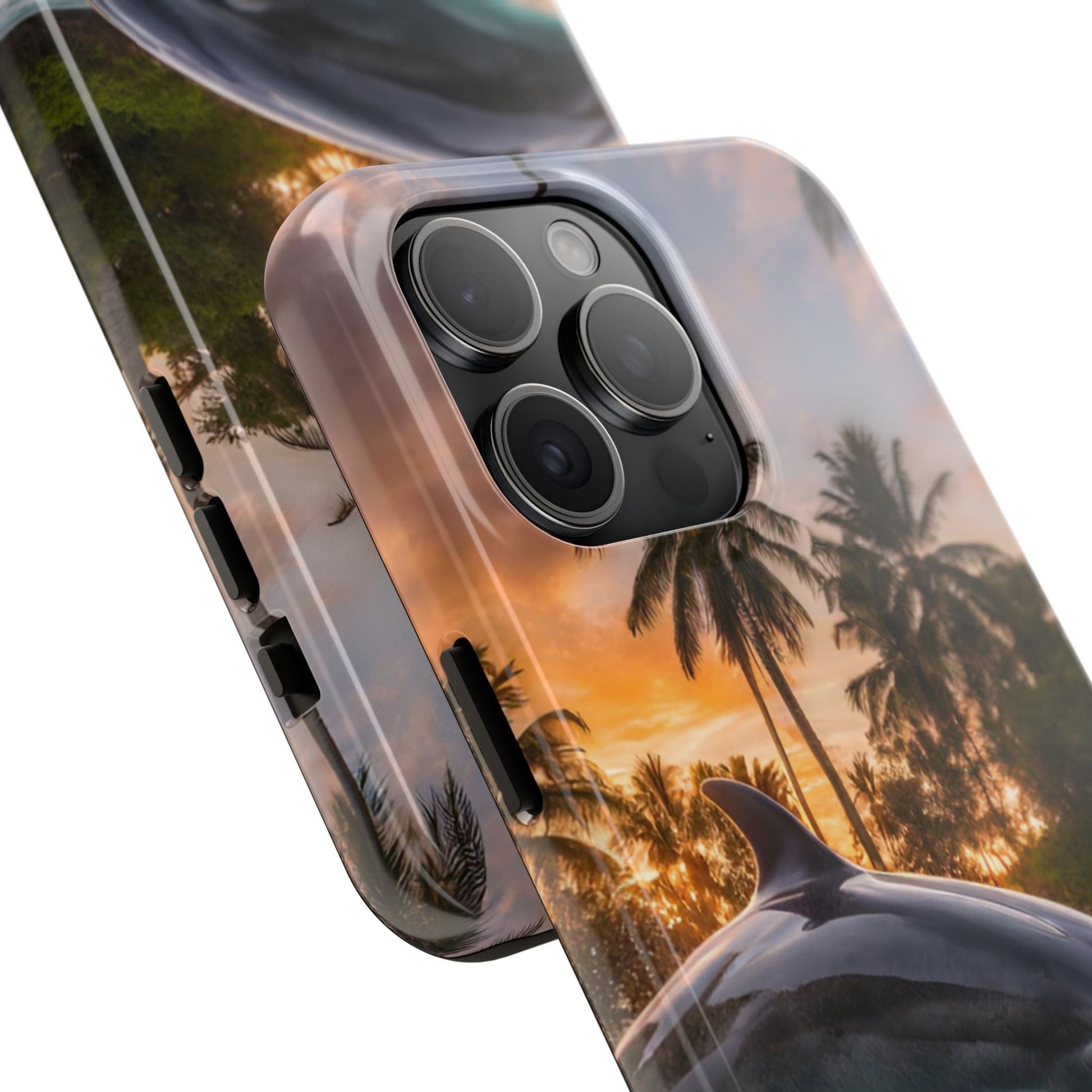 Escape to the tropics with this Tropical Paradise Dolphin iPhone Case! Featuring a majestic dolphin leaping through crystal-clear turquoise waters, surrounded by lush palm trees and a golden sunset, this case is a dream for ocean lovers. The high-resolution print captures every detail, while the shockproof TPU bumper and durable polycarbonate shell keep your phone safe from drops and scratches—so you can bring paradise with you everywhere!