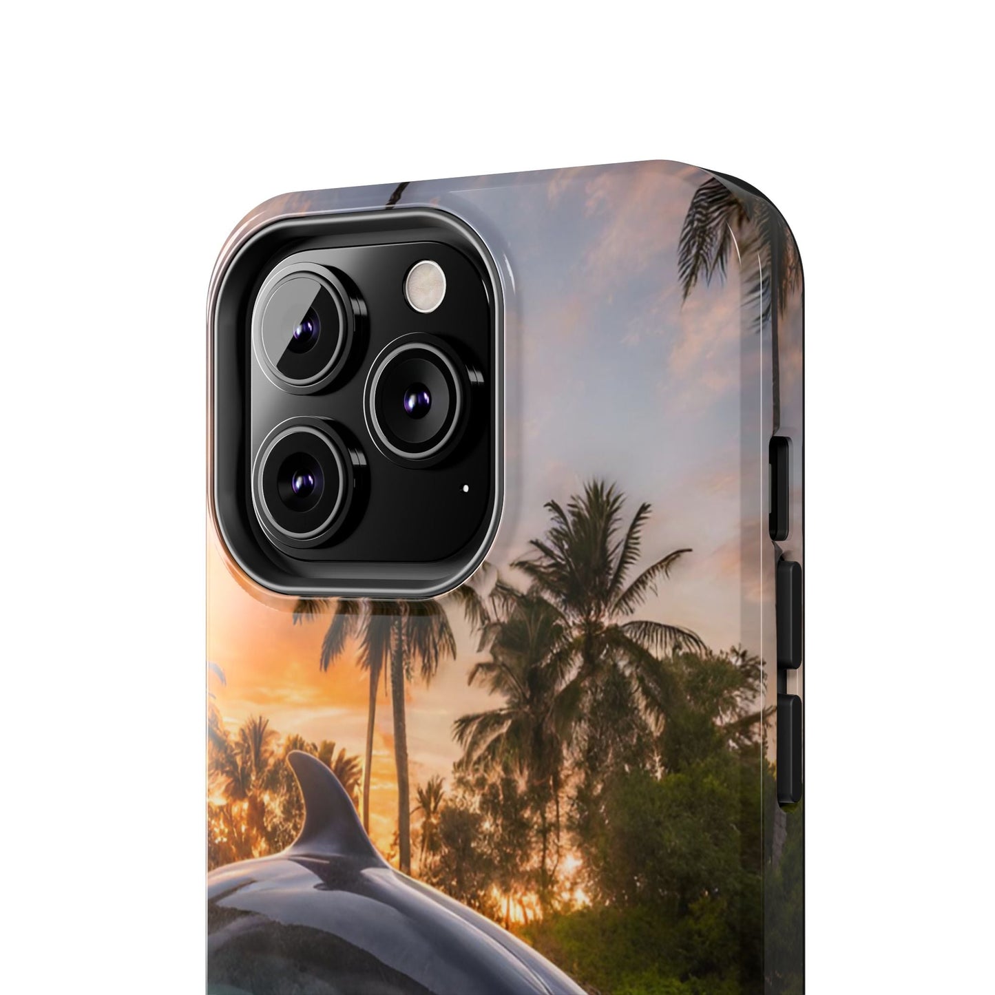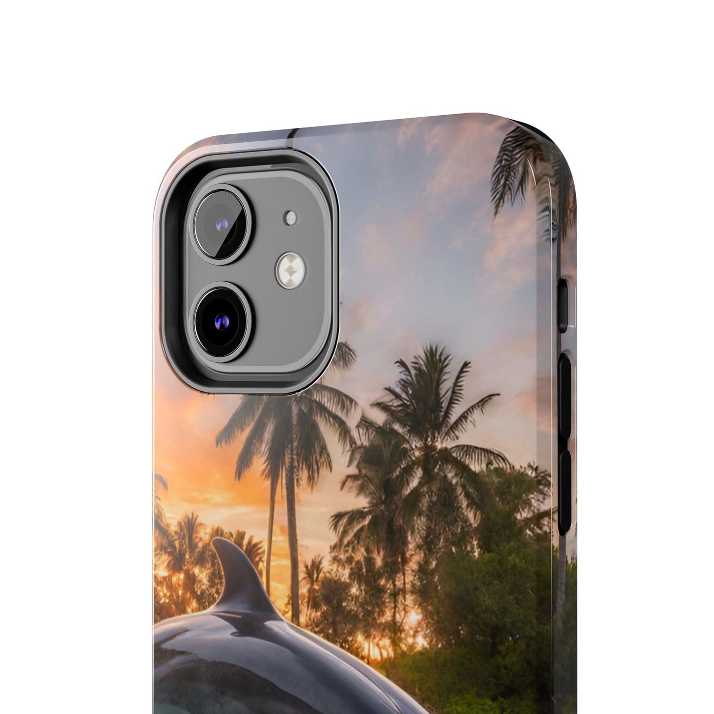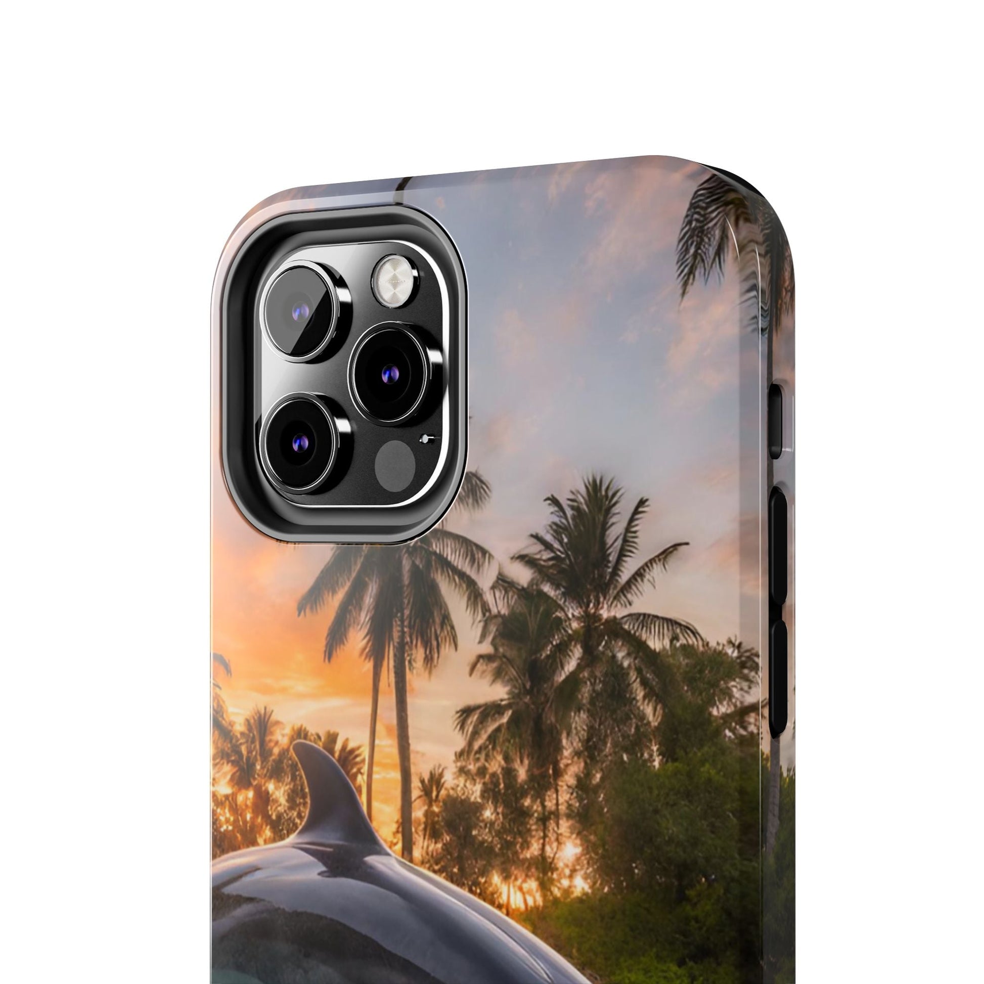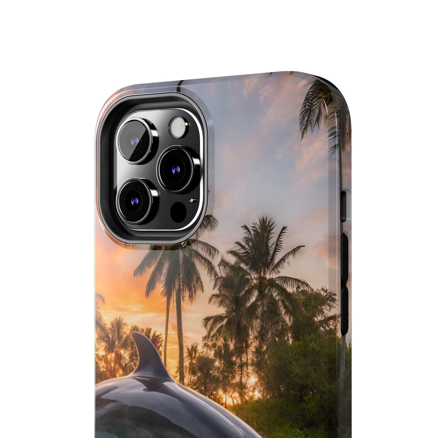Escape to the tropics with this Tropical Paradise Dolphin iPhone Case! Featuring a majestic dolphin leaping through crystal-clear turquoise waters, surrounded by lush palm trees and a golden sunset, this case is a dream for ocean lovers. The high-resolution print captures every detail, while the shockproof TPU bumper and durable polycarbonate shell keep your phone safe from drops and scratches—so you can bring paradise with you everywhere!
