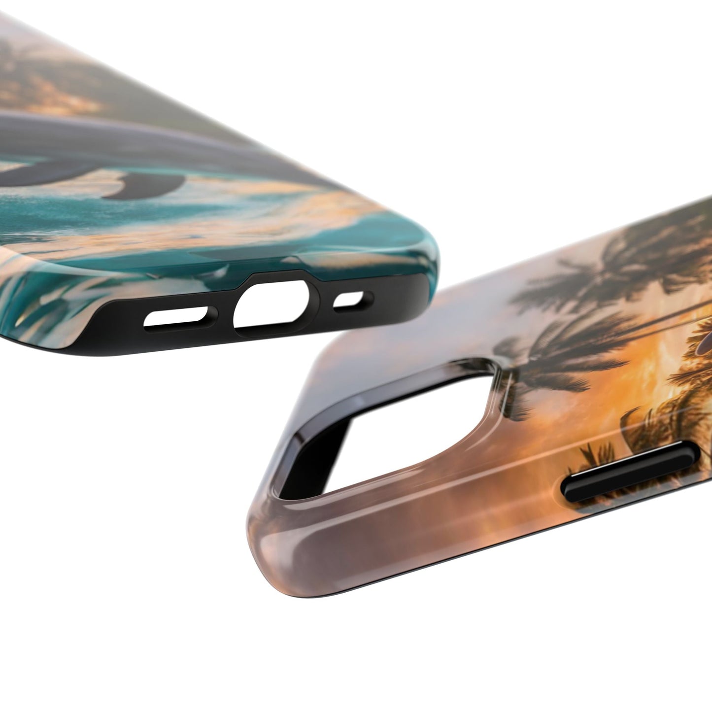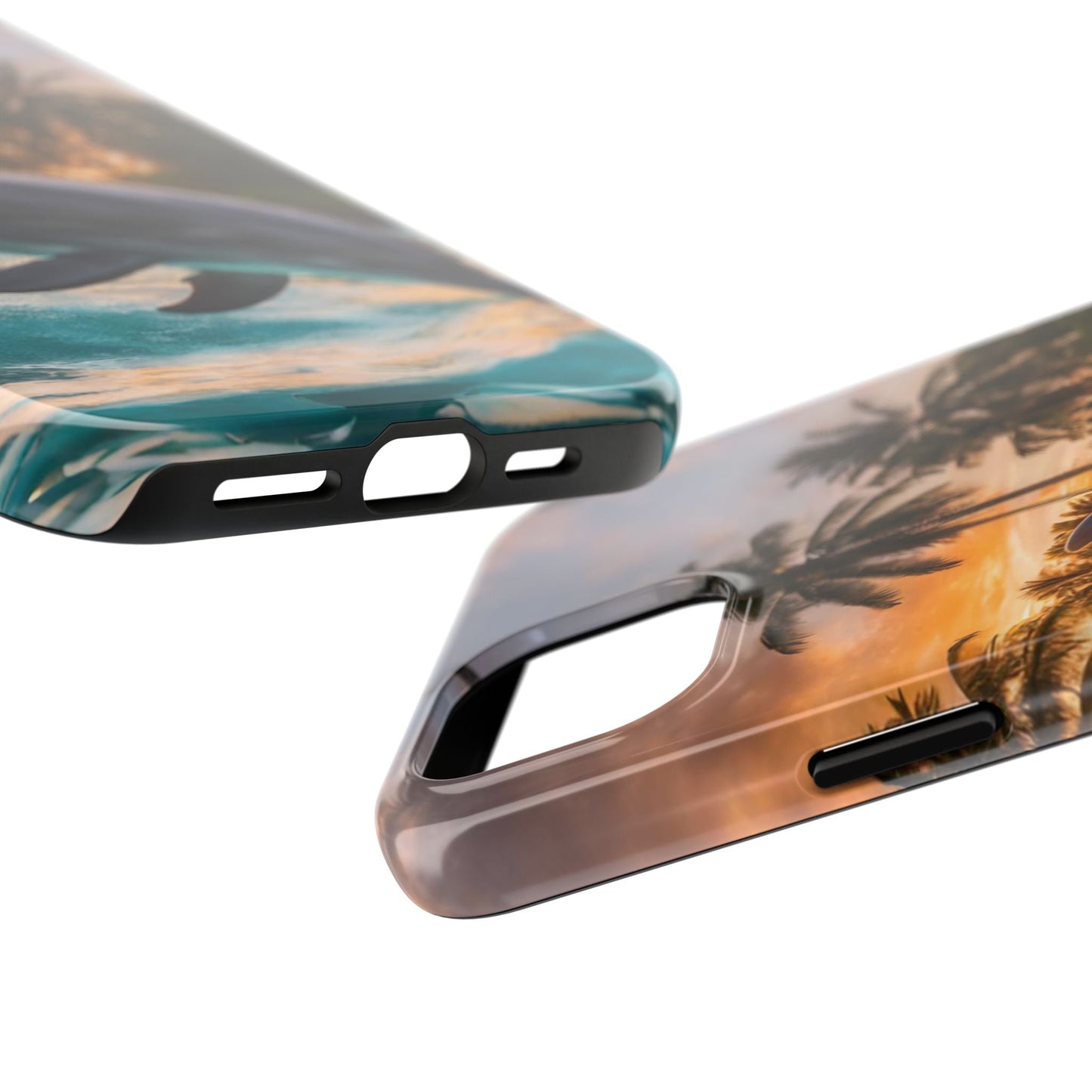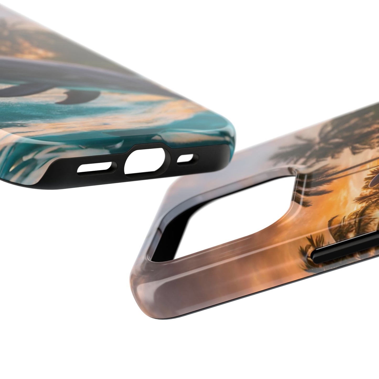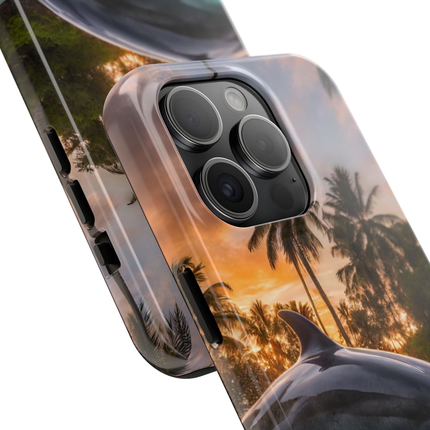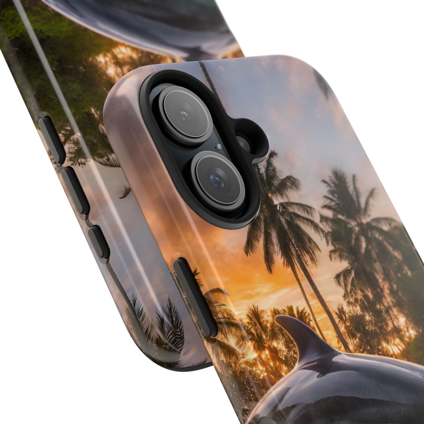 Escape to the tropics with this Tropical Paradise Dolphin iPhone Case! Featuring a majestic dolphin leaping through crystal-clear turquoise waters, surrounded by lush palm trees and a golden sunset, this case is a dream for ocean lovers. The high-resolution print captures every detail, while the shockproof TPU bumper and durable polycarbonate shell keep your phone safe from drops and scratches—so you can bring paradise with you everywhere!