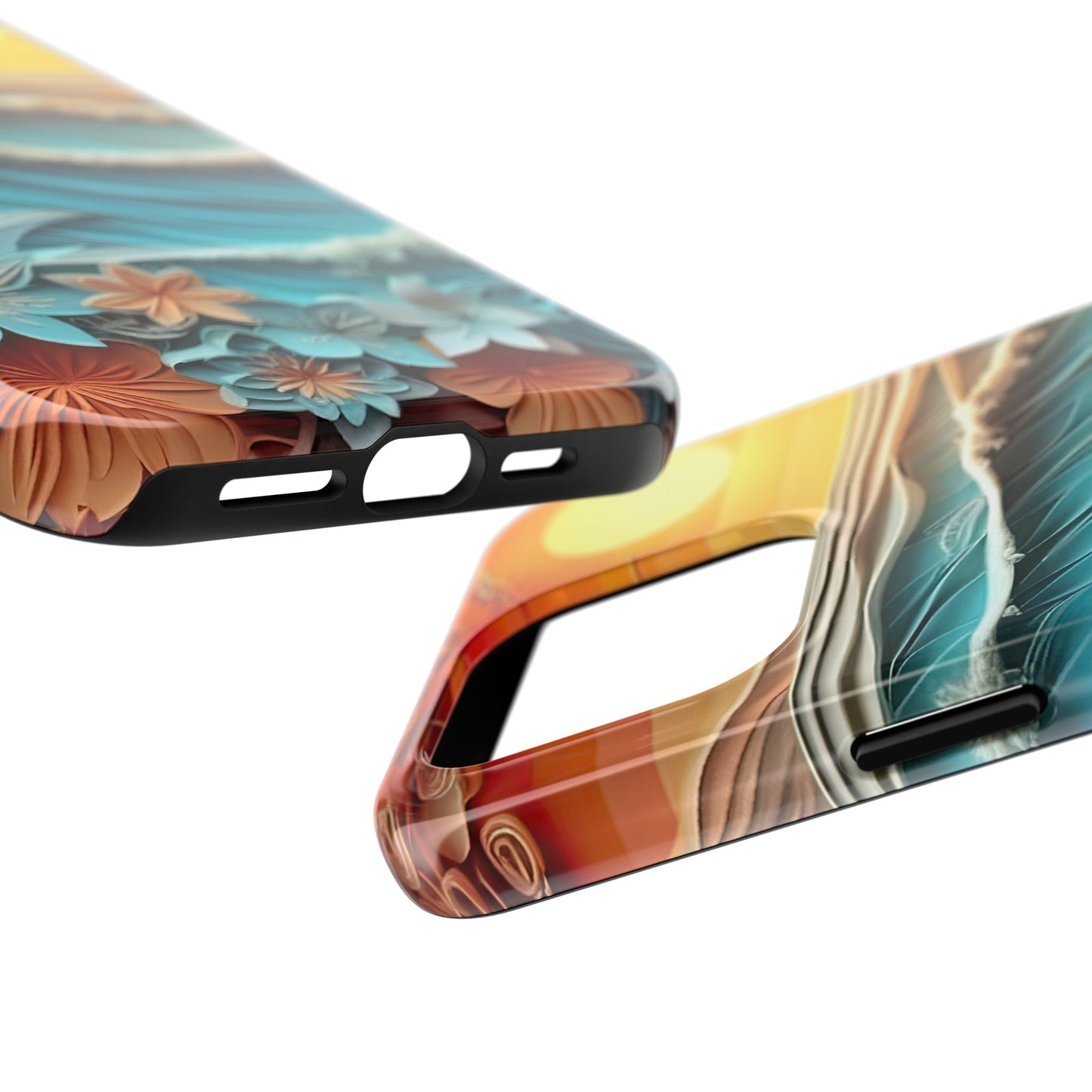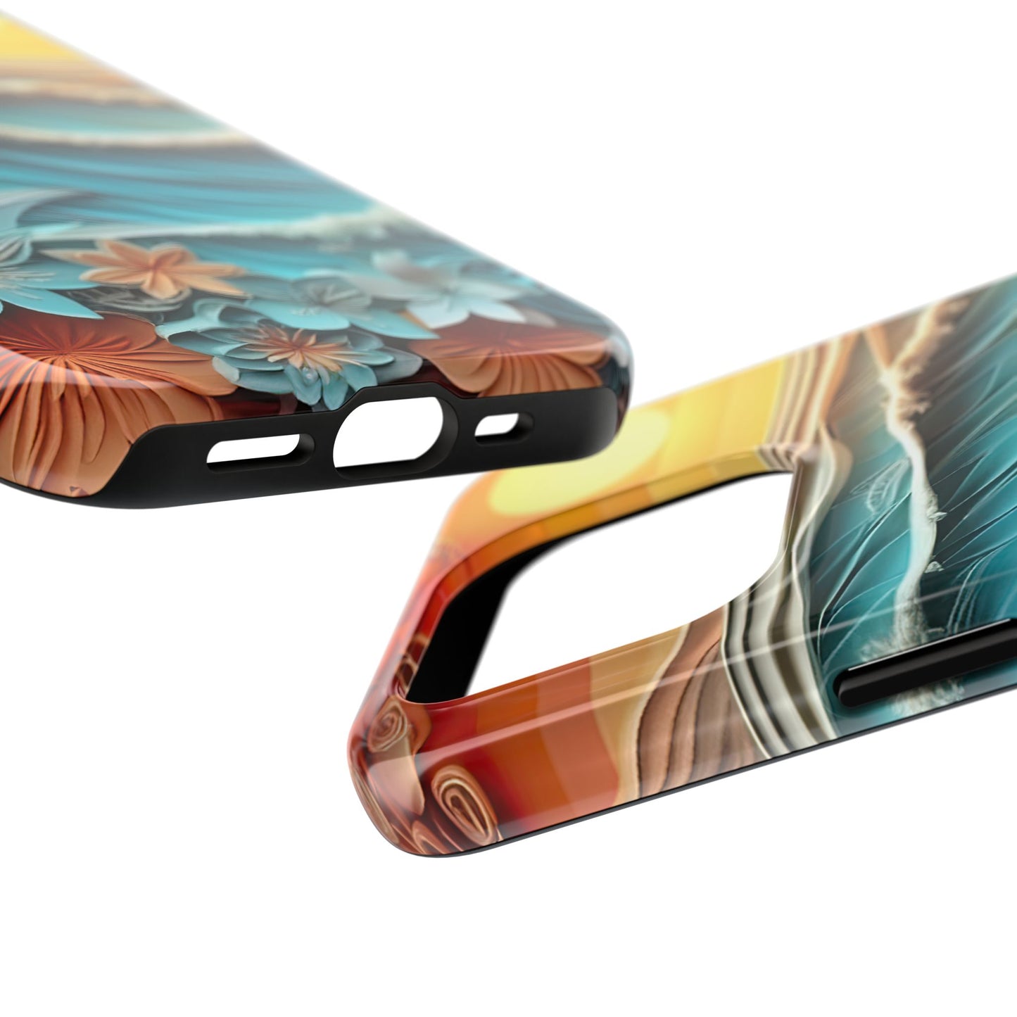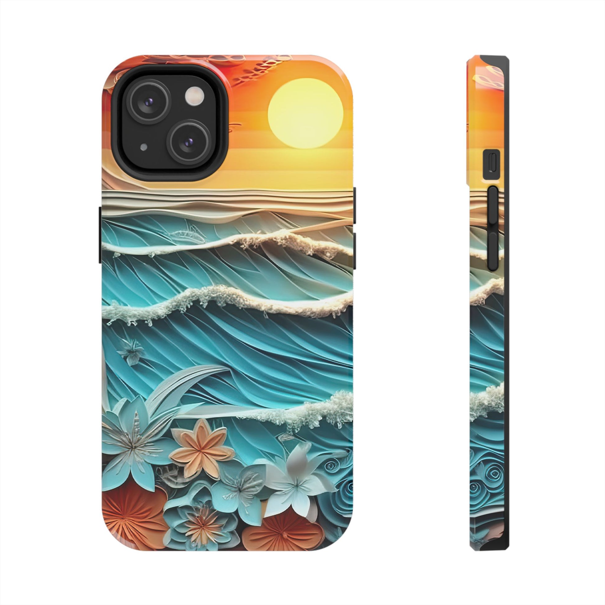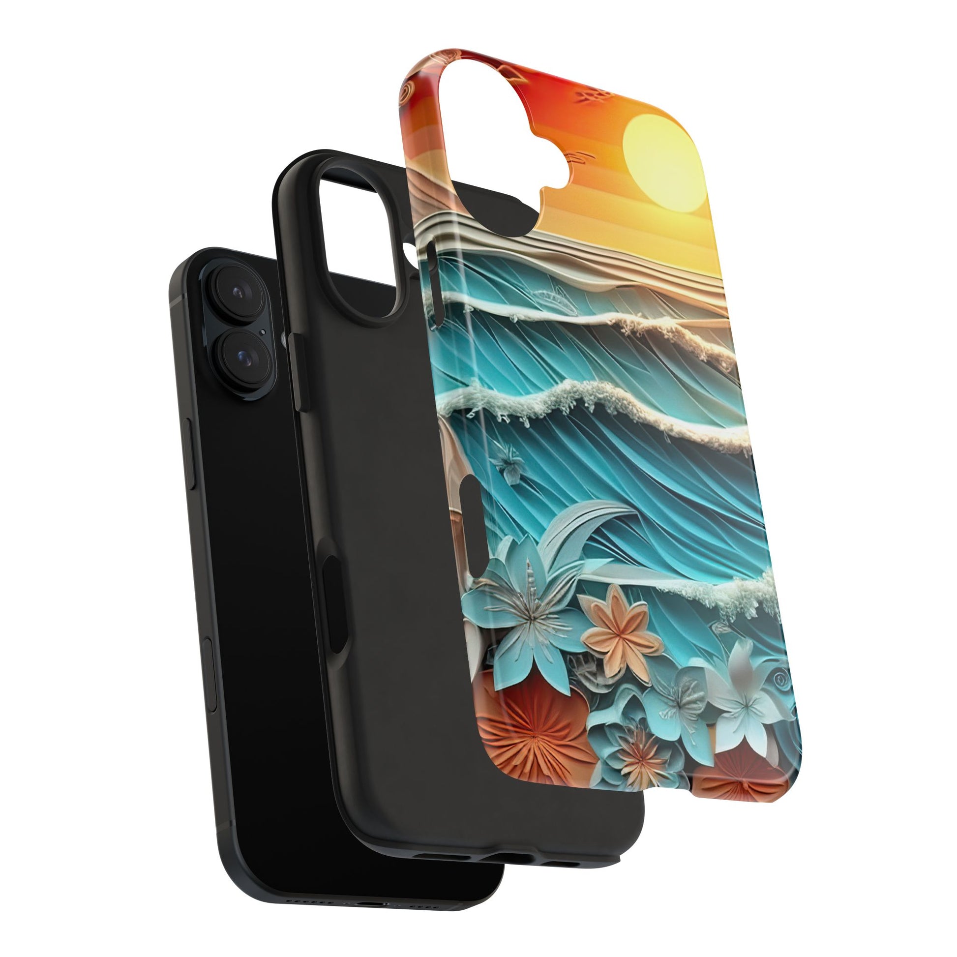 Add a touch of artistry to your phone with our Tropical Sunset Paper Art Ocean iPhone Case, perfect for beach lovers and art enthusiasts alike. This unique design features a beautifully layered paper art scene of a serene ocean with rolling waves, pastel flowers, and a warm sunset glowing over the horizon. The intricate details in soft blue, coral, and sandy beige hues bring a peaceful coastal vibe that’s both elegant and eye-catching. Crafted from premium, impact-resistant materials, this case offers reliable protection while showcasing an exquisite art piece in your hand.