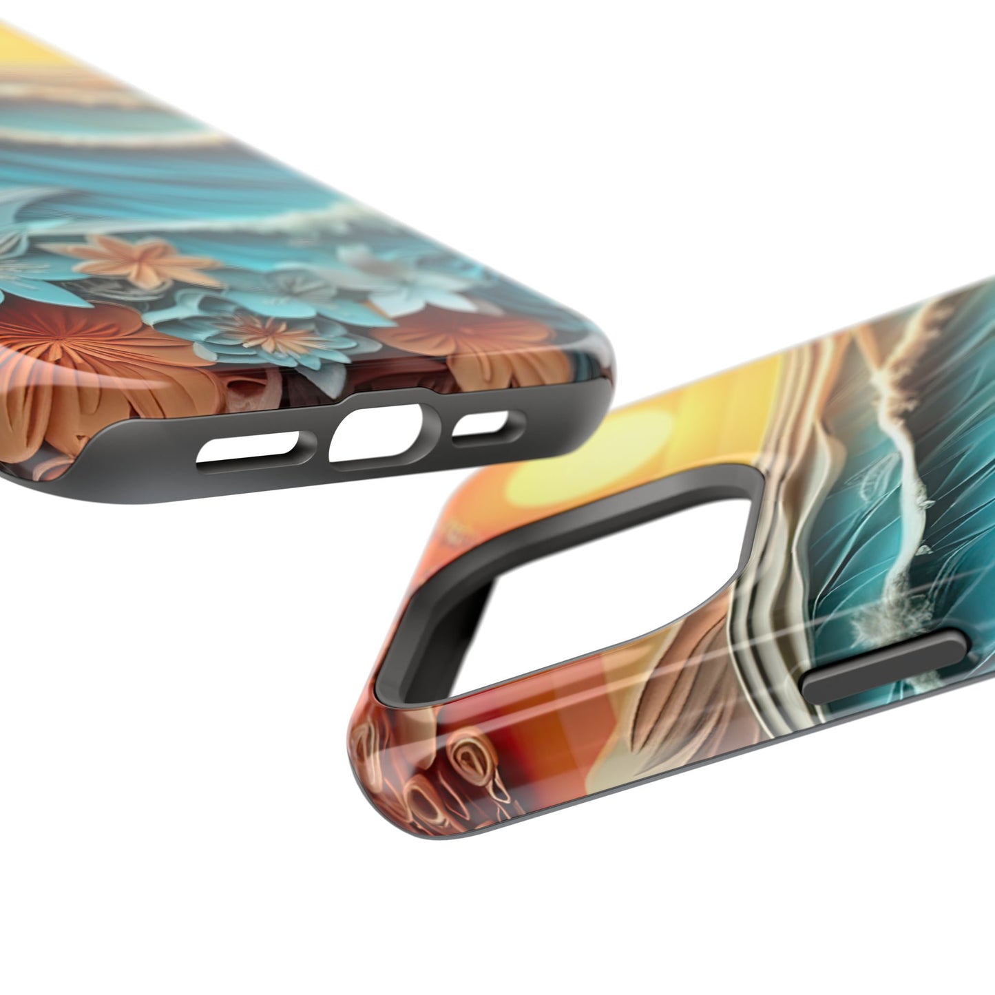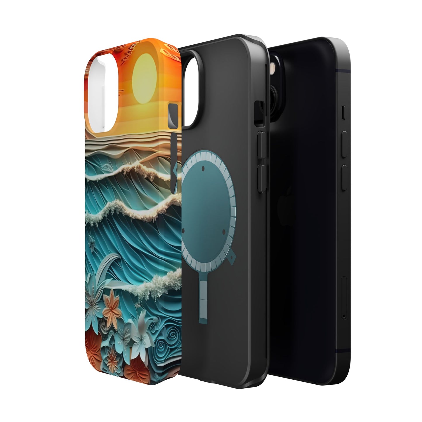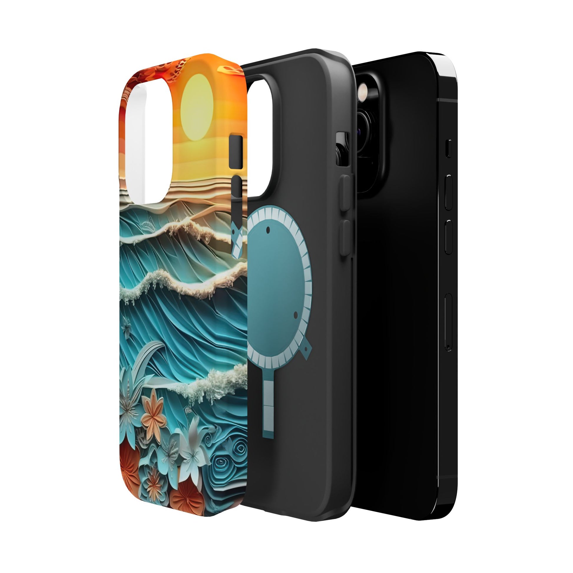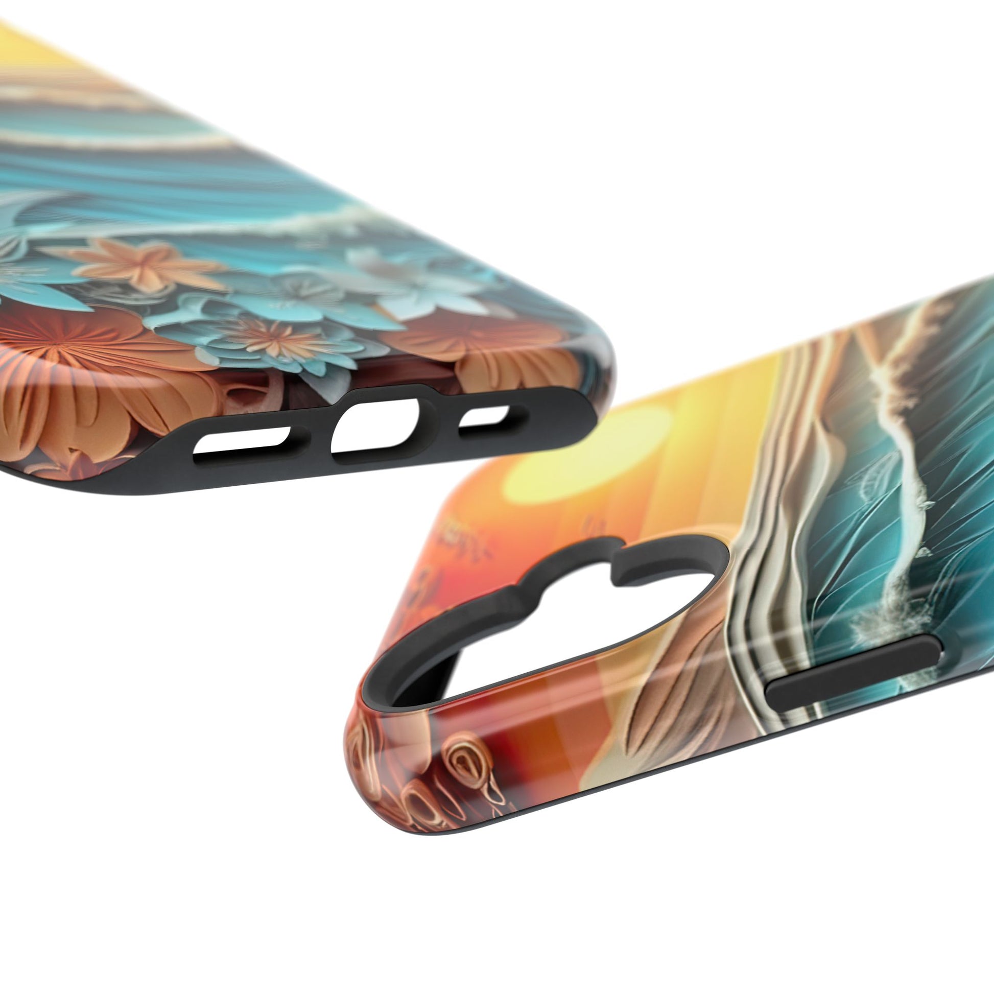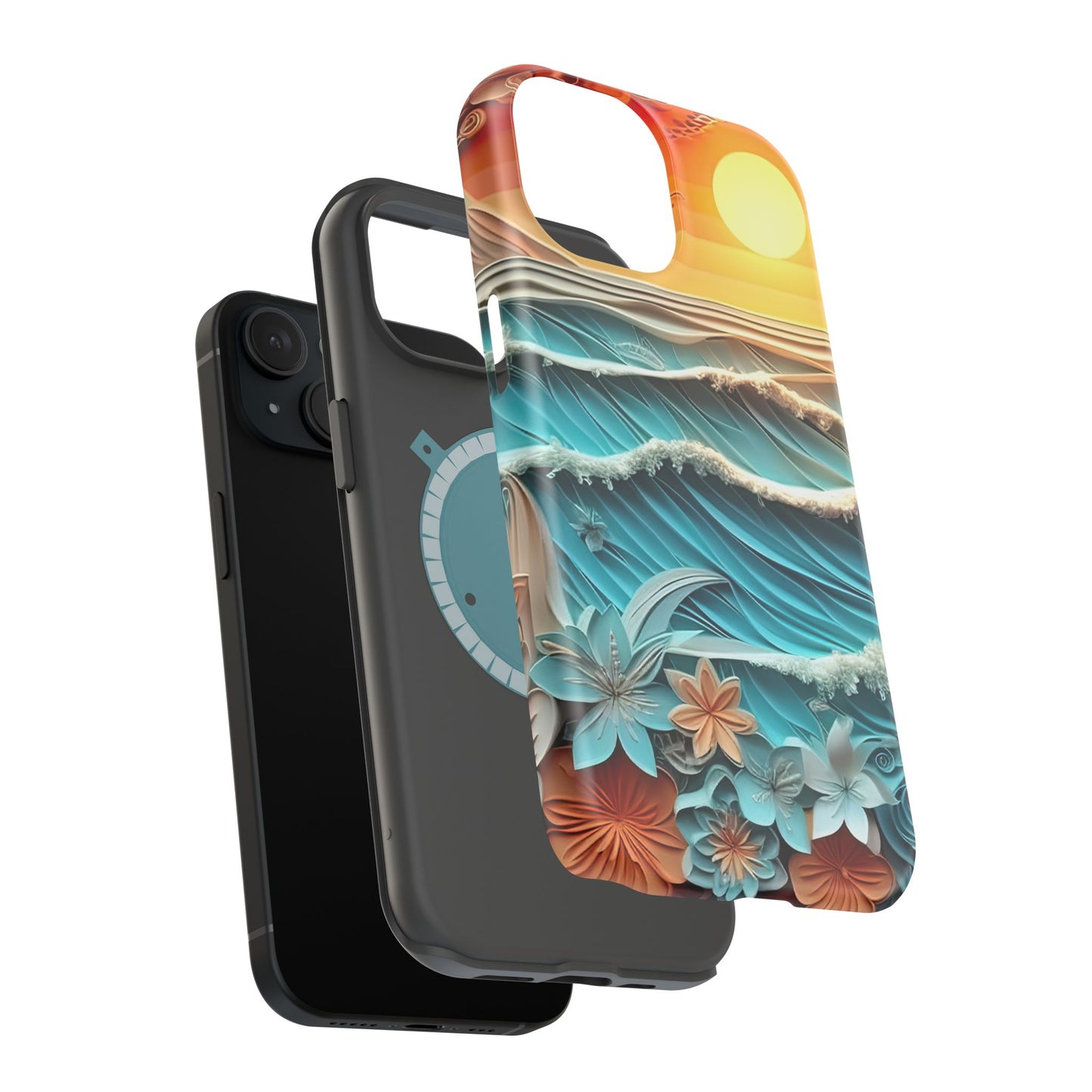 Add a touch of artistry to your phone with our Tropical Sunset Paper Art Ocean iPhone Case, perfect for beach lovers and art enthusiasts alike. This unique design features a beautifully layered paper art scene of a serene ocean with rolling waves, pastel flowers, and a warm sunset glowing over the horizon. The intricate details in soft blue, coral, and sandy beige hues bring a peaceful coastal vibe that’s both elegant and eye-catching. Crafted from premium, impact-resistant materials, this case offers reliable protection while showcasing an exquisite art piece in your hand.