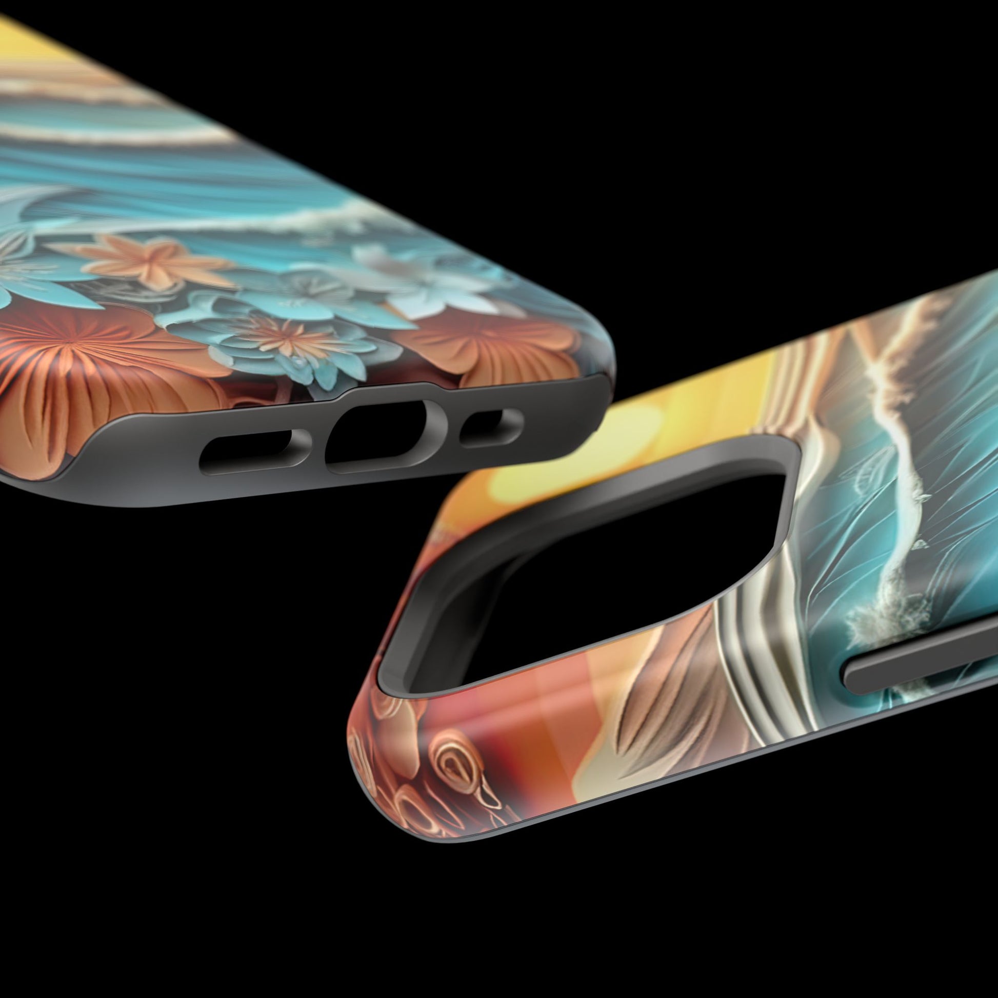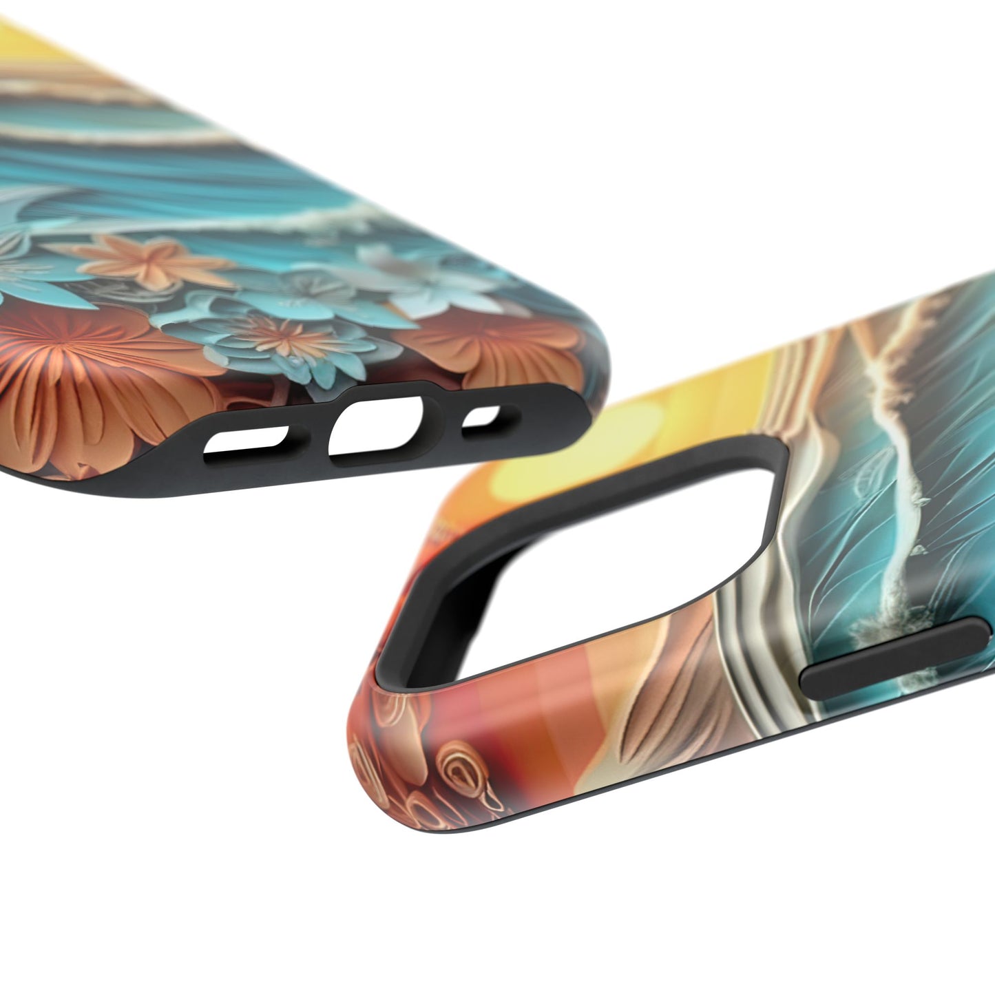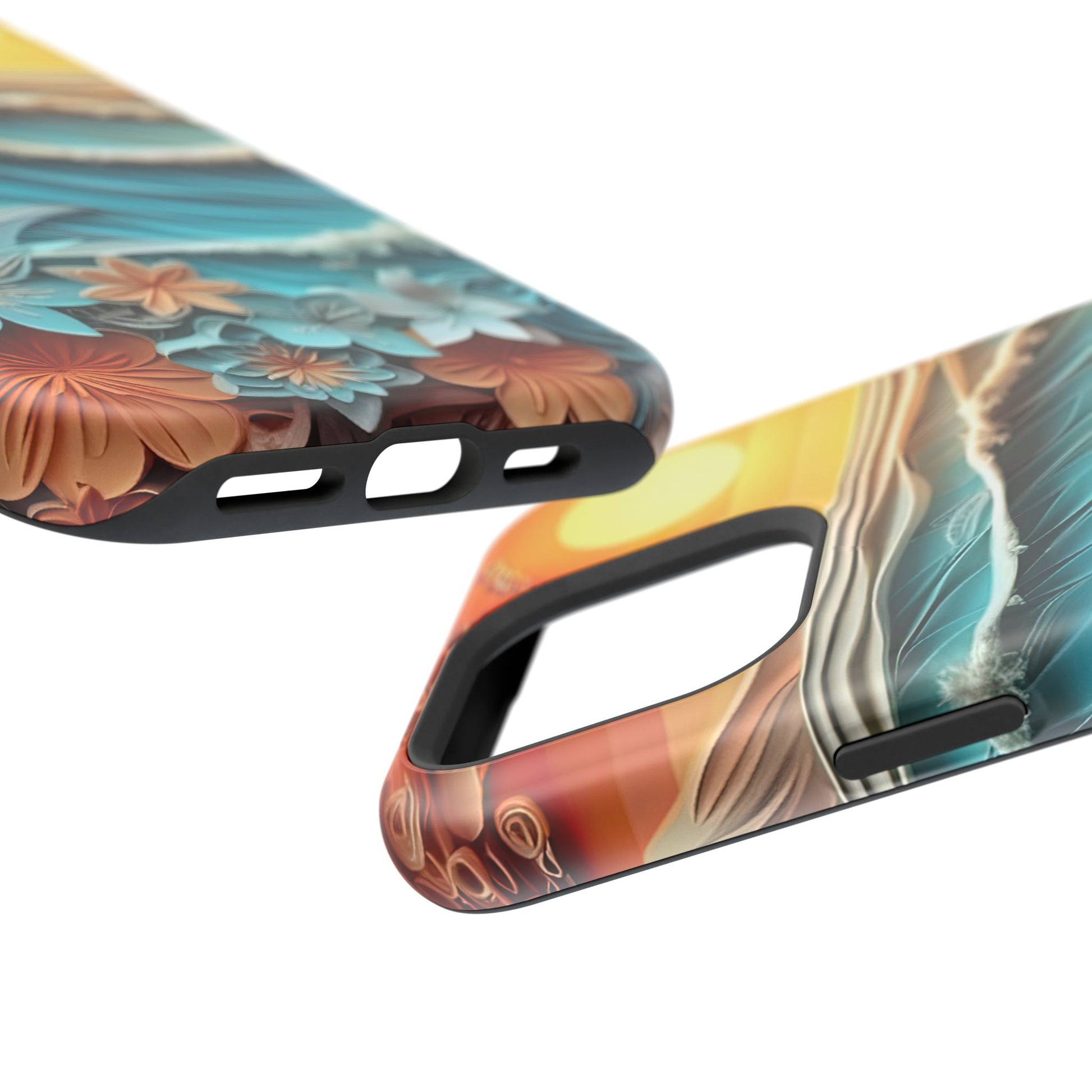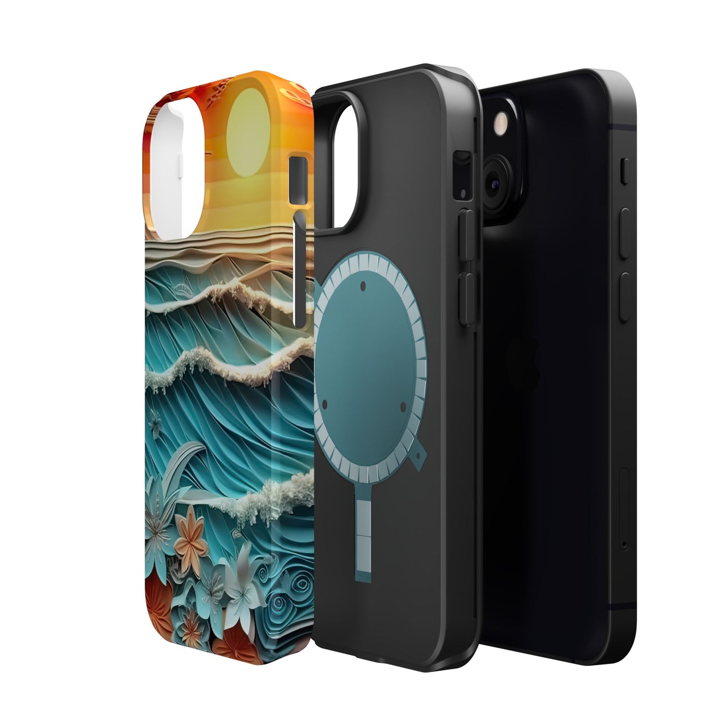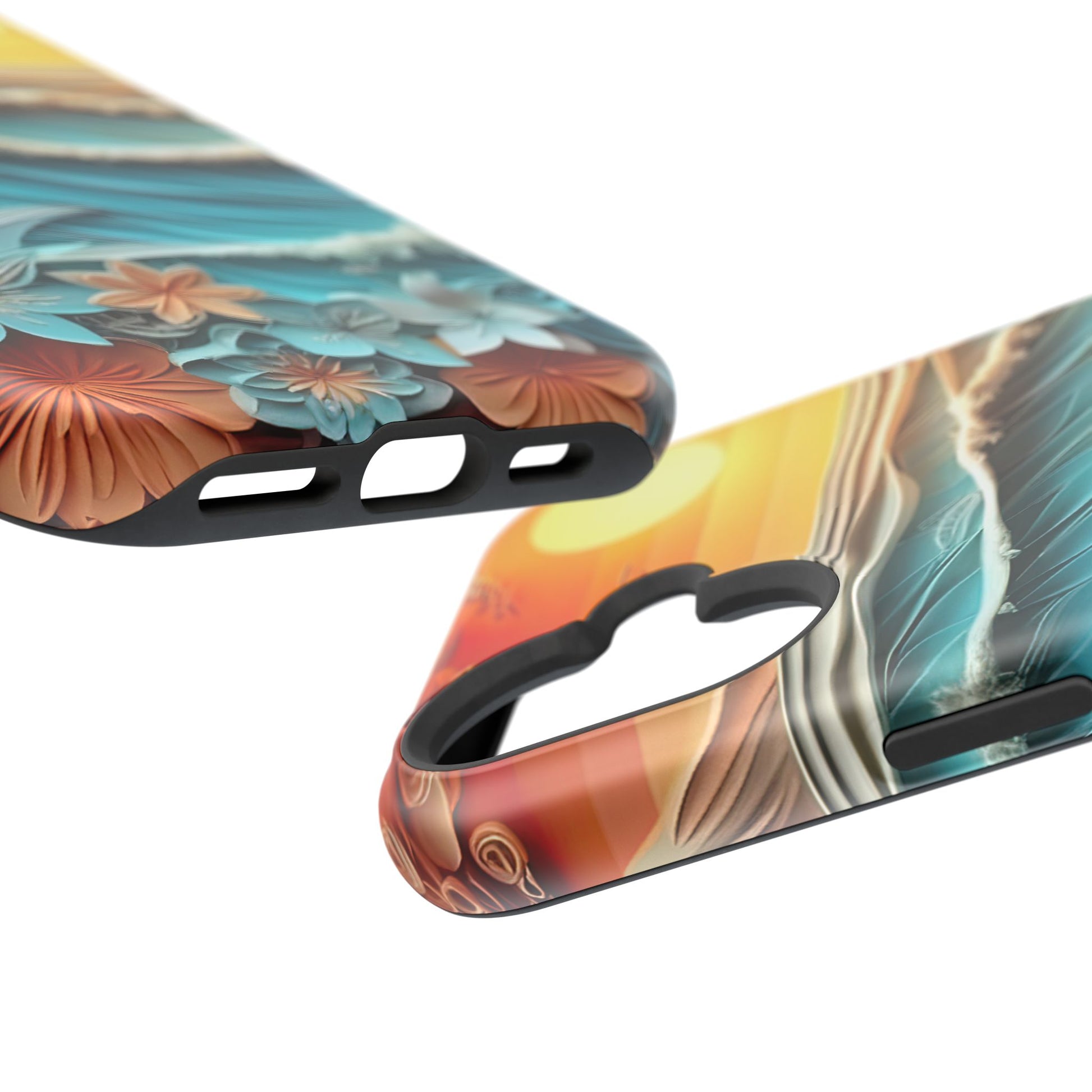 Add a touch of artistry to your phone with our Tropical Sunset Paper Art Ocean iPhone Case, perfect for beach lovers and art enthusiasts alike. This unique design features a beautifully layered paper art scene of a serene ocean with rolling waves, pastel flowers, and a warm sunset glowing over the horizon. The intricate details in soft blue, coral, and sandy beige hues bring a peaceful coastal vibe that’s both elegant and eye-catching. Crafted from premium, impact-resistant materials, this case offers reliable protection while showcasing an exquisite art piece in your hand.