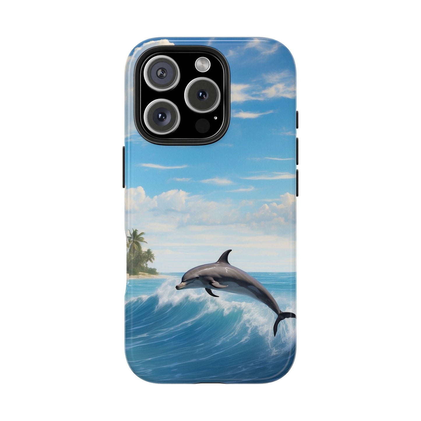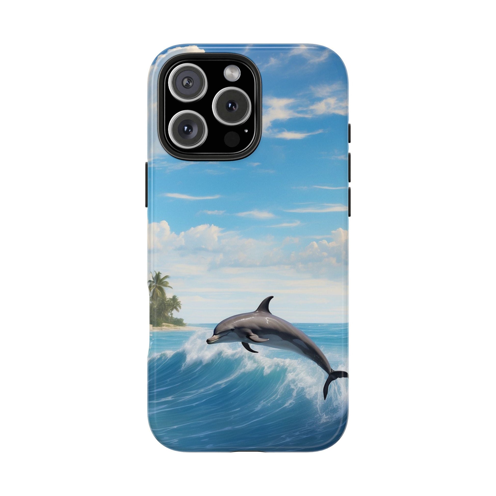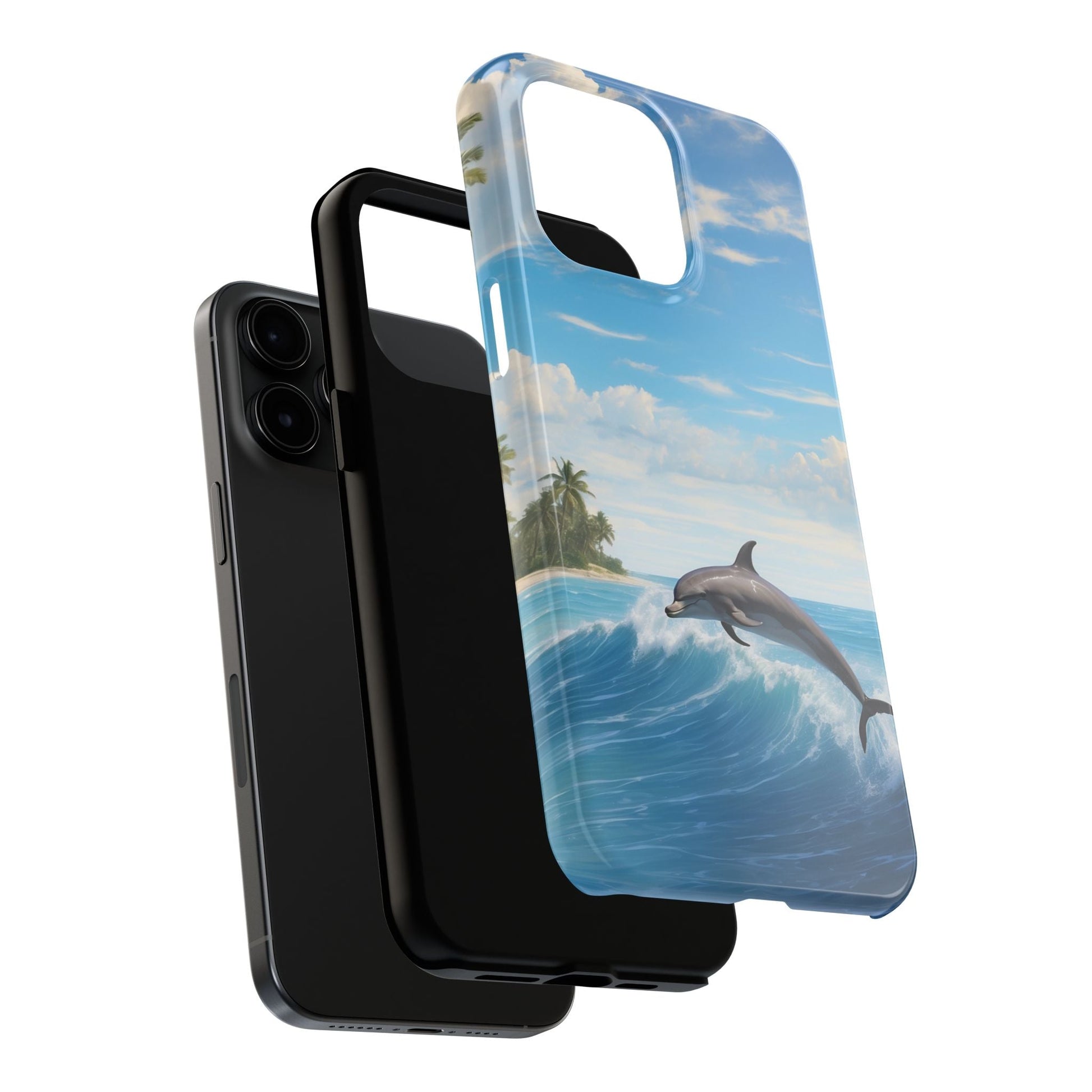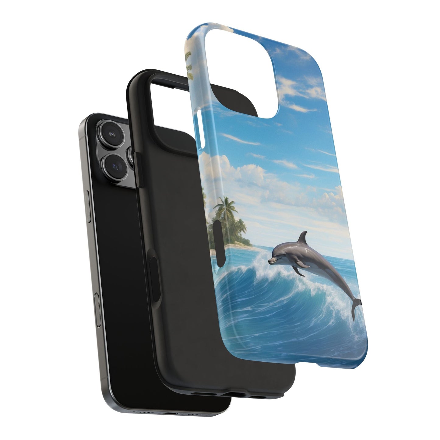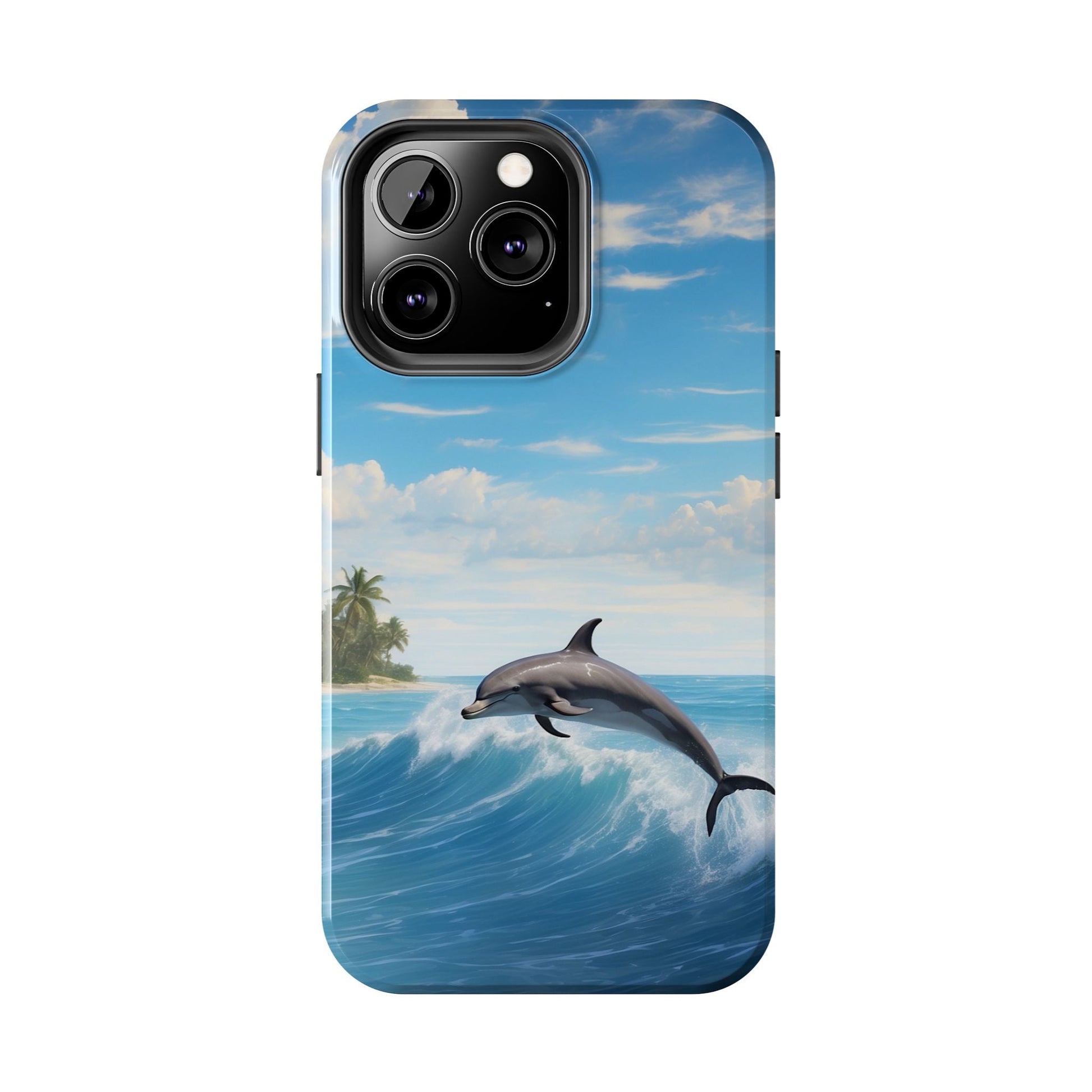 Ride the waves of adventure with this Tropical Surf Dolphin iPhone Case! Featuring a playful dolphin leaping through a crystal-blue wave, surrounded by lush palm trees and a bright tropical sky, this case is perfect for ocean lovers and free spirits. Designed with tough polycarbonate and a shock-absorbing TPU bumper, it protects your phone while bringing a touch of paradise to your everyday life.