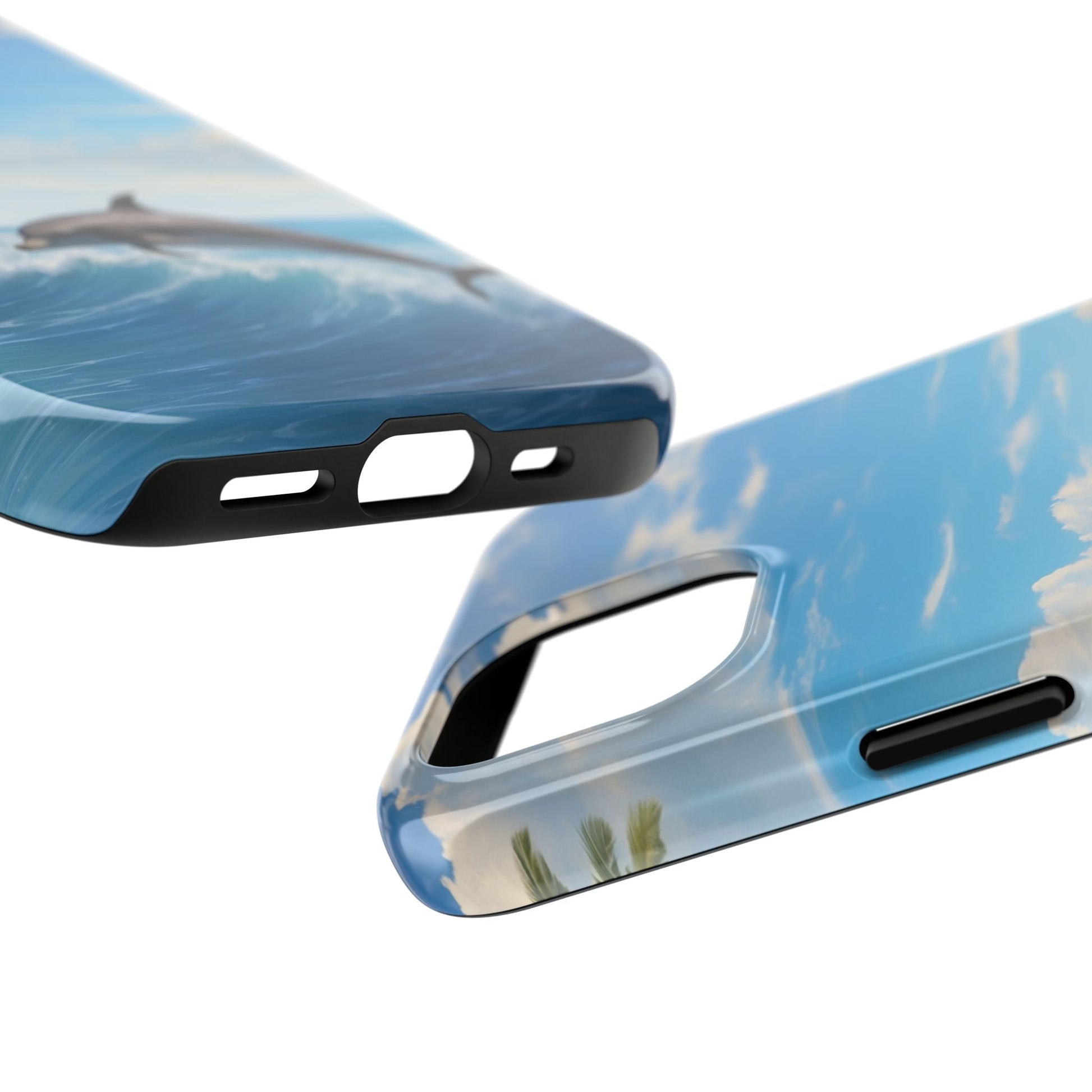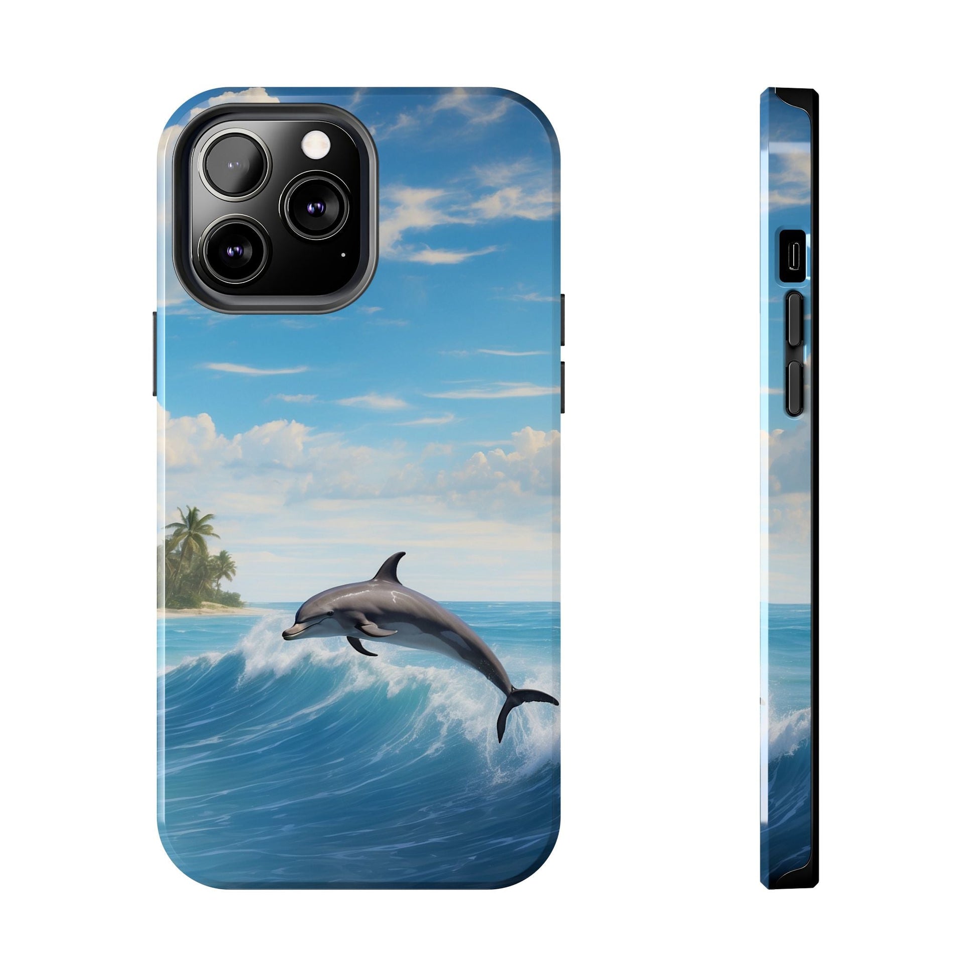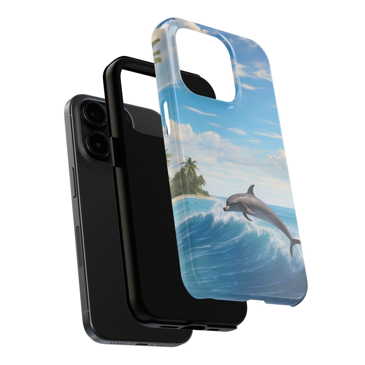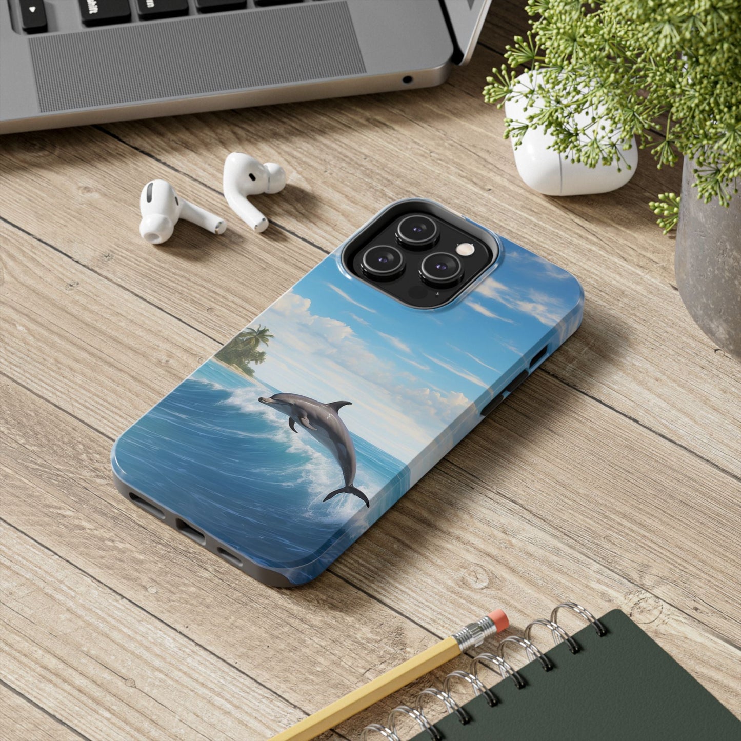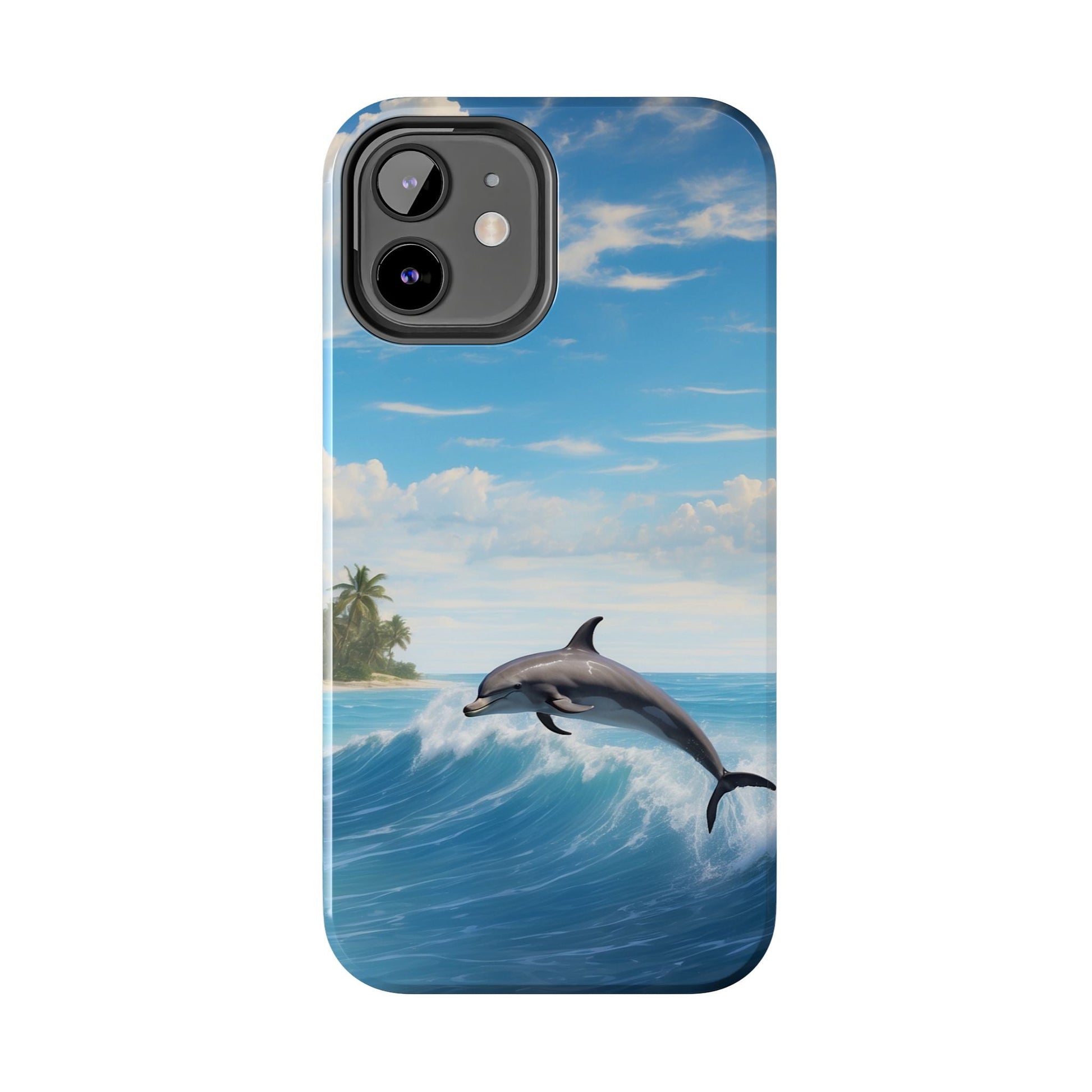 Ride the waves of adventure with this Tropical Surf Dolphin iPhone Case! Featuring a playful dolphin leaping through a crystal-blue wave, surrounded by lush palm trees and a bright tropical sky, this case is perfect for ocean lovers and free spirits. Designed with tough polycarbonate and a shock-absorbing TPU bumper, it protects your phone while bringing a touch of paradise to your everyday life.