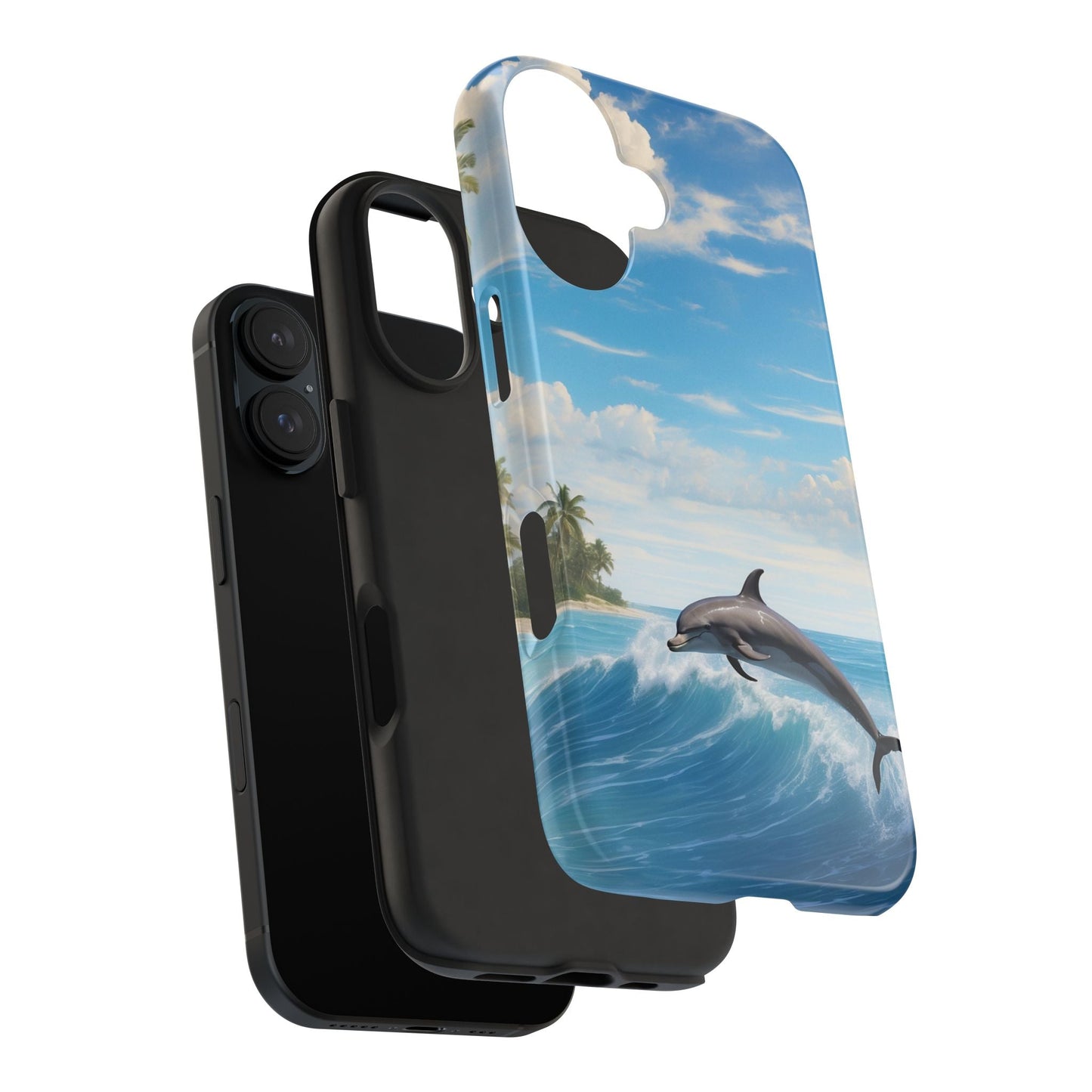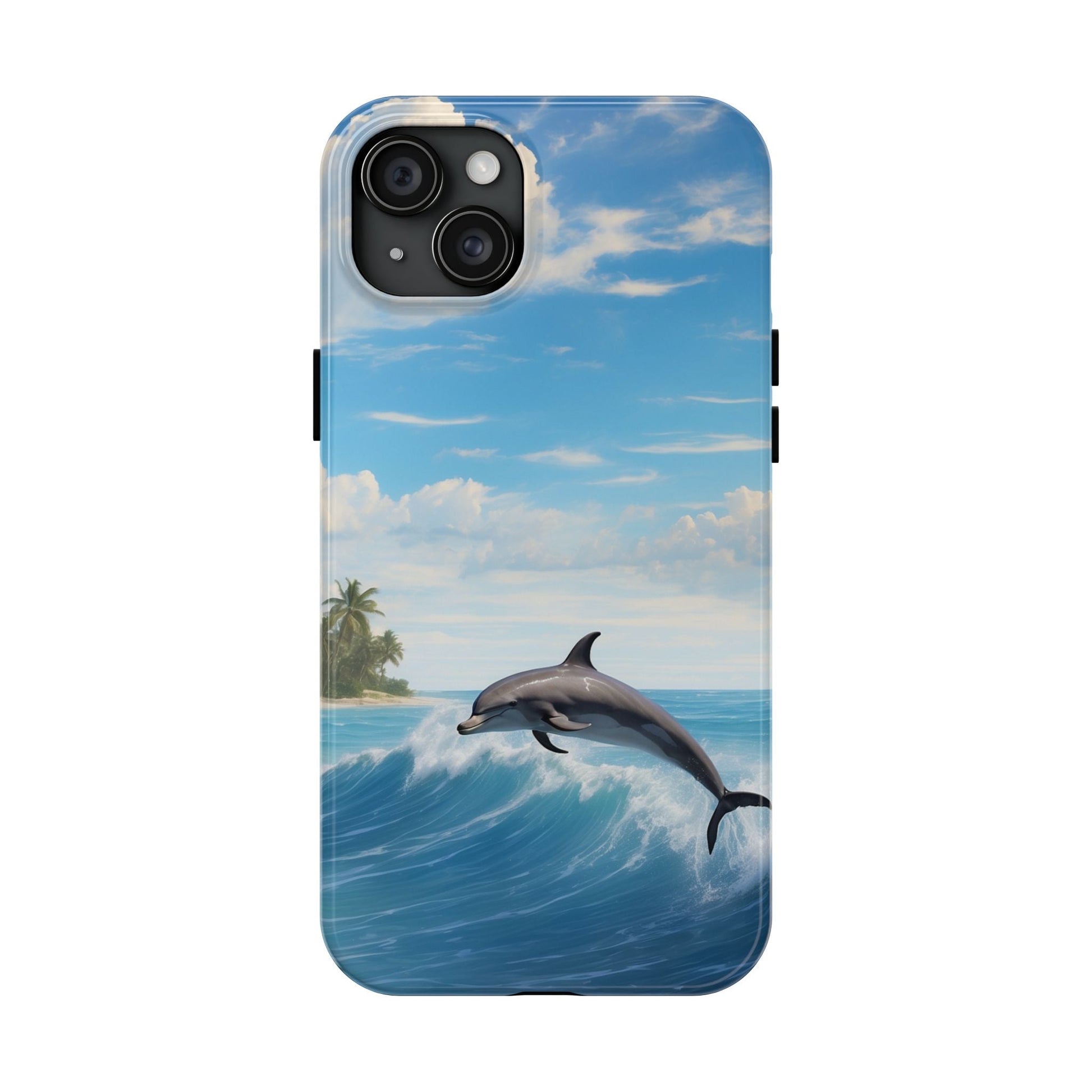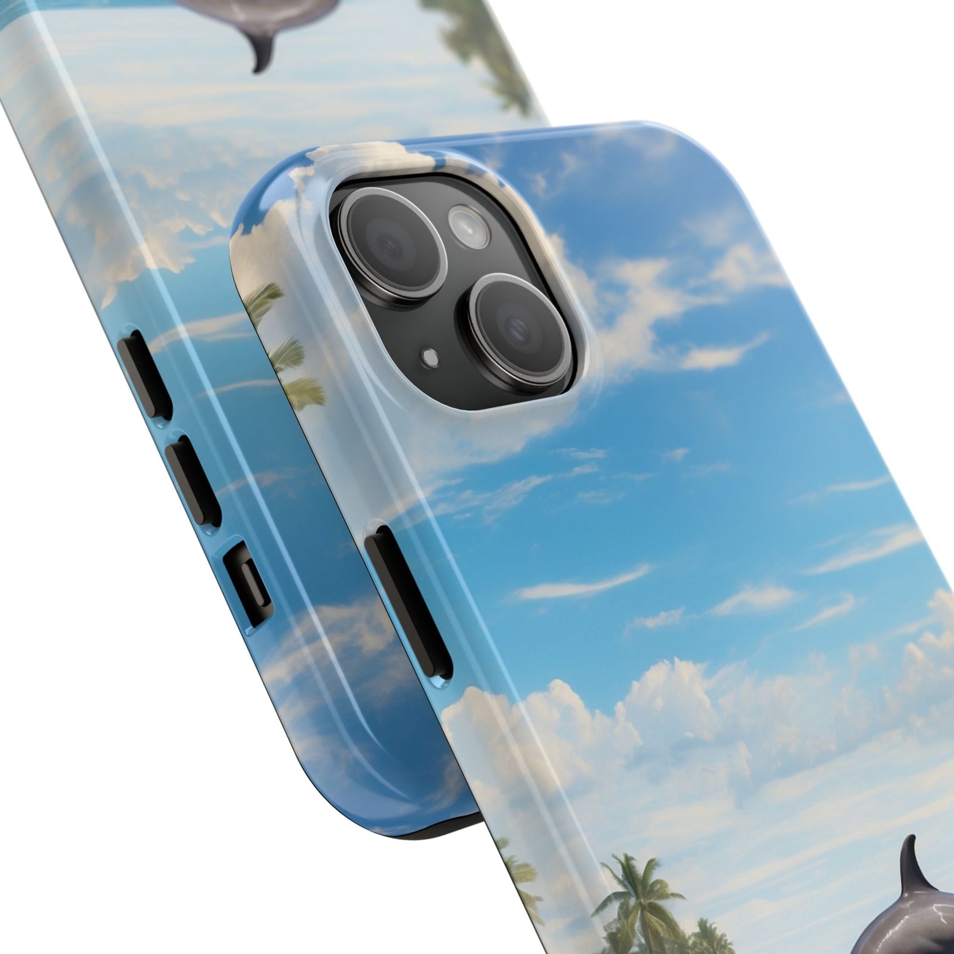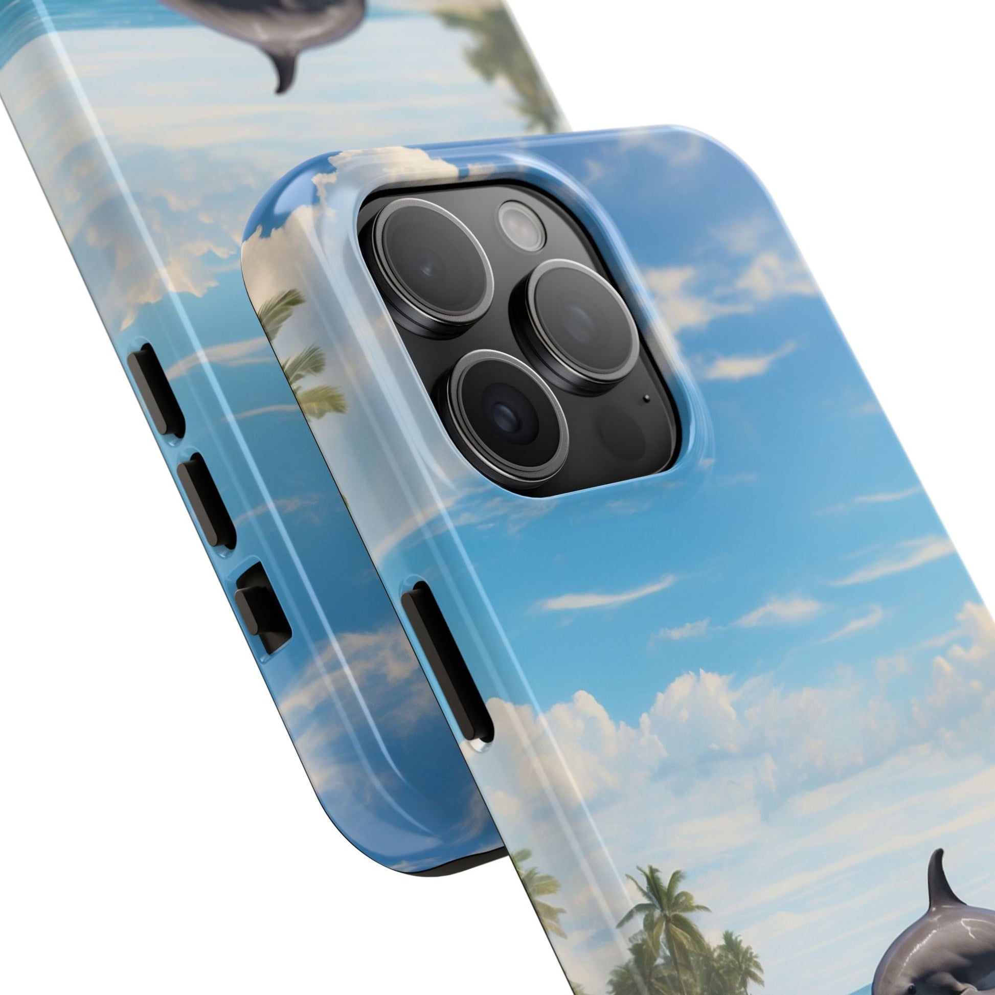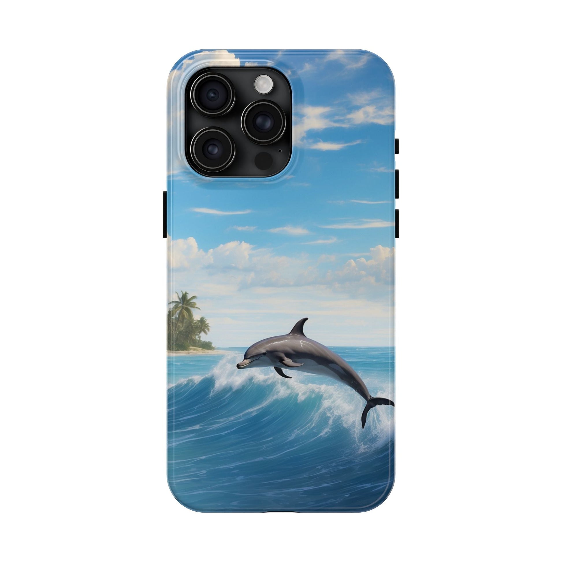 Ride the waves of adventure with this Tropical Surf Dolphin iPhone Case! Featuring a playful dolphin leaping through a crystal-blue wave, surrounded by lush palm trees and a bright tropical sky, this case is perfect for ocean lovers and free spirits. Designed with tough polycarbonate and a shock-absorbing TPU bumper, it protects your phone while bringing a touch of paradise to your everyday life.