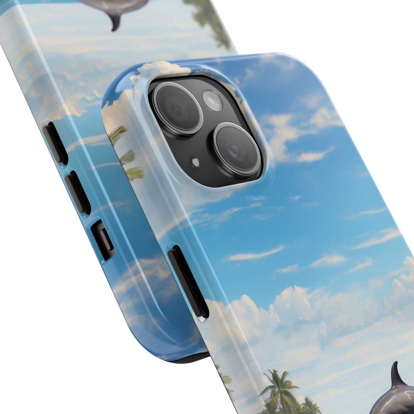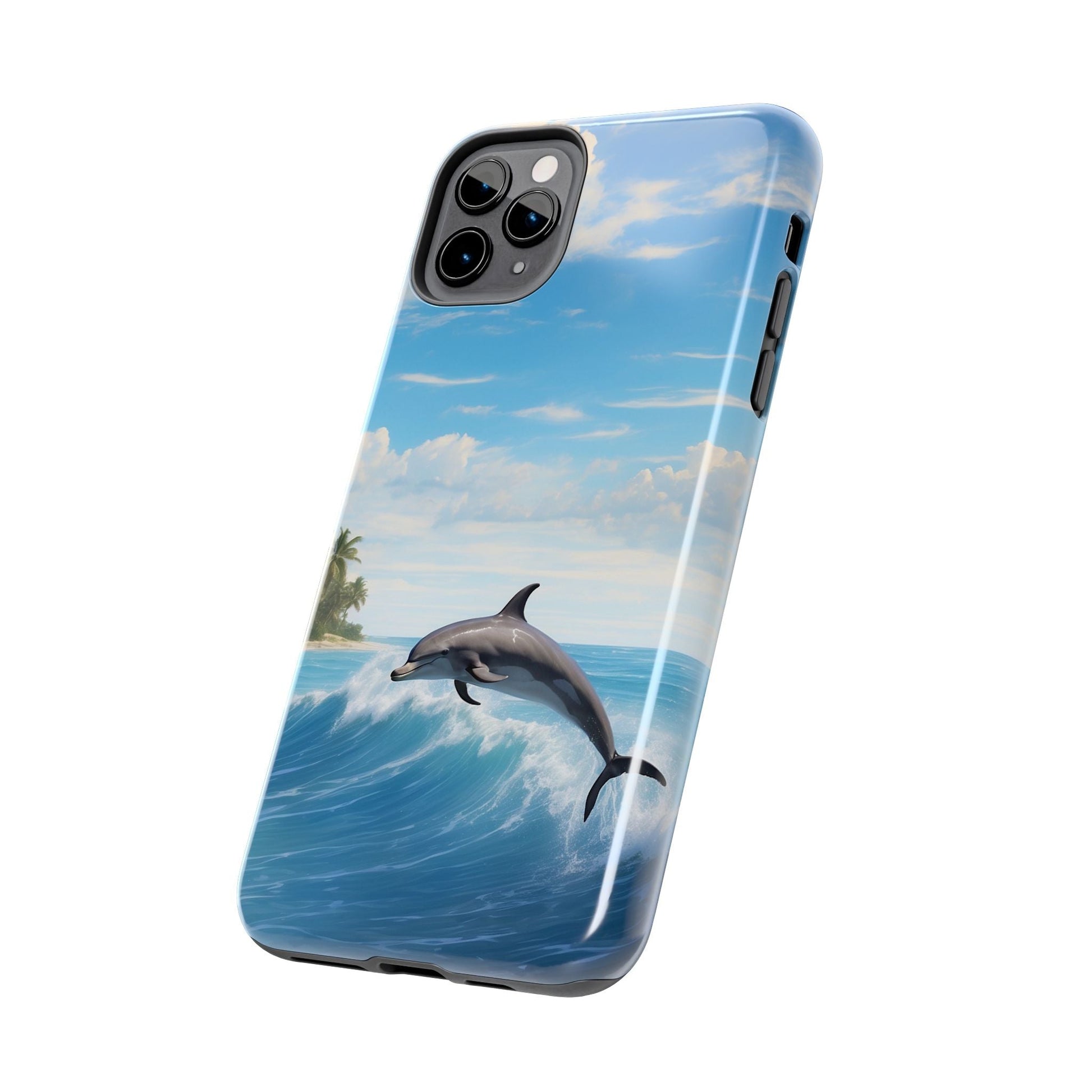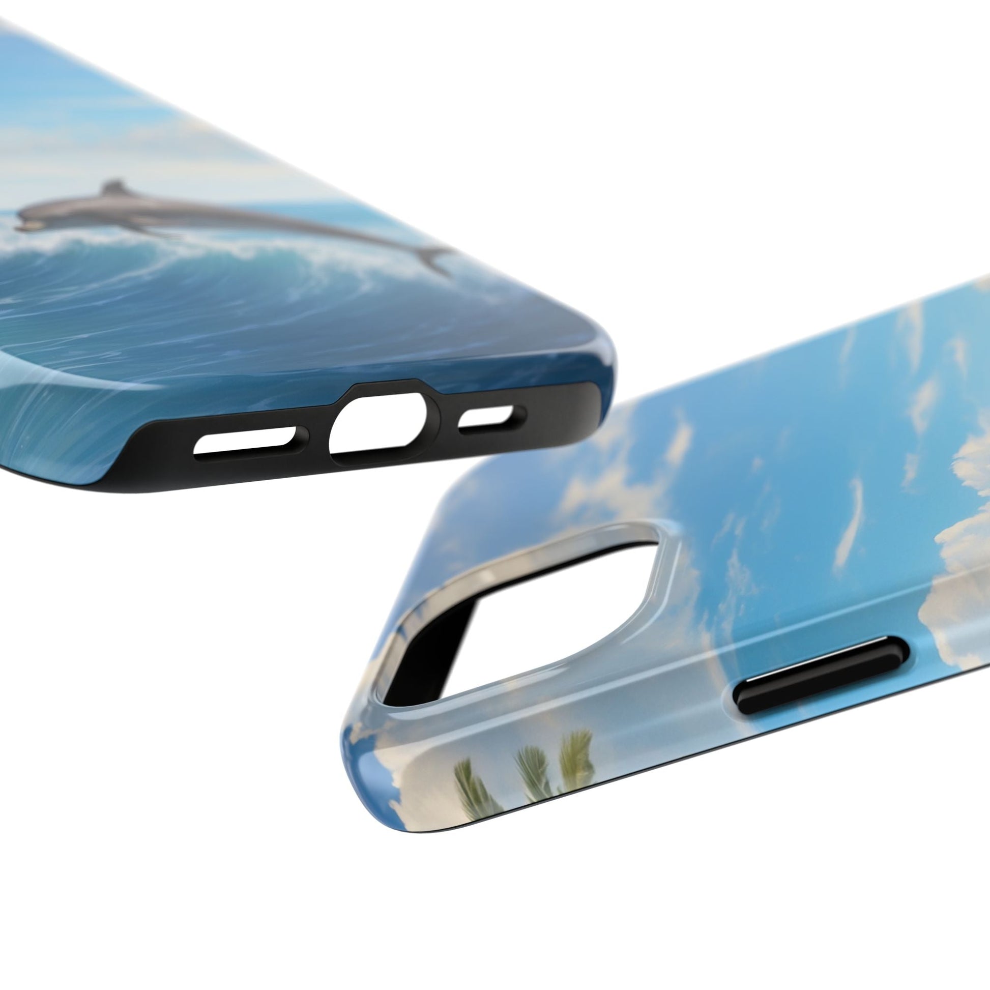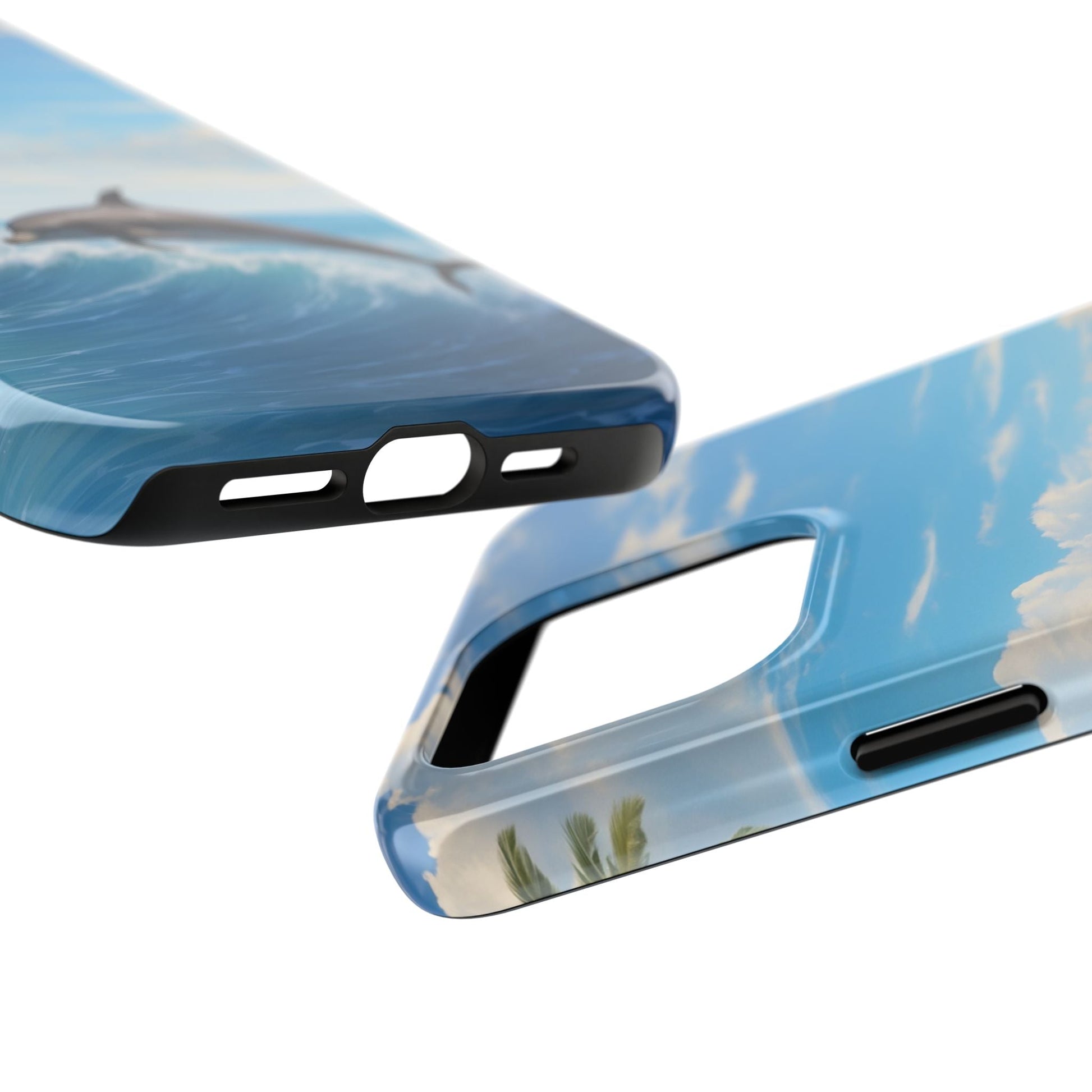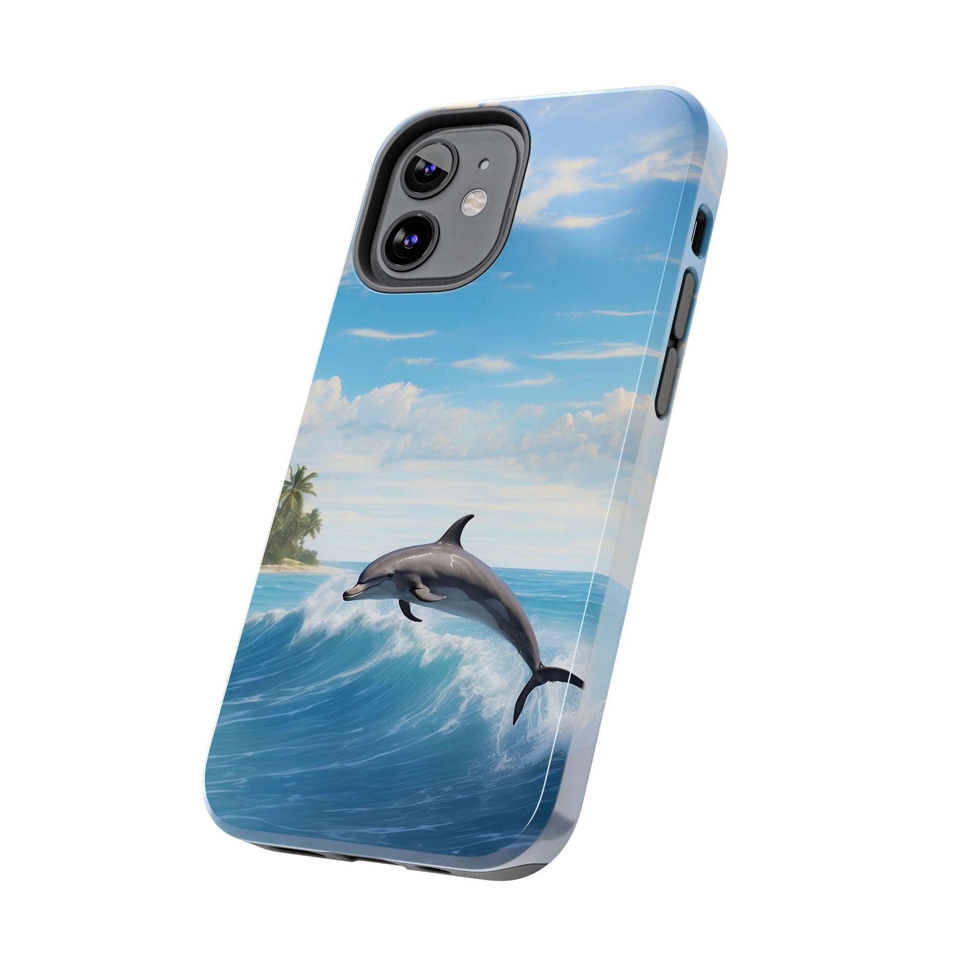 Ride the waves of adventure with this Tropical Surf Dolphin iPhone Case! Featuring a playful dolphin leaping through a crystal-blue wave, surrounded by lush palm trees and a bright tropical sky, this case is perfect for ocean lovers and free spirits. Designed with tough polycarbonate and a shock-absorbing TPU bumper, it protects your phone while bringing a touch of paradise to your everyday life.