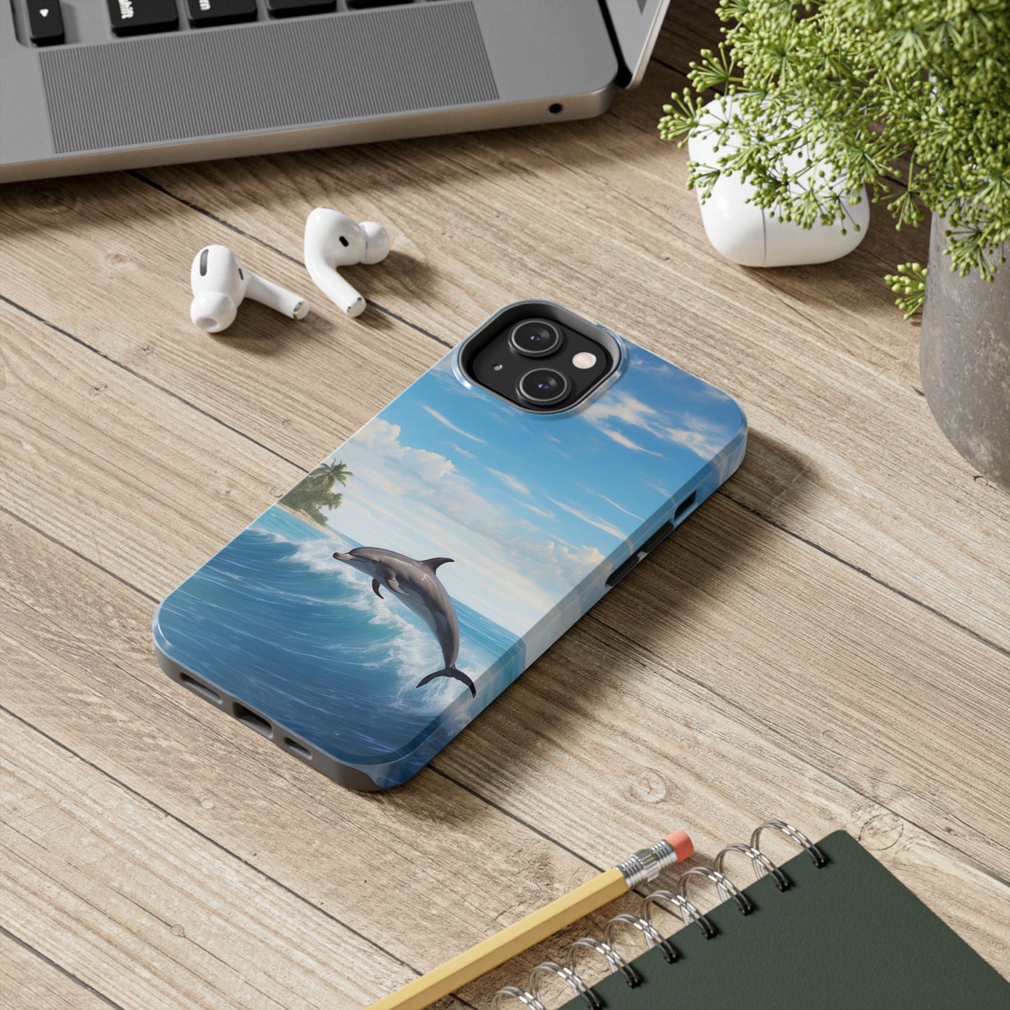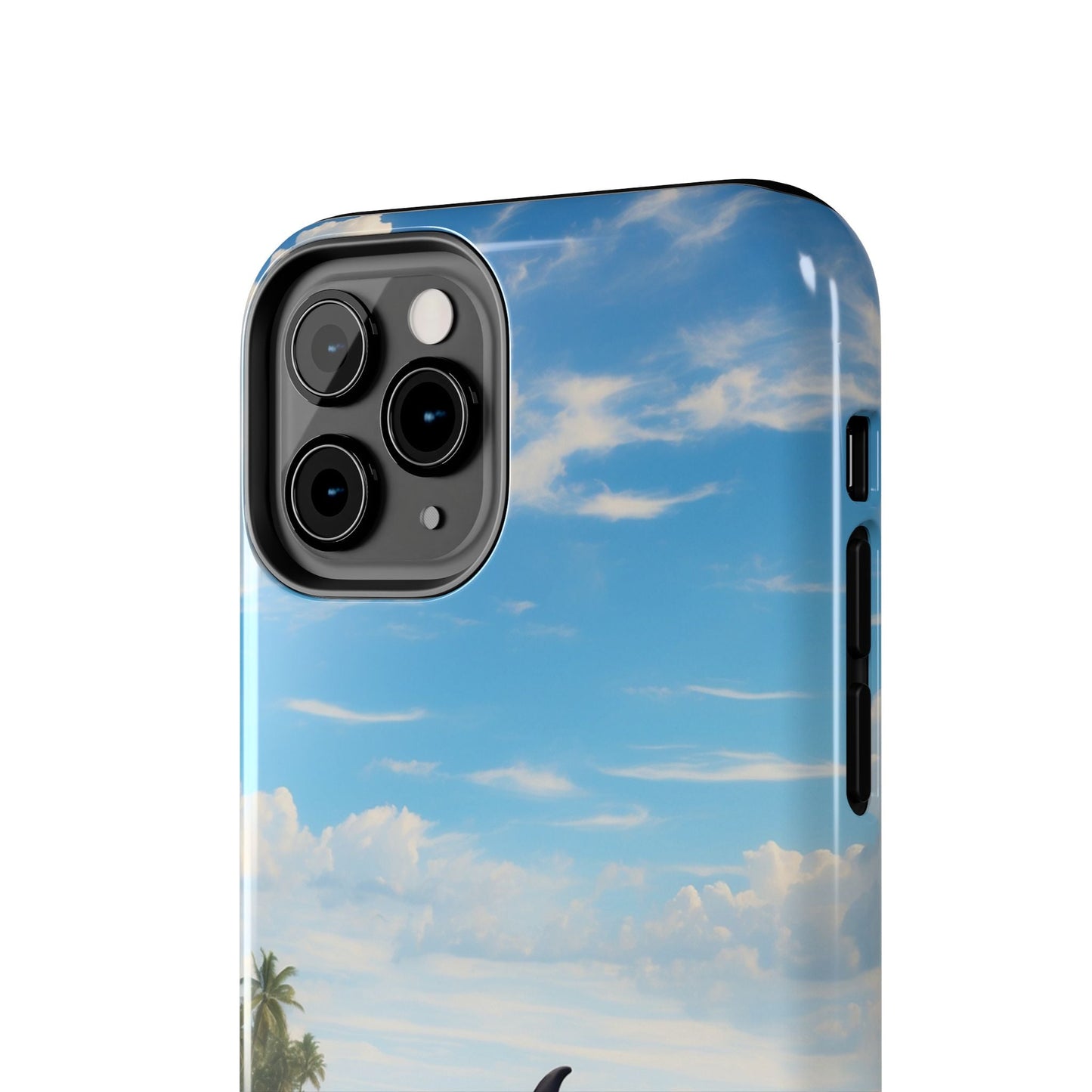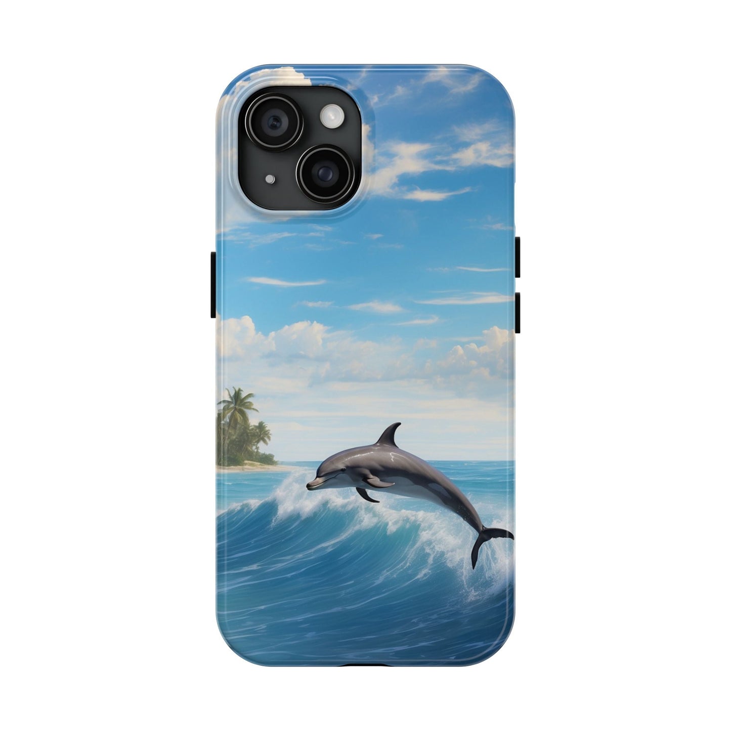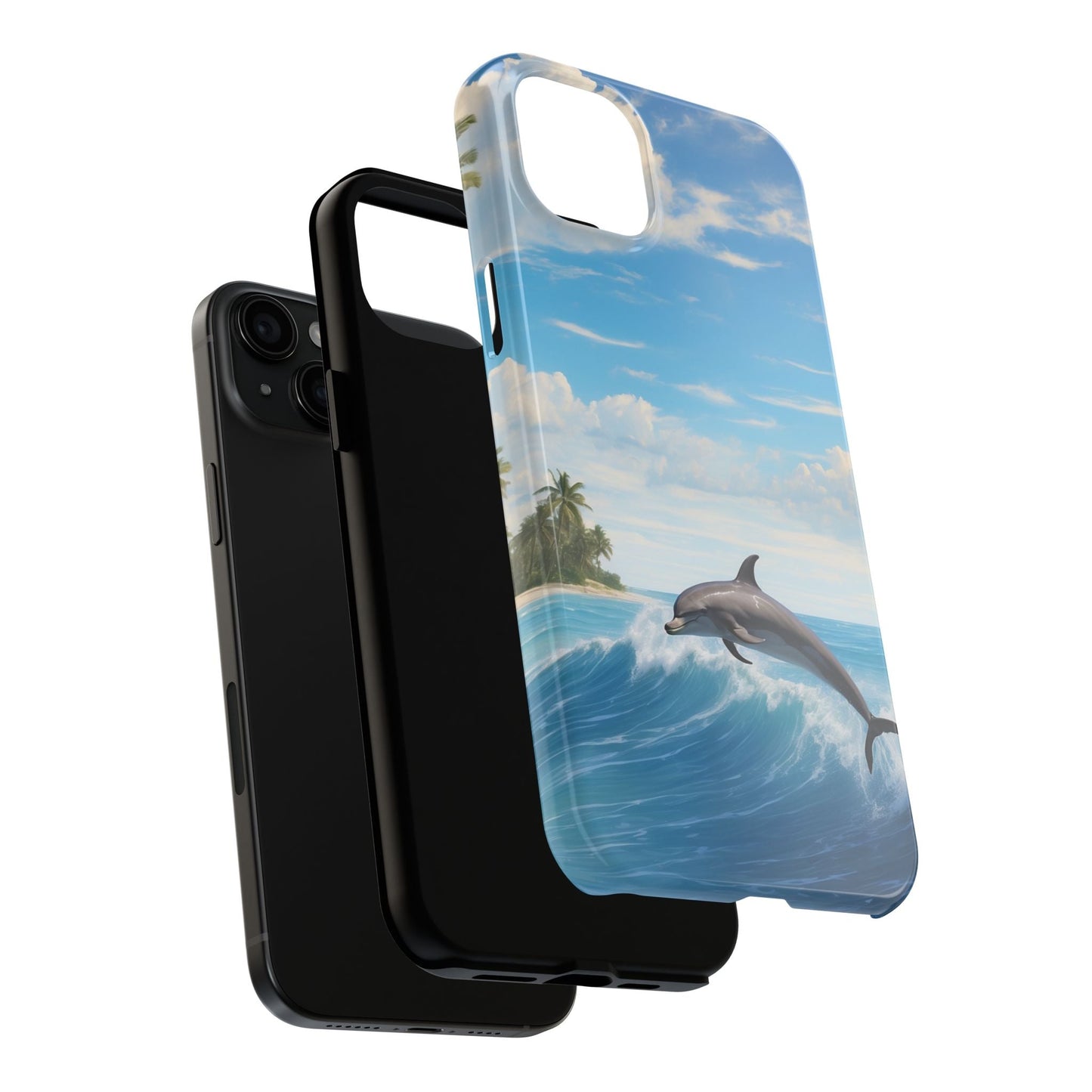 Ride the waves of adventure with this Tropical Surf Dolphin iPhone Case! Featuring a playful dolphin leaping through a crystal-blue wave, surrounded by lush palm trees and a bright tropical sky, this case is perfect for ocean lovers and free spirits. Designed with tough polycarbonate and a shock-absorbing TPU bumper, it protects your phone while bringing a touch of paradise to your everyday life.