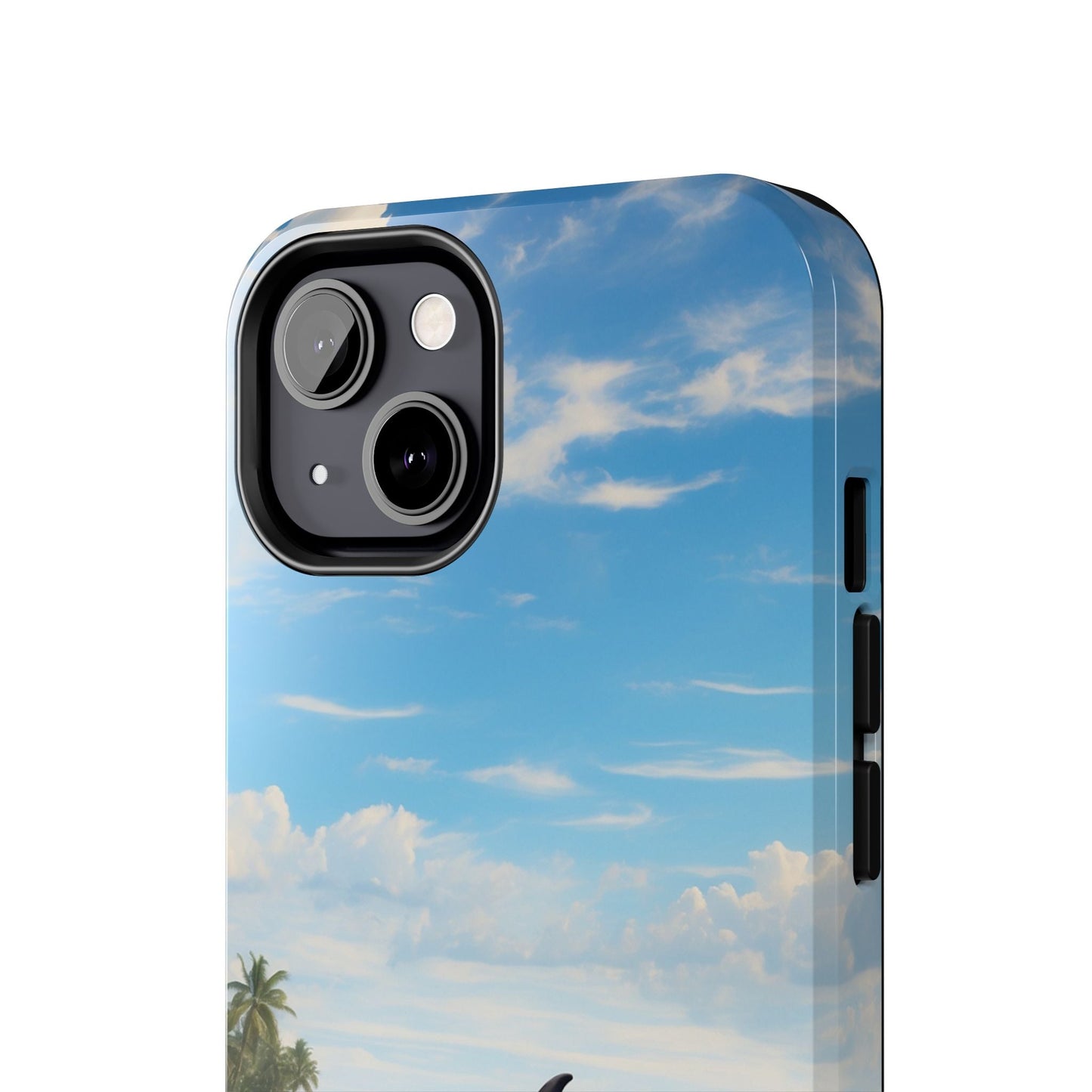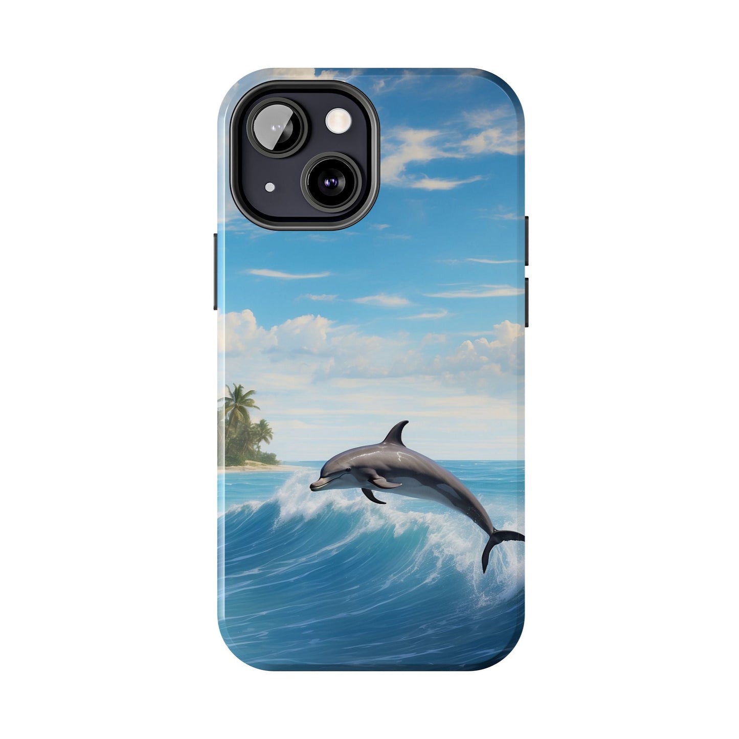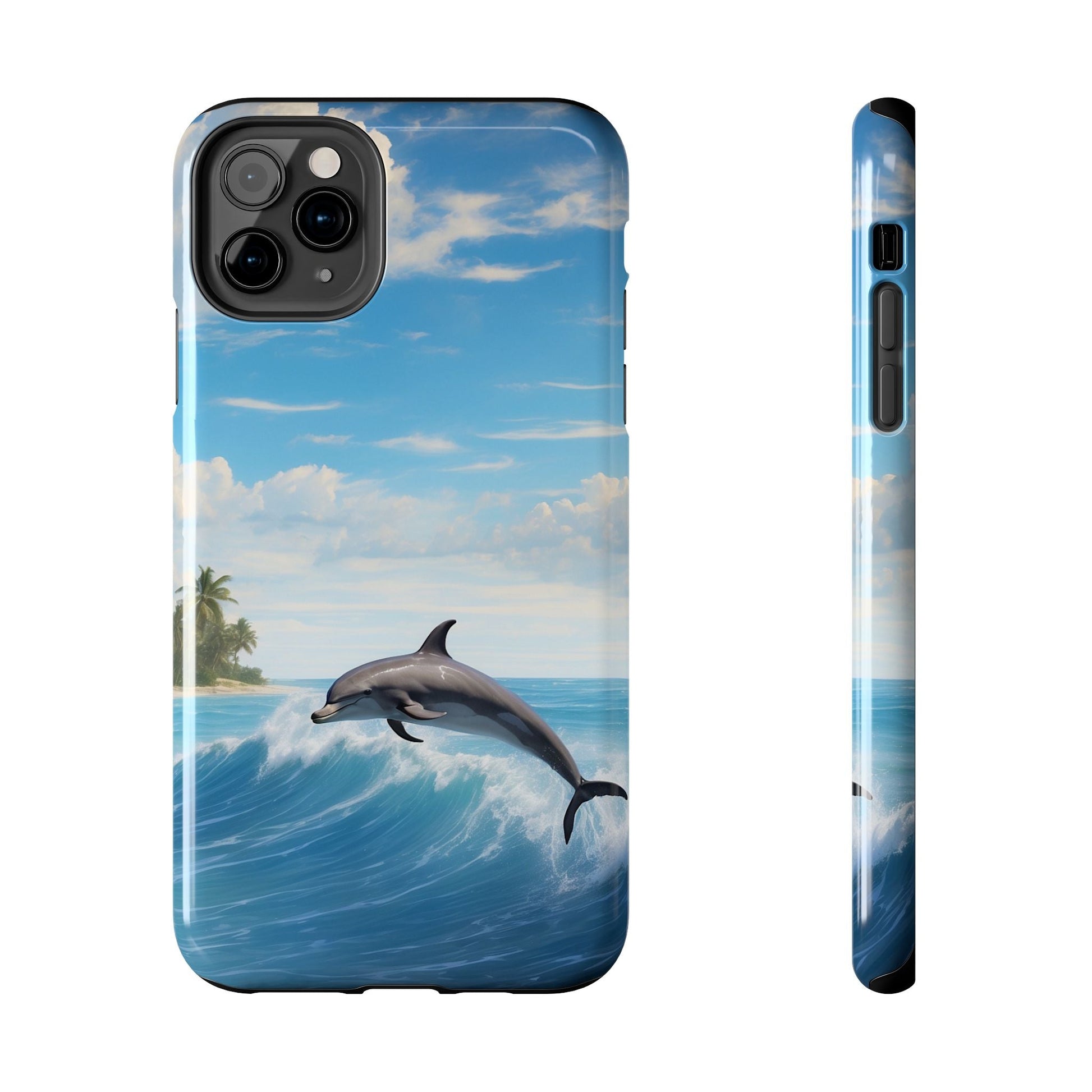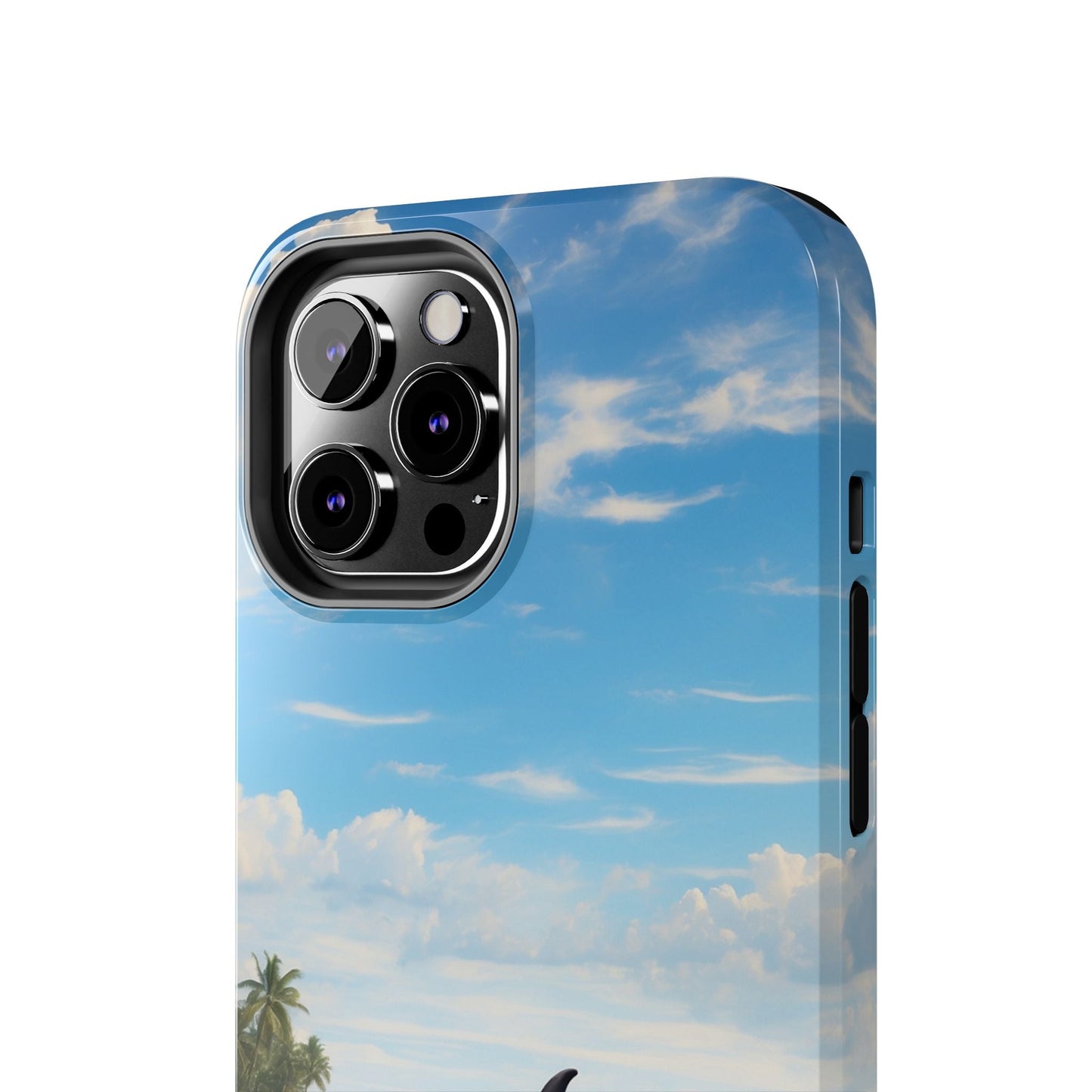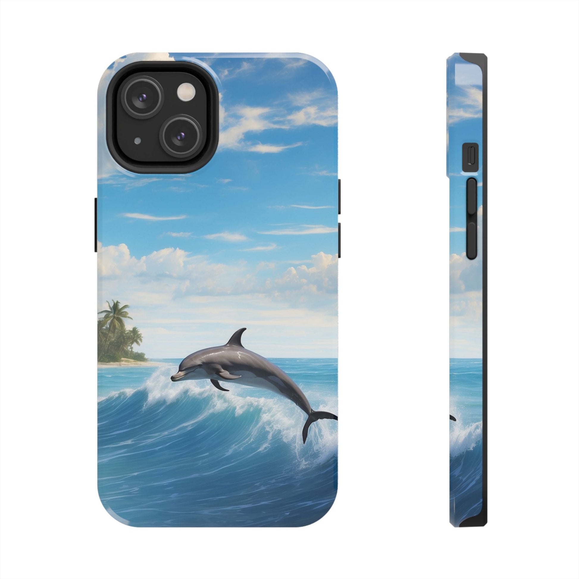 Ride the waves of adventure with this Tropical Surf Dolphin iPhone Case! Featuring a playful dolphin leaping through a crystal-blue wave, surrounded by lush palm trees and a bright tropical sky, this case is perfect for ocean lovers and free spirits. Designed with tough polycarbonate and a shock-absorbing TPU bumper, it protects your phone while bringing a touch of paradise to your everyday life.
