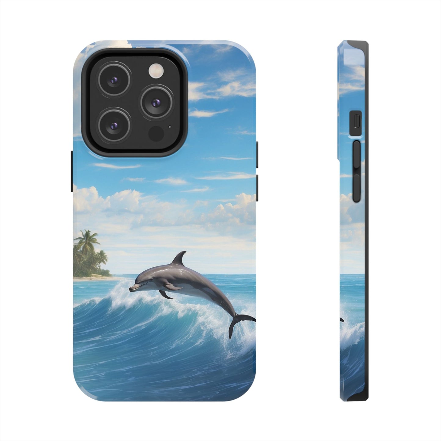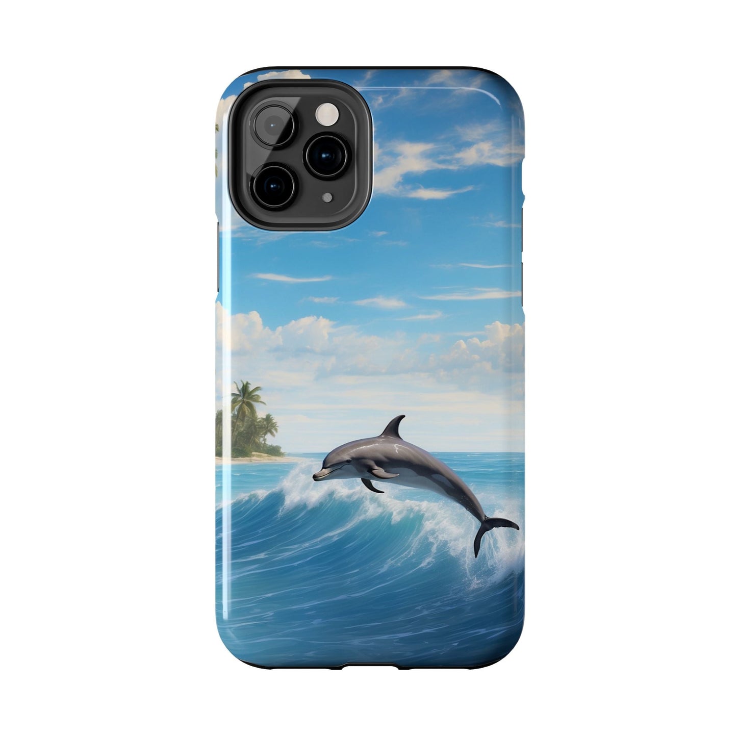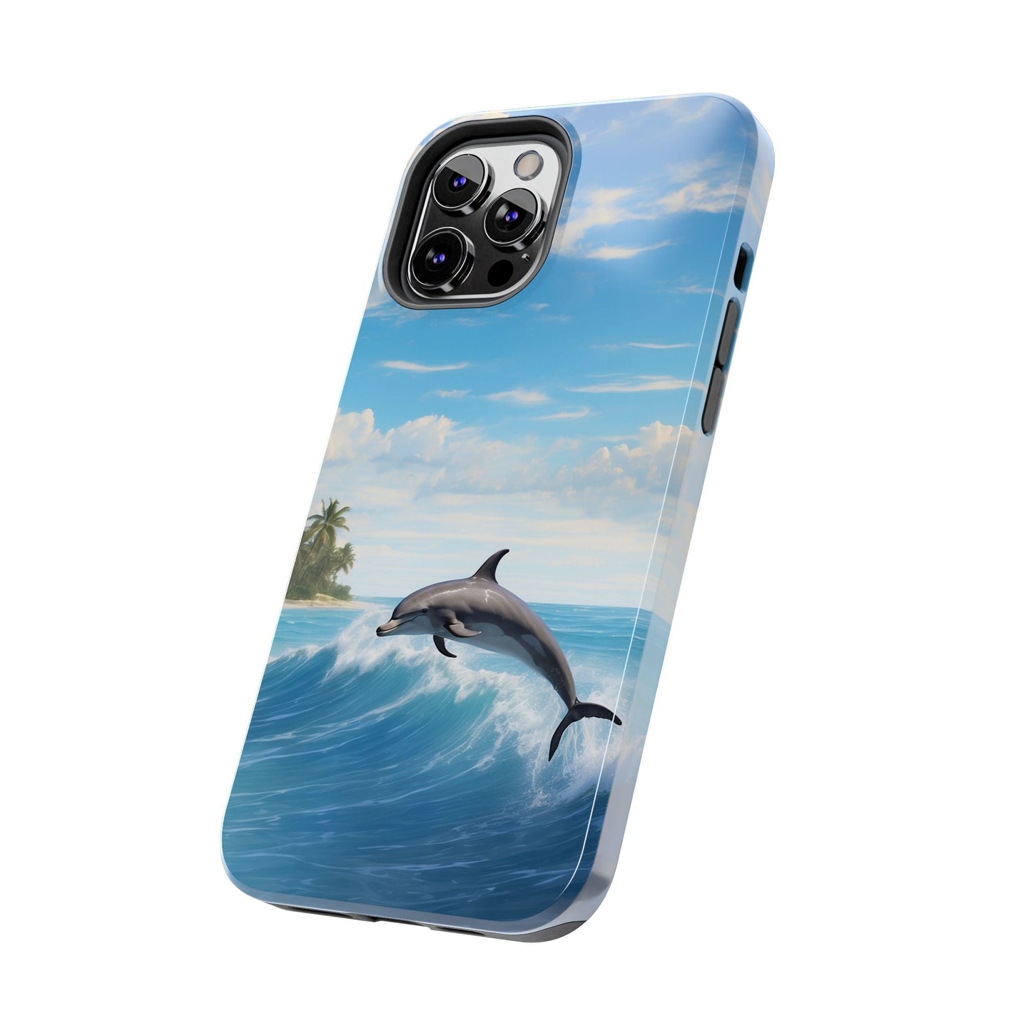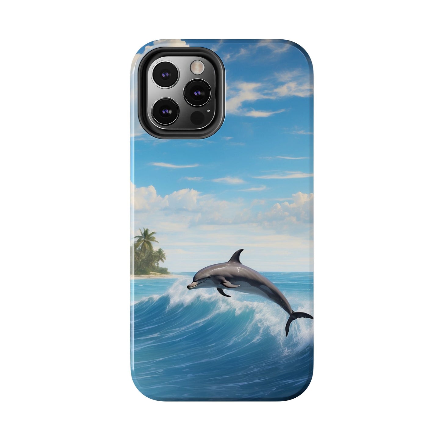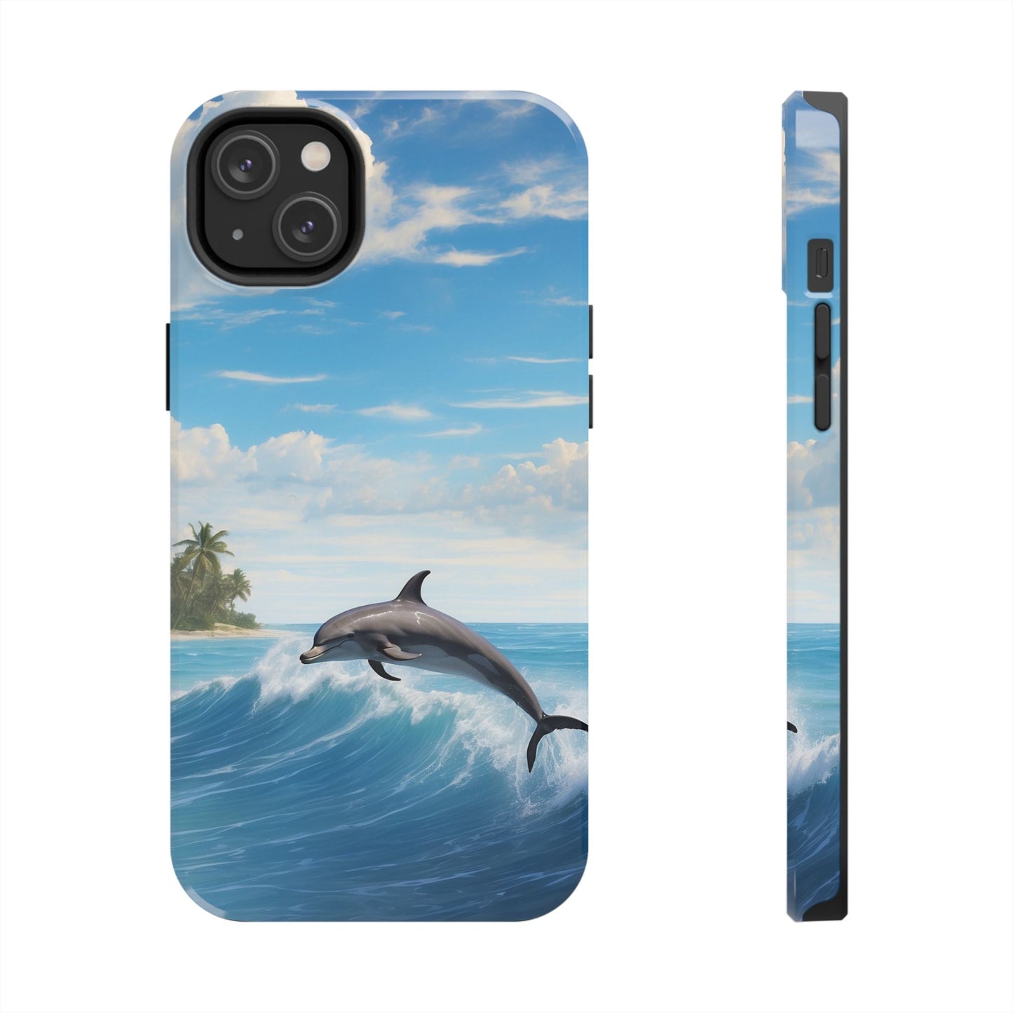 Ride the waves of adventure with this Tropical Surf Dolphin iPhone Case! Featuring a playful dolphin leaping through a crystal-blue wave, surrounded by lush palm trees and a bright tropical sky, this case is perfect for ocean lovers and free spirits. Designed with tough polycarbonate and a shock-absorbing TPU bumper, it protects your phone while bringing a touch of paradise to your everyday life.